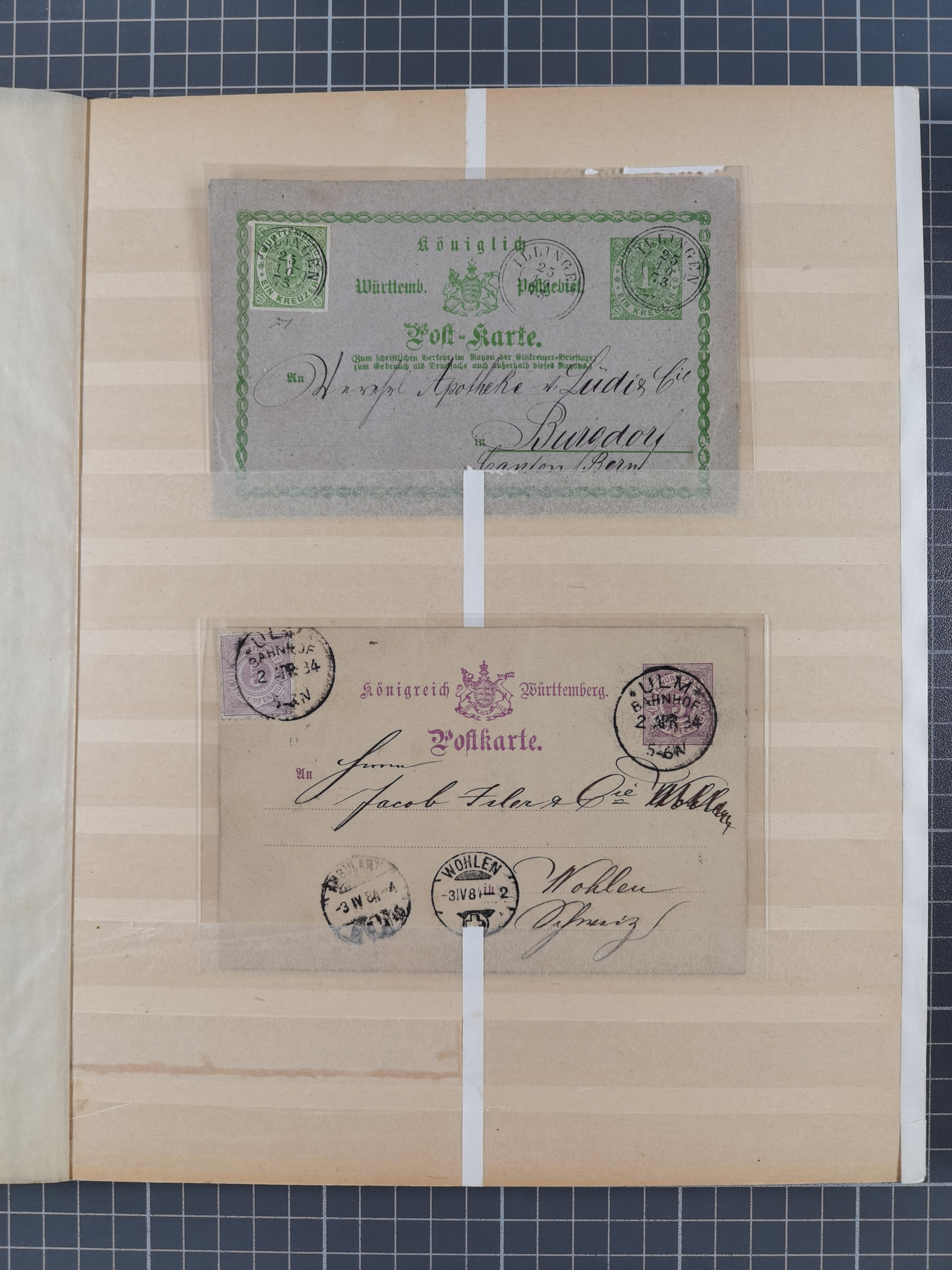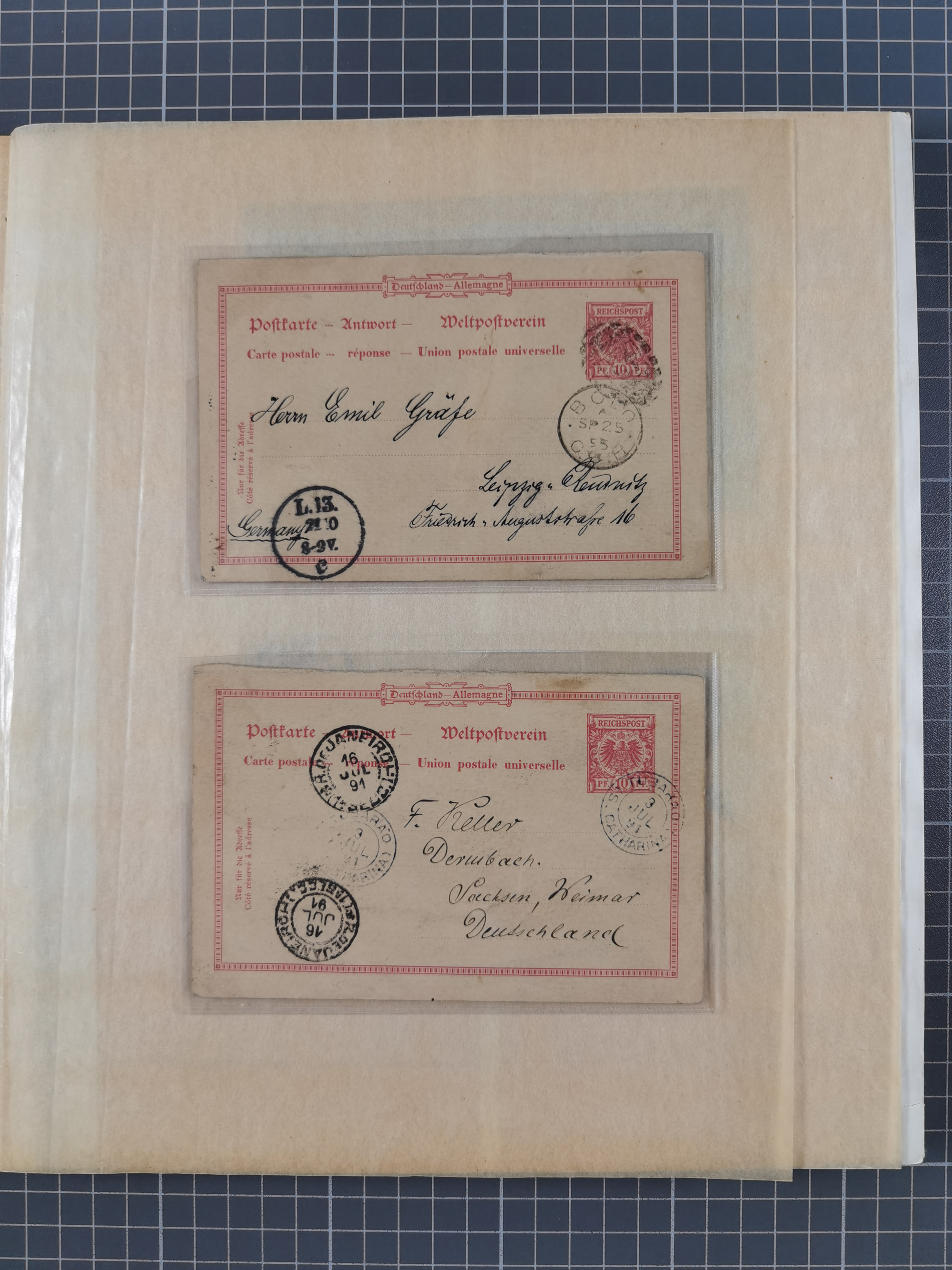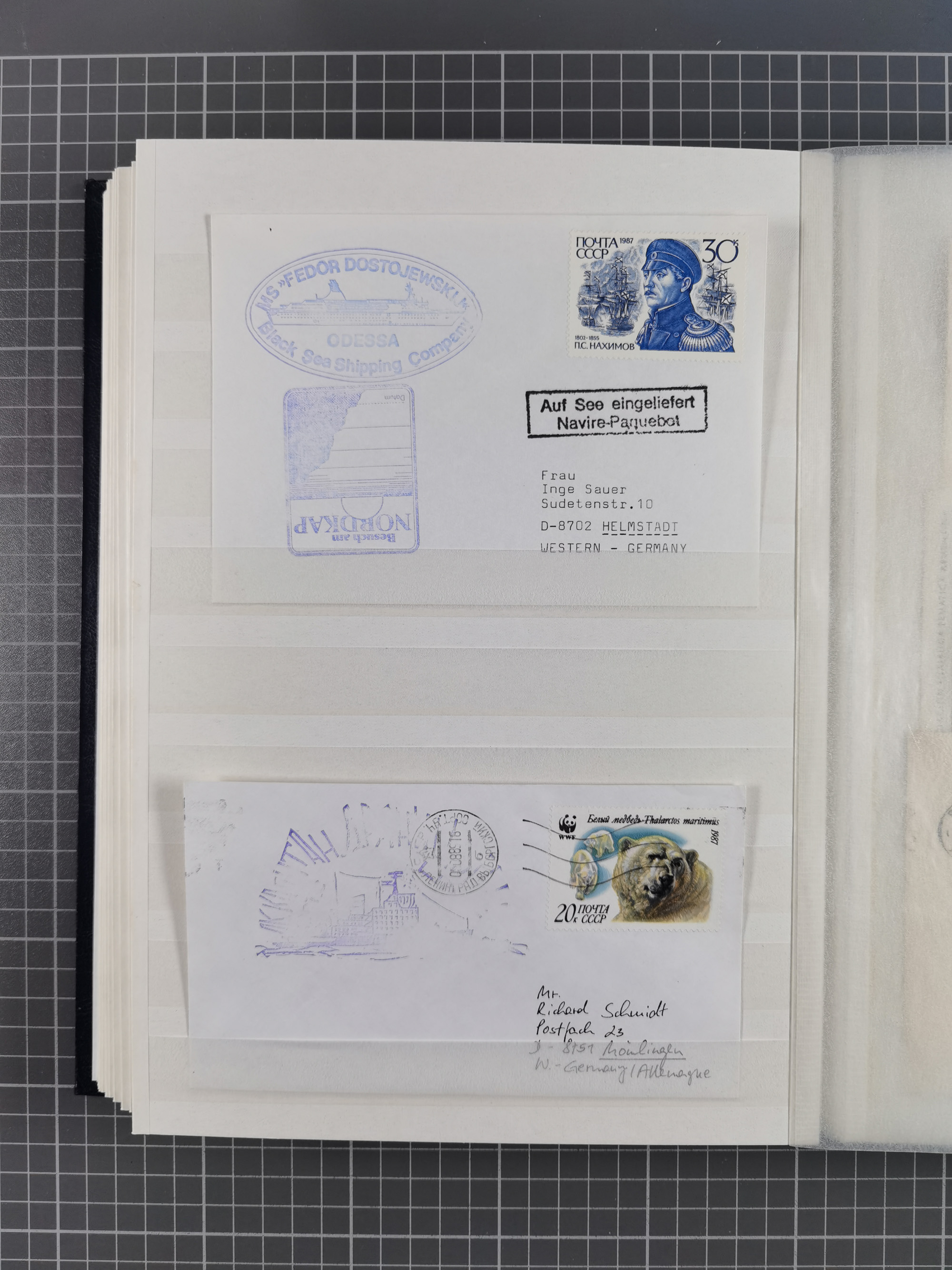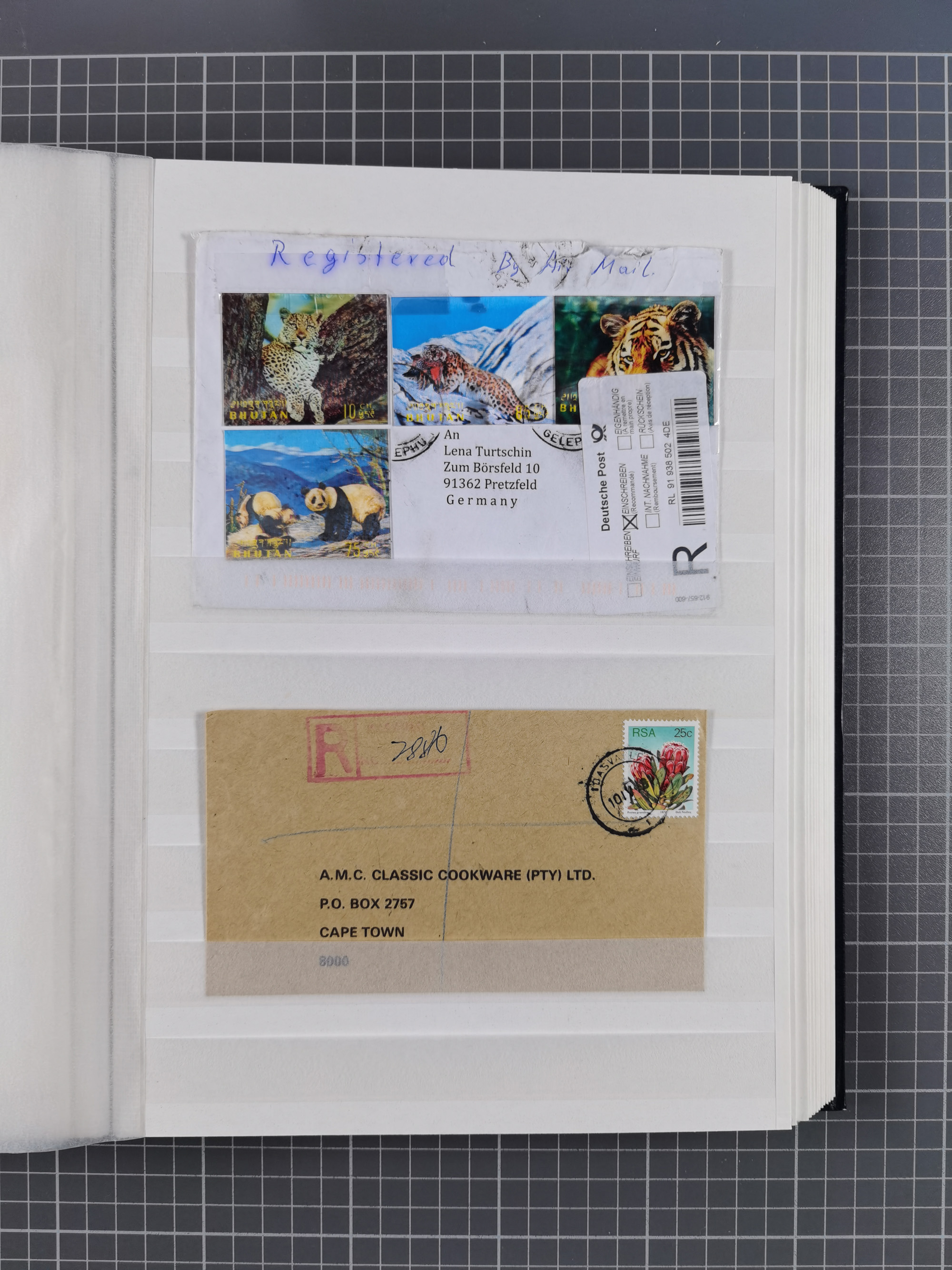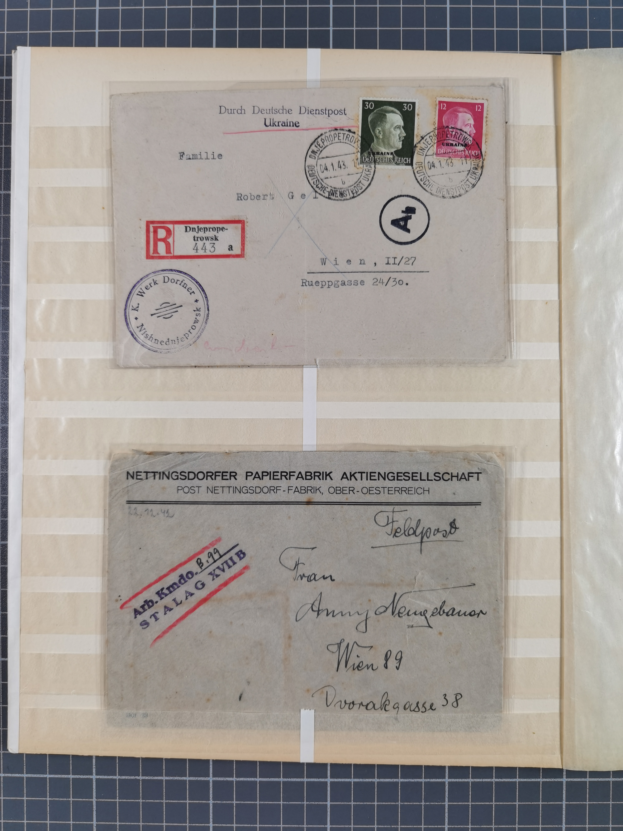 1865/1950 (ca.), Album mit 122 hochwertigen Belegen, diese einzeln vom Einlieferer beschrieben und nach Michel bewertet 15.000 €. Dazu ein Karton mit über 170 Briefen, Karten und Ganzsachen, dabei etliche interessante Belege, meist gute Erhaltung
