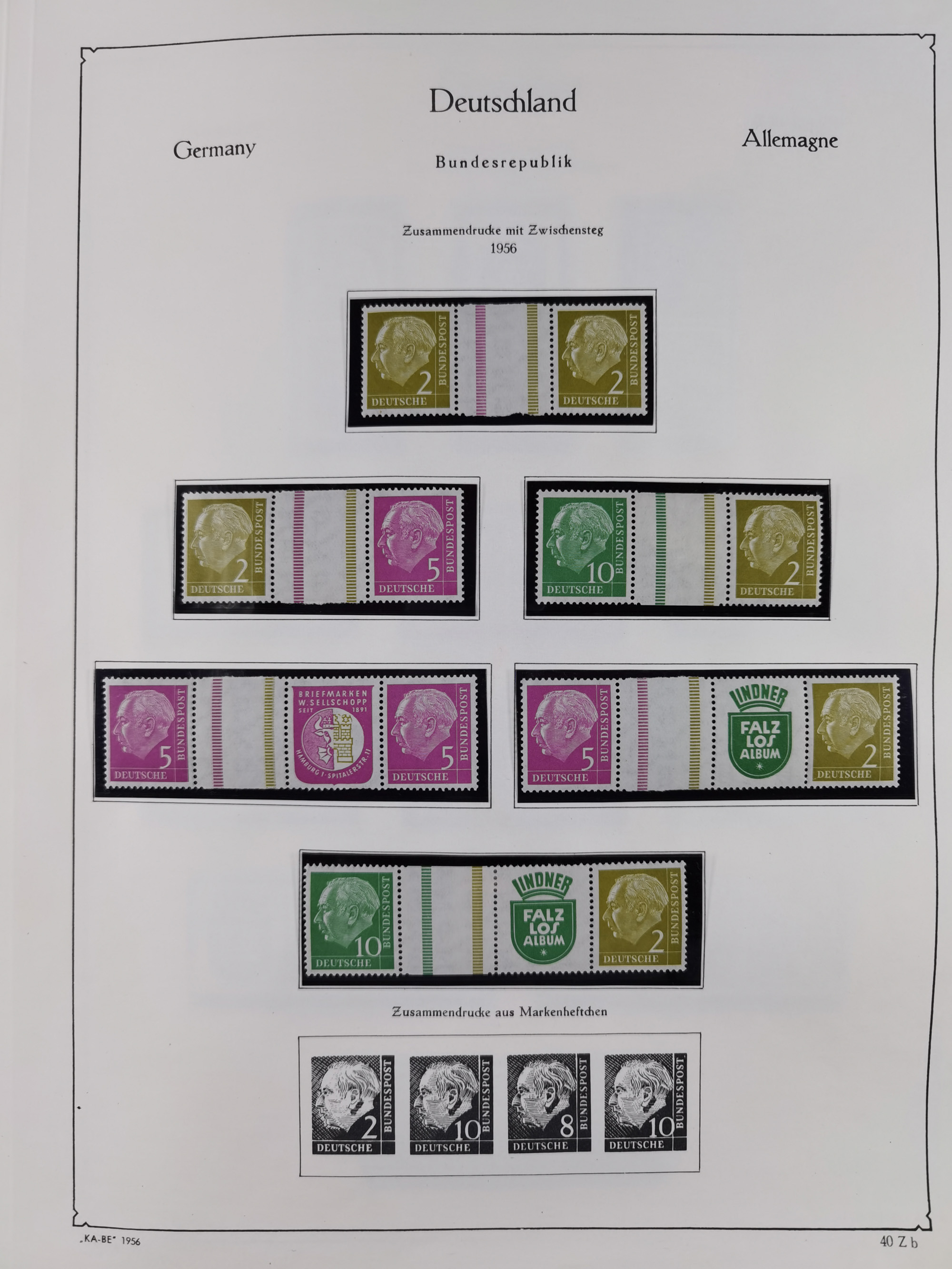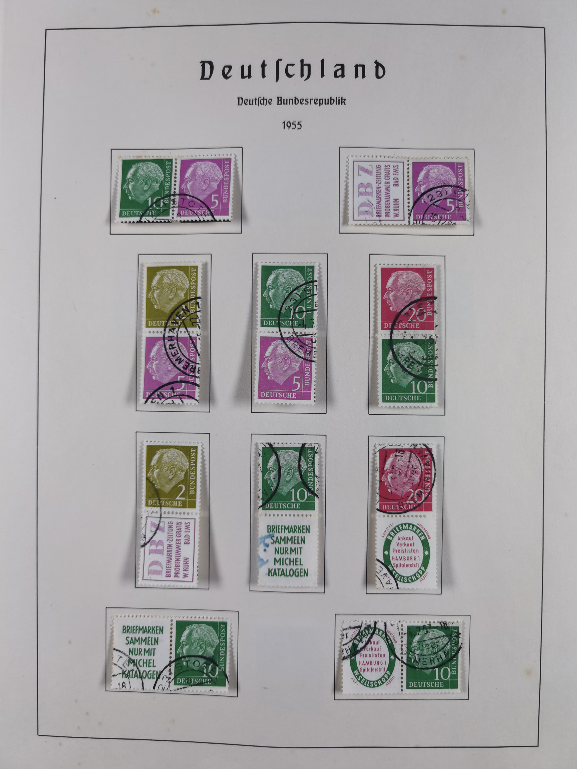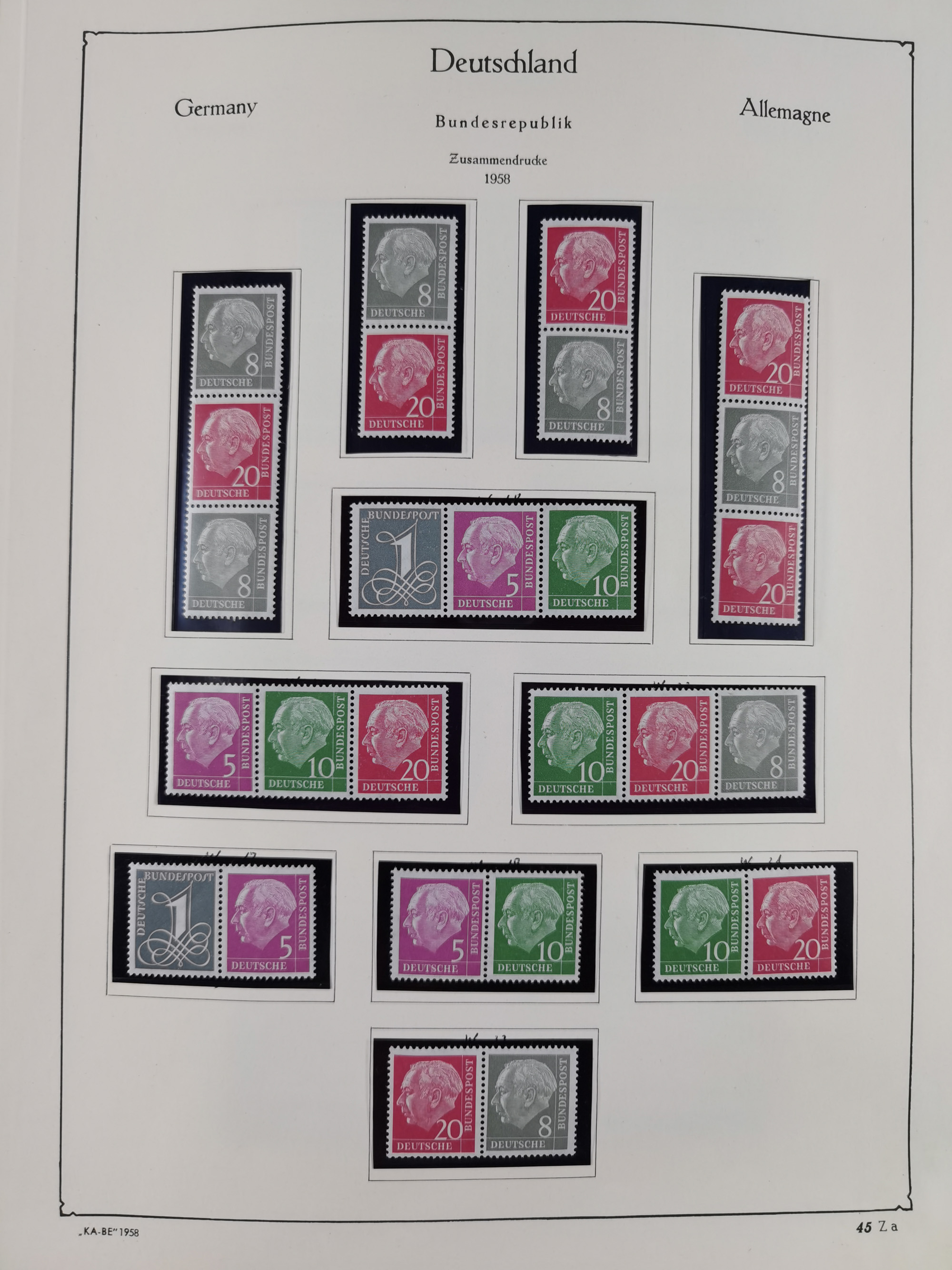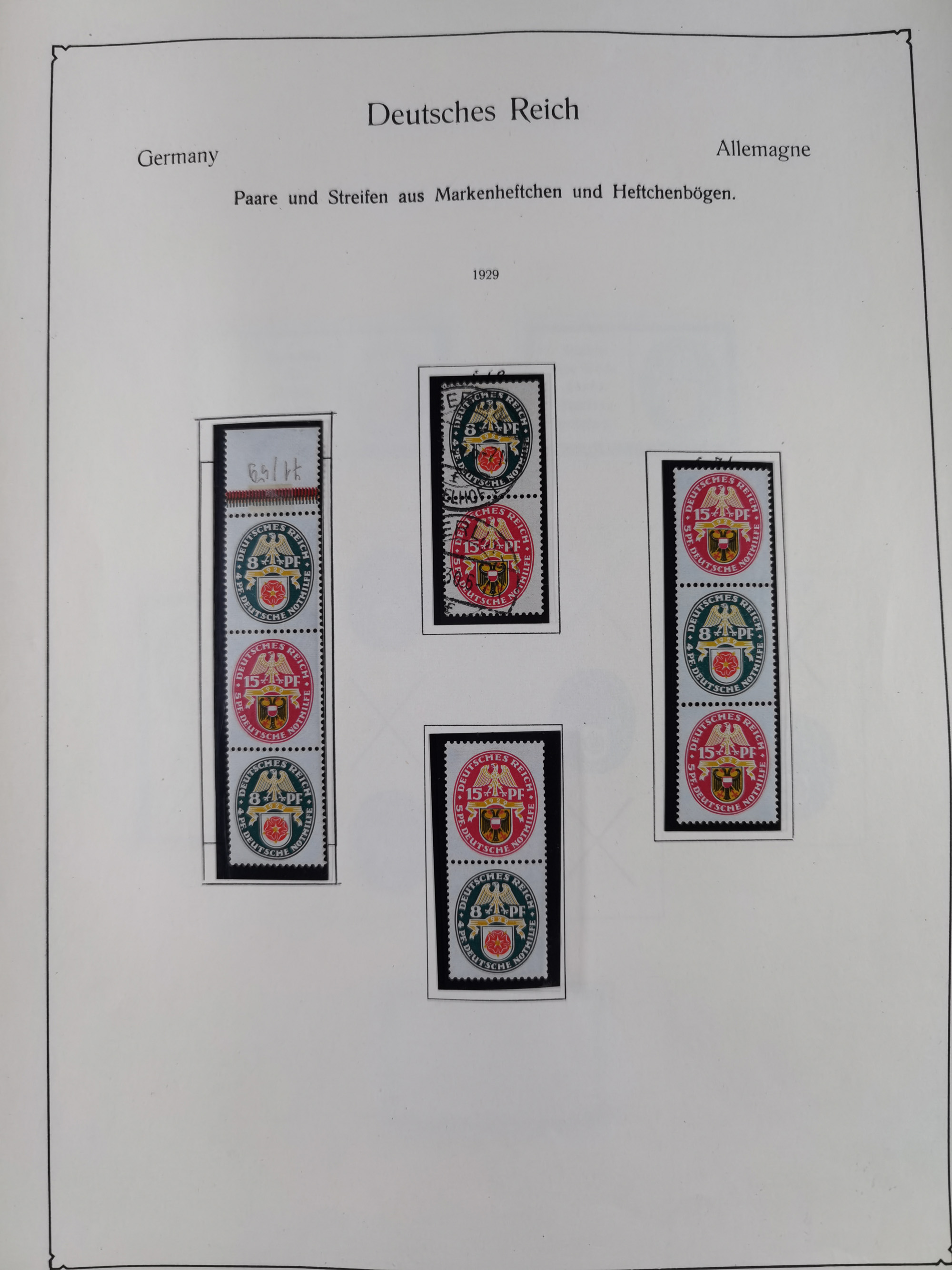 ZUSAMMENDRUCKE: 1913/68, anfangs meist ungebrauchte und gestempelte, später postfrische Sammlung Zusammendrucke ab Germania und Nothilfe, mit u.a. Mi.-Nr. W24.1 ungebraucht KB H.-D. Schlegel BPP, sowie Gemeinschaftsausgaben, Berlin und Bundesrepublik mit u.a. H-Bl. 1-2, sowie Heuss in den Hauptnummern kpl. inkl. RL1-2, und wenig modernem Material, im Vordruckalbum