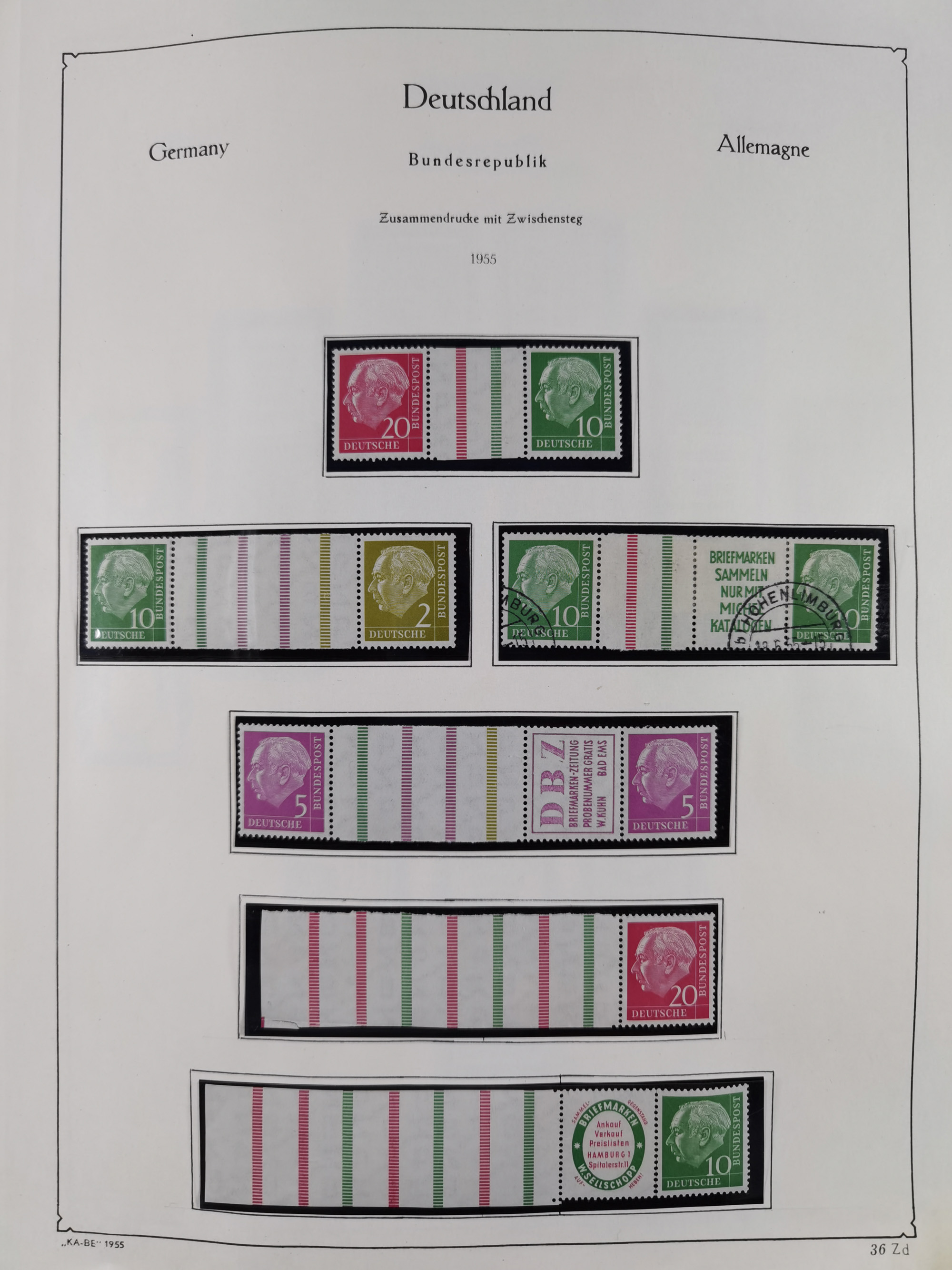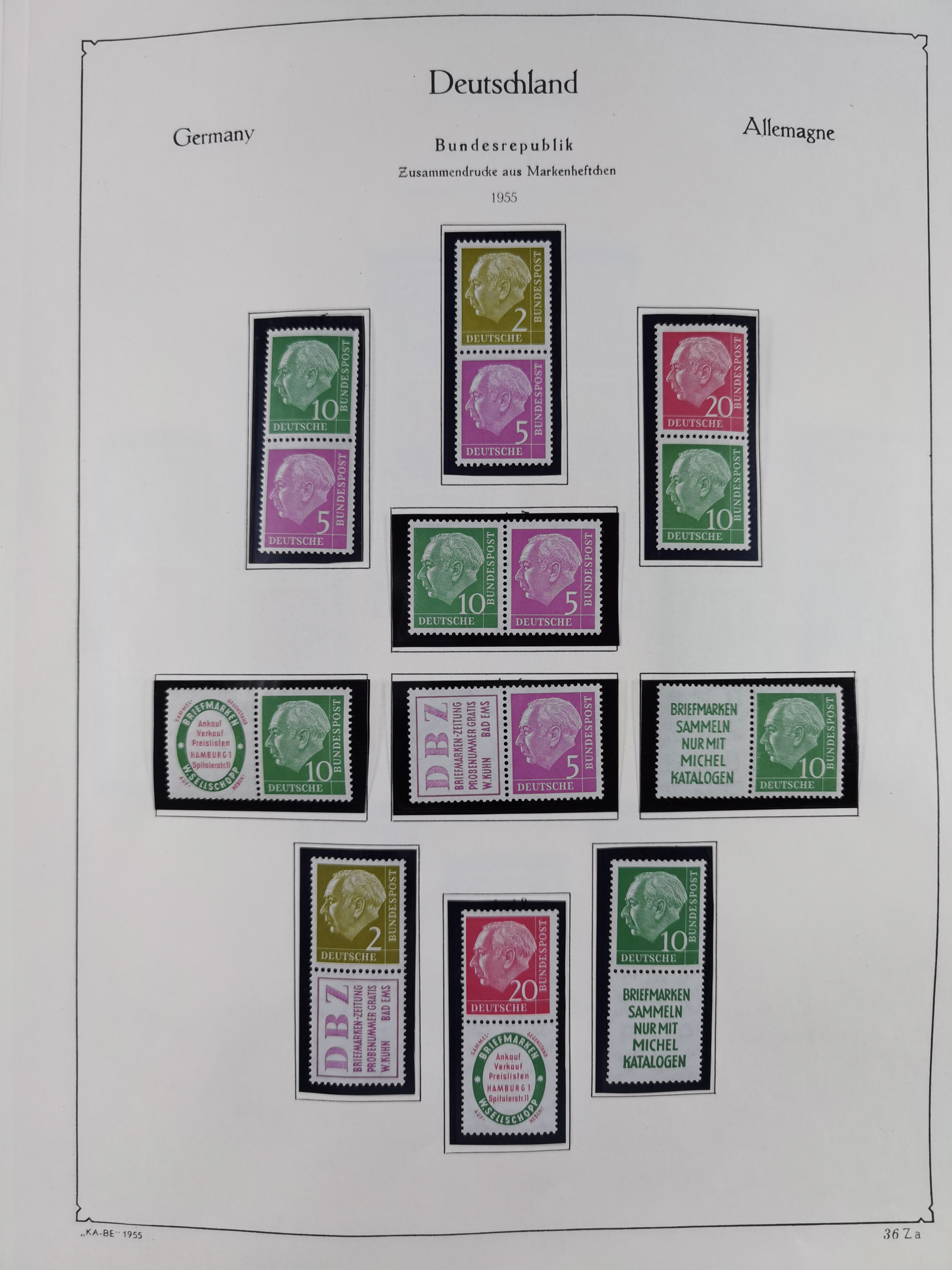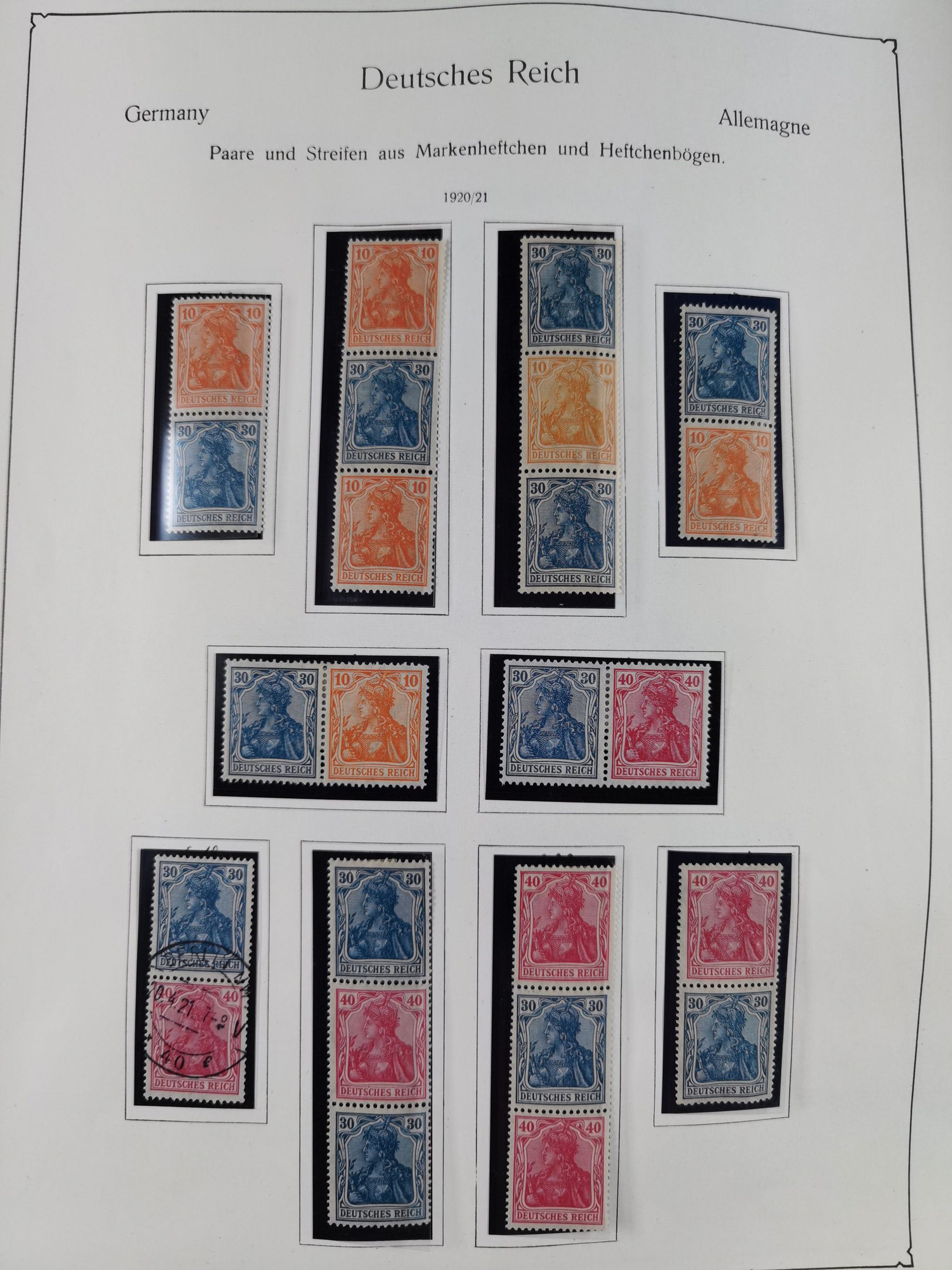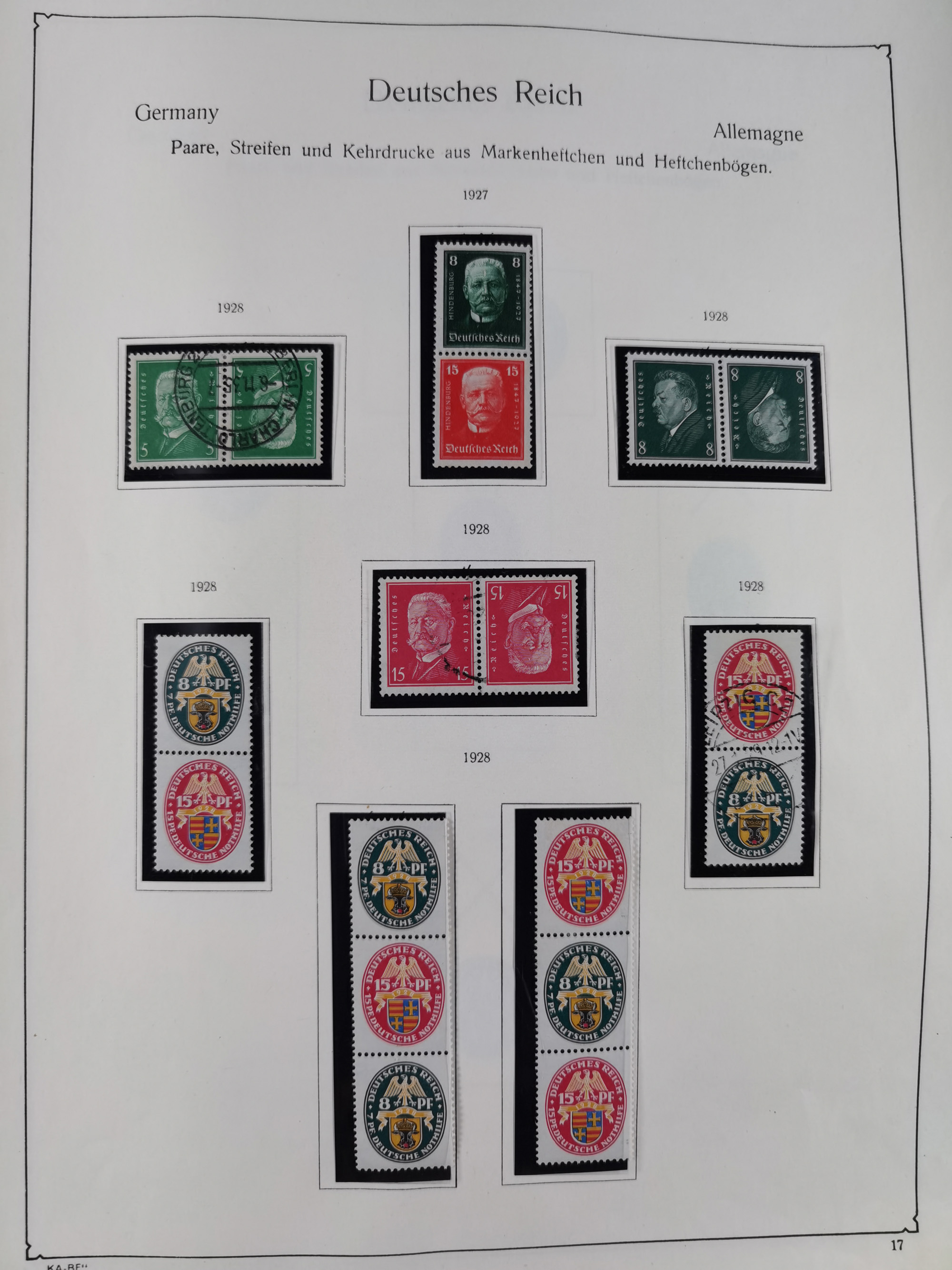 ZUSAMMENDRUCKE: 1913/68, anfangs meist ungebrauchte und gestempelte, später postfrische Sammlung Zusammendrucke ab Germania und Nothilfe, mit u.a. Mi.-Nr. W24.1 ungebraucht KB H.-D. Schlegel BPP, sowie Gemeinschaftsausgaben, Berlin und Bundesrepublik mit u.a. H-Bl. 1-2, sowie Heuss in den Hauptnummern kpl. inkl. RL1-2, und wenig modernem Material, im Vordruckalbum