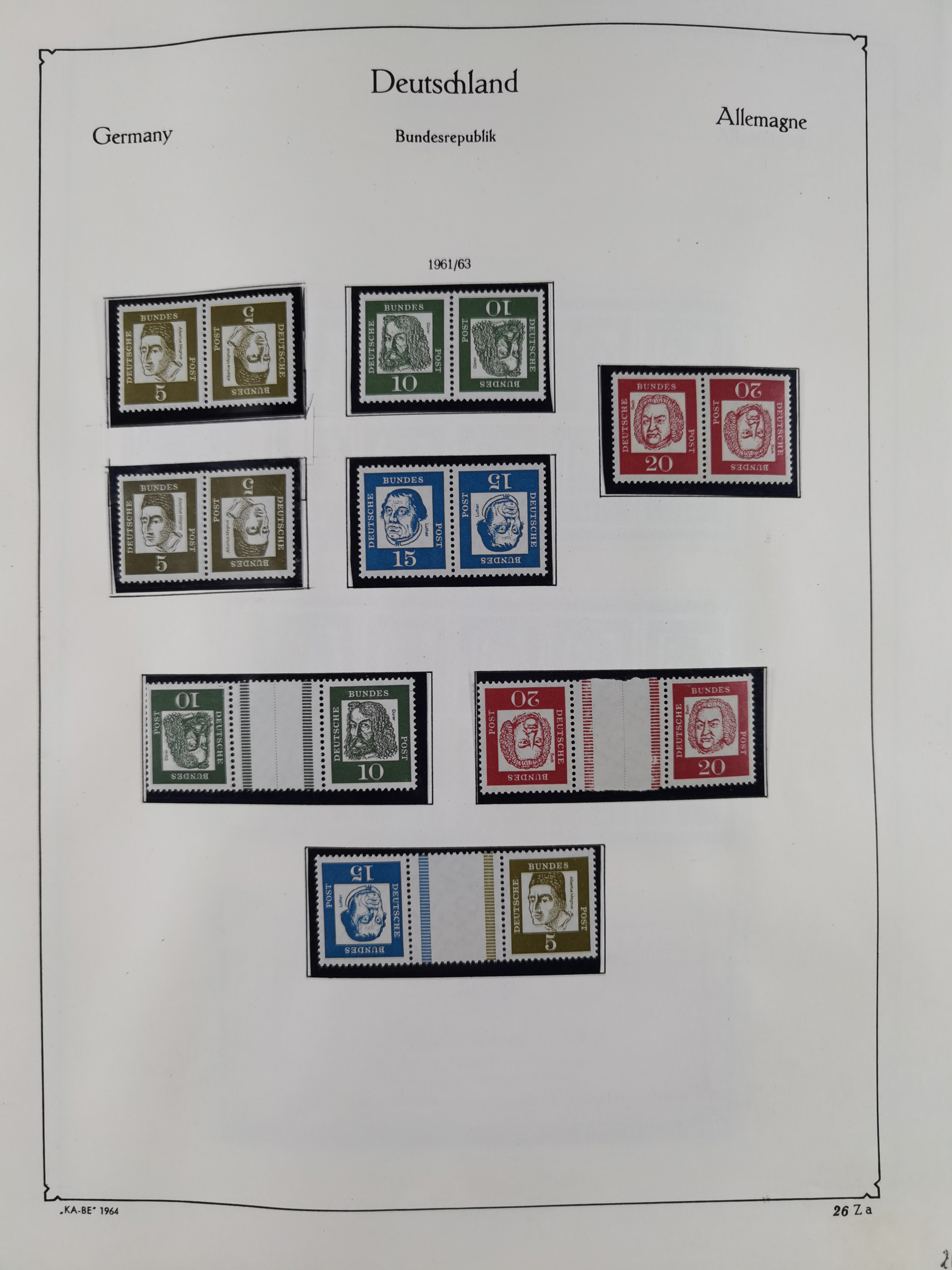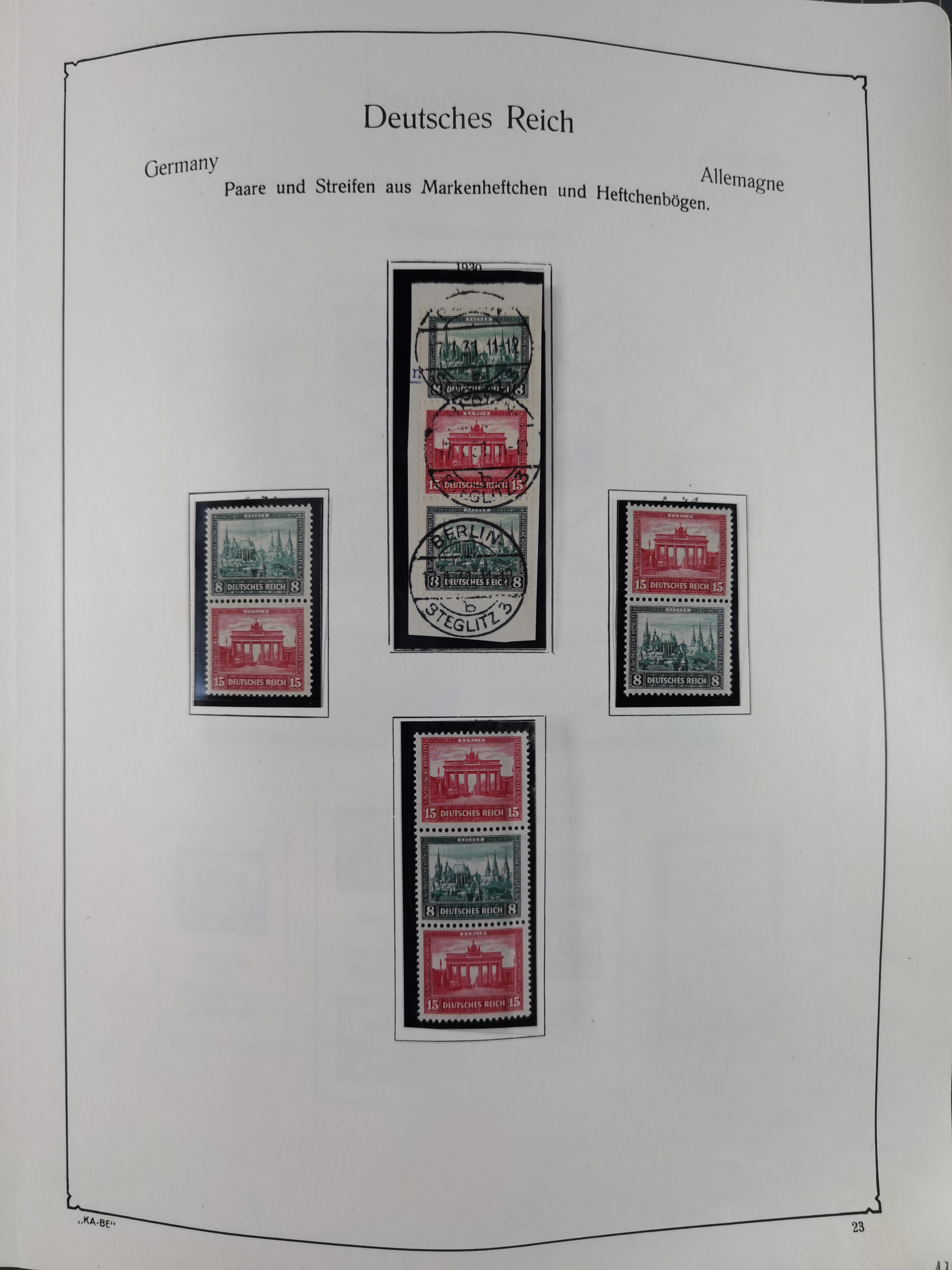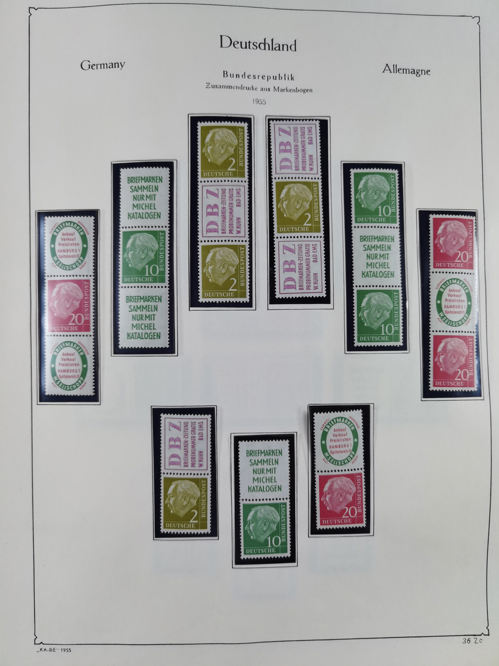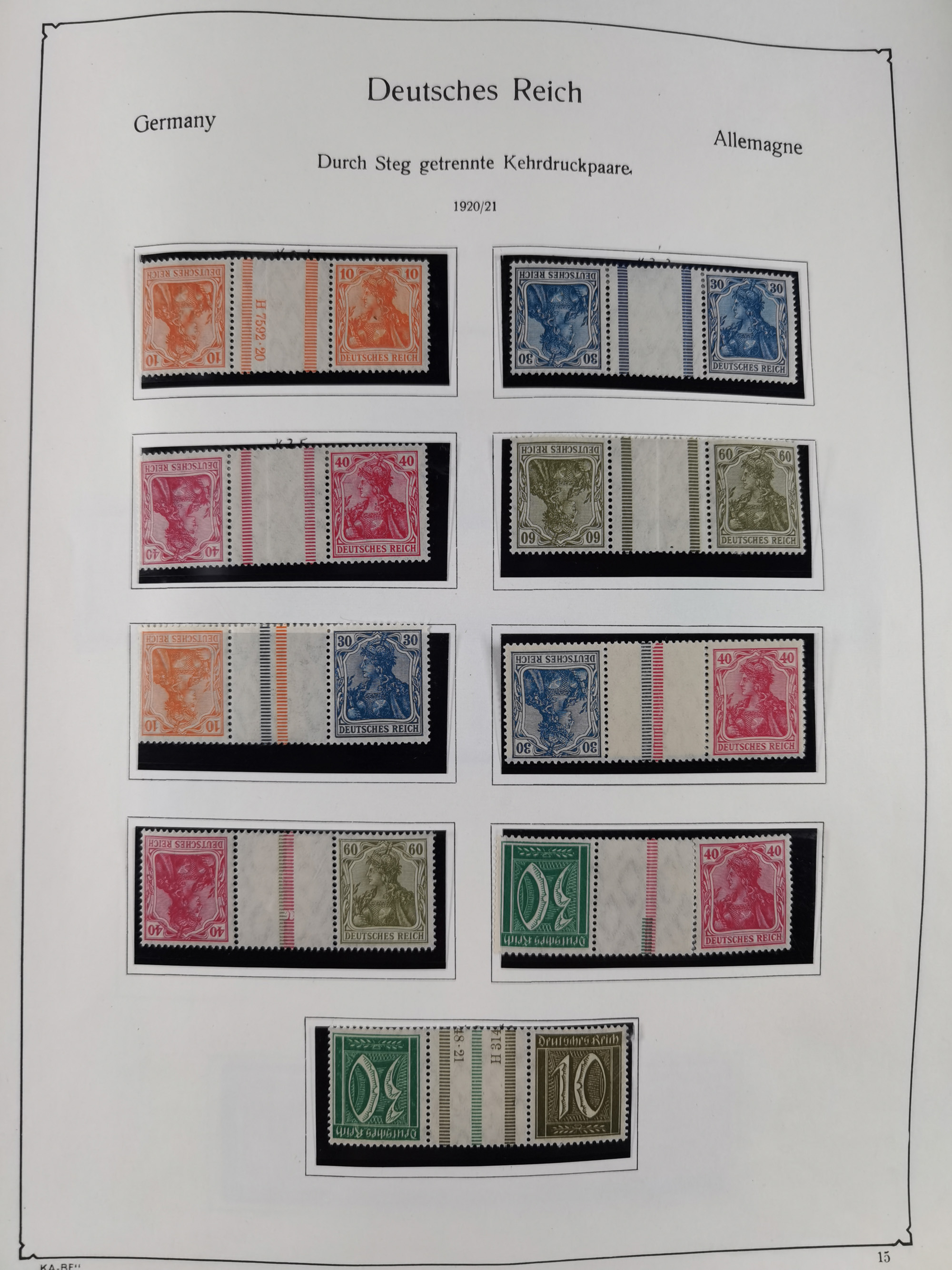 ZUSAMMENDRUCKE: 1913/68, anfangs meist ungebrauchte und gestempelte, später postfrische Sammlung Zusammendrucke ab Germania und Nothilfe, mit u.a. Mi.-Nr. W24.1 ungebraucht KB H.-D. Schlegel BPP, sowie Gemeinschaftsausgaben, Berlin und Bundesrepublik mit u.a. H-Bl. 1-2, sowie Heuss in den Hauptnummern kpl. inkl. RL1-2, und wenig modernem Material, im Vordruckalbum