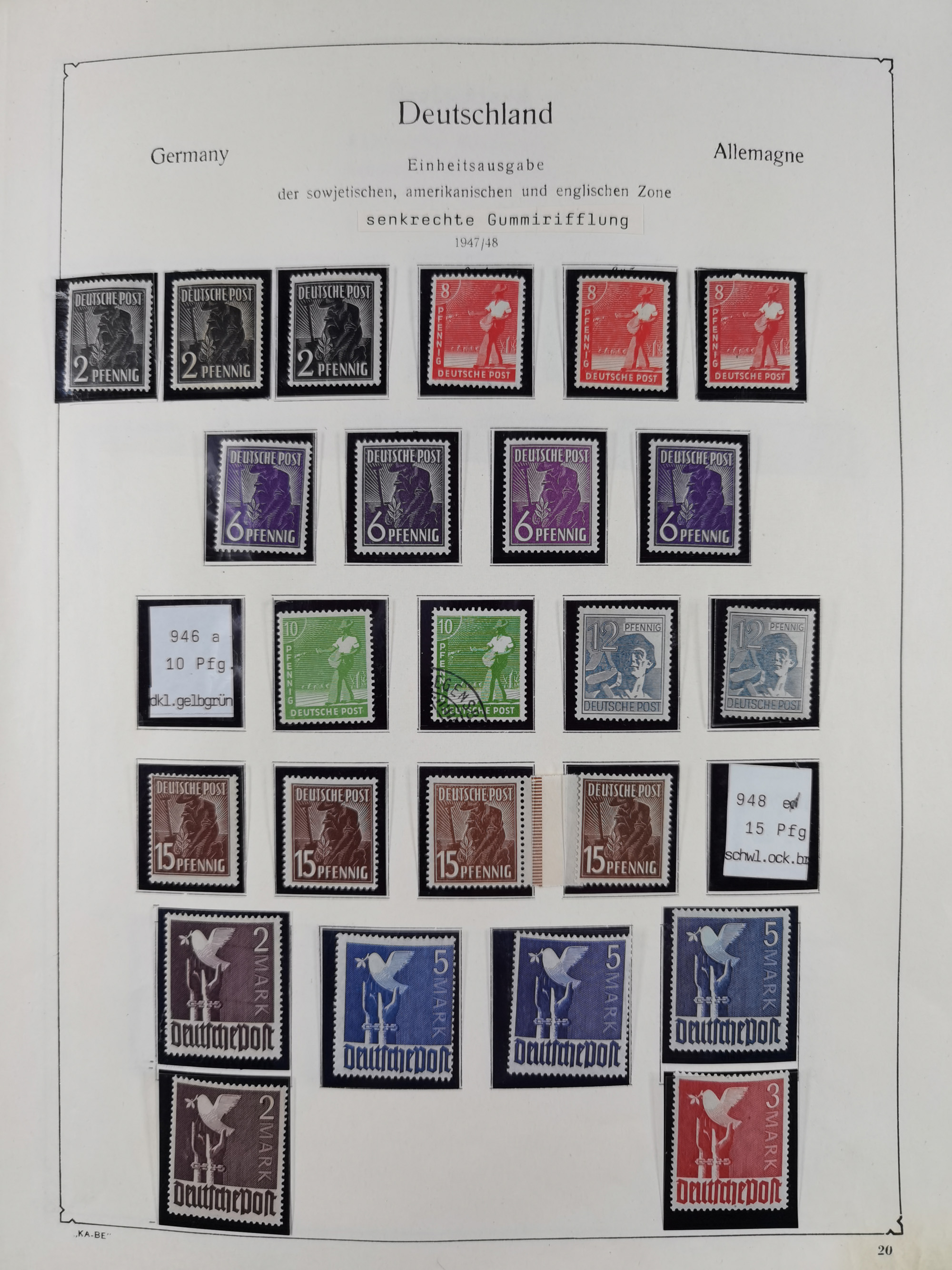 1940/2014(ca.), vorwiegend postfrische Sammlungen, dabei Französische Zone inkl. Mi.-Nr. 46II postfrisch, Bizone Mi.-Nr. 52-68I und 52-68II sowie I-IX/I, Bauten Mi.-Nr. 73-97eg, je postfrisch, Saarland ohne Bl. 1-2, SBZ mit einigen besseren wie Mi.-Nr. 41, Block 1, Block 4-6, DDR, etwas Berlin sowie Bund mit Nominale bis 2014, dazu Dubletten, einiges mit Fotoattest BPP
