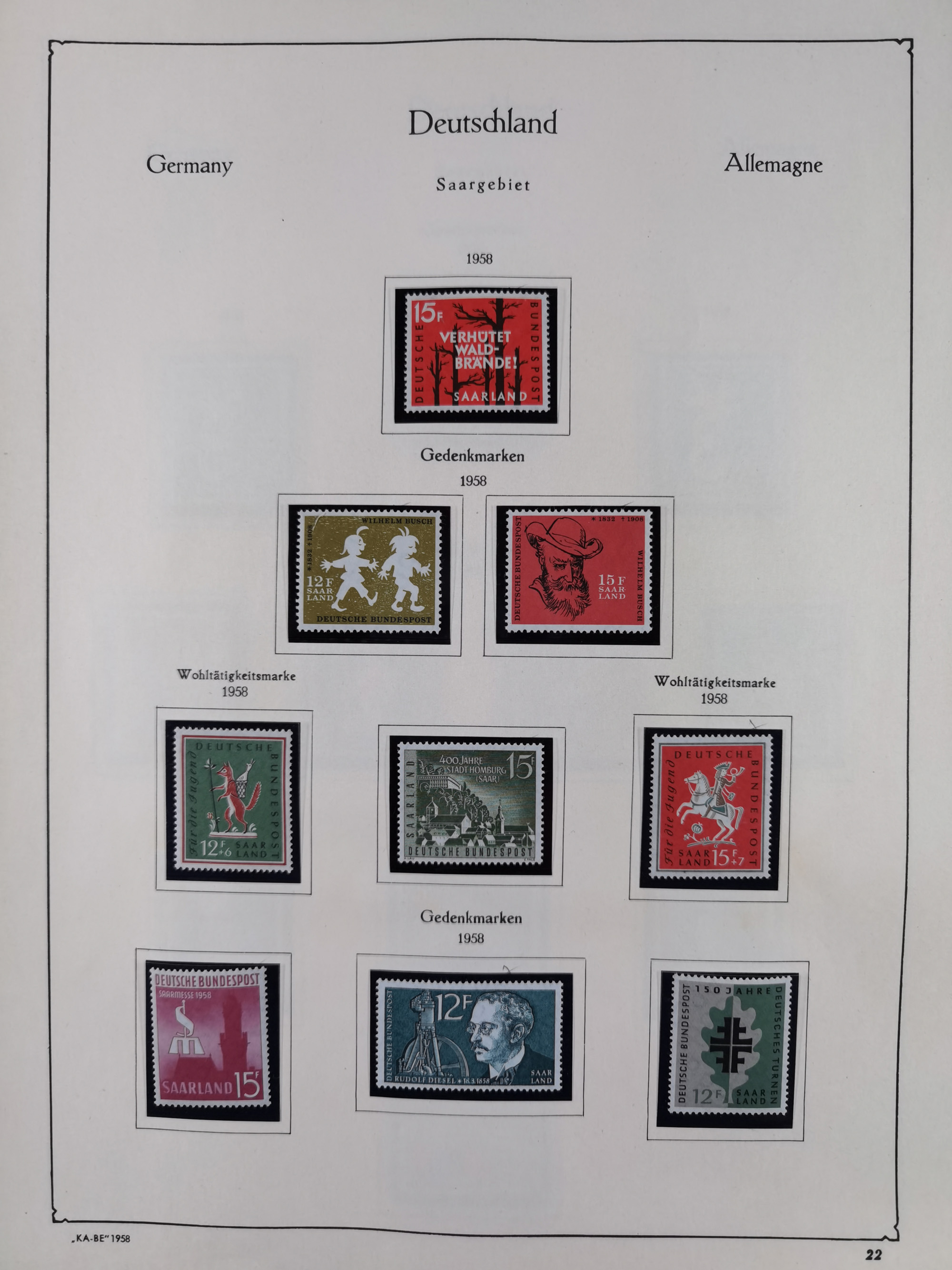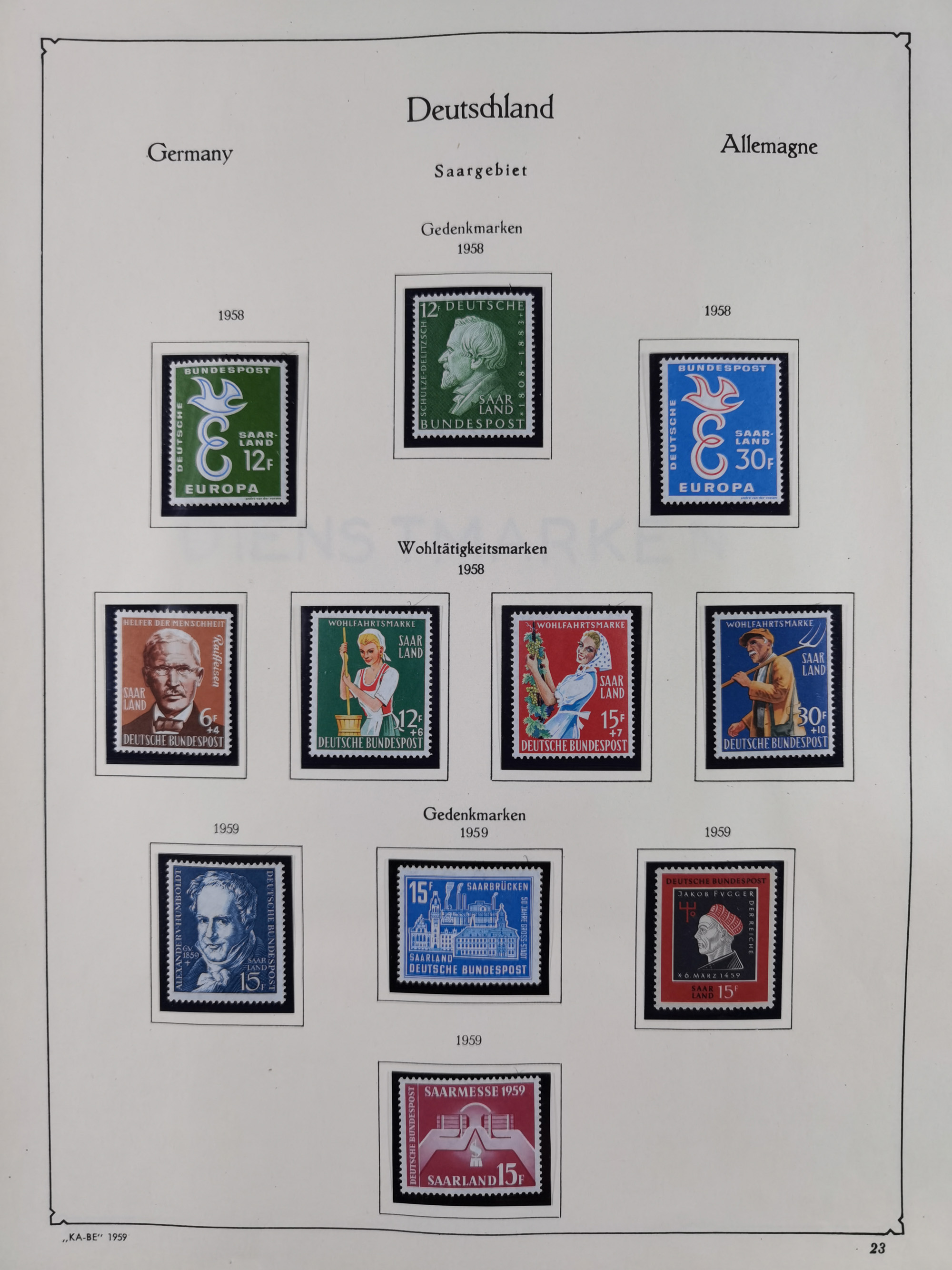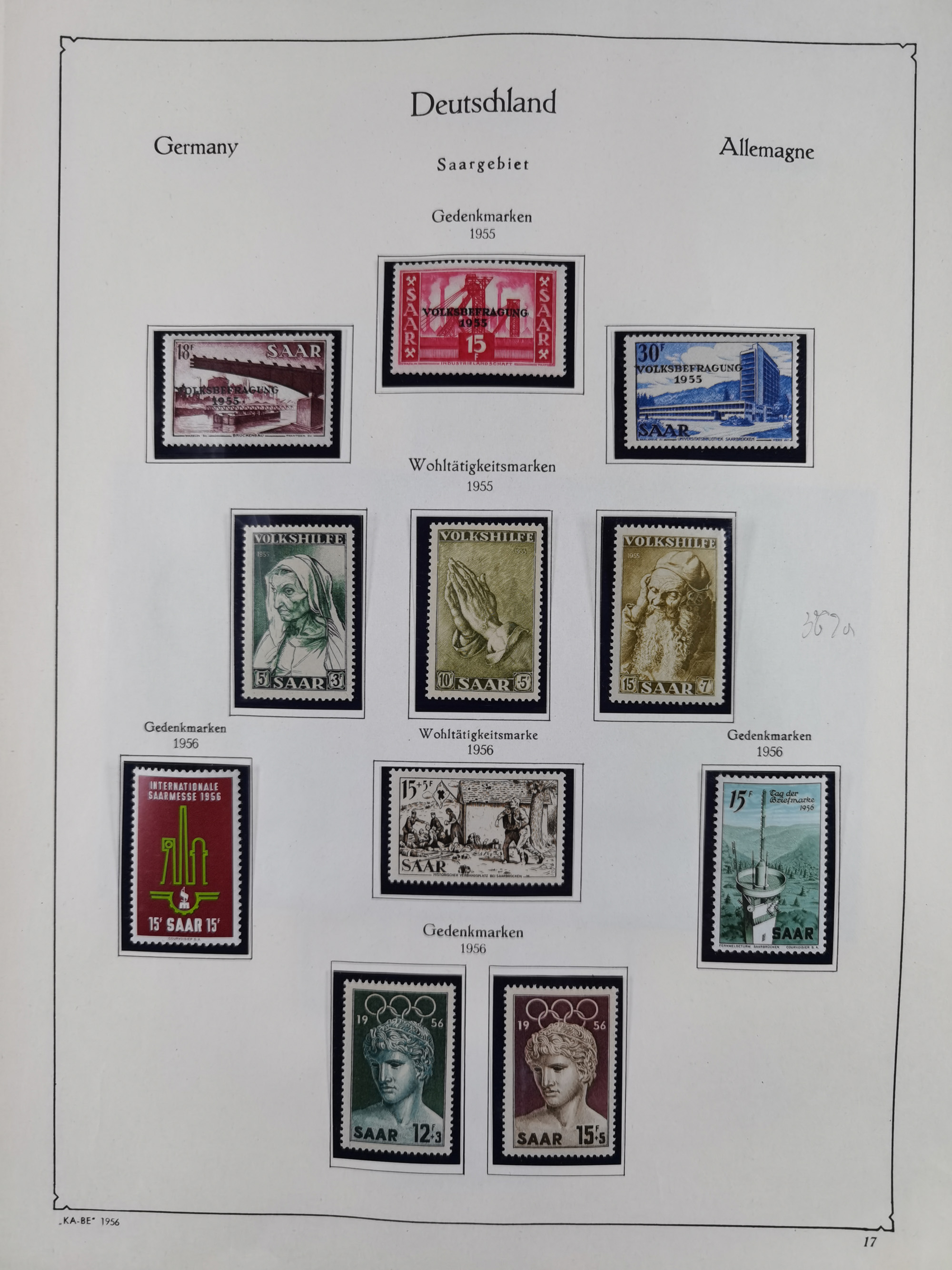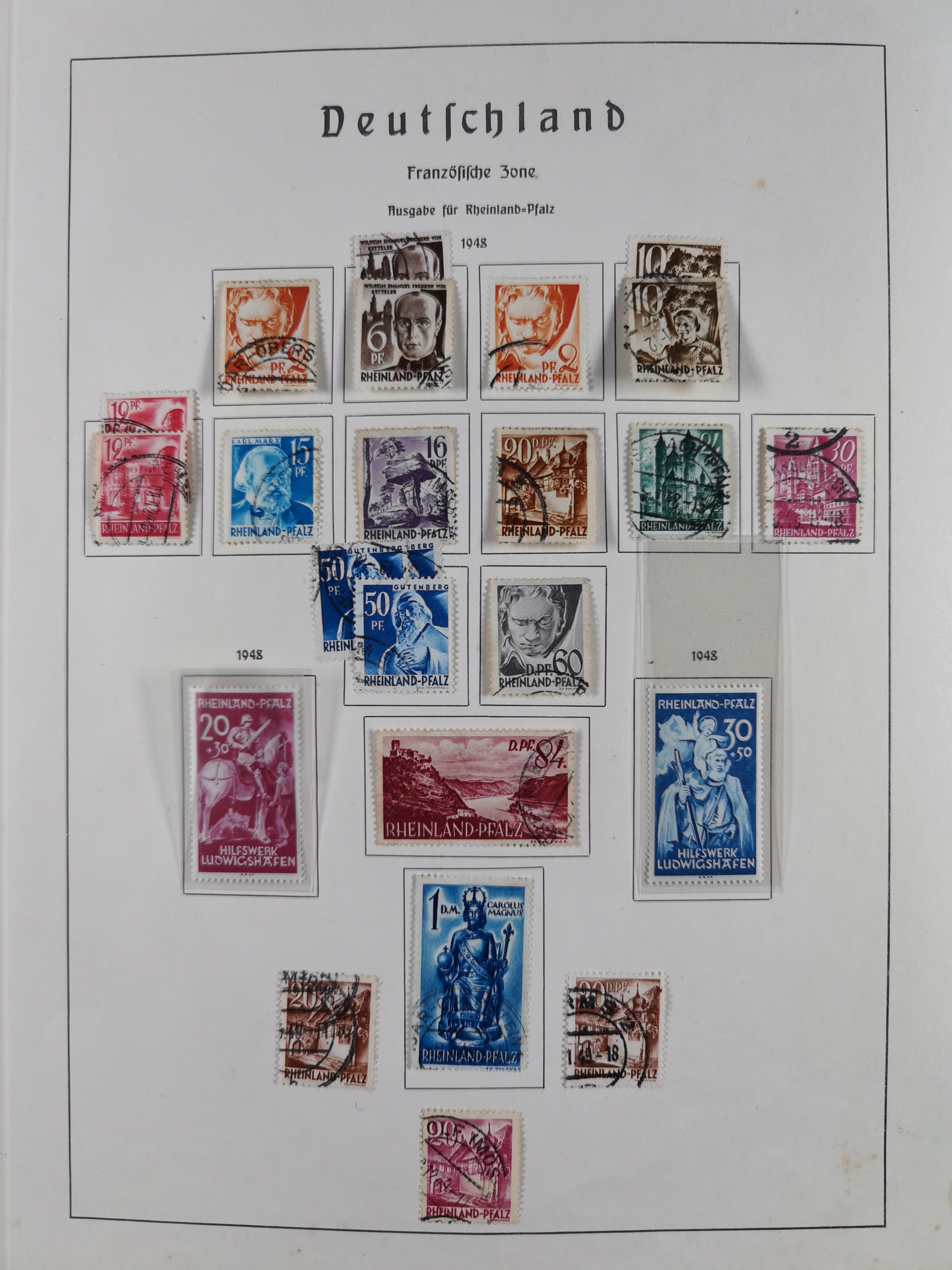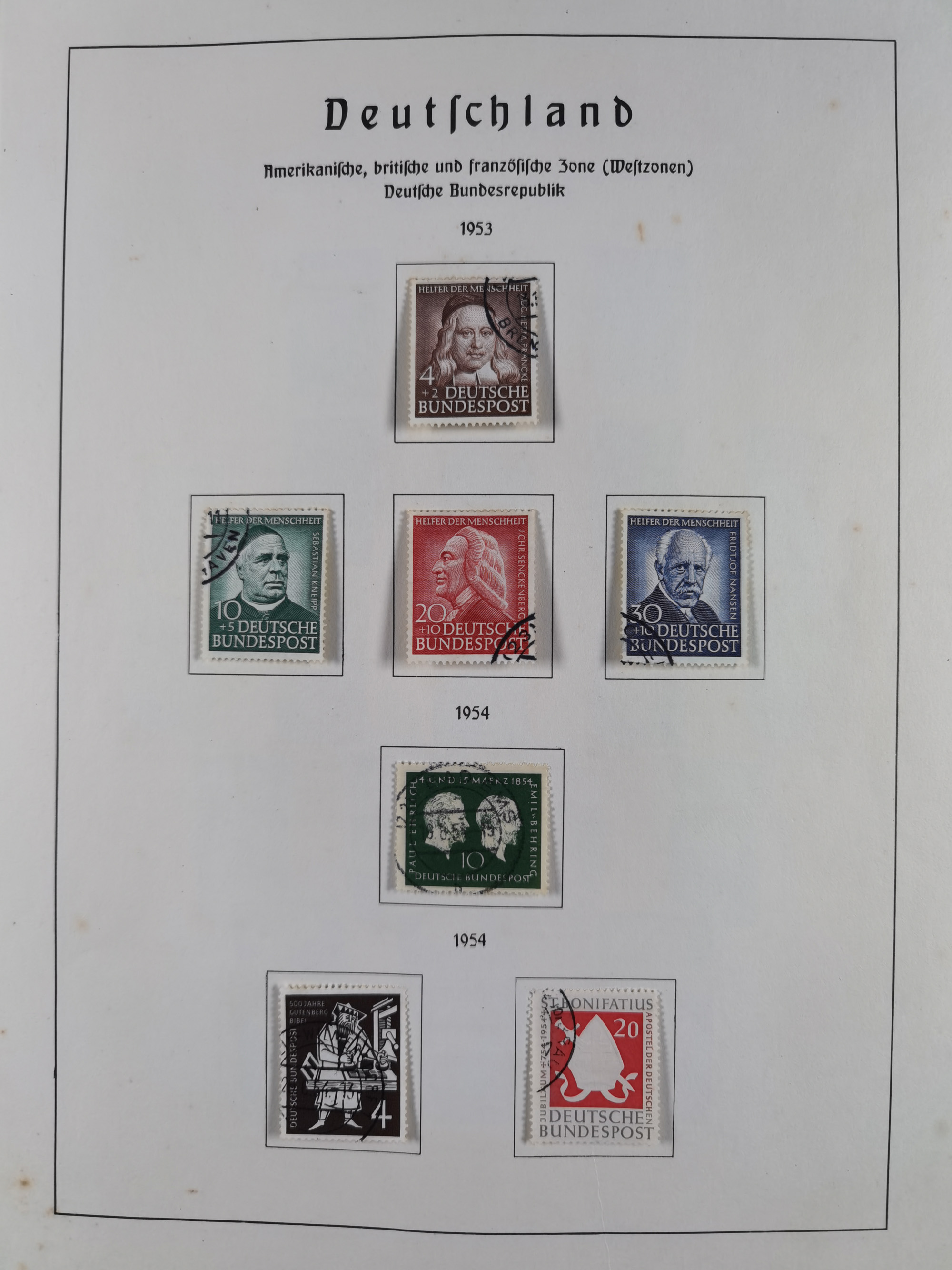 1939/2002, meist postfrischer und teils gestempelter Sammlungsbestand ab etwas Deutsches Reich, Saar, SBZ, Französische Zone mit Rot-Kreuz Block (2), Marken in Paaren oder 4er-Blocks, Bizone, Bauten kpl. (3) sowie 1-3 M. zusätzlich in 4er-Blocks, Goethe auf Karte (9), Band- und Netzaufdruck, Bl. 1 (2), über Berlin mit Schwarzaufdruck bis auf 1-2 M. kpl., teils sign., Glocken, Bauten, etc., ferner Bundesrepublik mit u.a. 114 FDC, 113-15 in Paaren, zusätzlich in postfrischen Eckr. 6er-Bl., teils mit PF, Posthorn mit u.a. 30 Pfg. postfrisch, Heuss inkl. Lumogen mehrfach, Marienkirche, NBA, Rontgen, Liebig, Bedeutende Deutsche kpl. in 4er-Bl., etliche weitere Sondermarken und Wohlfahrts-Ausgaben und Sätze, etc., viel mehrfach und mit Bogen- und Eckrand, später viel modernes Material sowie zwei Bogenmappen, gute Erhaltung, in 15 Alben