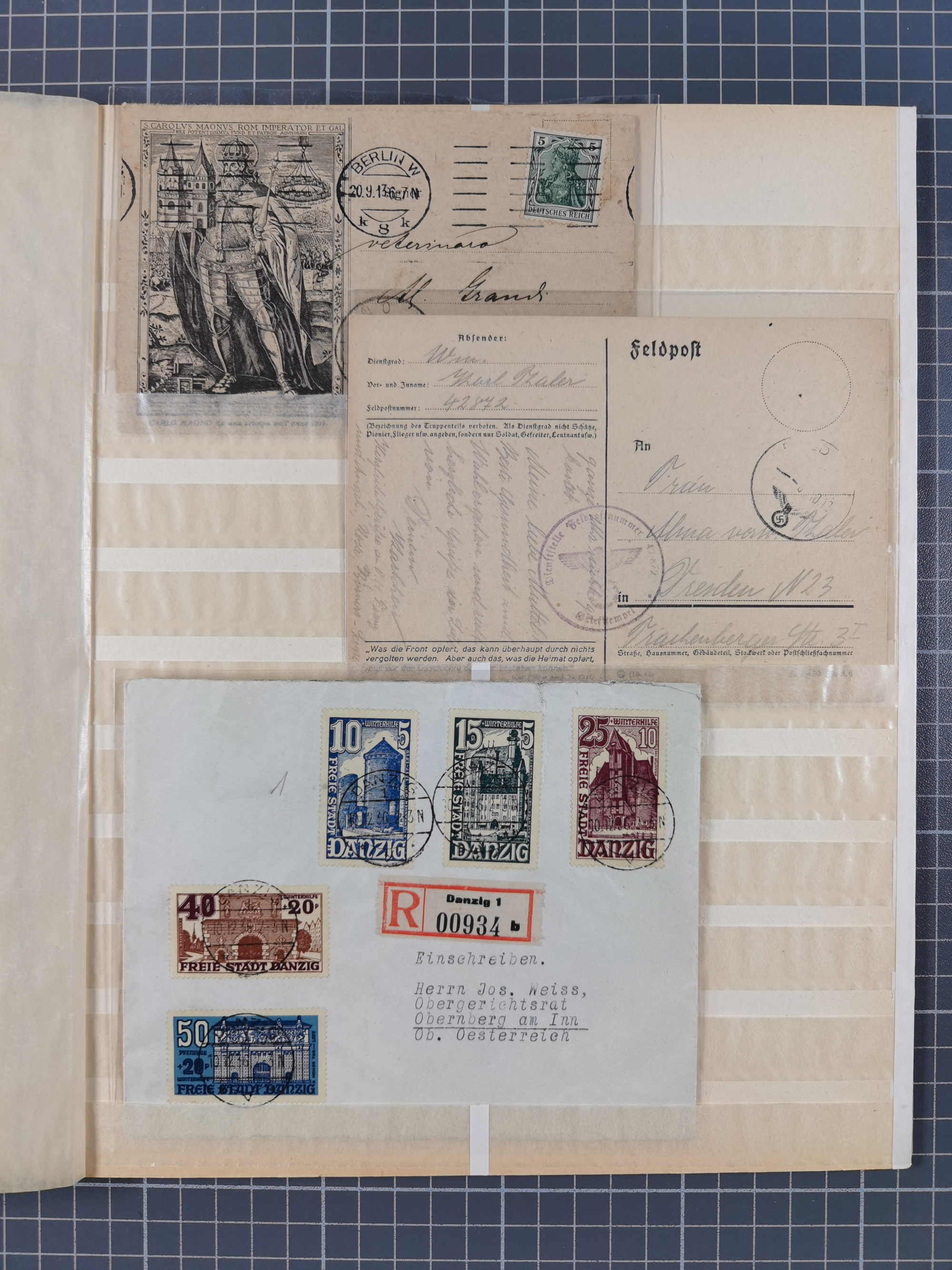 1829/1952, Partie mit 31 Belegen, inkl. Feldpost, Alt Württemberg, Danzig und Fr. Zone, etc., sauber im Album