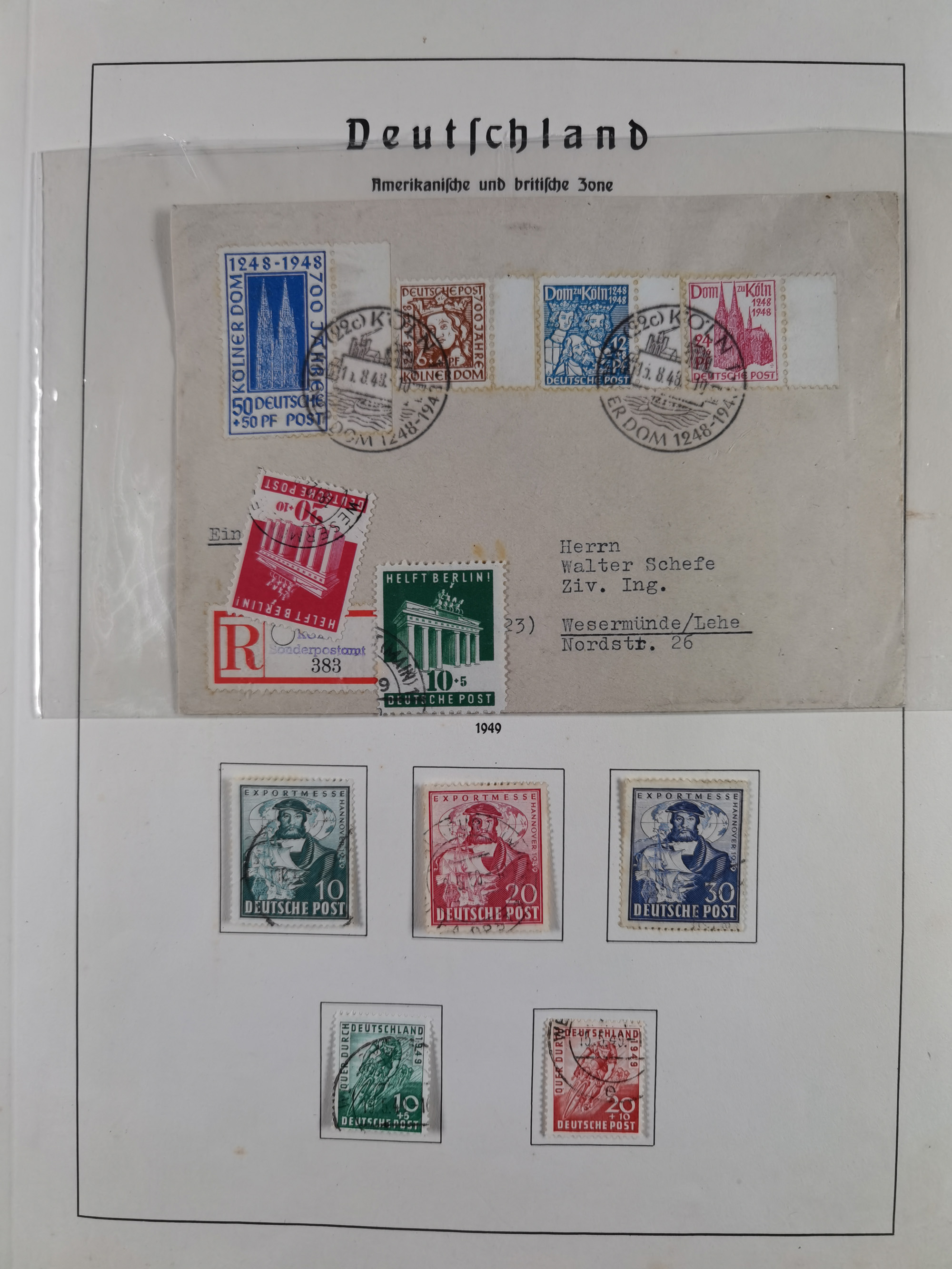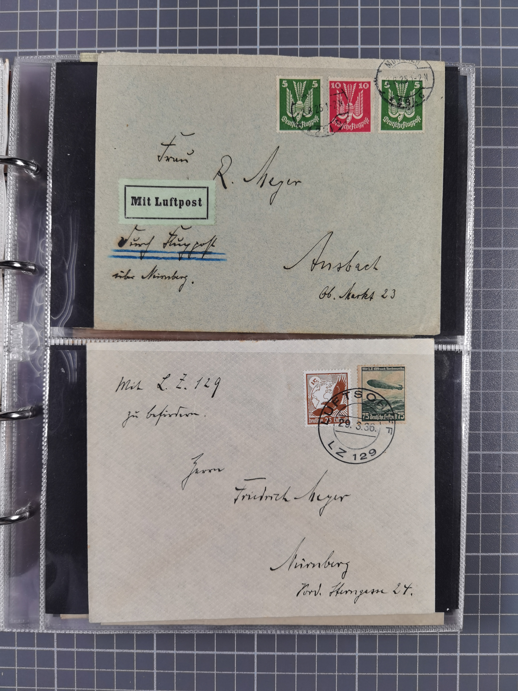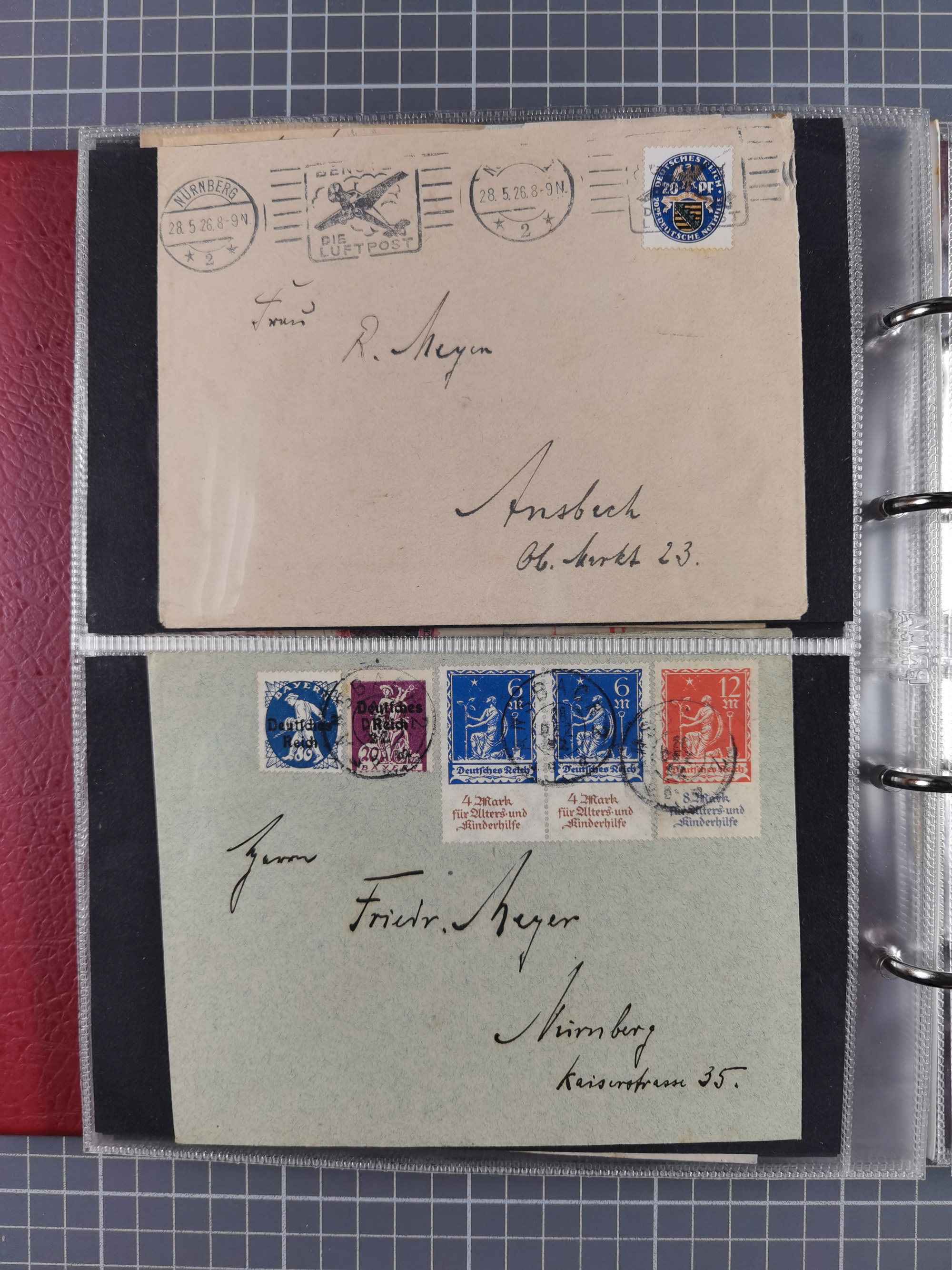 1928/48, über 40 Briefe, dabei u.a. Zeppelinpost mit Islandfahrt, Polarpost 1 M., Holztaube, Liechtenstein, etc., ferner Nothilfe Zusammendruck mit Zufrankatur von Ansbach nach Nürnberg, Berlin Mi.-Nr. 1-20 je auf Blanko-Briefen, Bezirkshandstempel, etc.