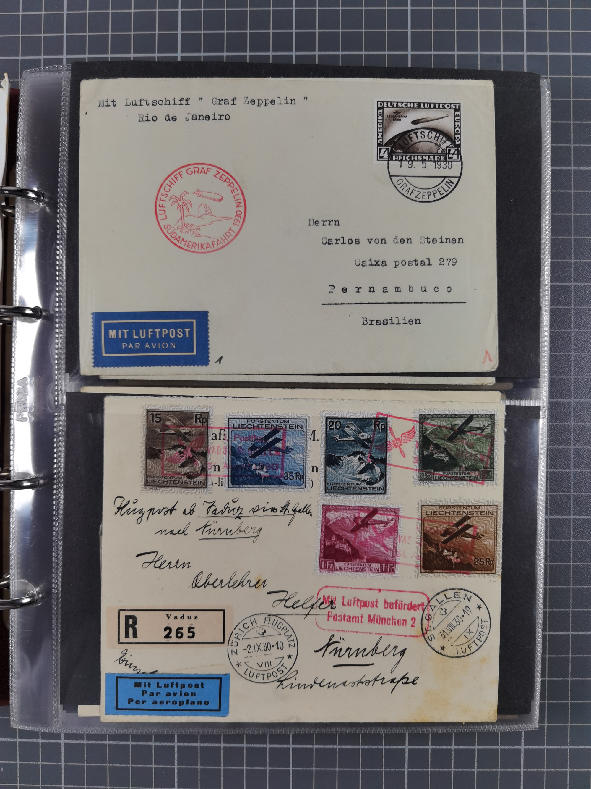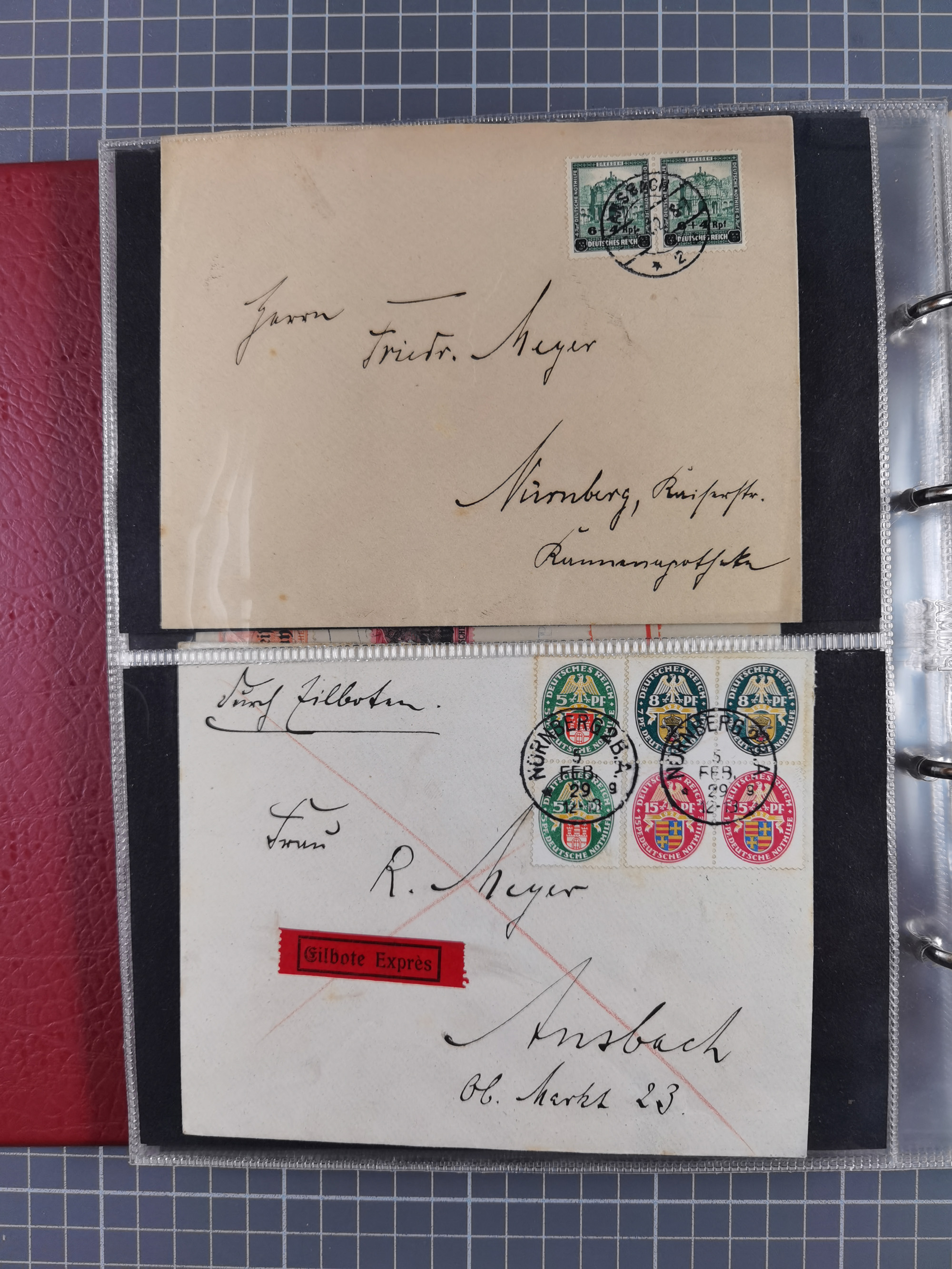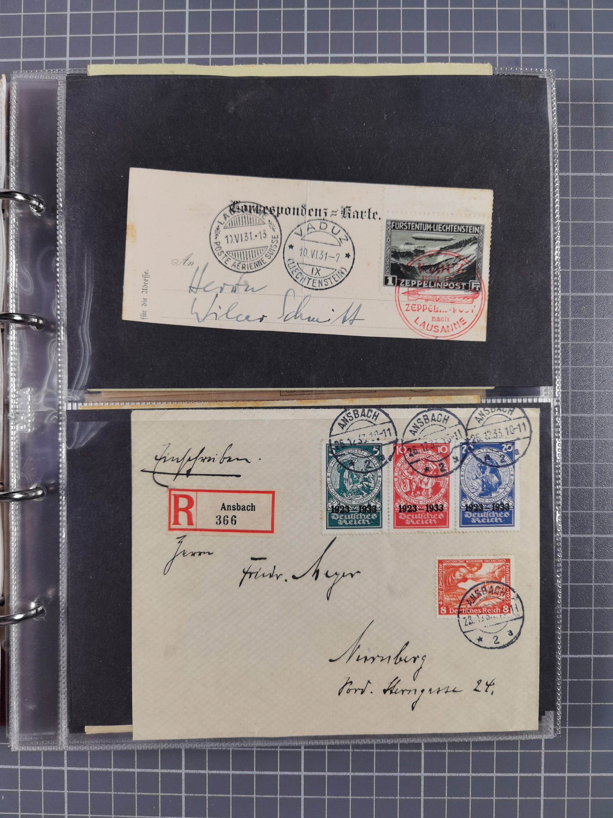 1928/48, über 40 Briefe, dabei u.a. Zeppelinpost mit Islandfahrt, Polarpost 1 M., Holztaube, Liechtenstein, etc., ferner Nothilfe Zusammendruck mit Zufrankatur von Ansbach nach Nürnberg, Berlin Mi.-Nr. 1-20 je auf Blanko-Briefen, Bezirkshandstempel, etc.