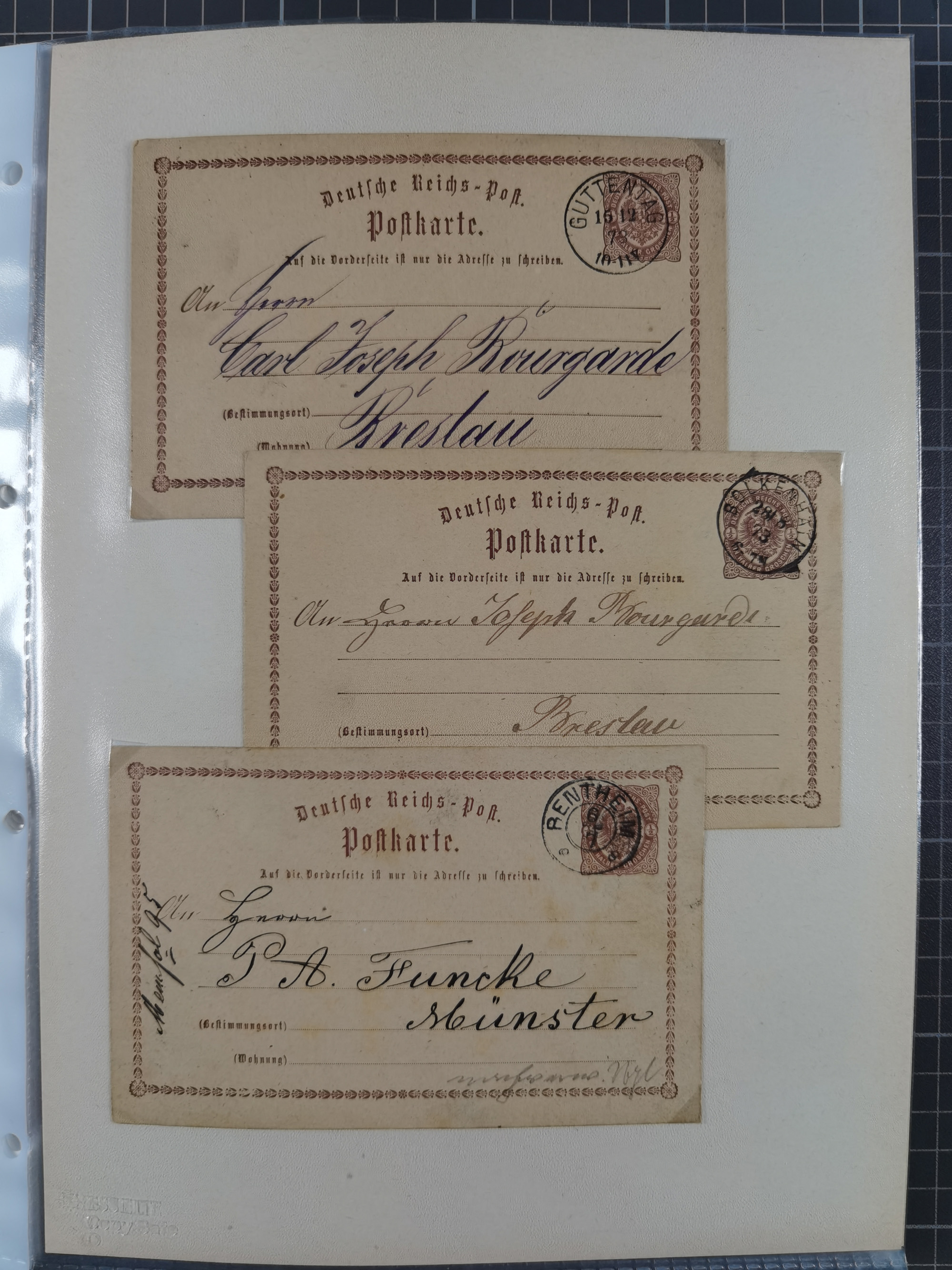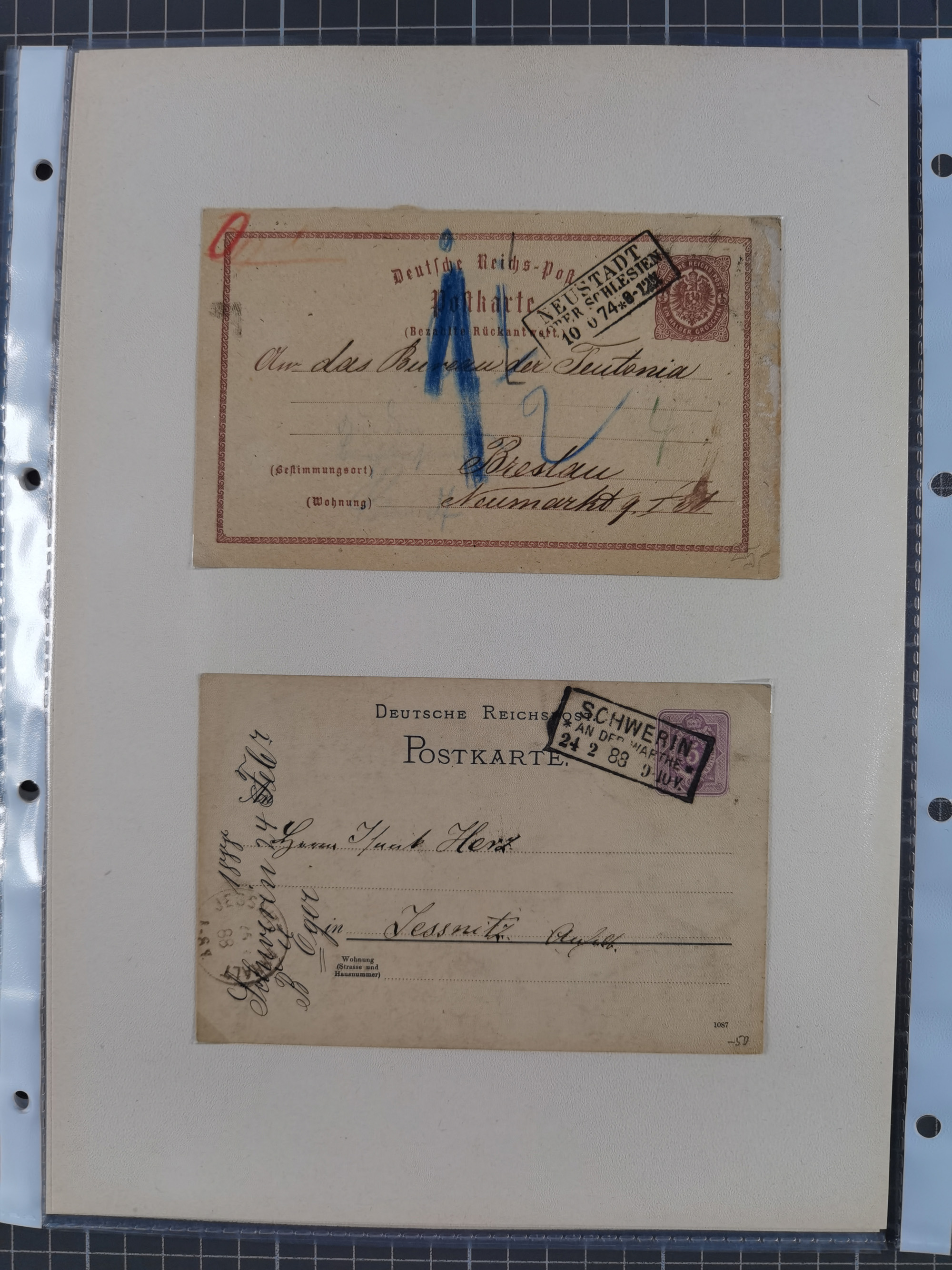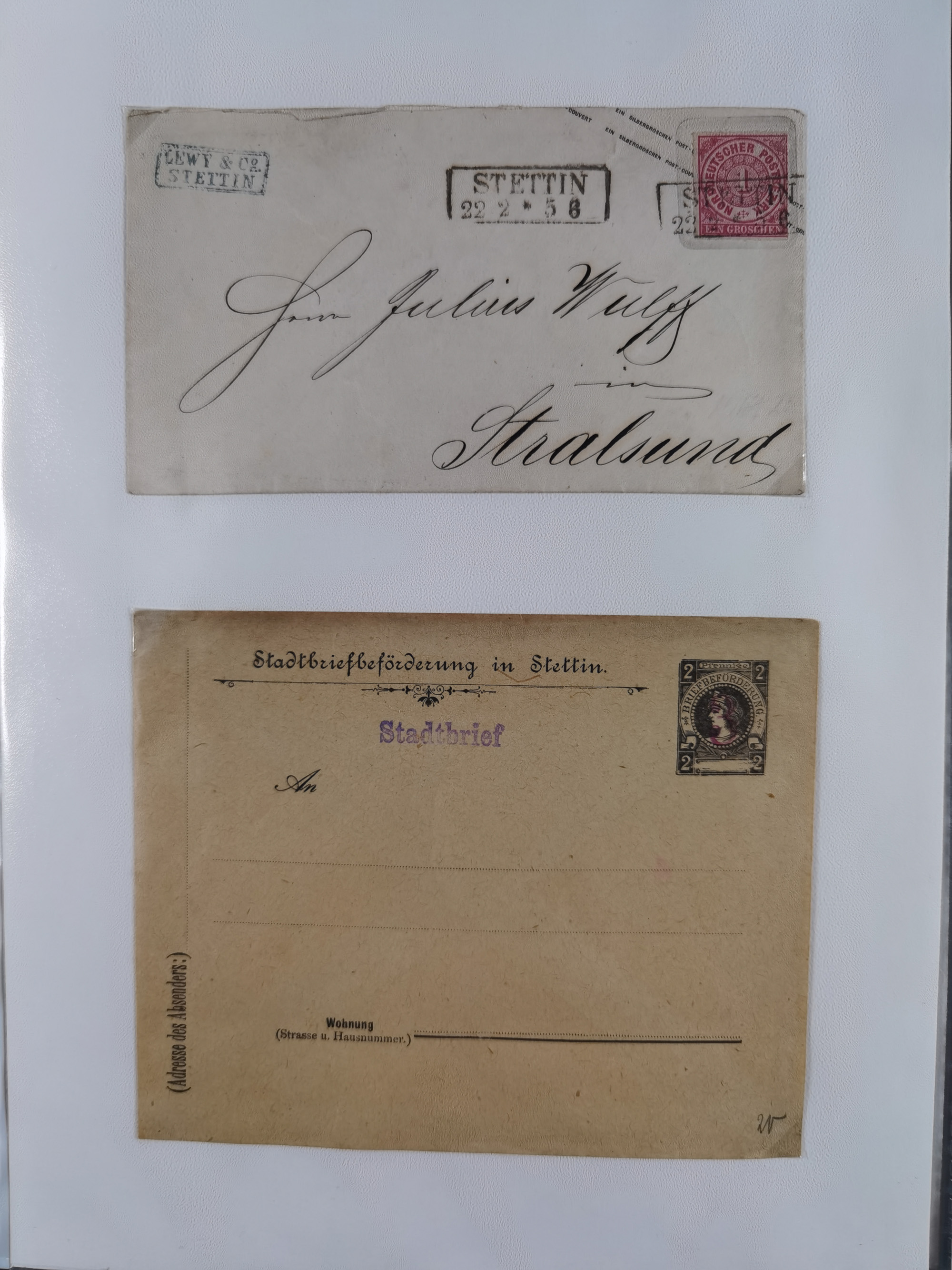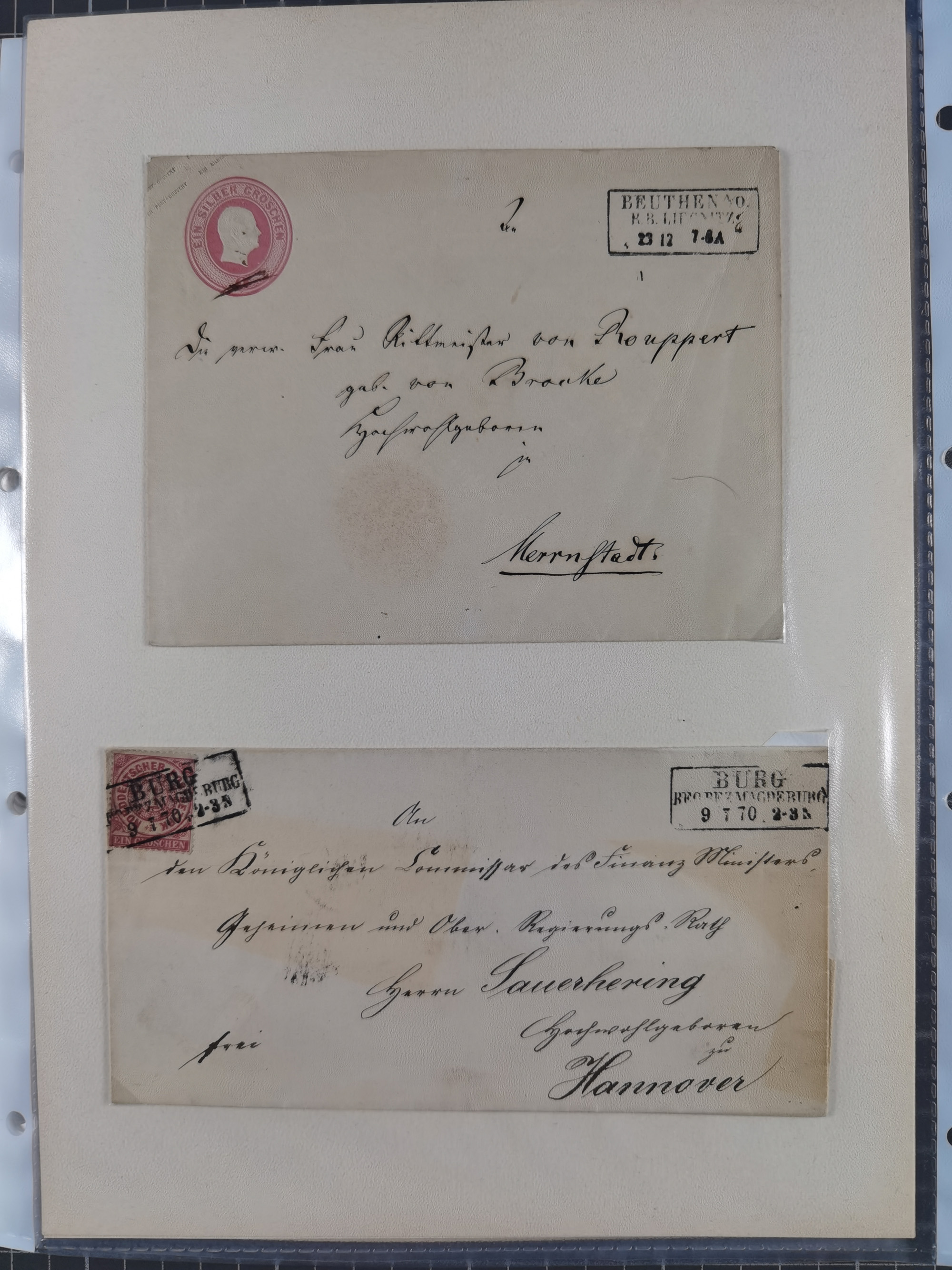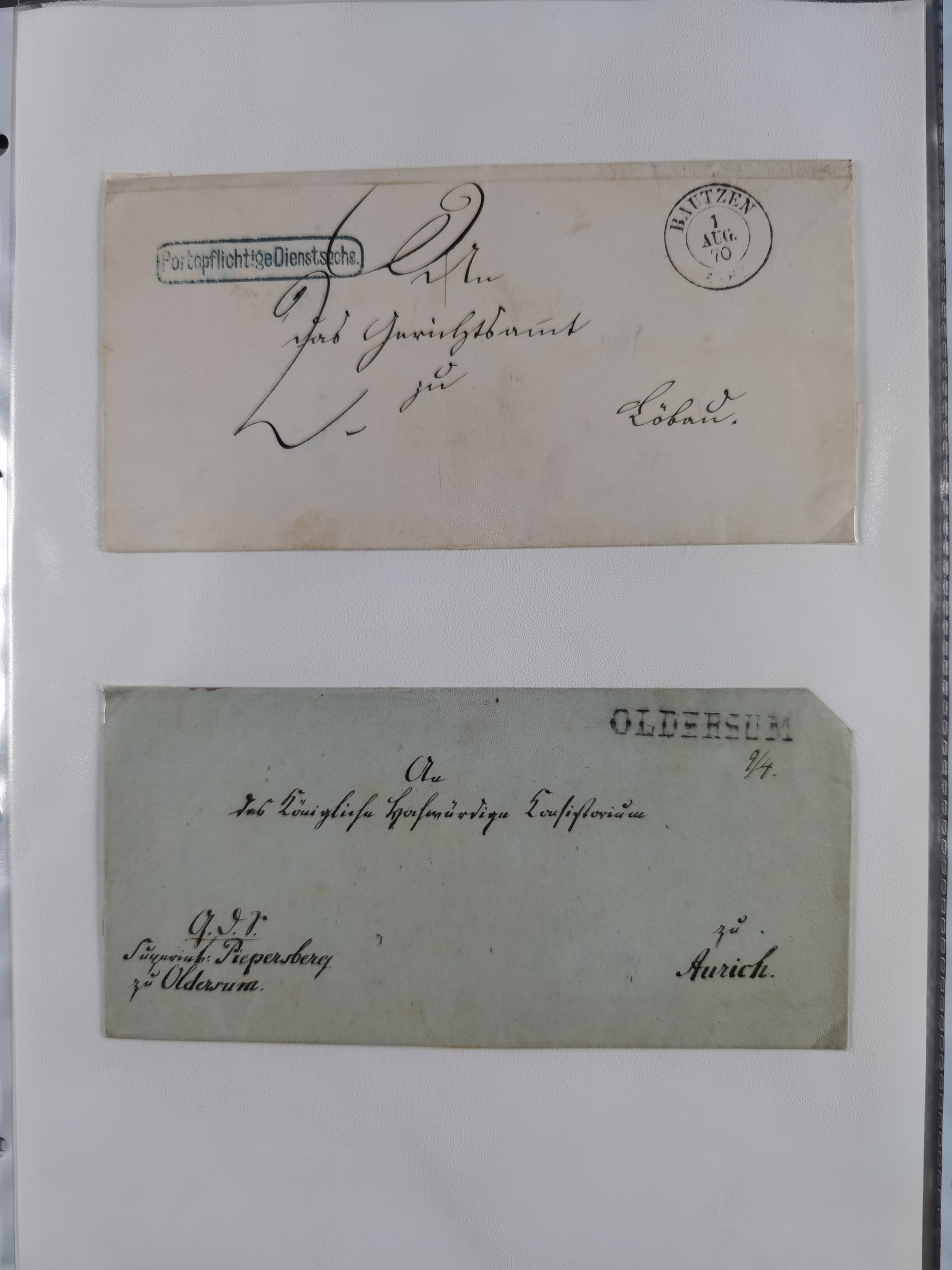 1875/45, umfangreiche Sammlung mit einigen hundert Briefen, Karten und Ganzsachen sowie einigen Briefstücken und losen Marken mit Stempeln aus Ostpreußen, Pommern, Posen, Schlesien und Sudetenland. Dabei R-Briefe, viele Stempel aus kleinen Orten, Bahnpost, Zensuren und weiteren Besonderheiten, sauber auf selbstgestalteten Albenseiten in 17 Alben