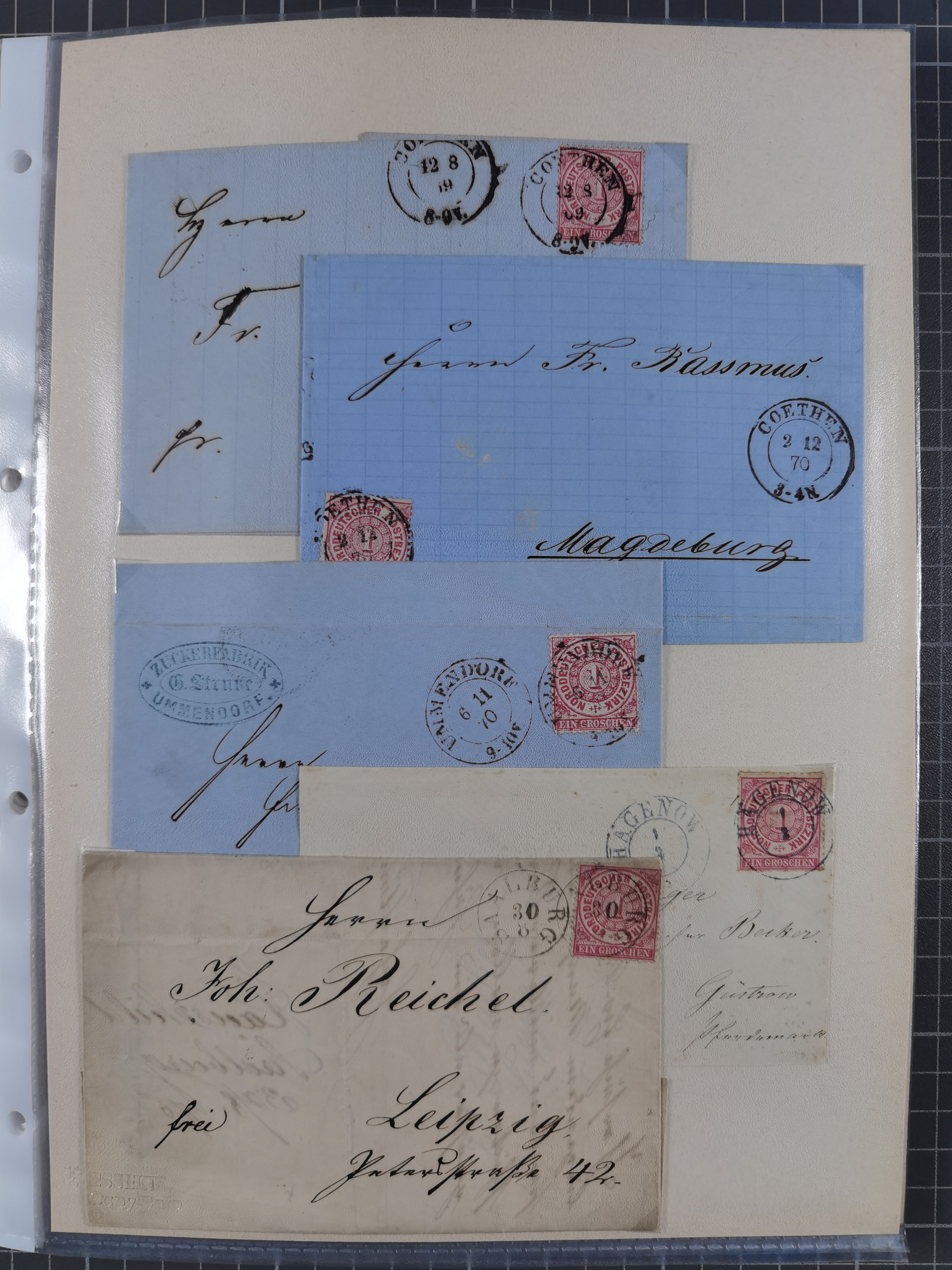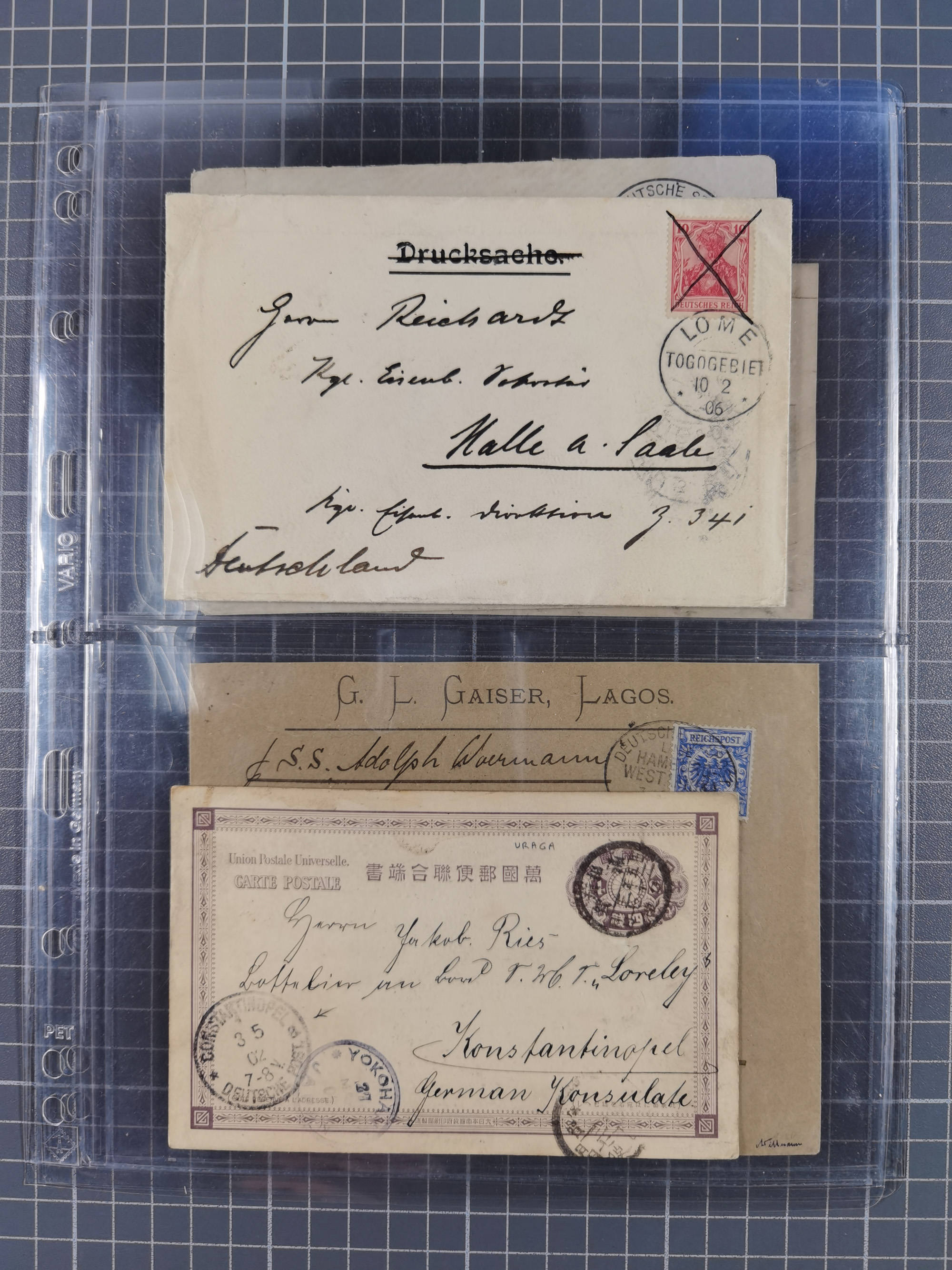 1845/1960 (ca.), interessanter Bestand inkl. etwas Ausland mit u.a. Dt. Kolonien mit interessanten Stempeln, Dt. Reich mit EF Mi.-Nr. 234 (FA Fleiner BPP), NDP mit u.a. MEF Mi.-Nr. 5 auf Brief in die USA und Dänisch-Westindien Halbierung auf Brief an die SMS. Panther mit vorderseitigem MSP-Stempel. Die Erhaltung ist zum Teil fehlerhaft, meist aber in guter Gesamterhaltung