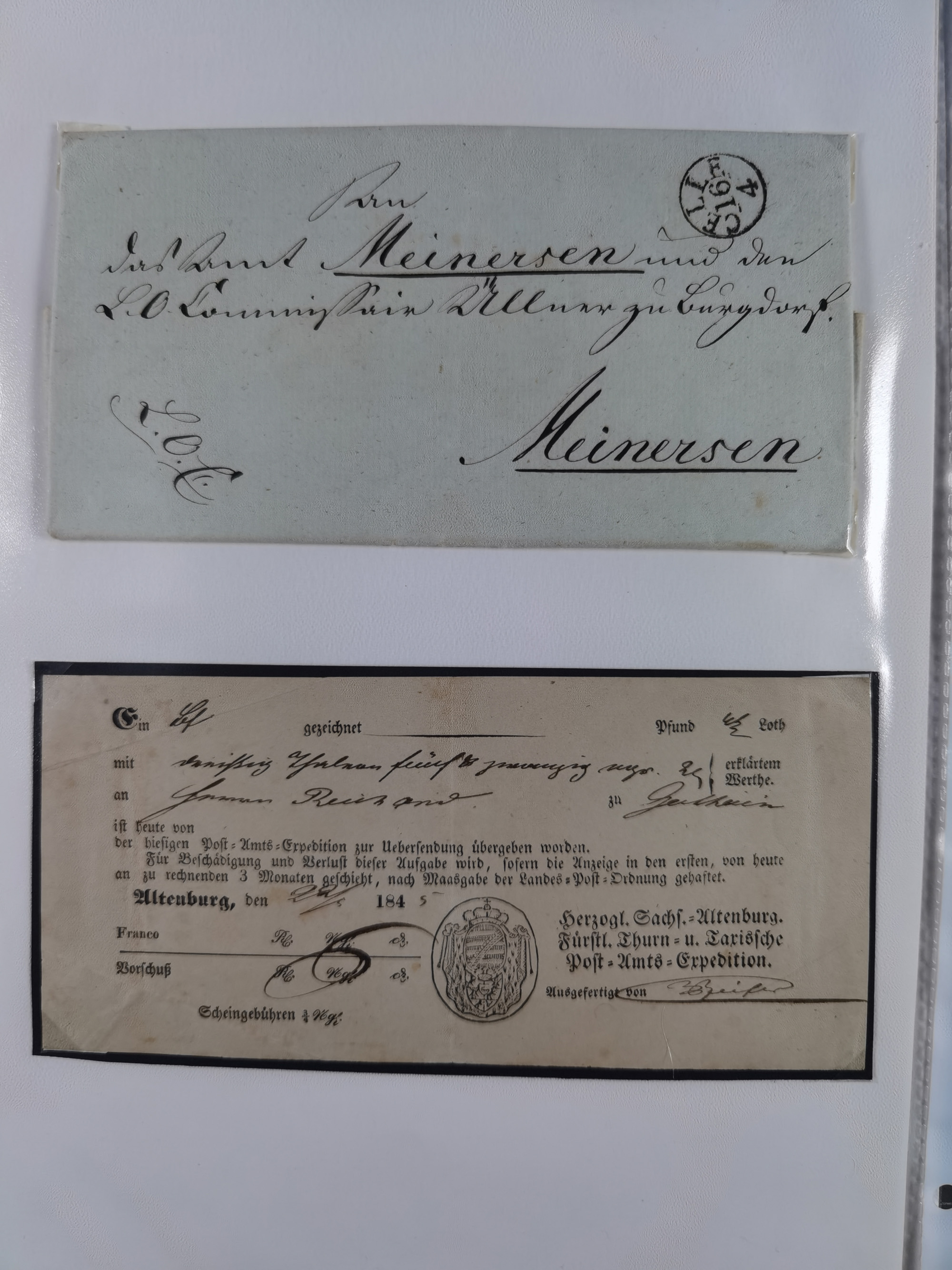 1689/1945, Briefeposten ab Dokumente mit Leipziger Volkszeitung 1689, Gesetz-Sammlung Hannover 1842, Altbrief Steueramt Saarburg, Katasterdokumente Münzingen, Brustschild-Frankaturen, Wertbrief-vs. Berlin 1867, Briefe 3.Reich, Telegramme DR.