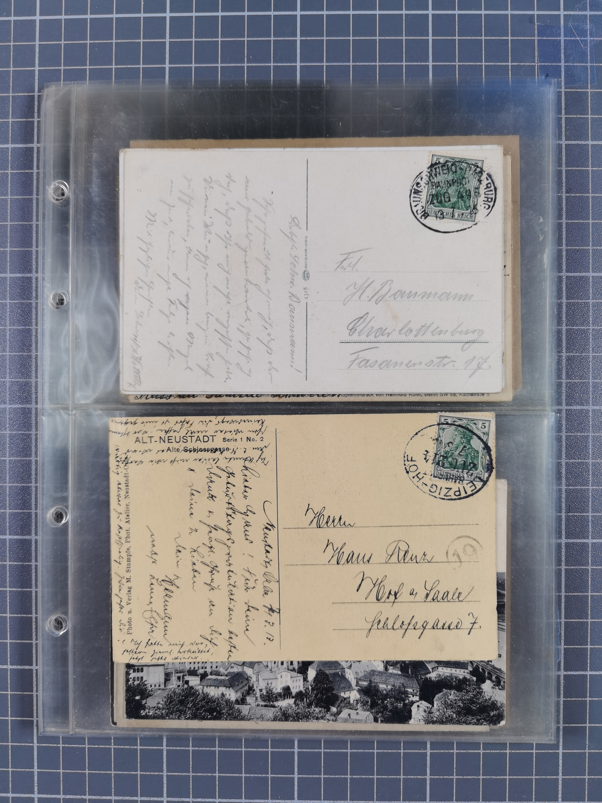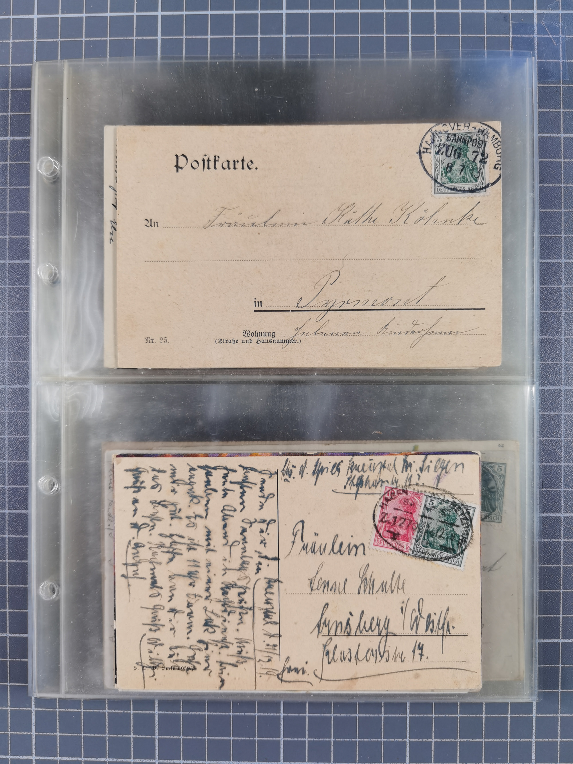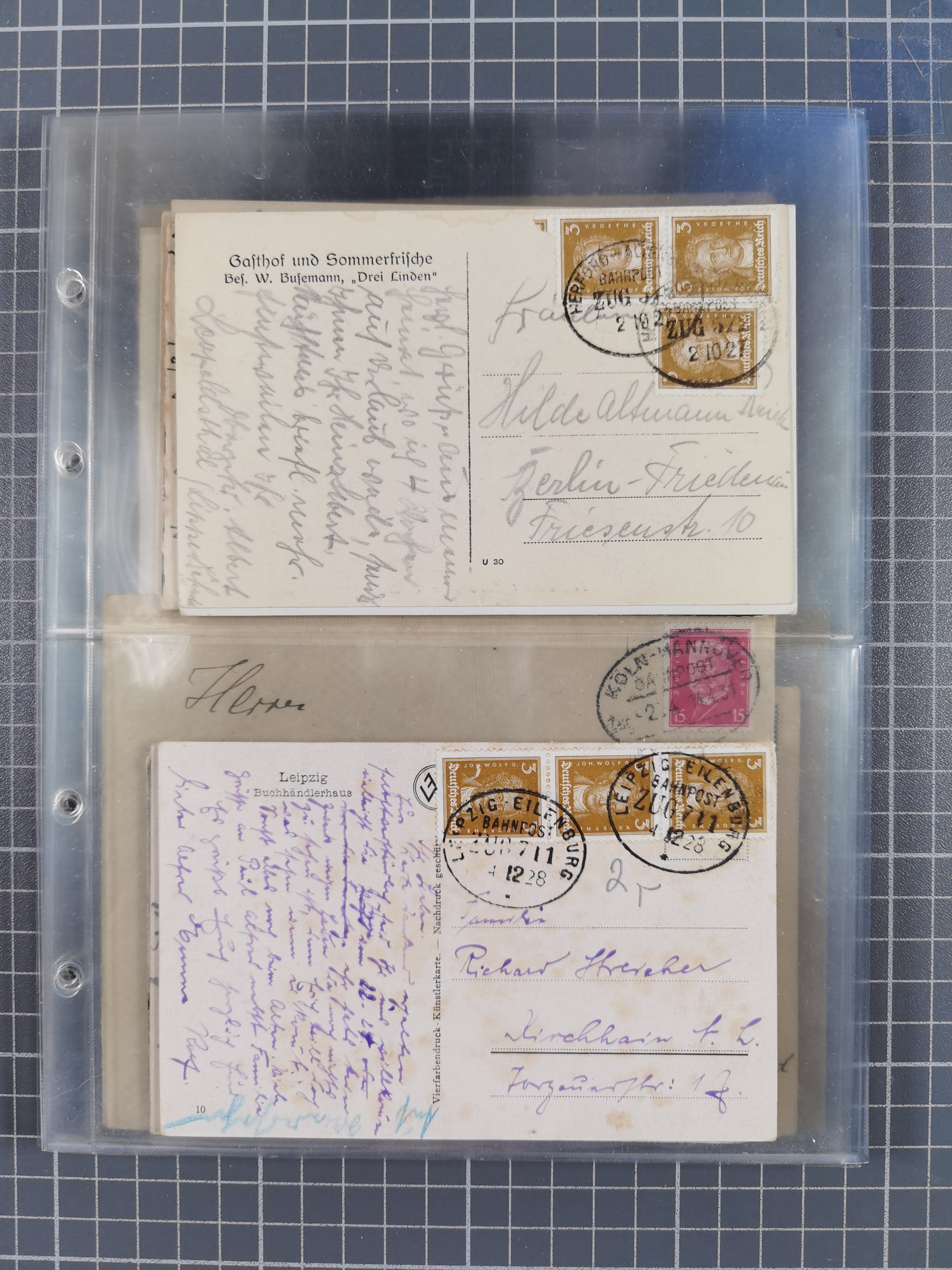1872/1945 (ca.), etliche hundert Briefe und Karten, jedes Stück vom Sammler mit Mi.-Nr.- und -Bewertung versehen, in Plastikhüllen, dabei Sondermarken- und Zusammendruckfrankaturen, Einschreiben, Eilboten, EF und MeF, Auslands-Paketkarten, etc., im großen Karton.
