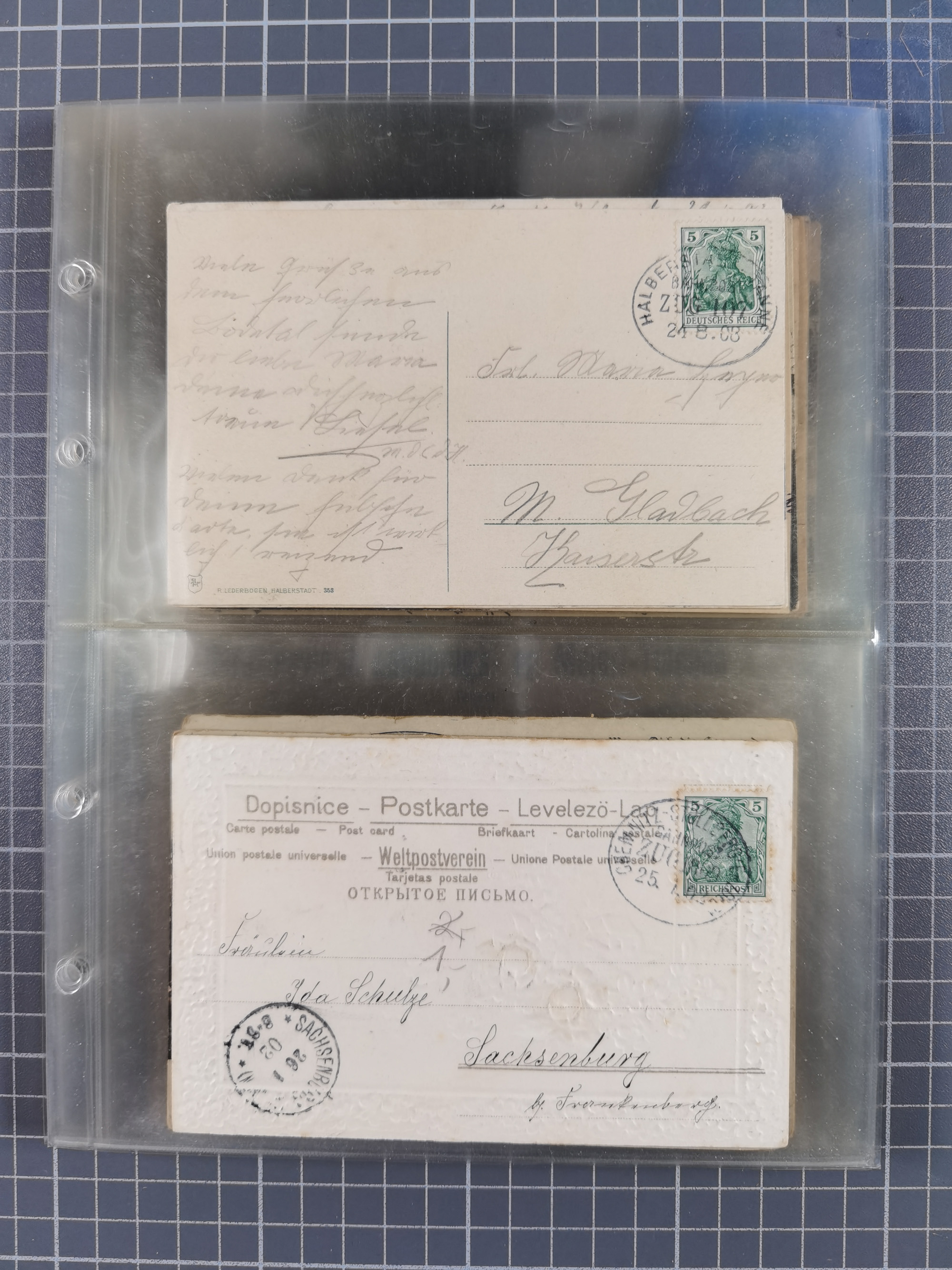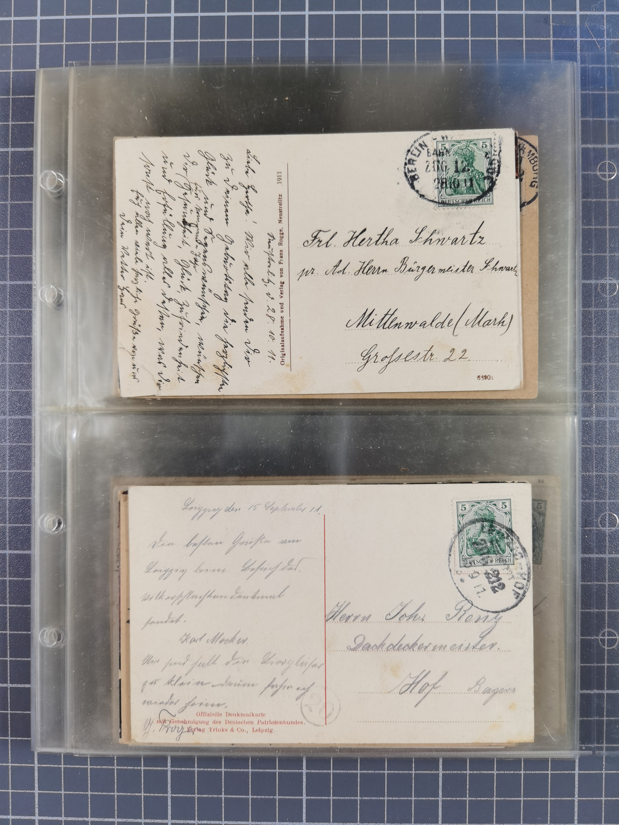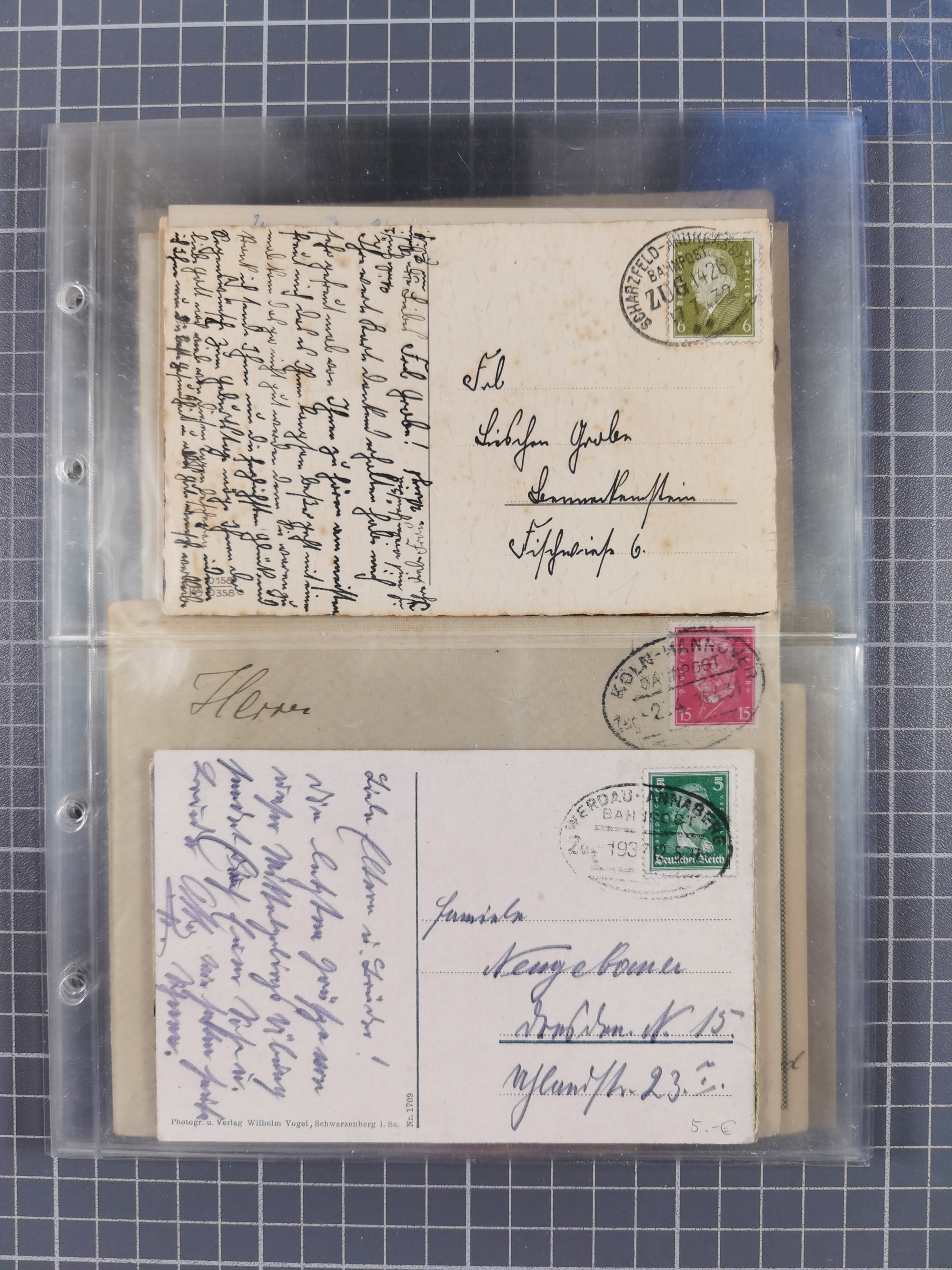 1872/1945 (ca.), etliche hundert Briefe und Karten, jedes Stück vom Sammler mit Mi.-Nr.- und -Bewertung versehen, in Plastikhüllen, dabei Sondermarken- und Zusammendruckfrankaturen, Einschreiben, Eilboten, EF und MeF, Auslands-Paketkarten, etc., im großen Karton.