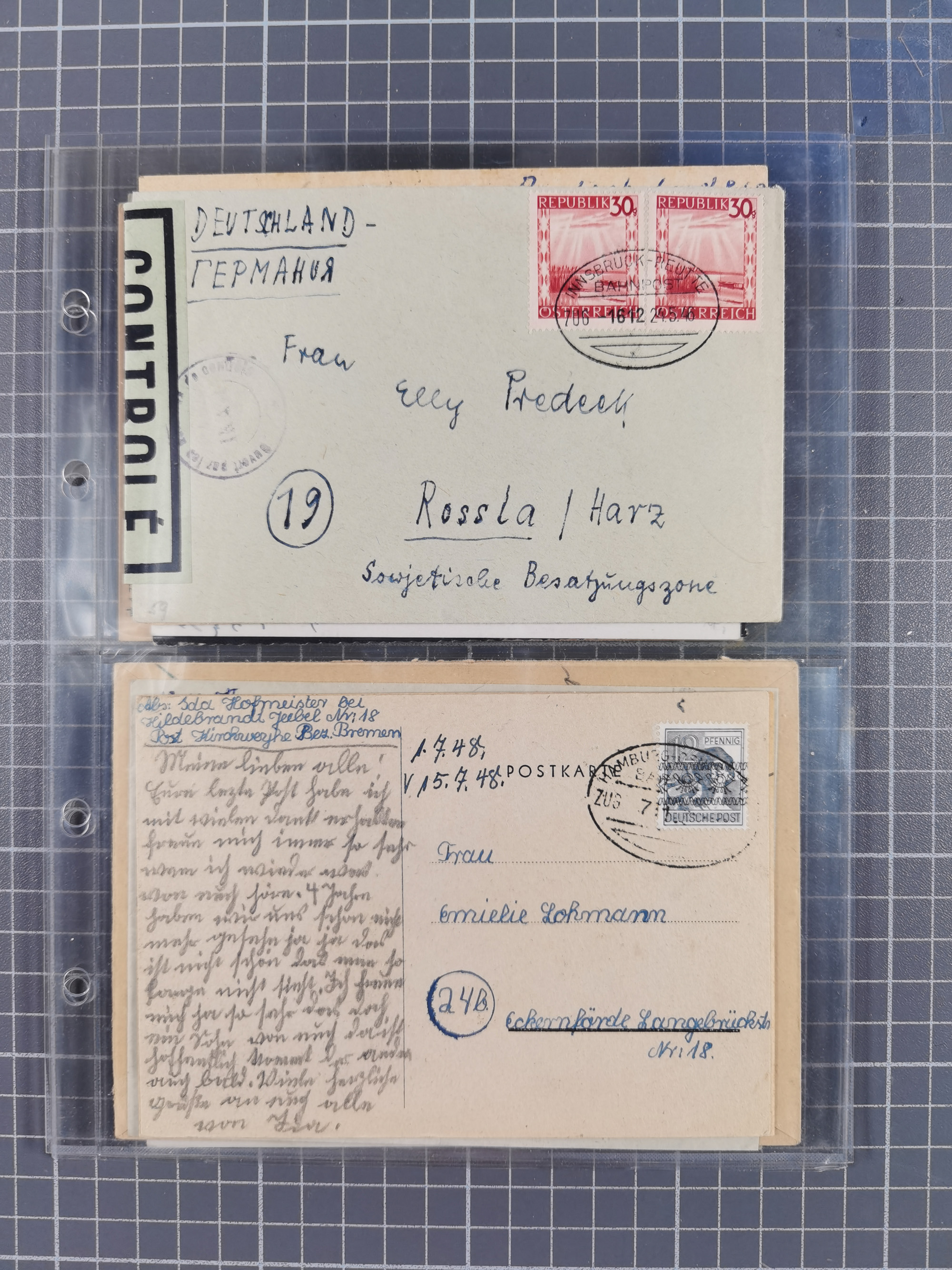 1888/1948 (ca.), “Zensurpost”, Partie mit über 85 Briefe und Karten, Schwerpunkt Alliierte Besetzung, dabei bessere Zensur-Stempeltypen inkl. Sowjet, interessante Frankaturen und weiteren Besonderheiten, dazu einige ausländische Briefe