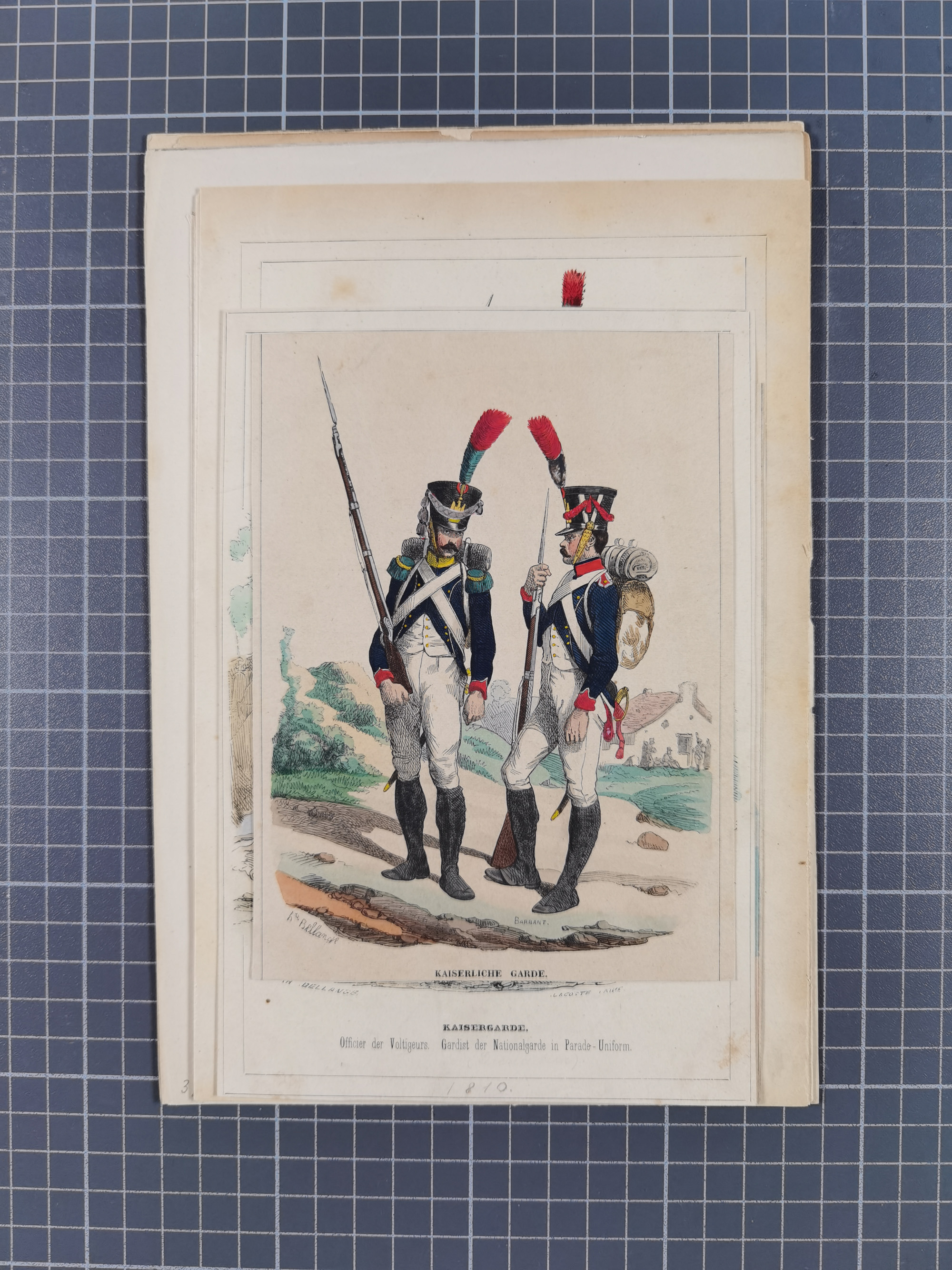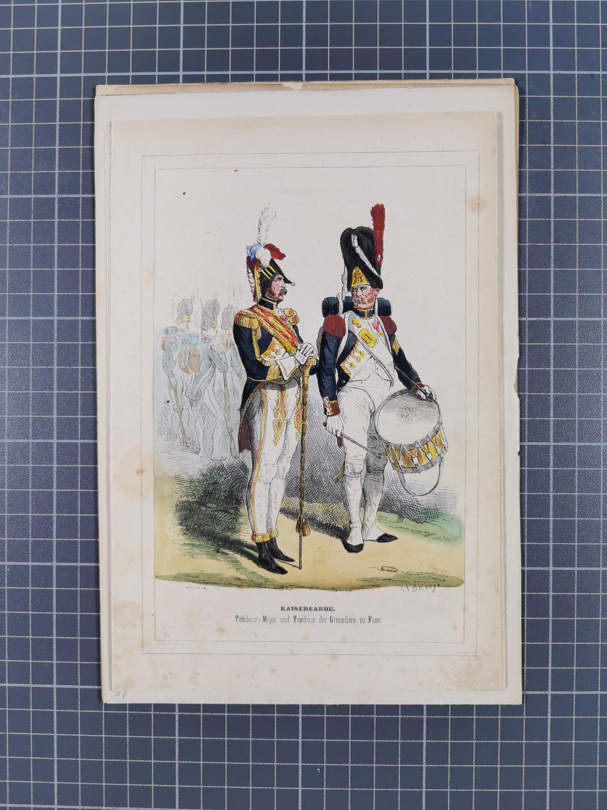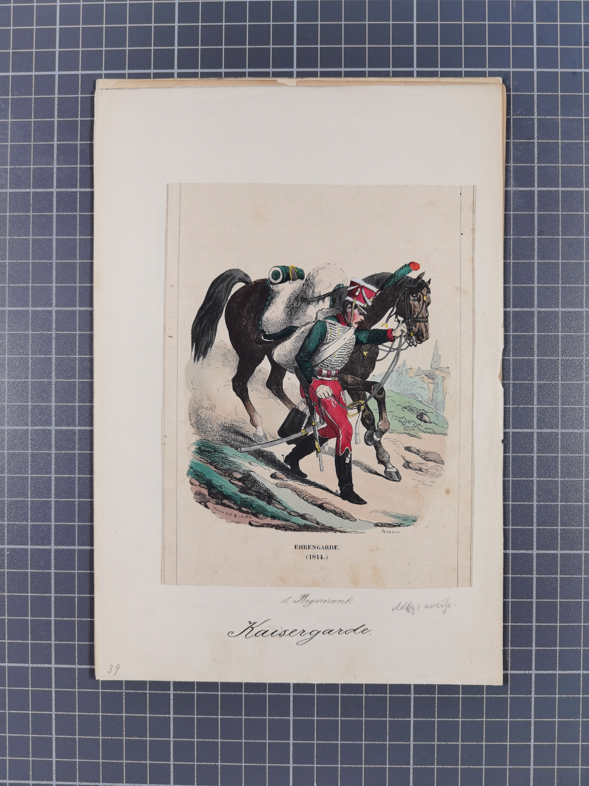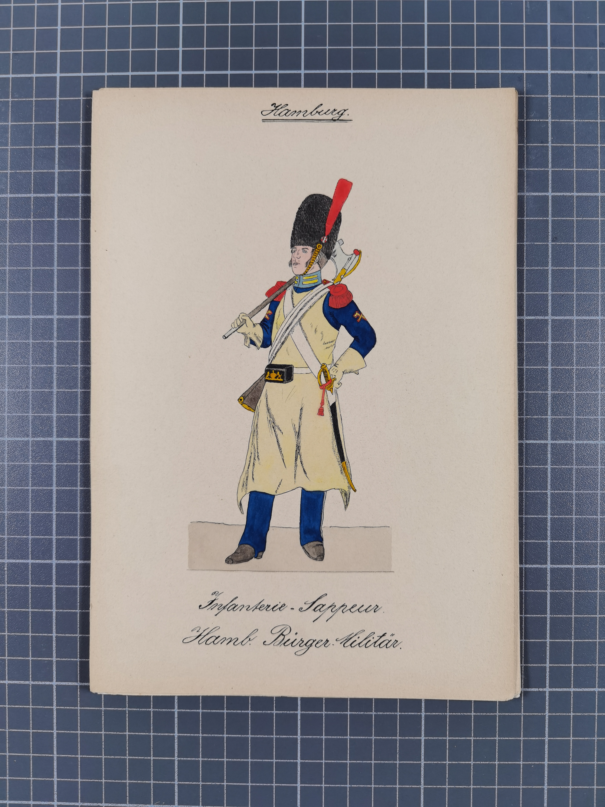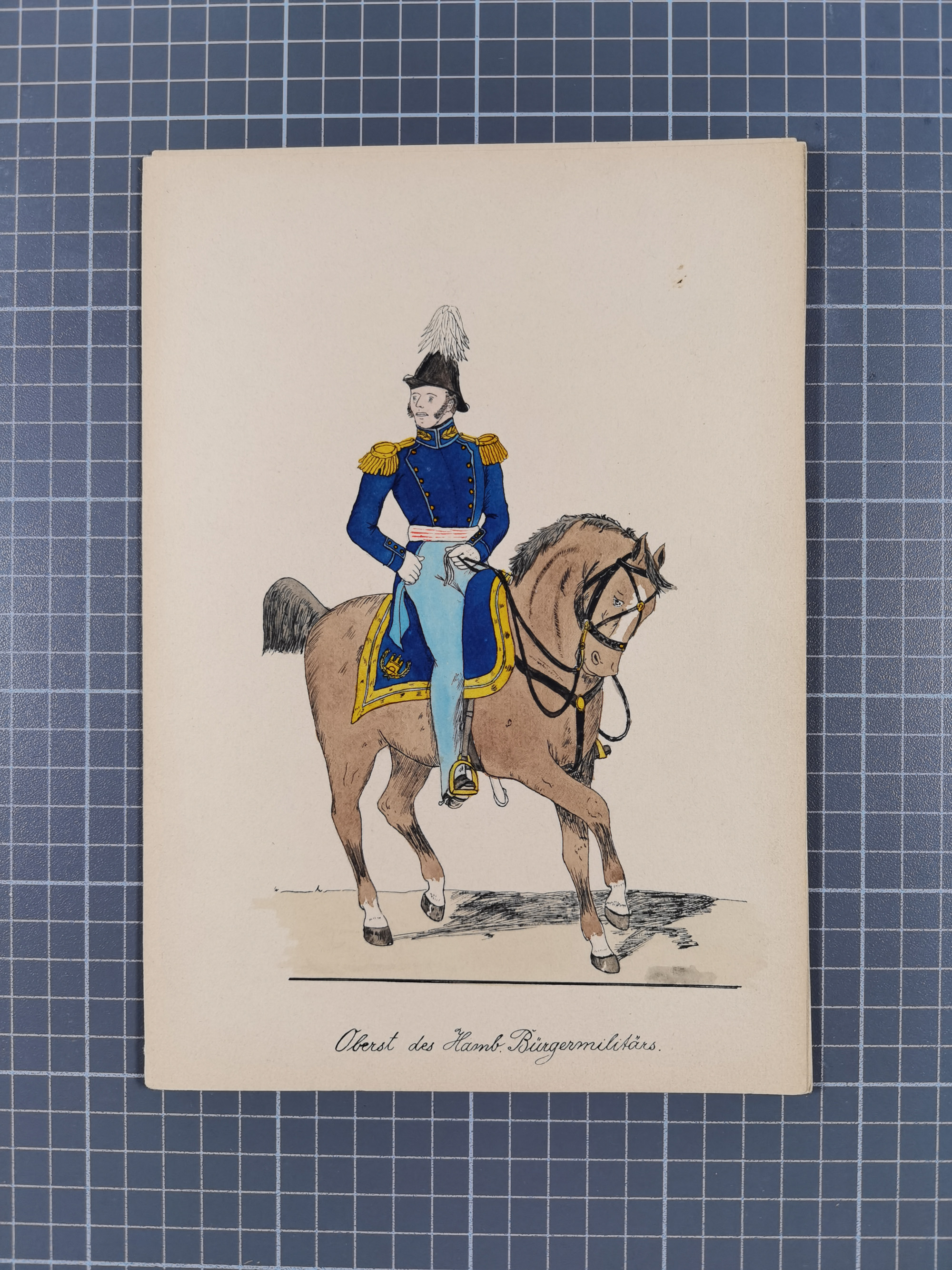 1820/90(ca.), 19. Jahrhundert, 47 Lithografien und Tuschzeichnungen von Militärs und Uniformen, dabei Preußische, Sächsische und Französische Armee (Kaiserl. Garde) sowie das Hamburger Bundes-Kontingent