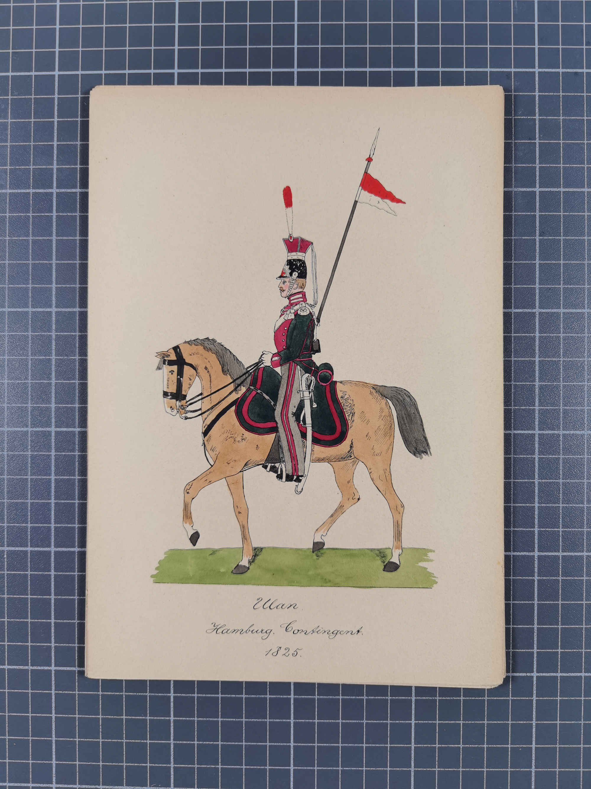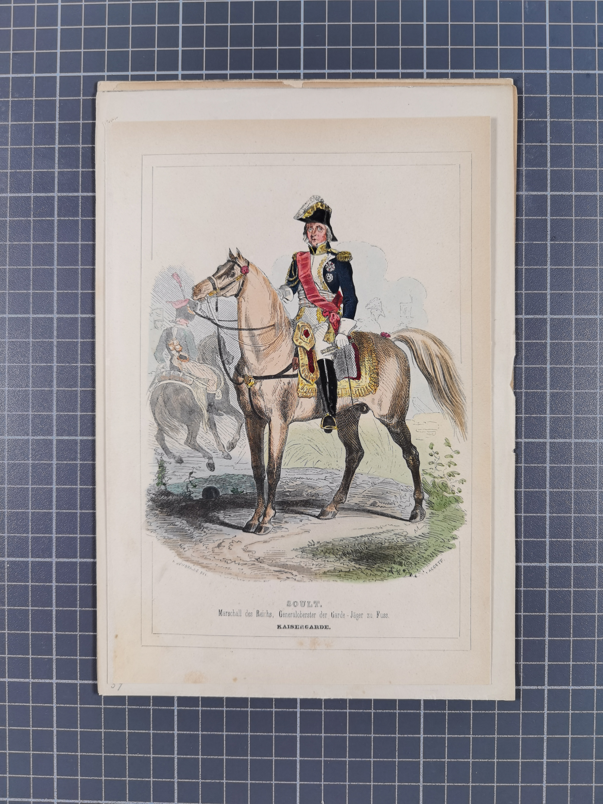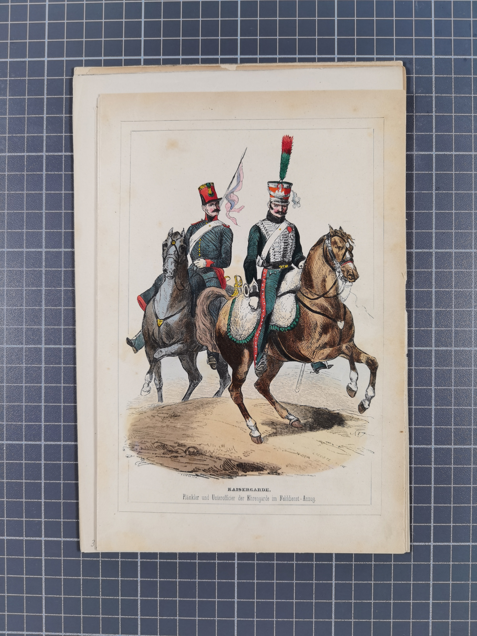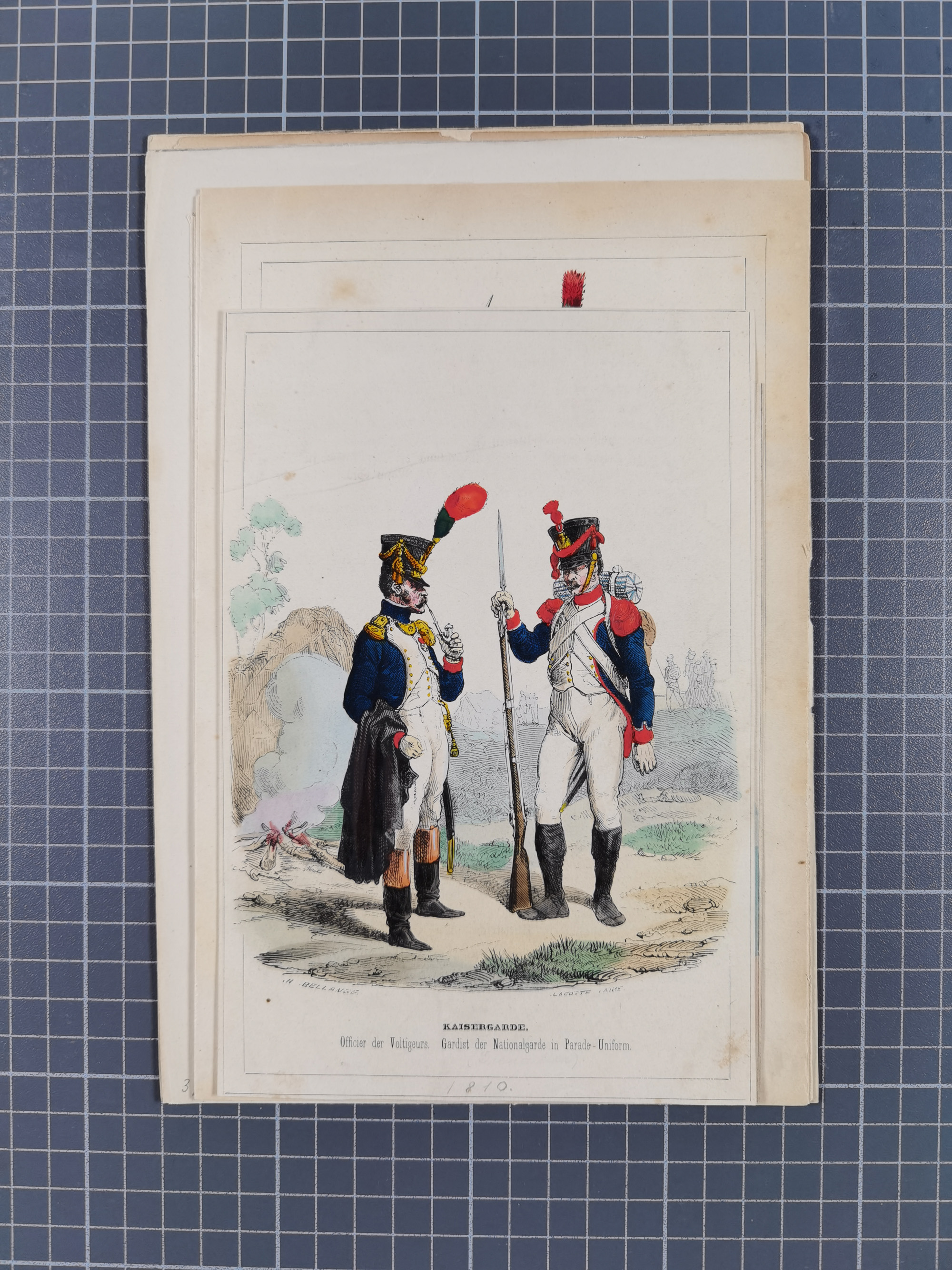 1820/90(ca.), 19. Jahrhundert, 47 Lithografien und Tuschzeichnungen von Militärs und Uniformen, dabei Preußische, Sächsische und Französische Armee (Kaiserl. Garde) sowie das Hamburger Bundes-Kontingent