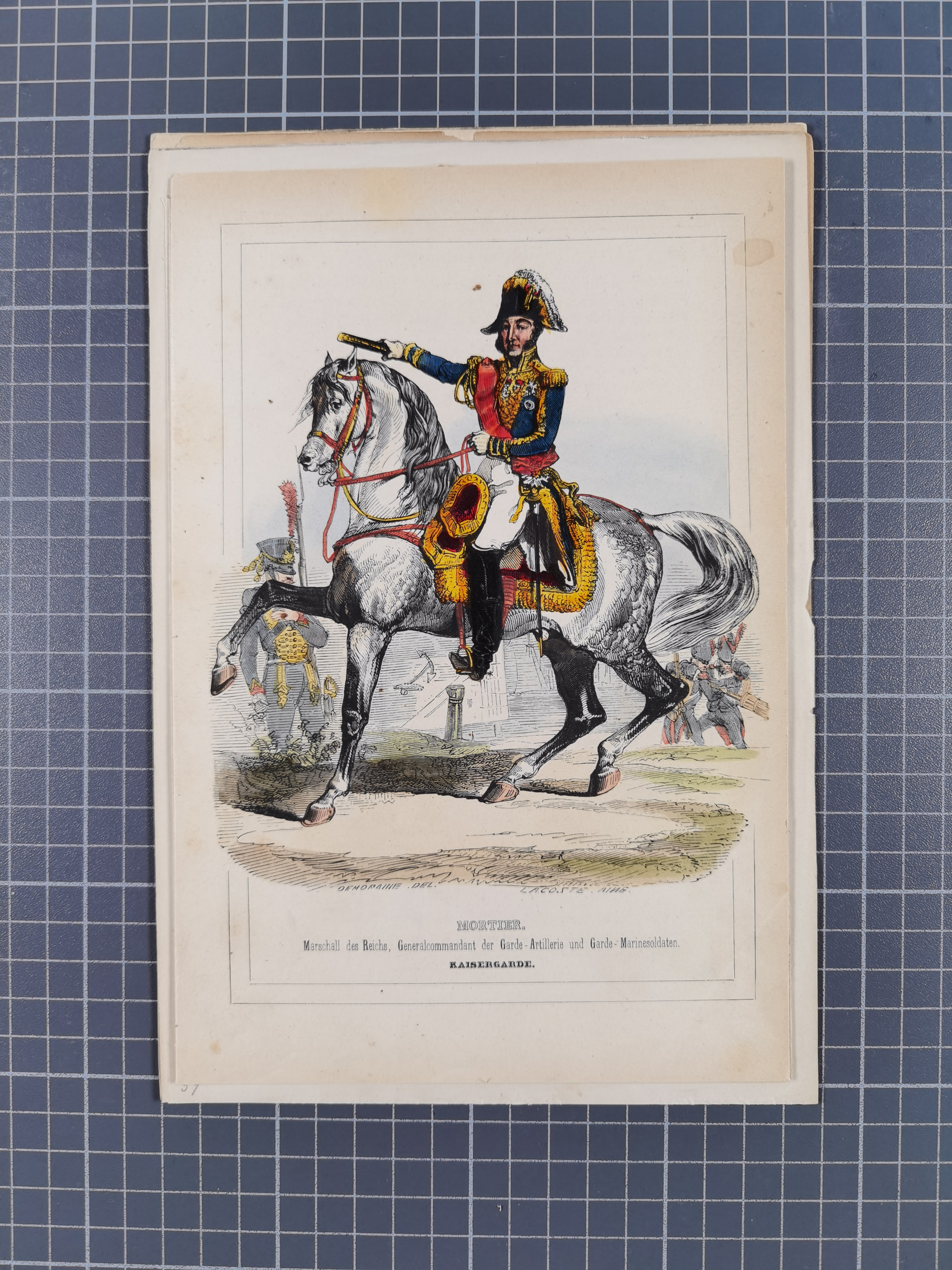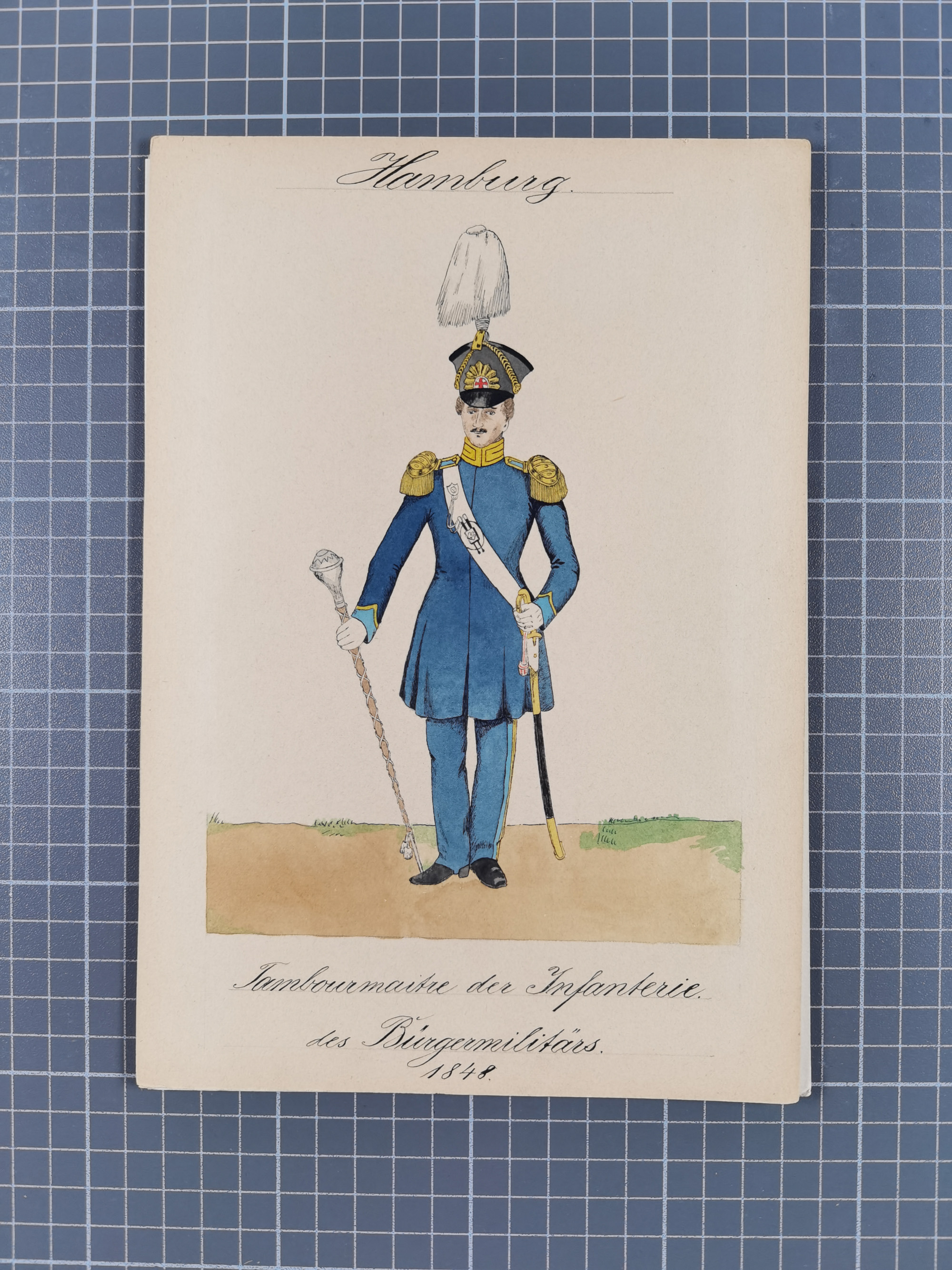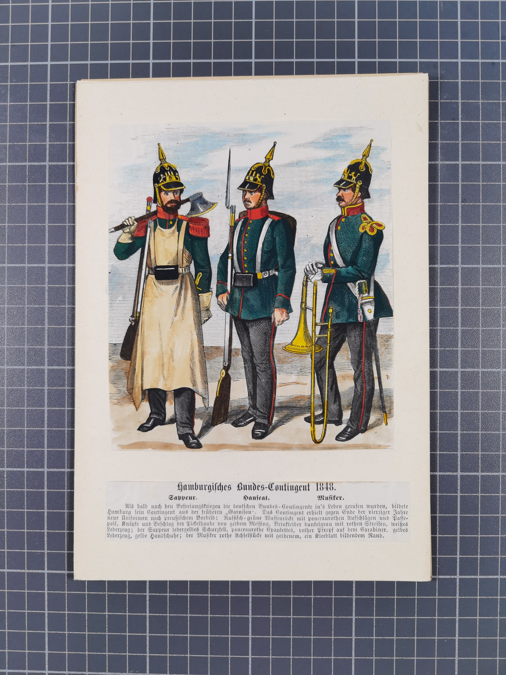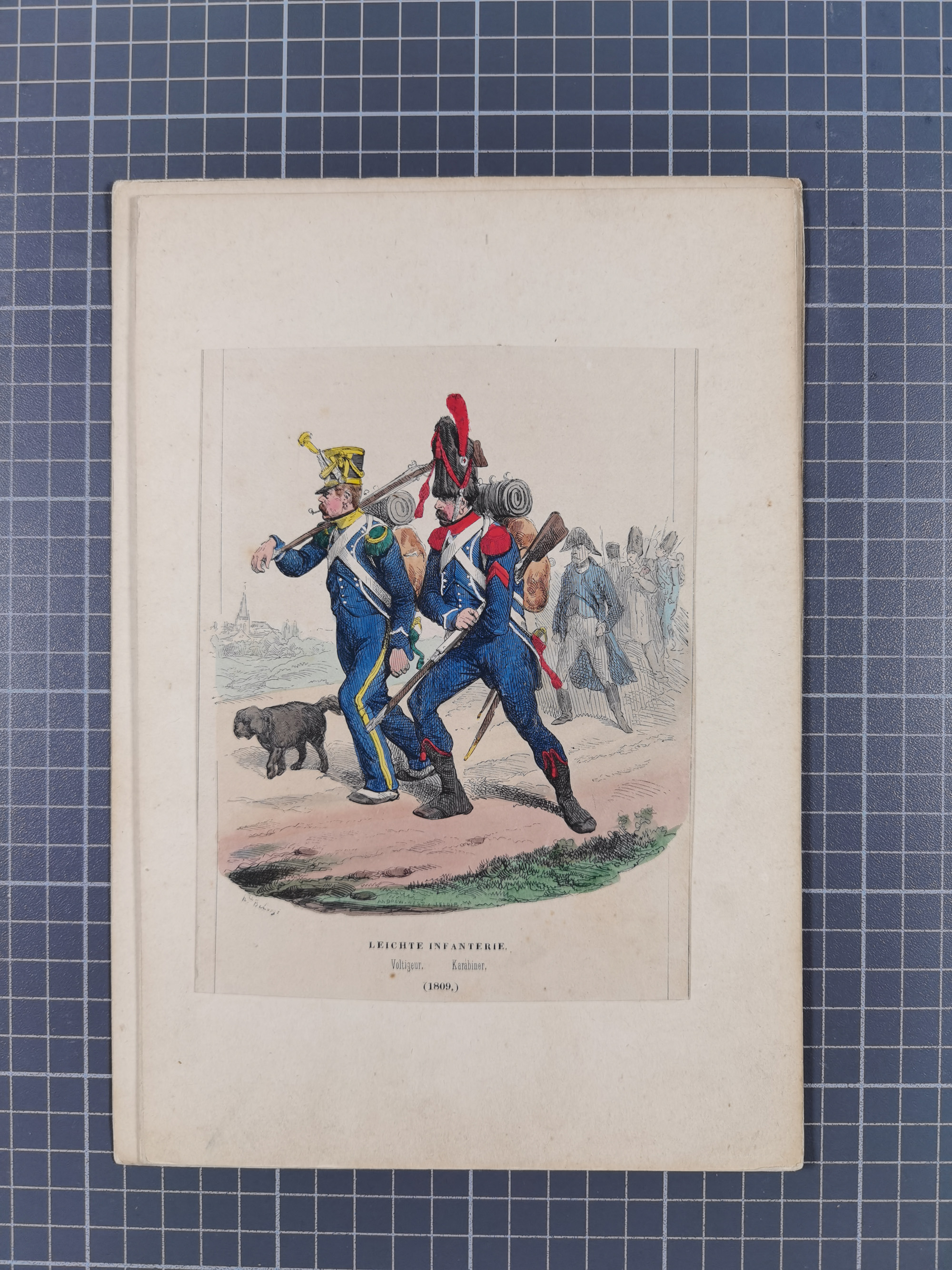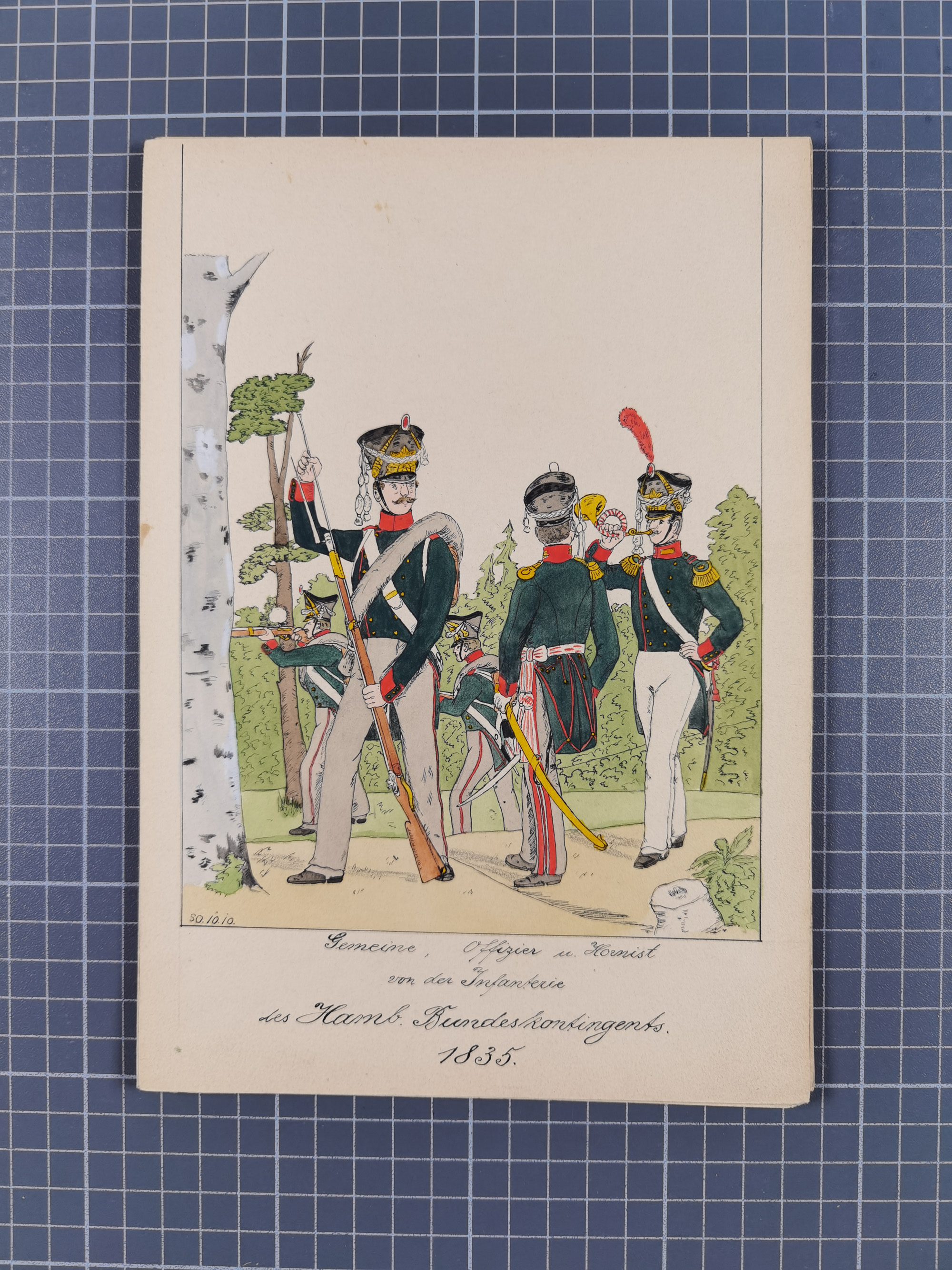 1820/90(ca.), 19. Jahrhundert, 47 Lithografien und Tuschzeichnungen von Militärs und Uniformen, dabei Preußische, Sächsische und Französische Armee (Kaiserl. Garde) sowie das Hamburger Bundes-Kontingent
