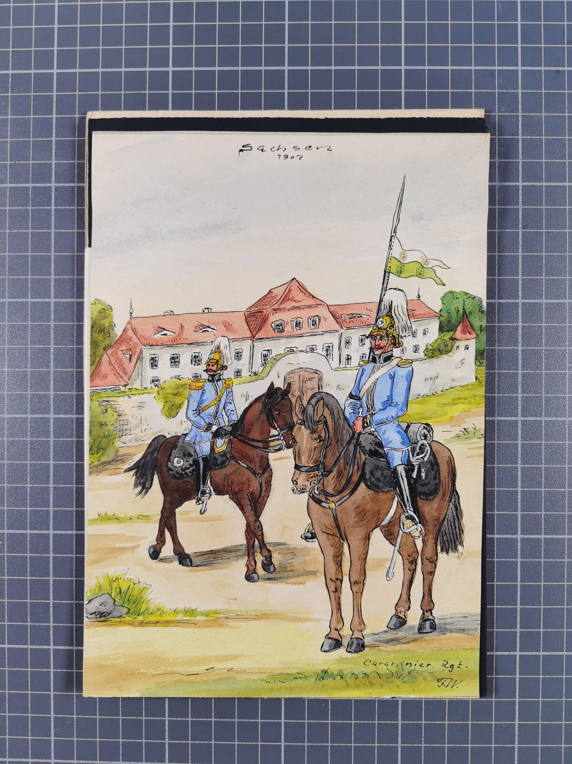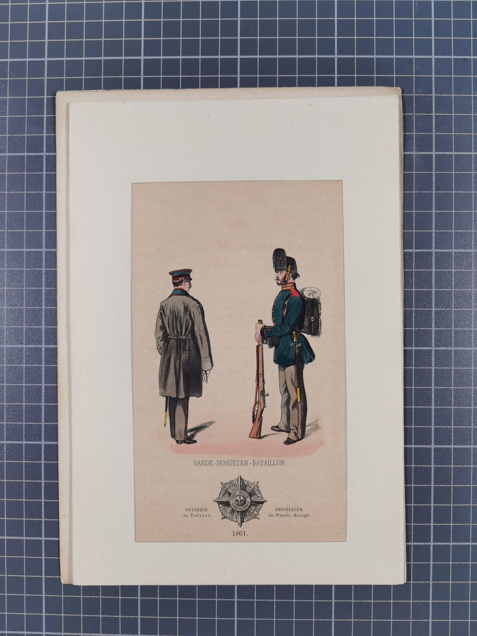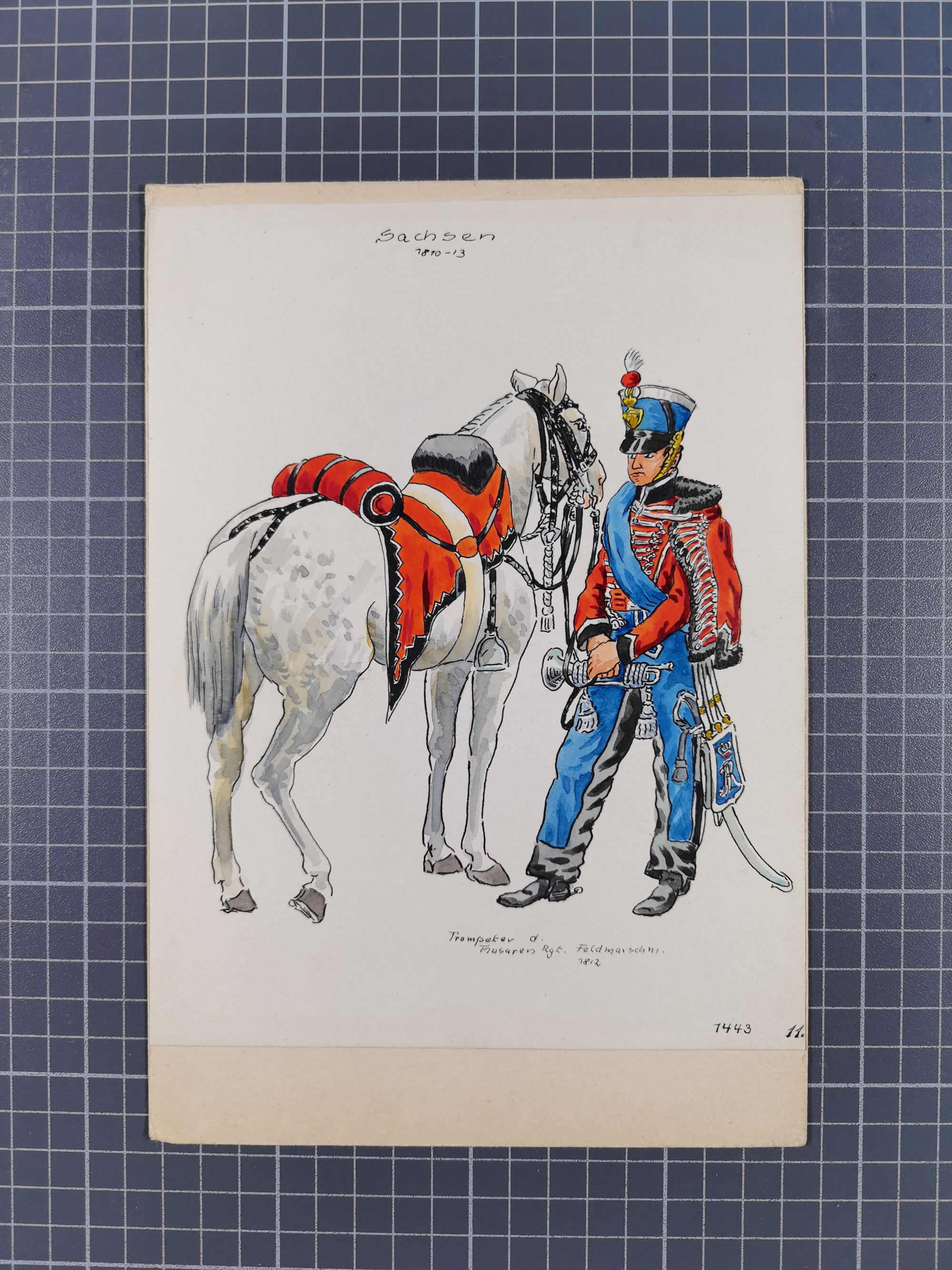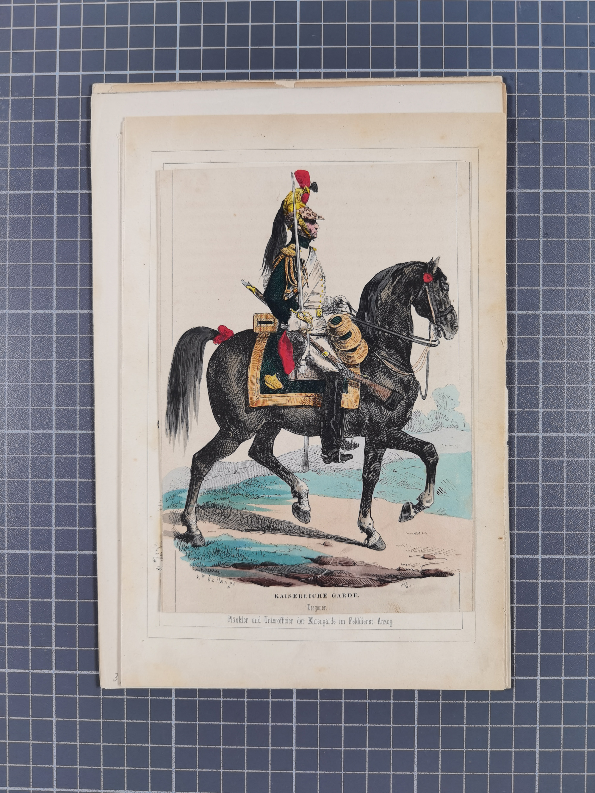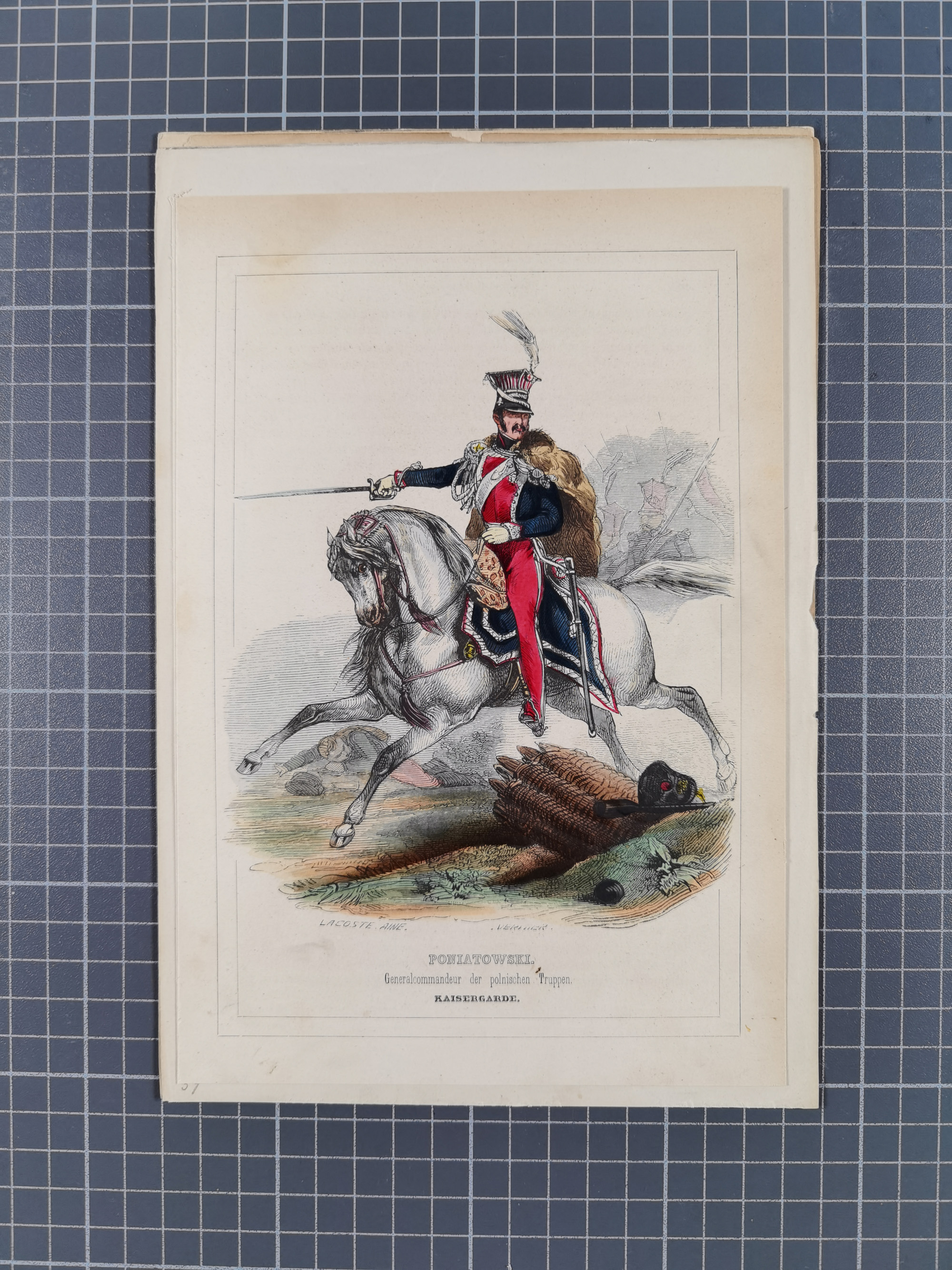 1820/90(ca.), 19. Jahrhundert, 47 Lithografien und Tuschzeichnungen von Militärs und Uniformen, dabei Preußische, Sächsische und Französische Armee (Kaiserl. Garde) sowie das Hamburger Bundes-Kontingent