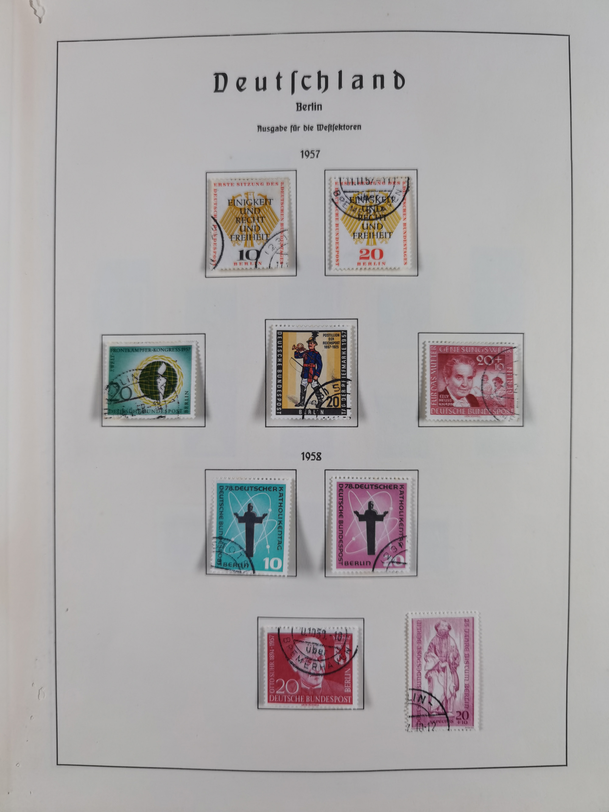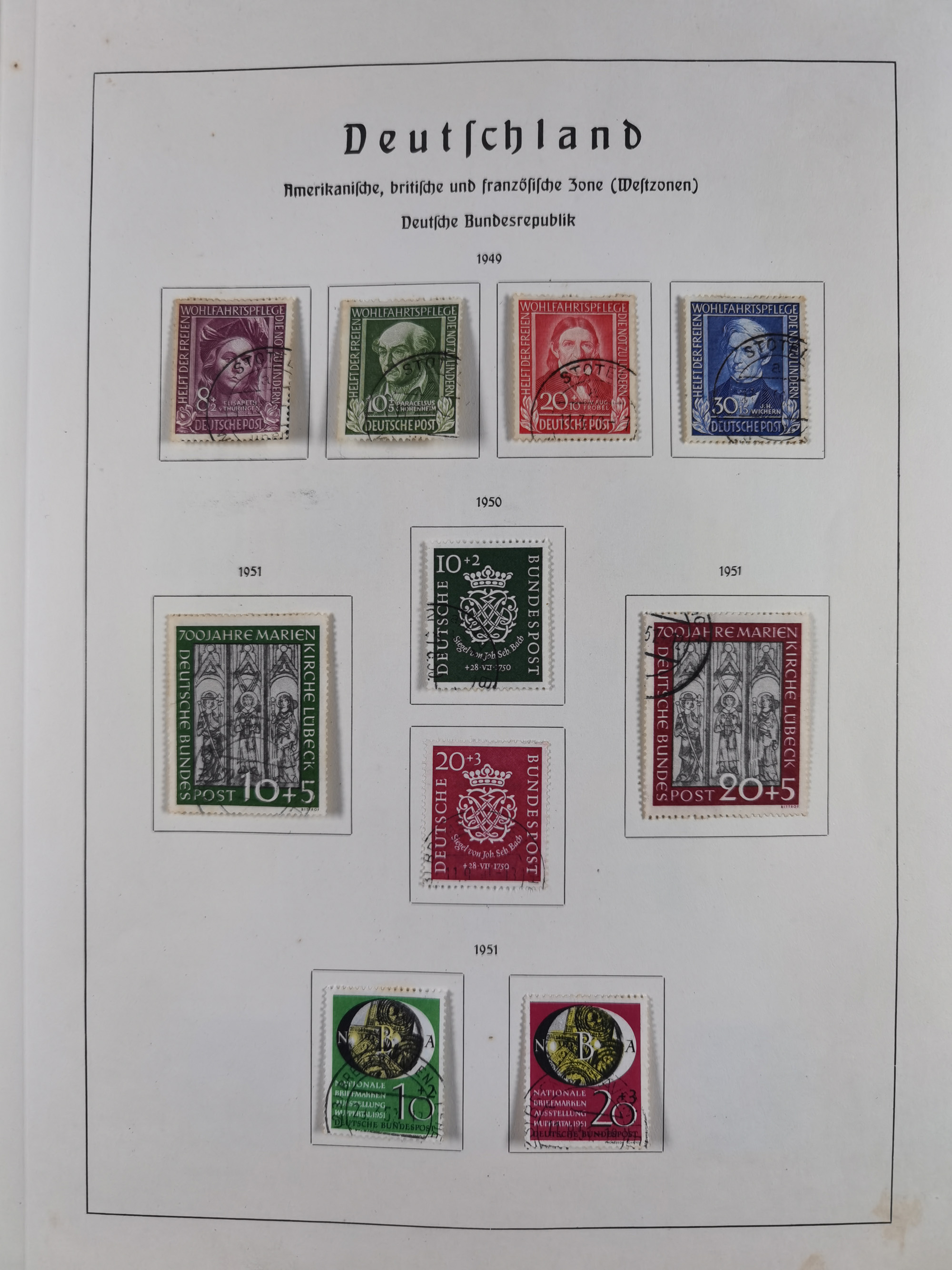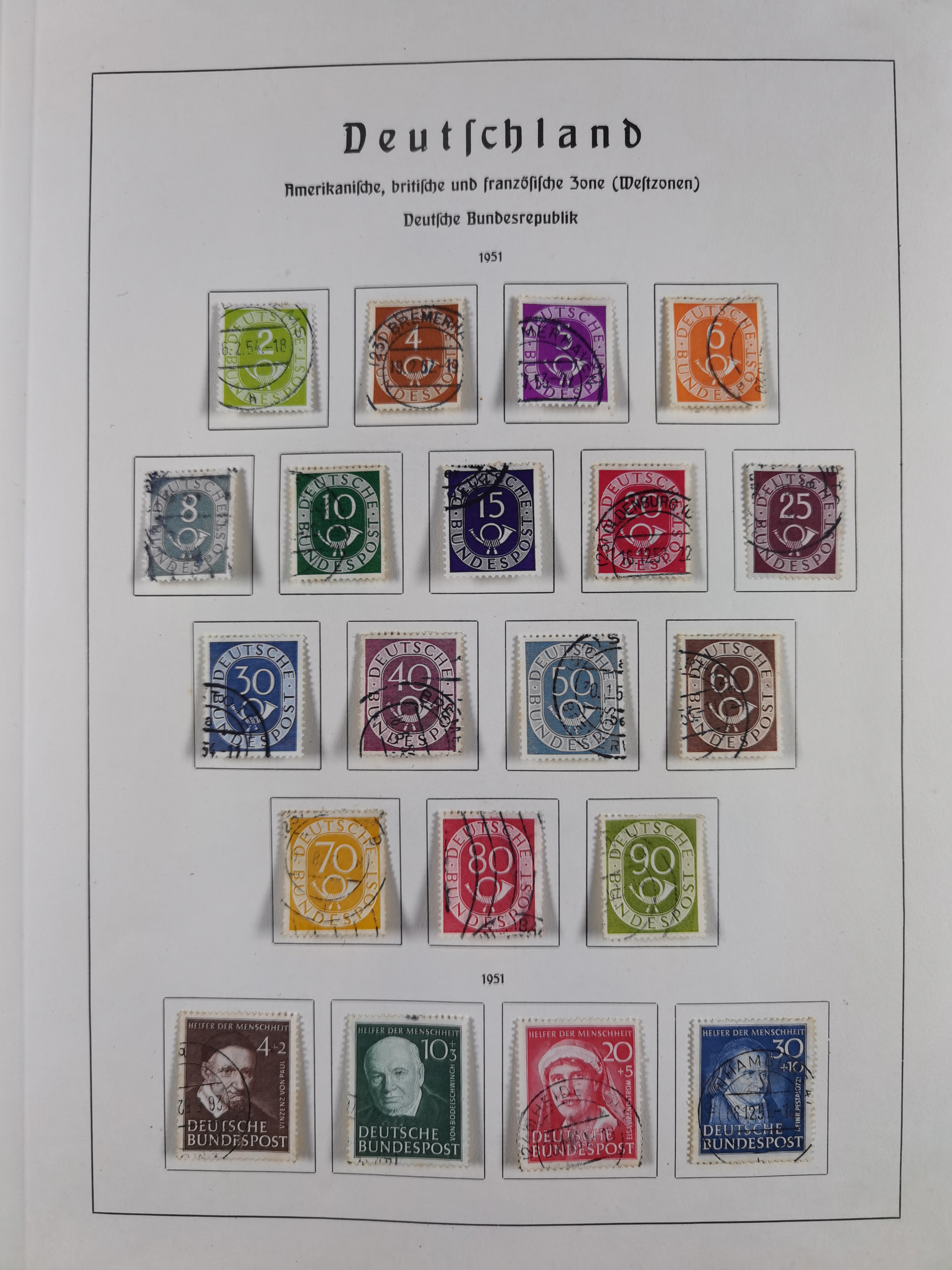 1945/72, meist ungebrauchte und gestempelte Sammlung Zonen ink. Saar, Bund mit gestempelten Heuss-Zusammendrucken, Berlin mit Stephansatz und DDR Block 8-9B, im Vordruckalbum