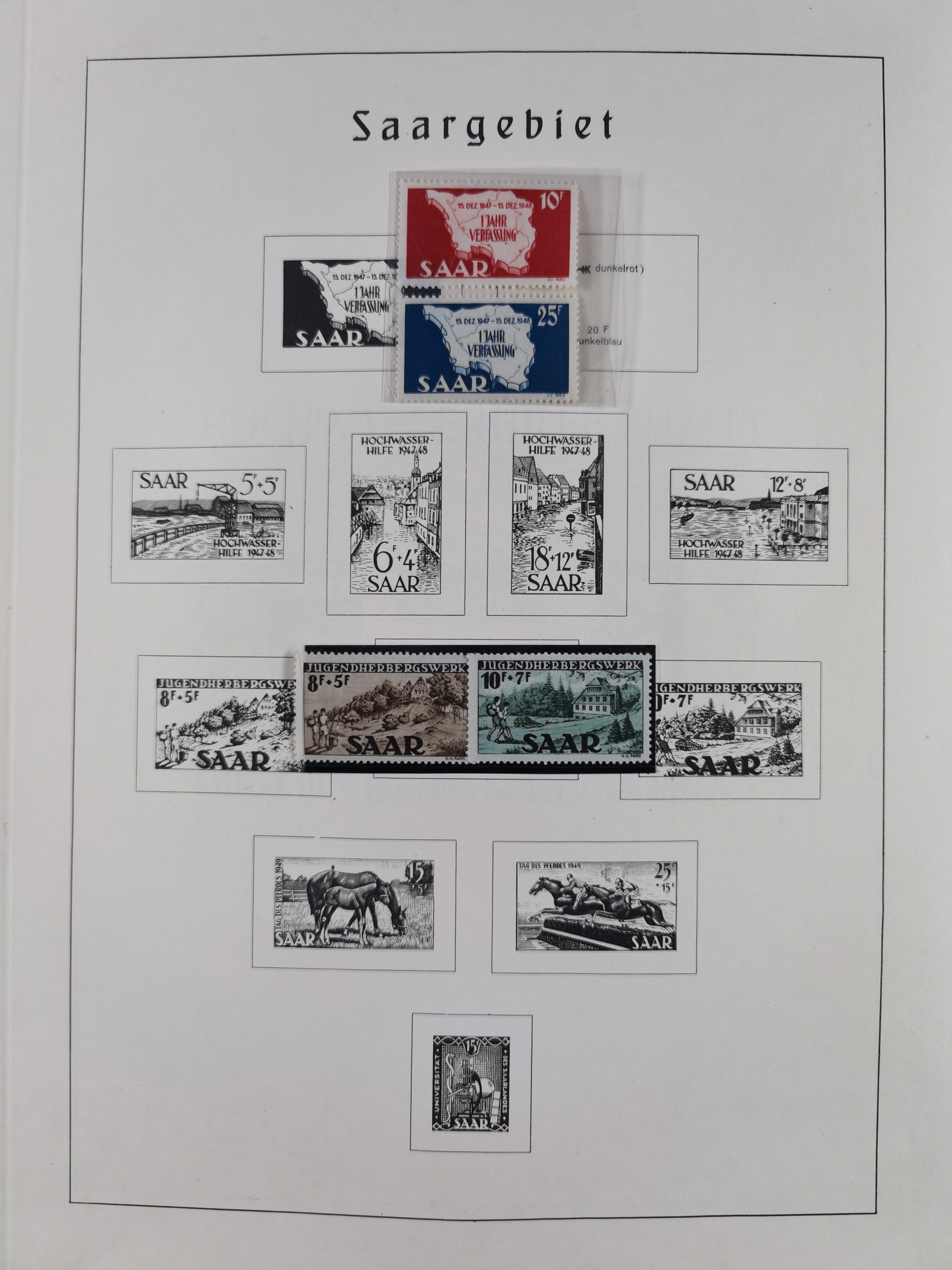 1945/59, meist postfrische und teils ungebrauchte/gestempelte Sammlung mit vielen meist kompletten Sätzen und Gebieten, ab Lokalausgaben über Kontrollrat mit besseren geprüften Farben, Saarland inkl. Dienstmarken, Französische Zone inkl. Blocks, bis Bizone, in einem Album