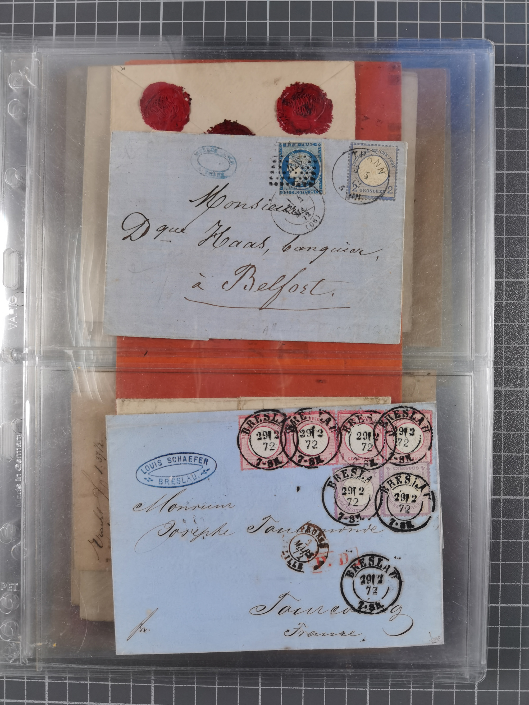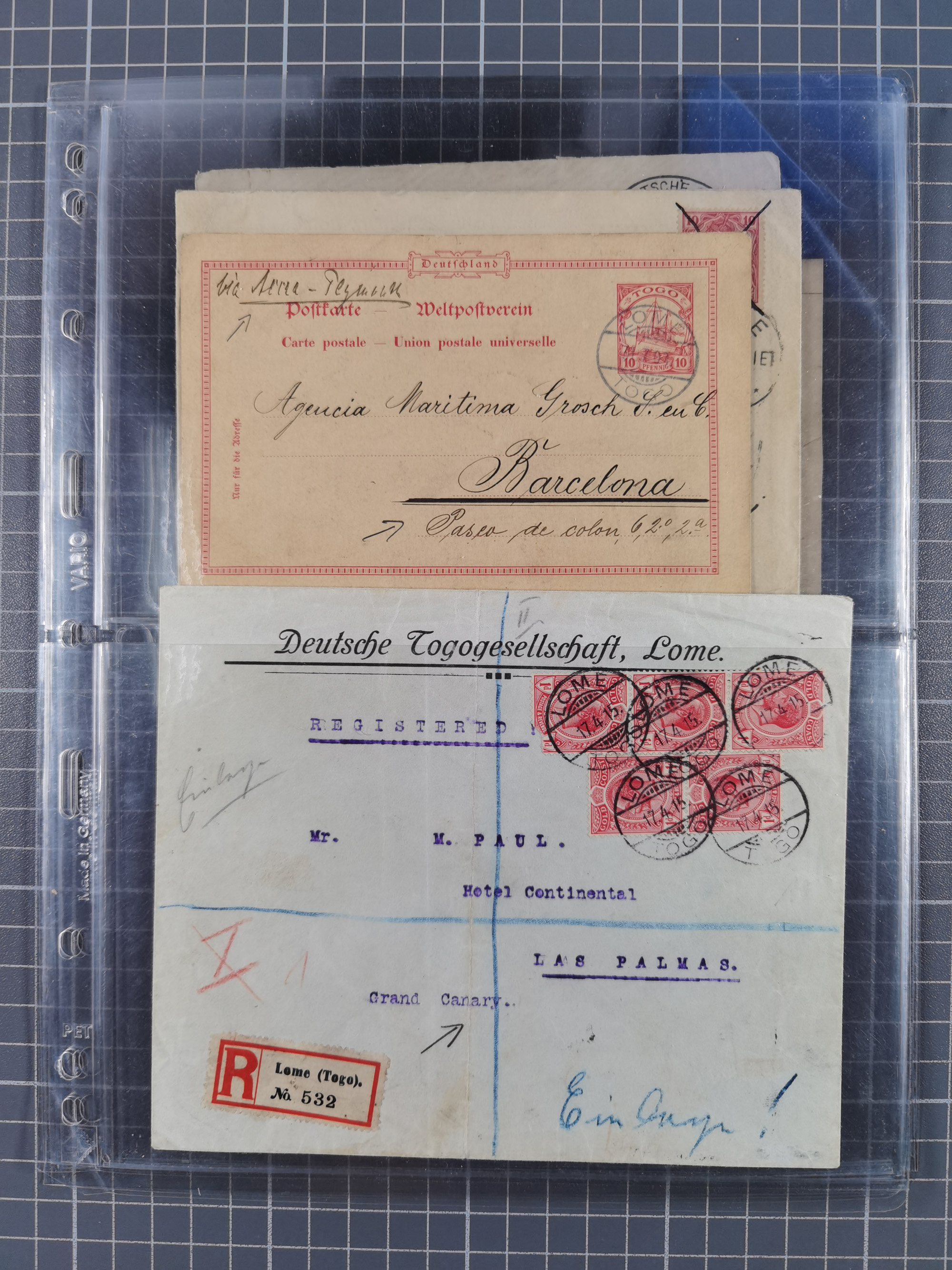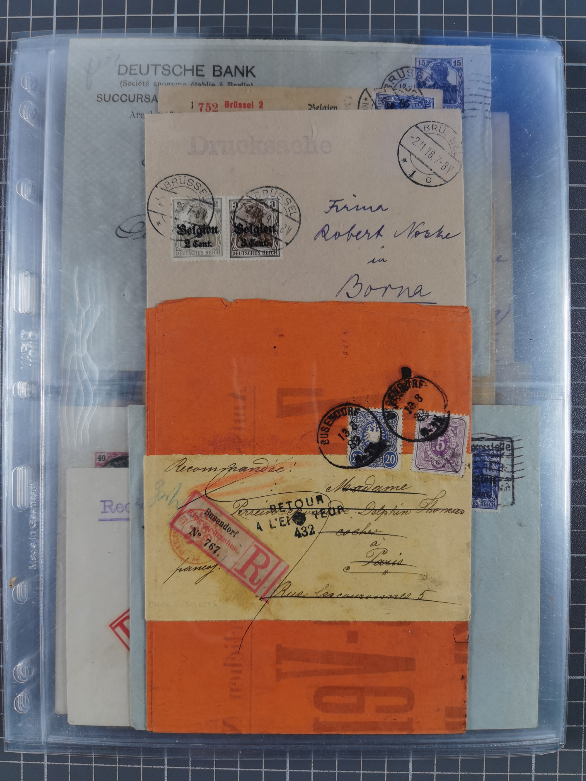 1826/1937 (ca.), umfangreiche Partie mit rund 40 Belegen, inkl. Deutsche Kolonie und WWI Besetzungen, interessante Einzel-, Mehrfach- und Mischfrankaturen, dabei u.a. Brustschild + Frankreich auf Faltbrief, Teil Stempel mit blauem “AUS DAENEMARK”, “LINIE HAMBURG WESTAFRIKA”, “LOME”, etc., etwas unterschiedlich, meist in guter Gesamterhaltung