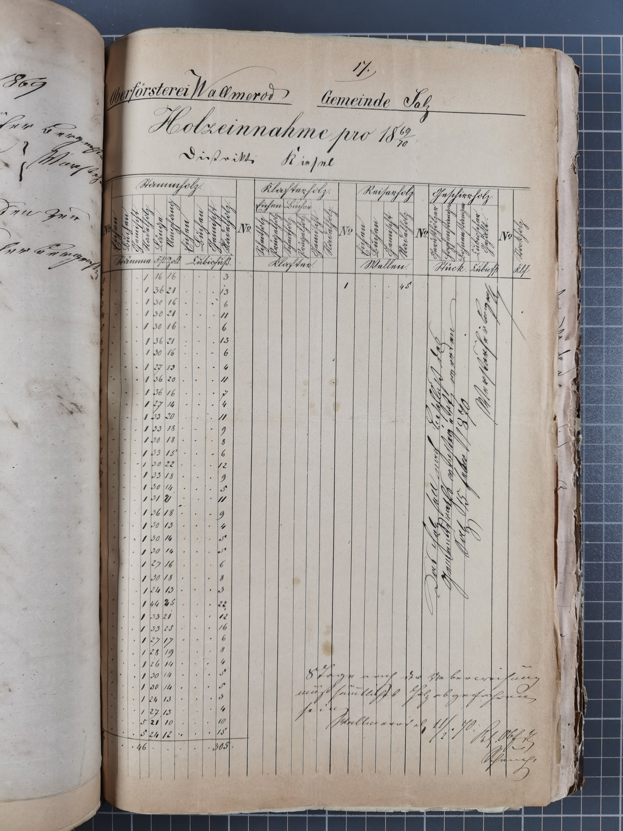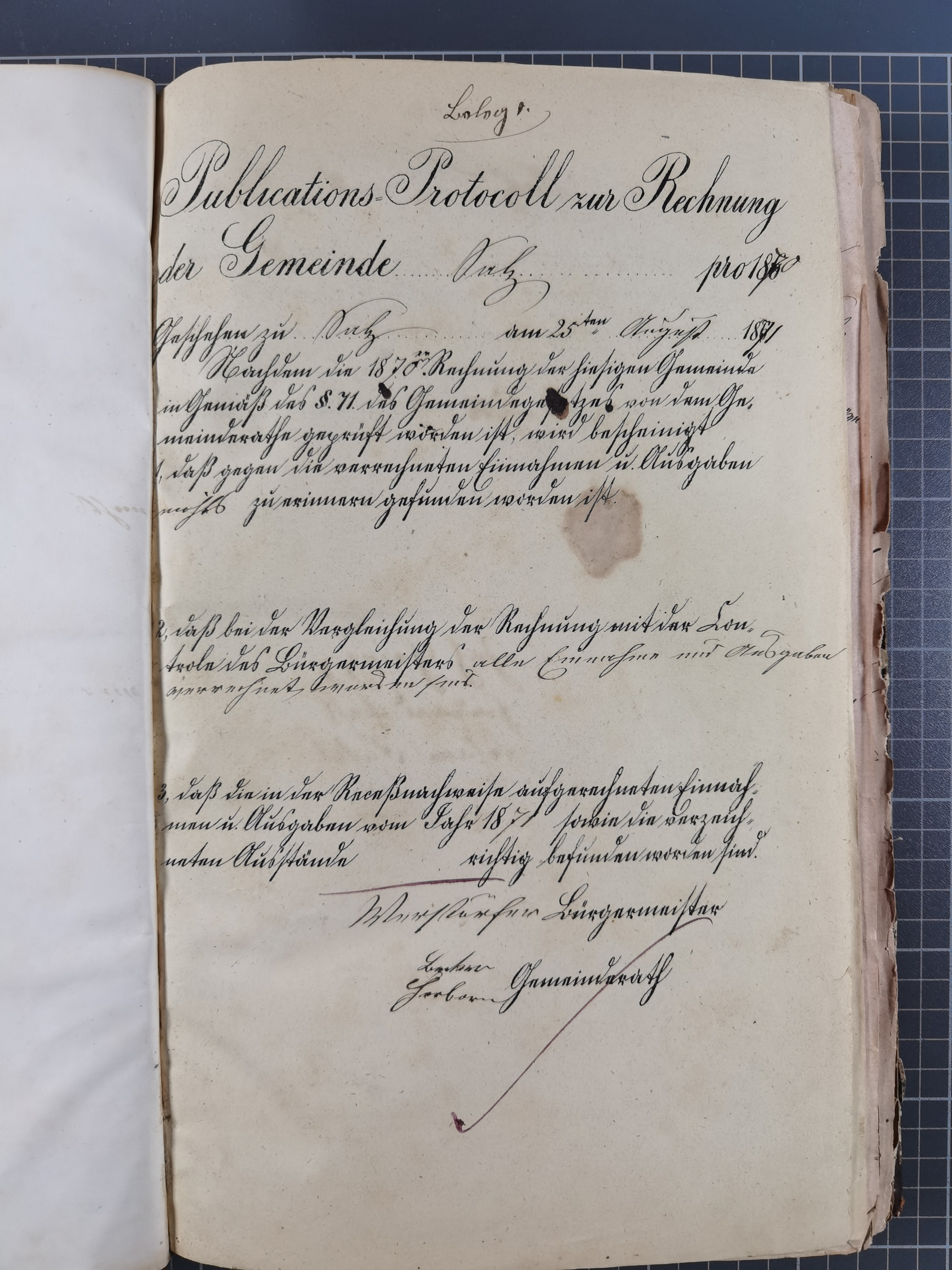 1870/71, Kassenbuch der Gemeinde Salz im Westerwald, darin eingebunden Quittungen, einige Briefe, Postscheine, etc.