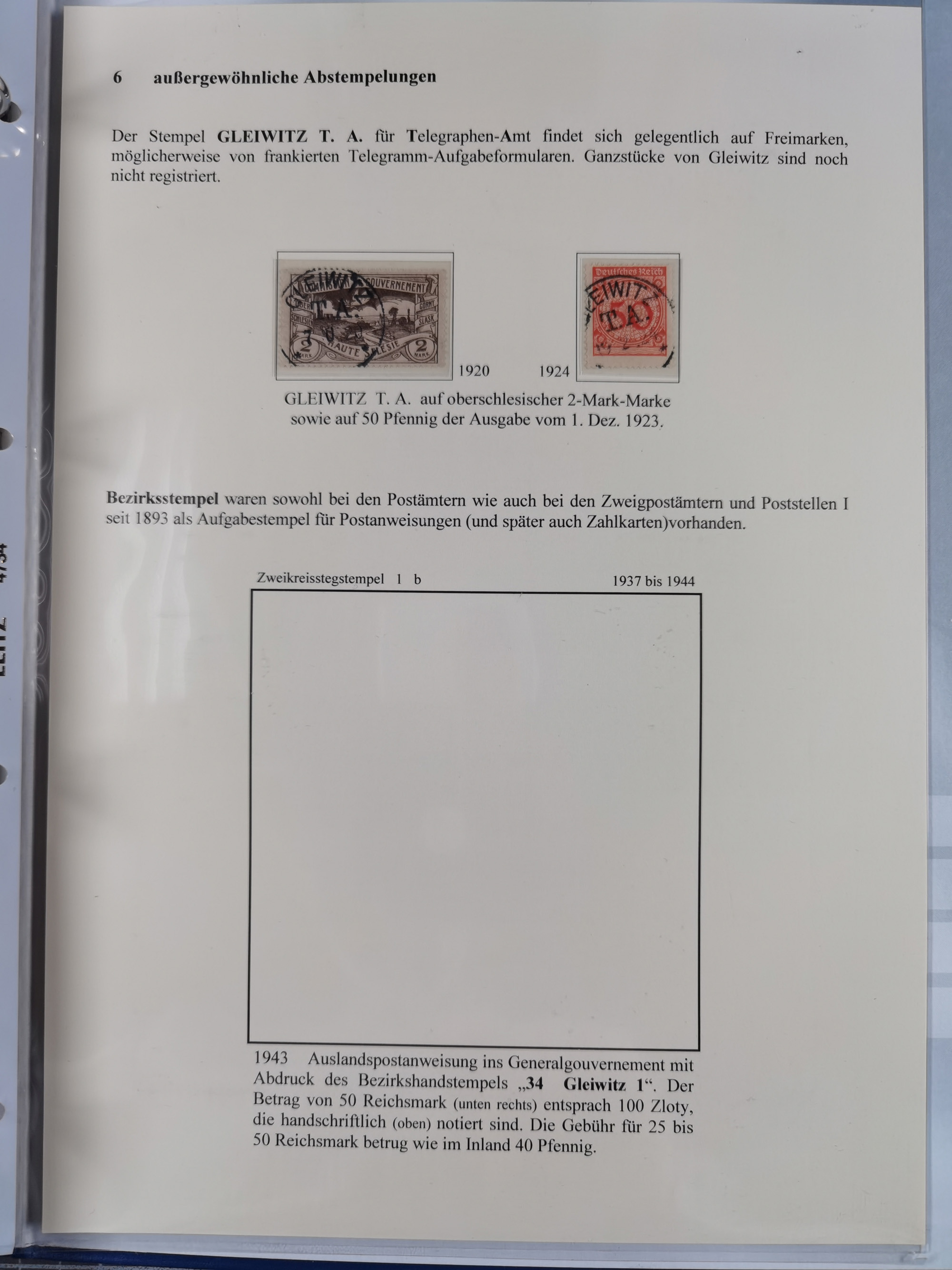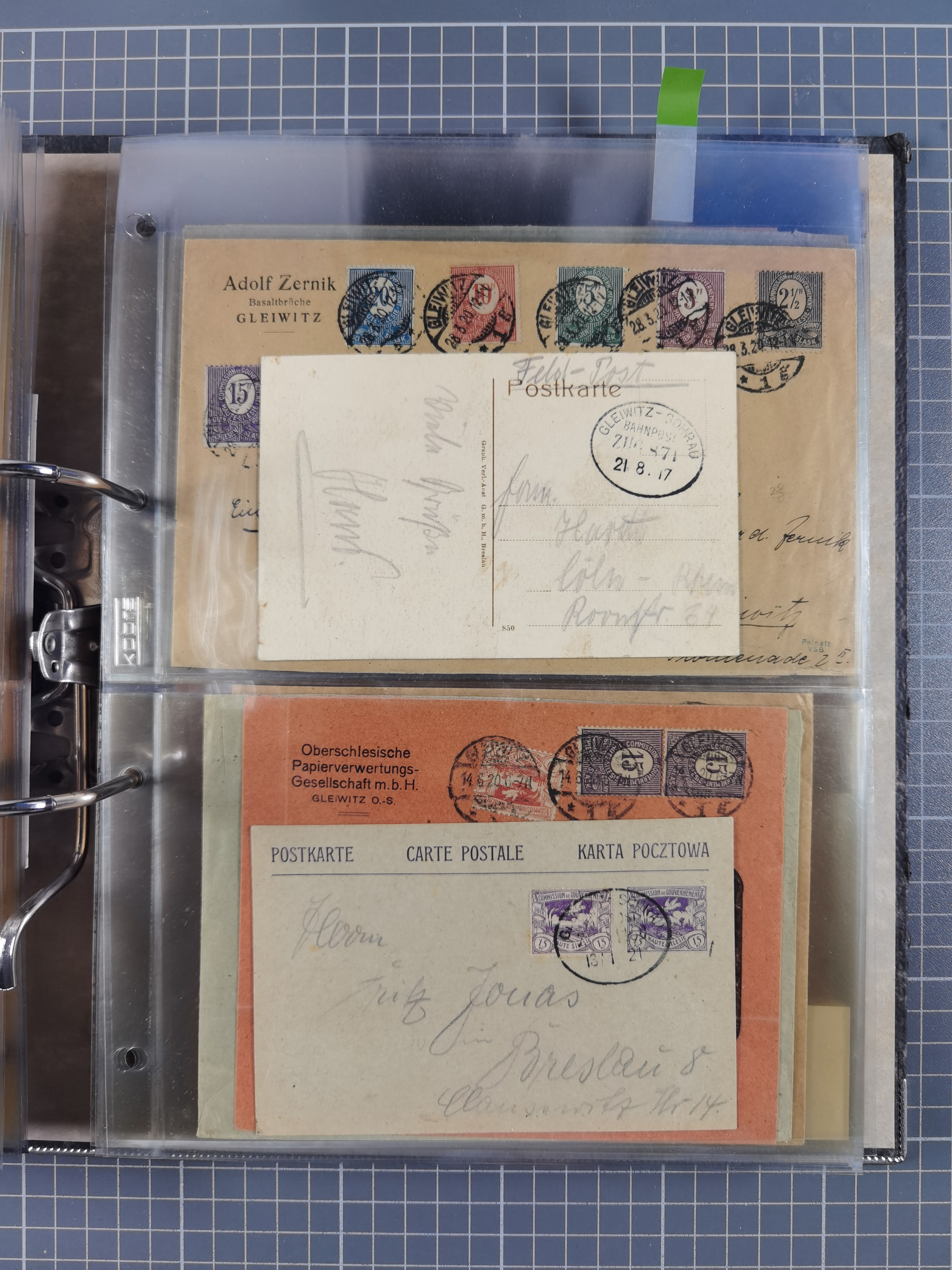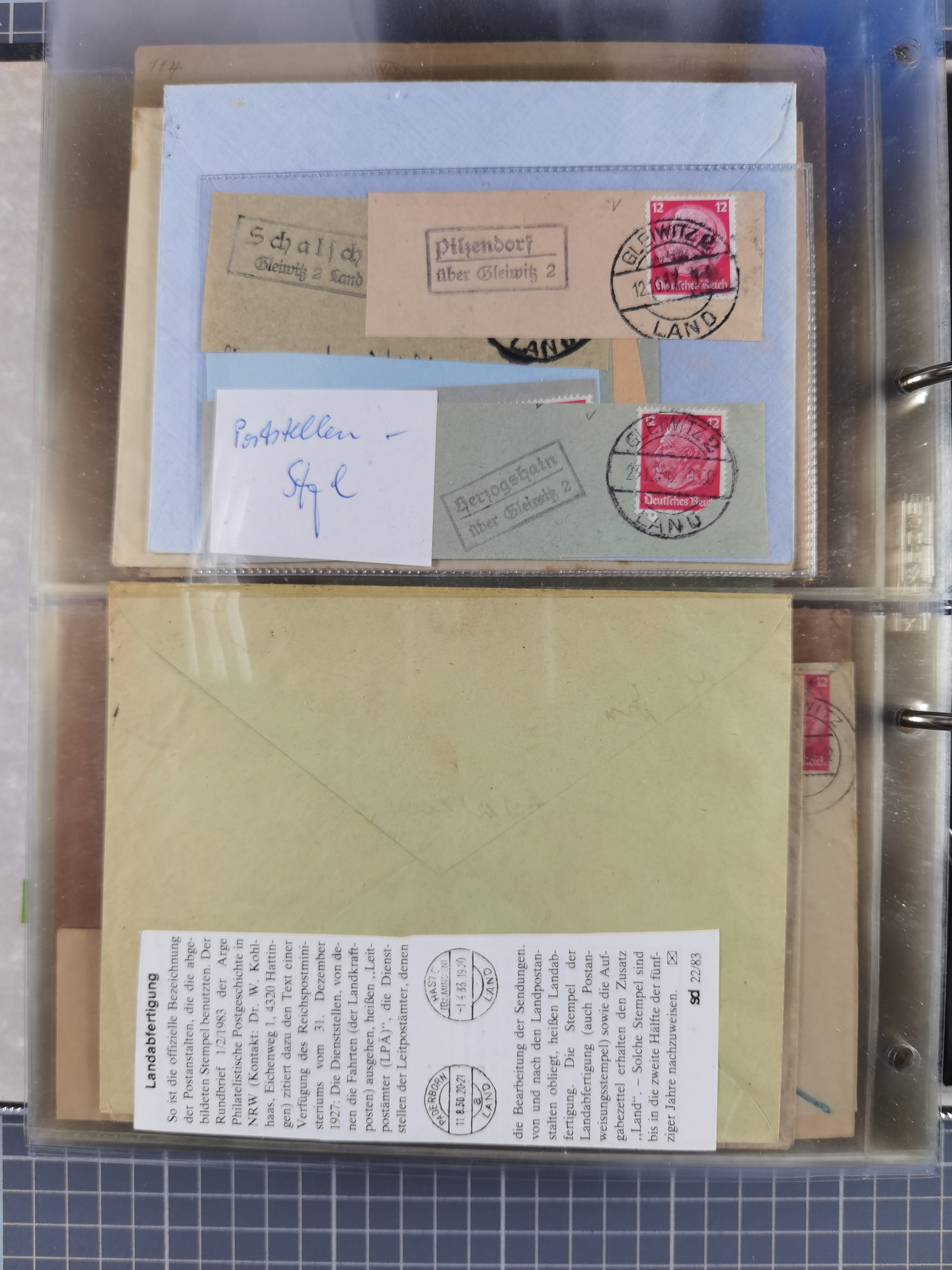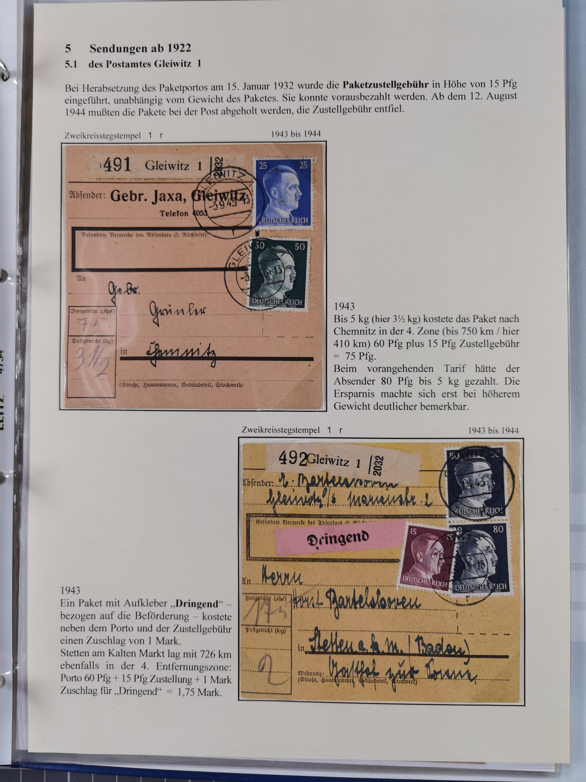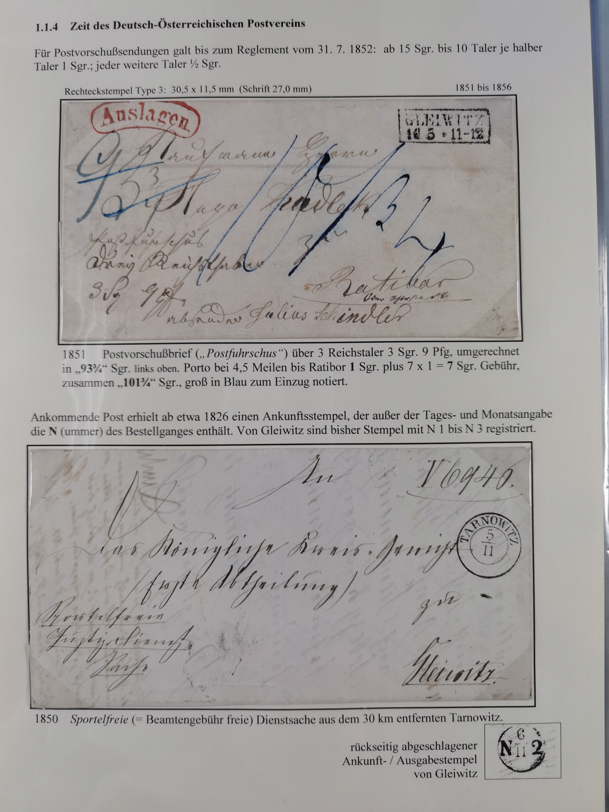 GLEIWITZ: 1817/1950 (ca.), ausstellungsmäßig aufgezogene Sammlung mit reichhaltig zusätzlichem Material, überschlägig rund 350 Belege, dabei Preußen-Nummernstempel auf GSU, Teilfranco-Belege, NDP GAA6 auf Brief, Auslandspost, viel Oberschlesien mit Paketkarten, Flug- und Zeppelin Post, etc. etc. Ein schönes und interessantes Objekt