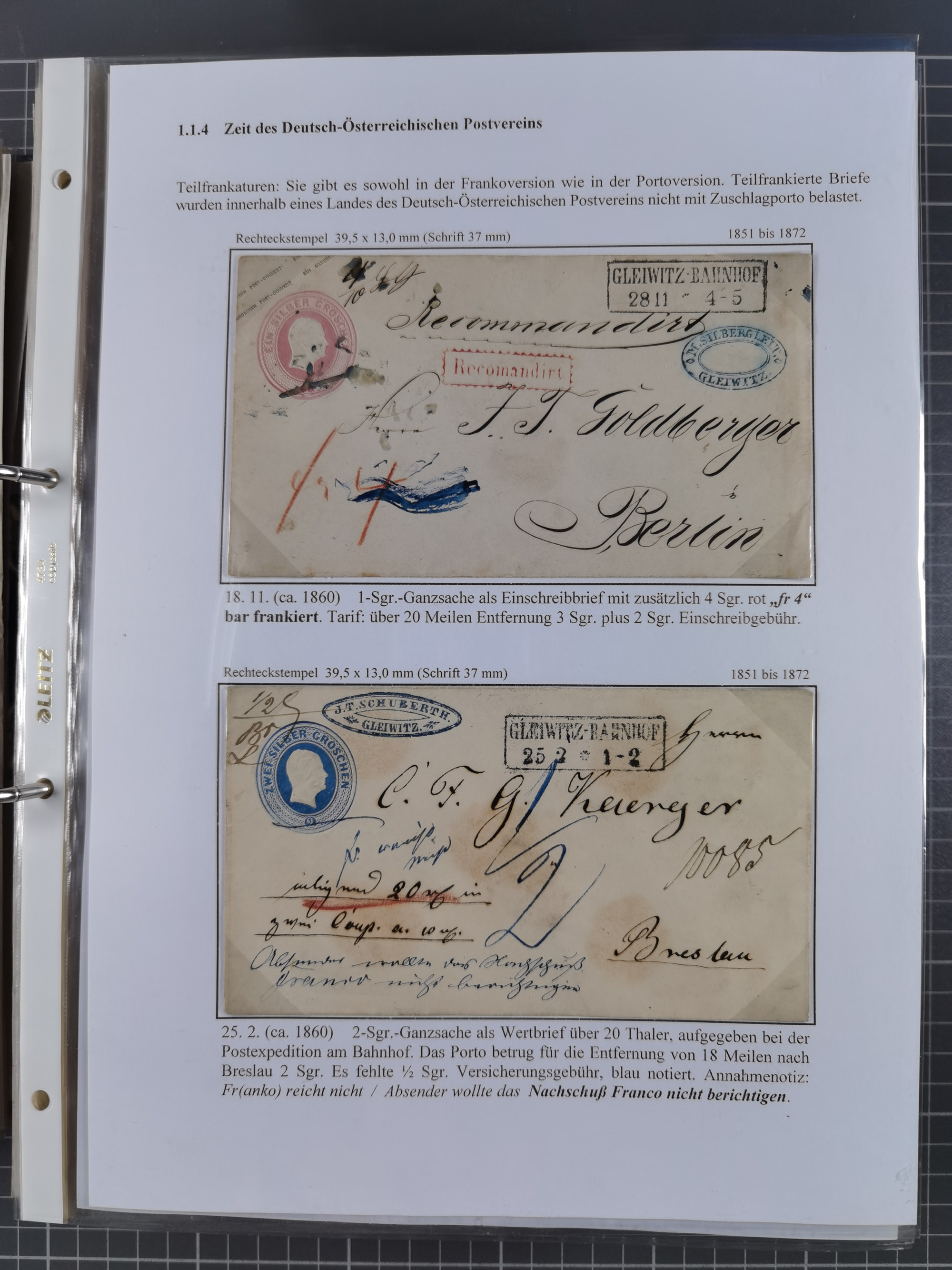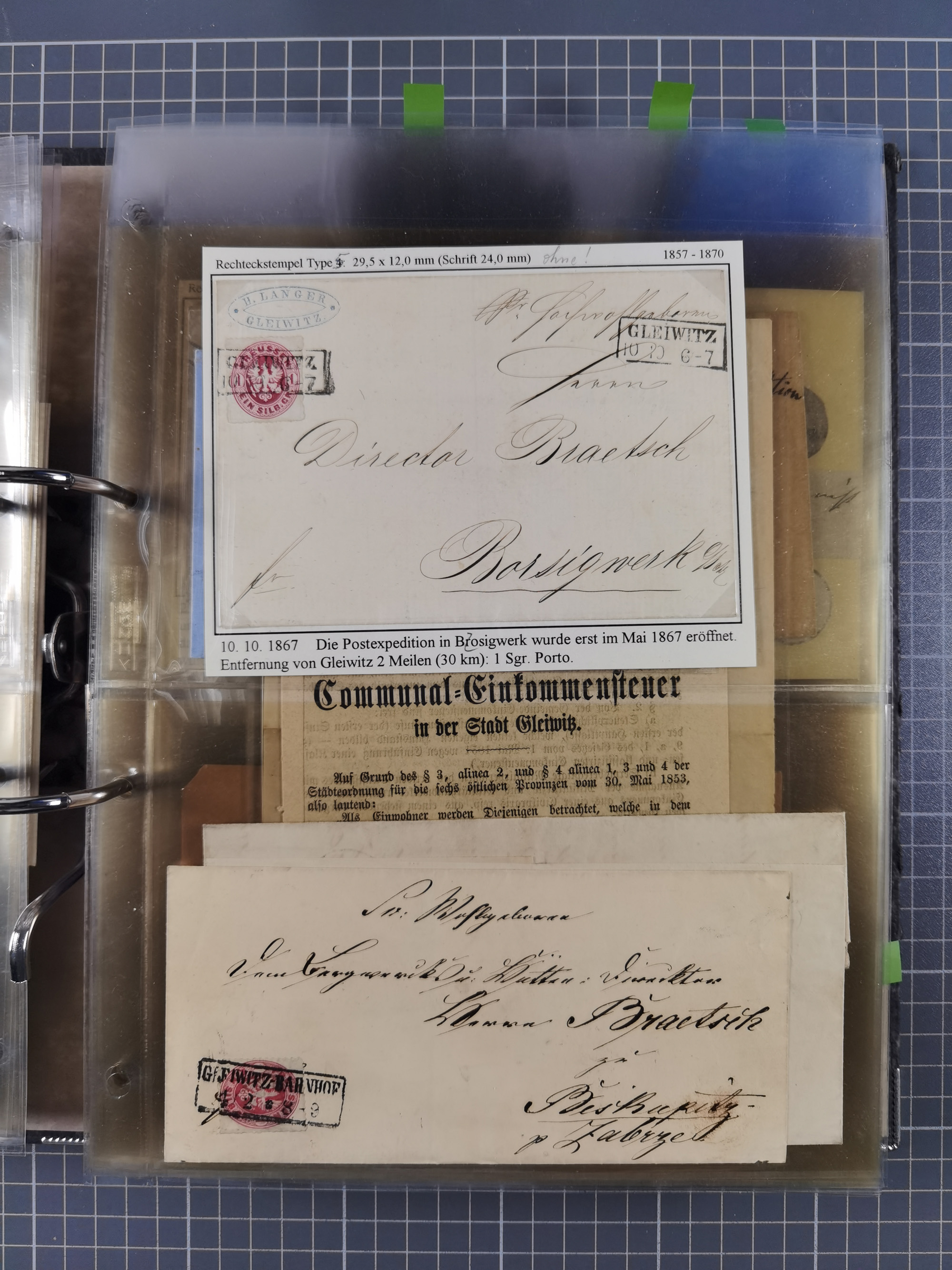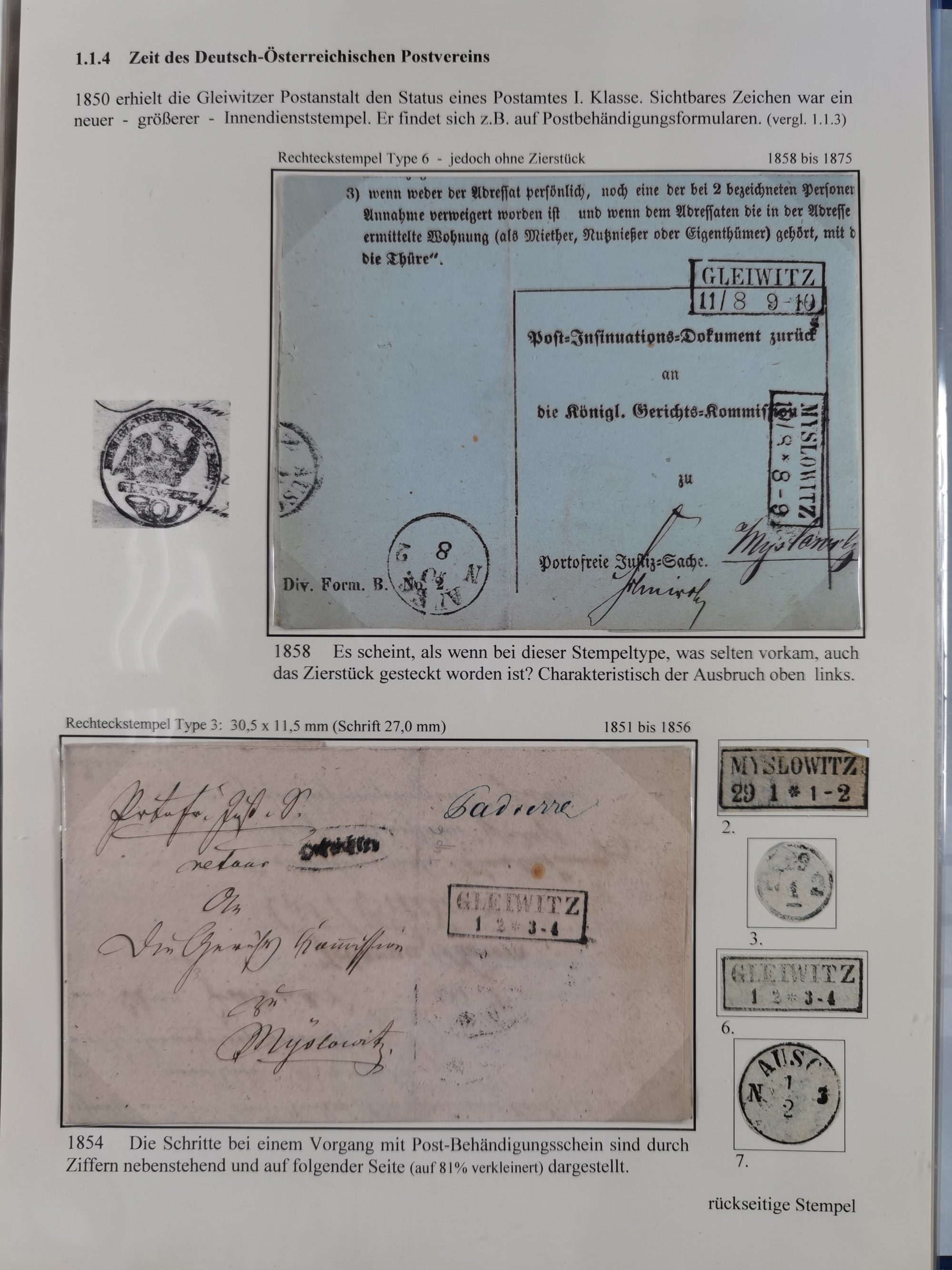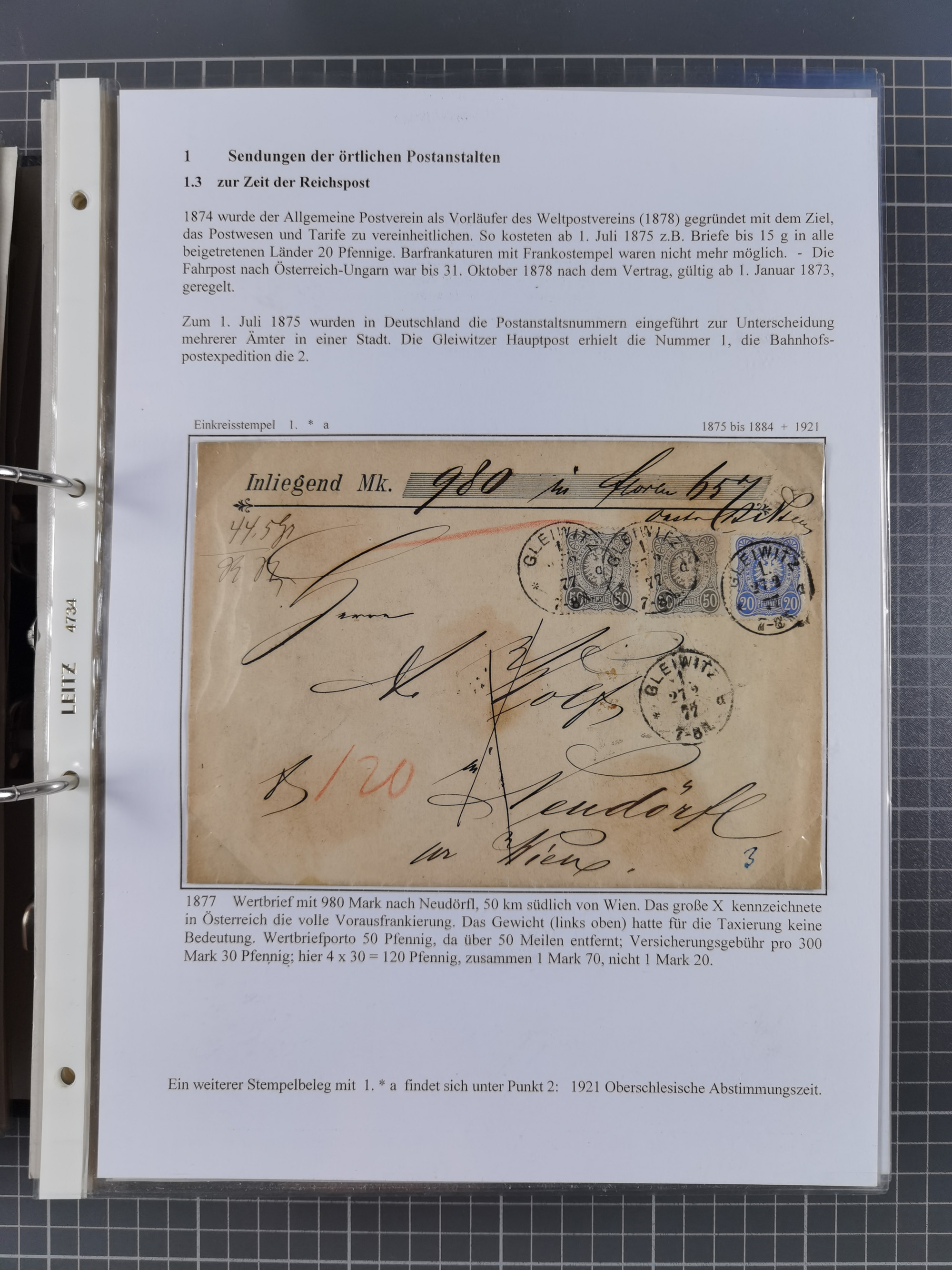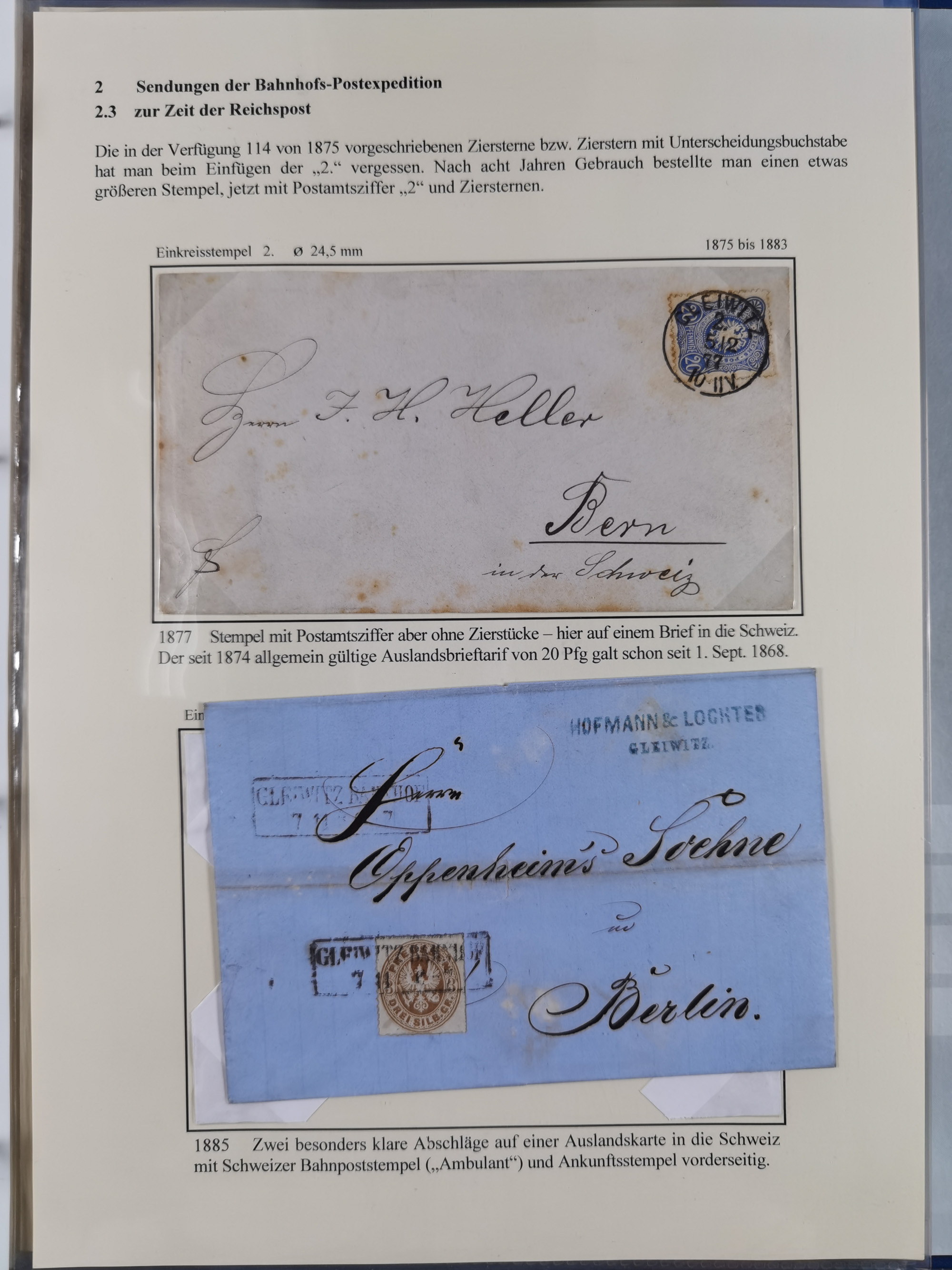 GLEIWITZ: 1817/1950 (ca.), ausstellungsmäßig aufgezogene Sammlung mit reichhaltig zusätzlichem Material, überschlägig rund 350 Belege, dabei Preußen-Nummernstempel auf GSU, Teilfranco-Belege, NDP GAA6 auf Brief, Auslandspost, viel Oberschlesien mit Paketkarten, Flug- und Zeppelin Post, etc. etc. Ein schönes und interessantes Objekt