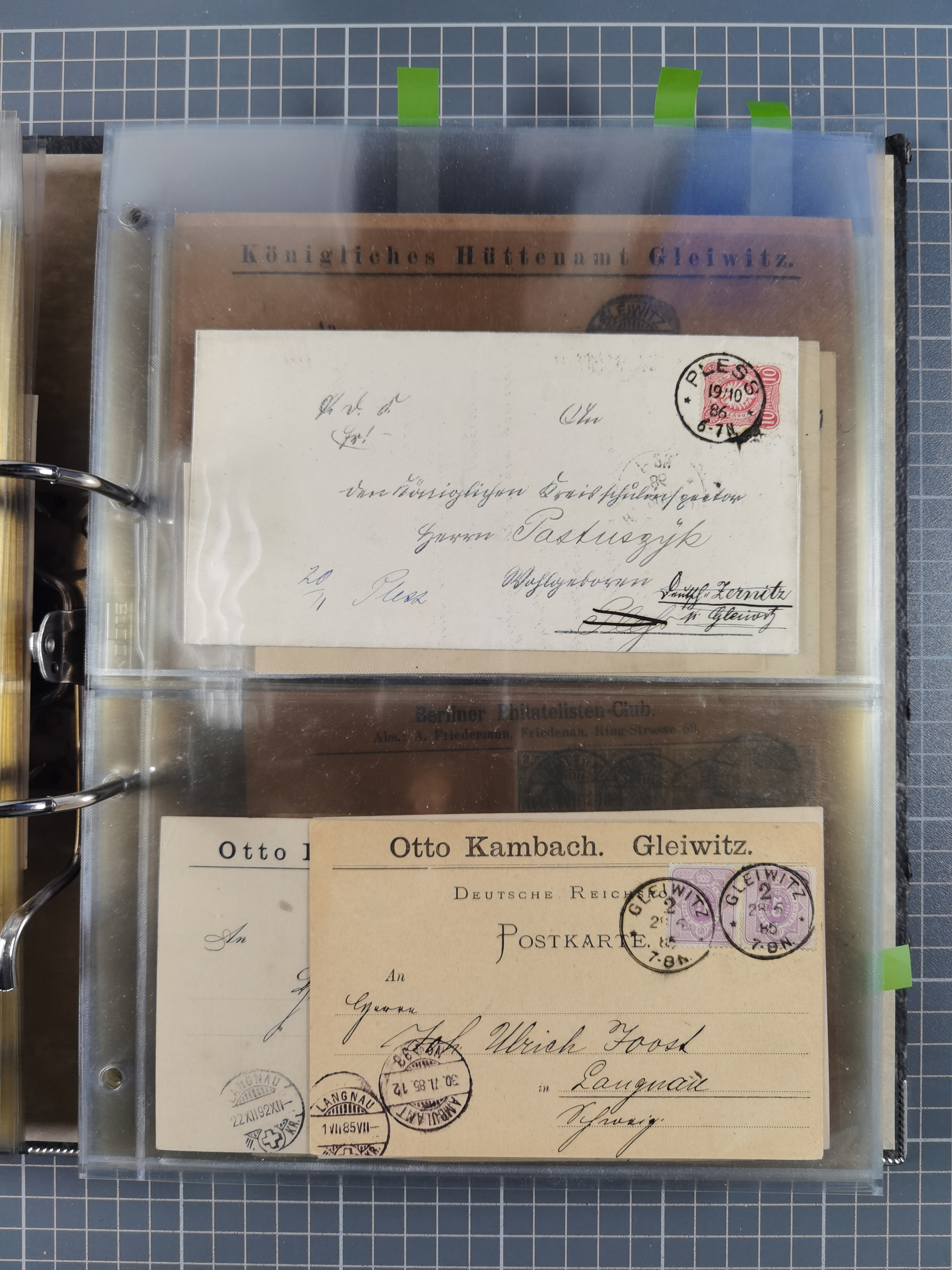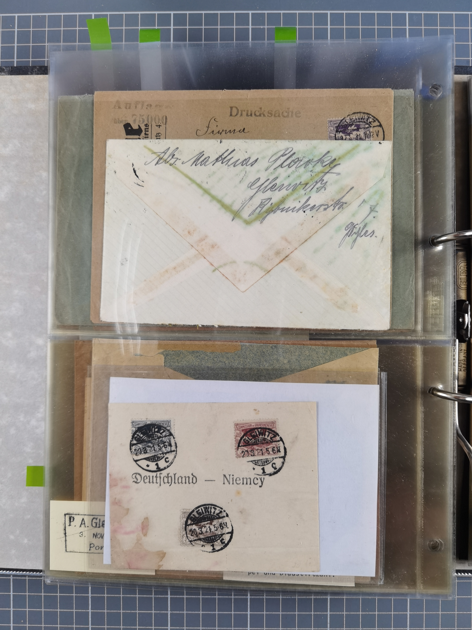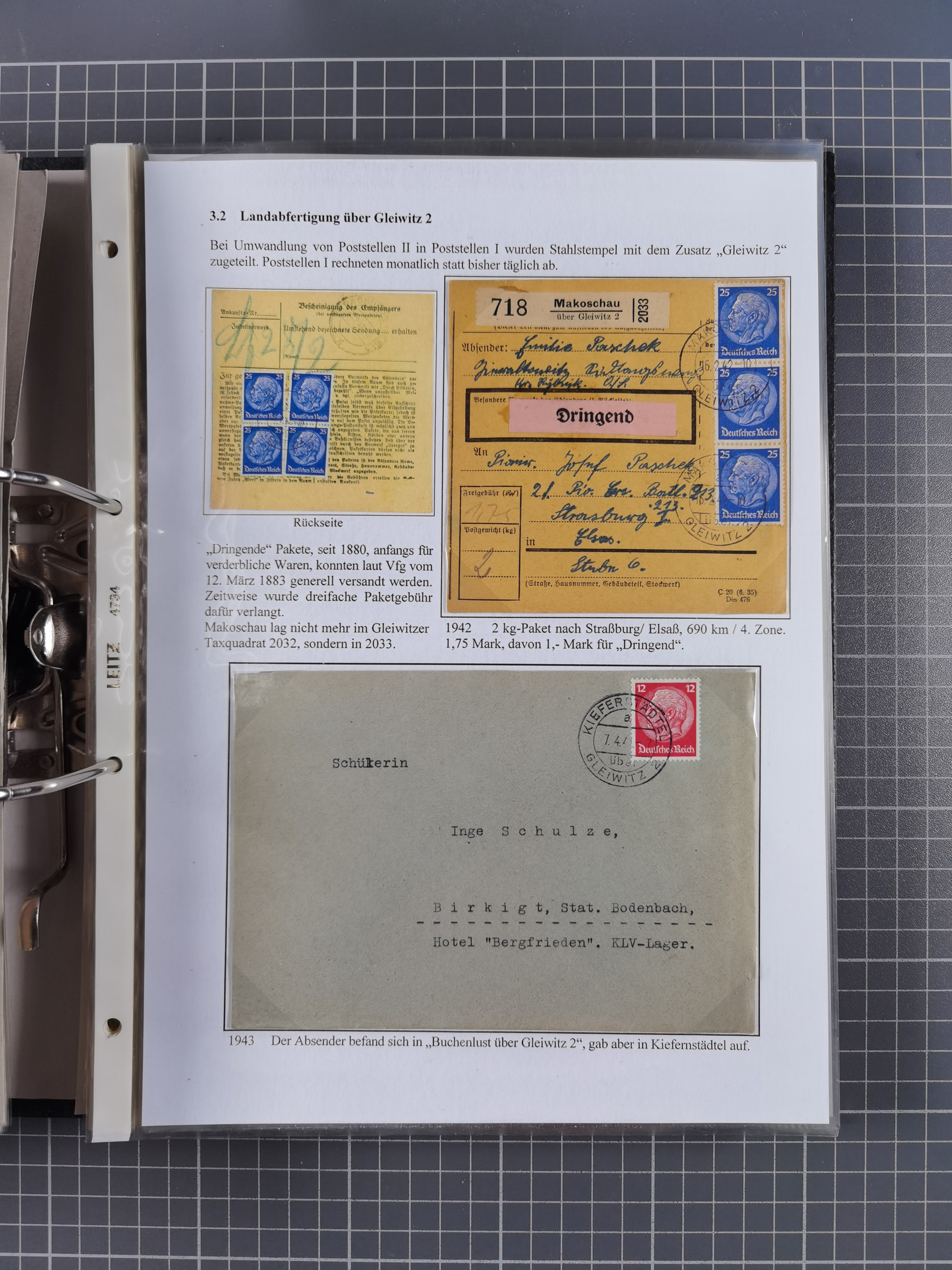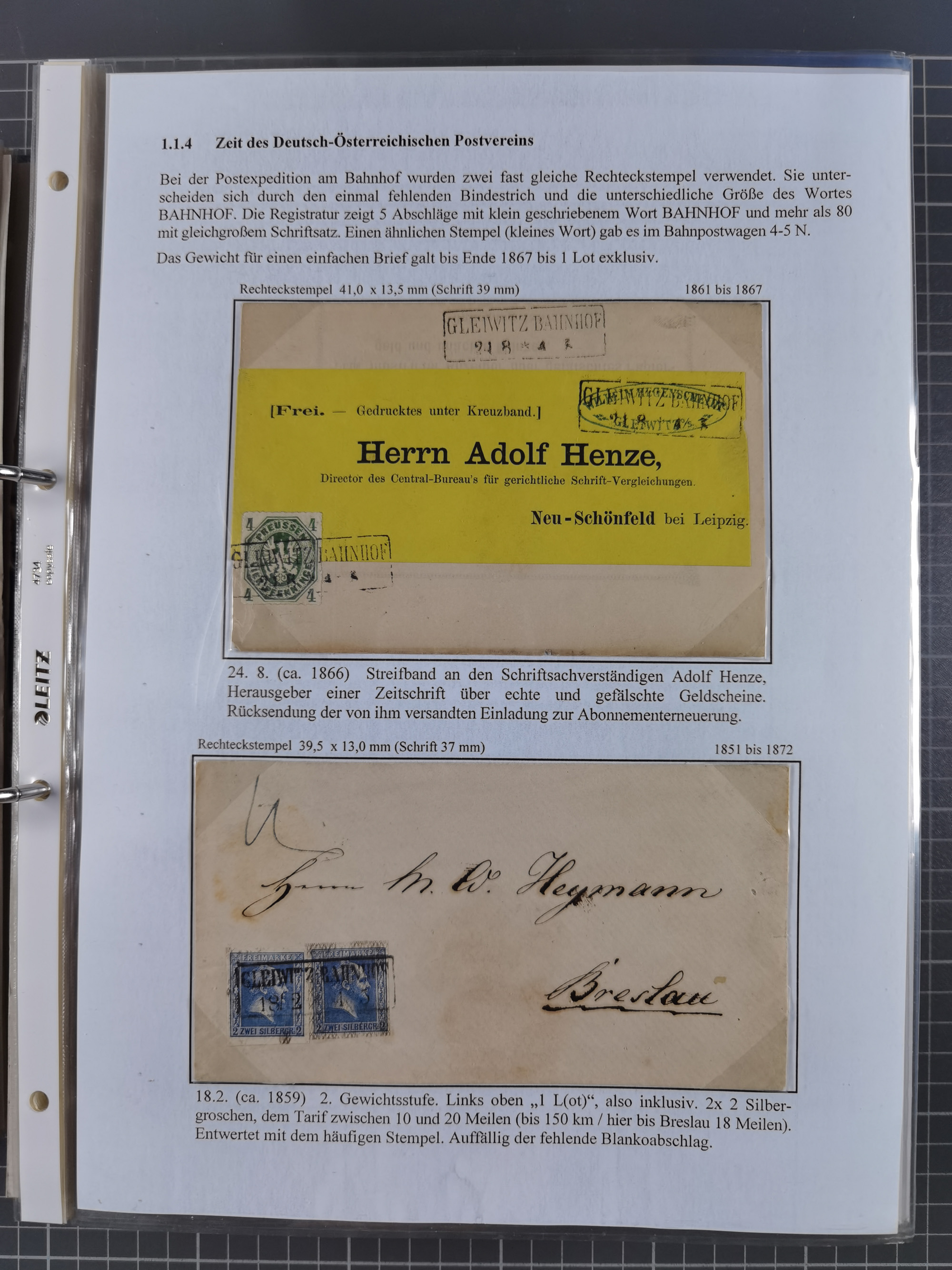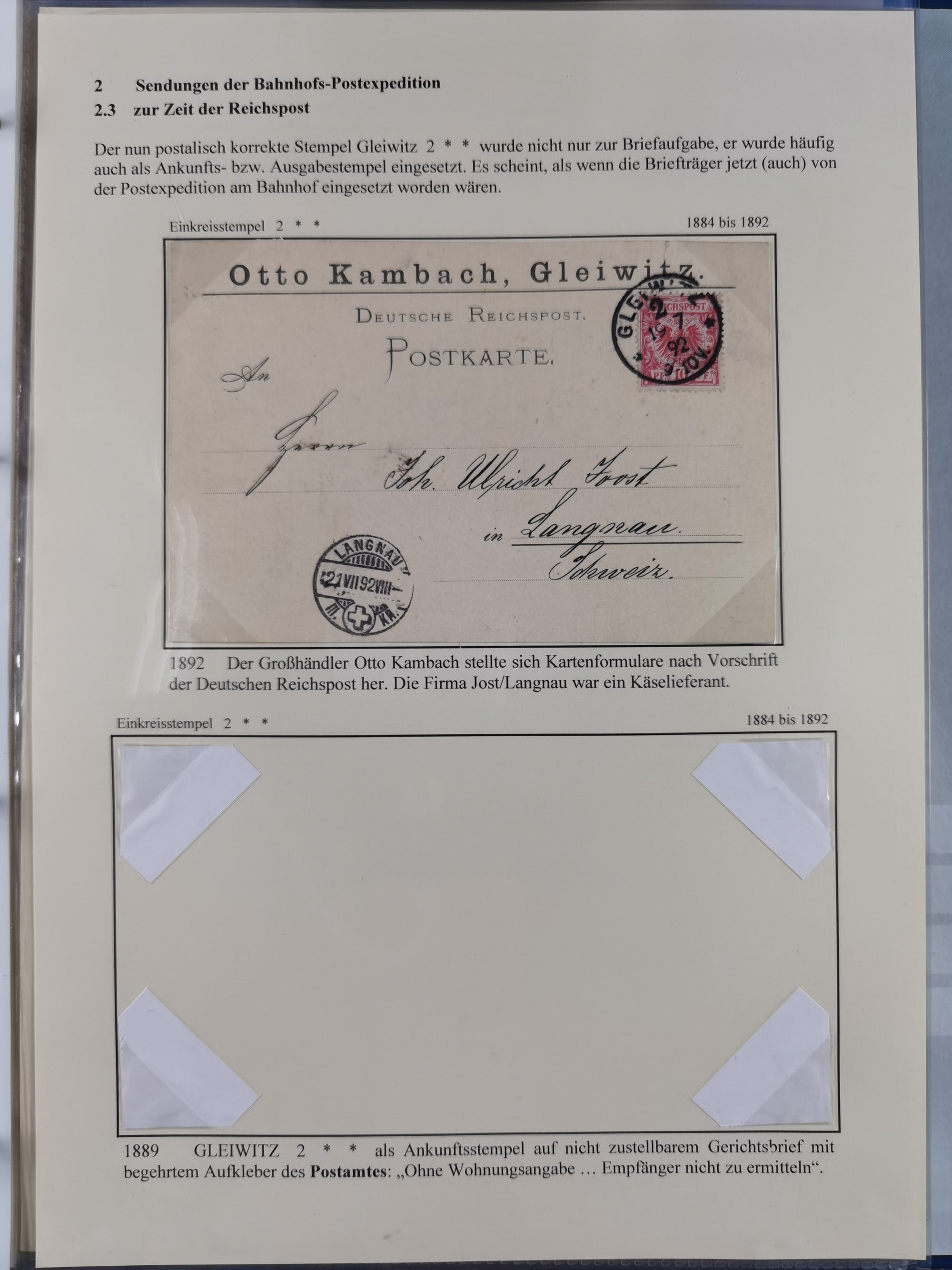 GLEIWITZ: 1817/1950 (ca.), ausstellungsmäßig aufgezogene Sammlung mit reichhaltig zusätzlichem Material, überschlägig rund 350 Belege, dabei Preußen-Nummernstempel auf GSU, Teilfranco-Belege, NDP GAA6 auf Brief, Auslandspost, viel Oberschlesien mit Paketkarten, Flug- und Zeppelin Post, etc. etc. Ein schönes und interessantes Objekt