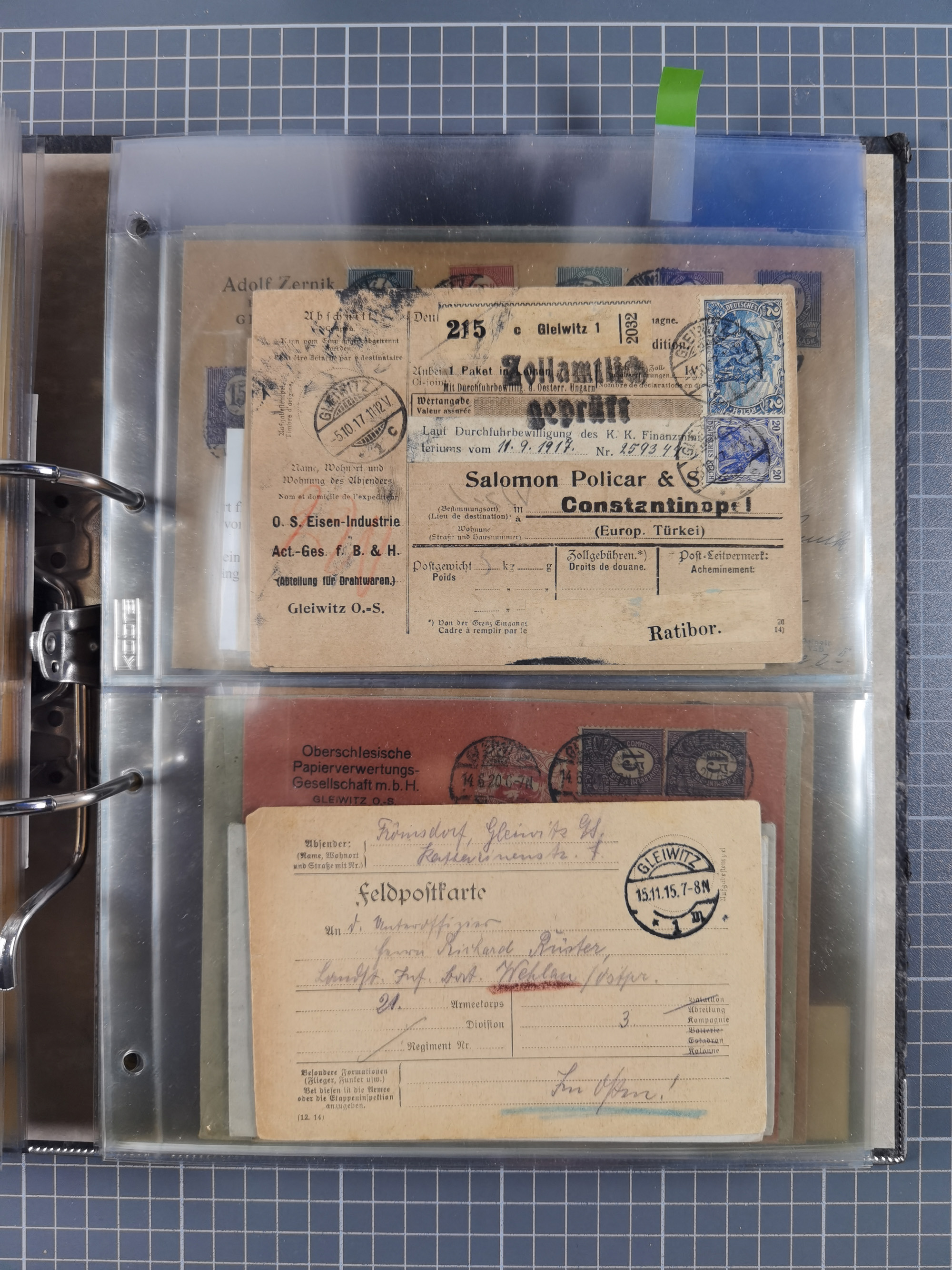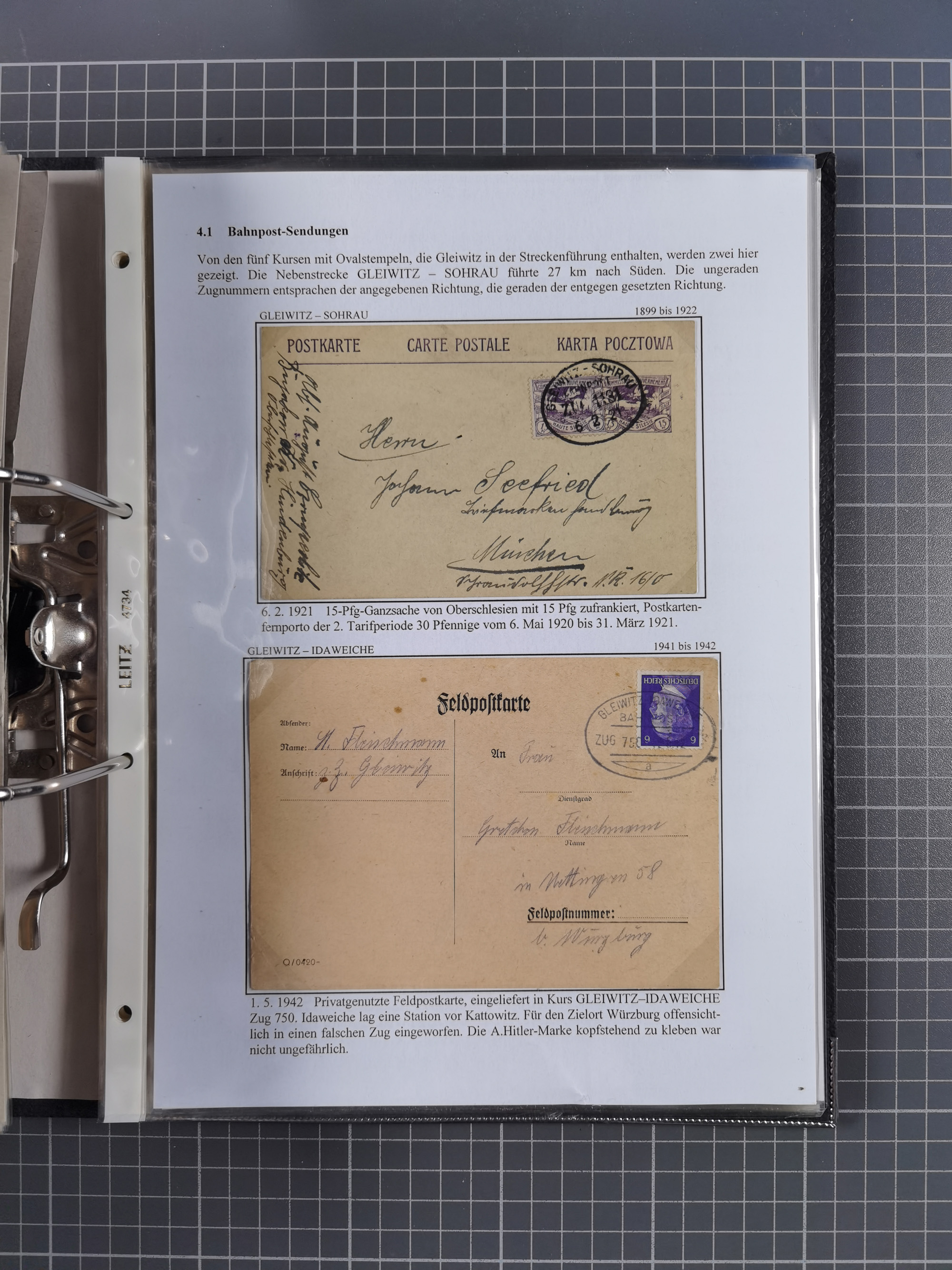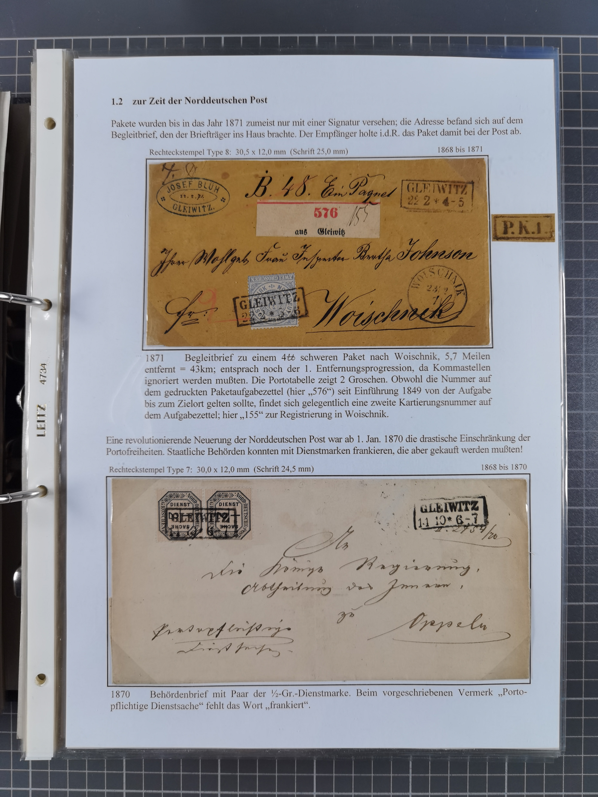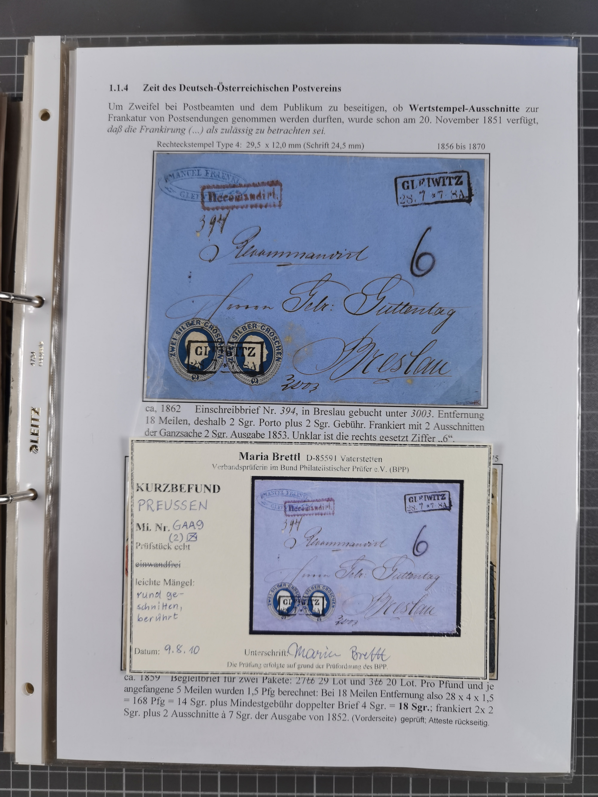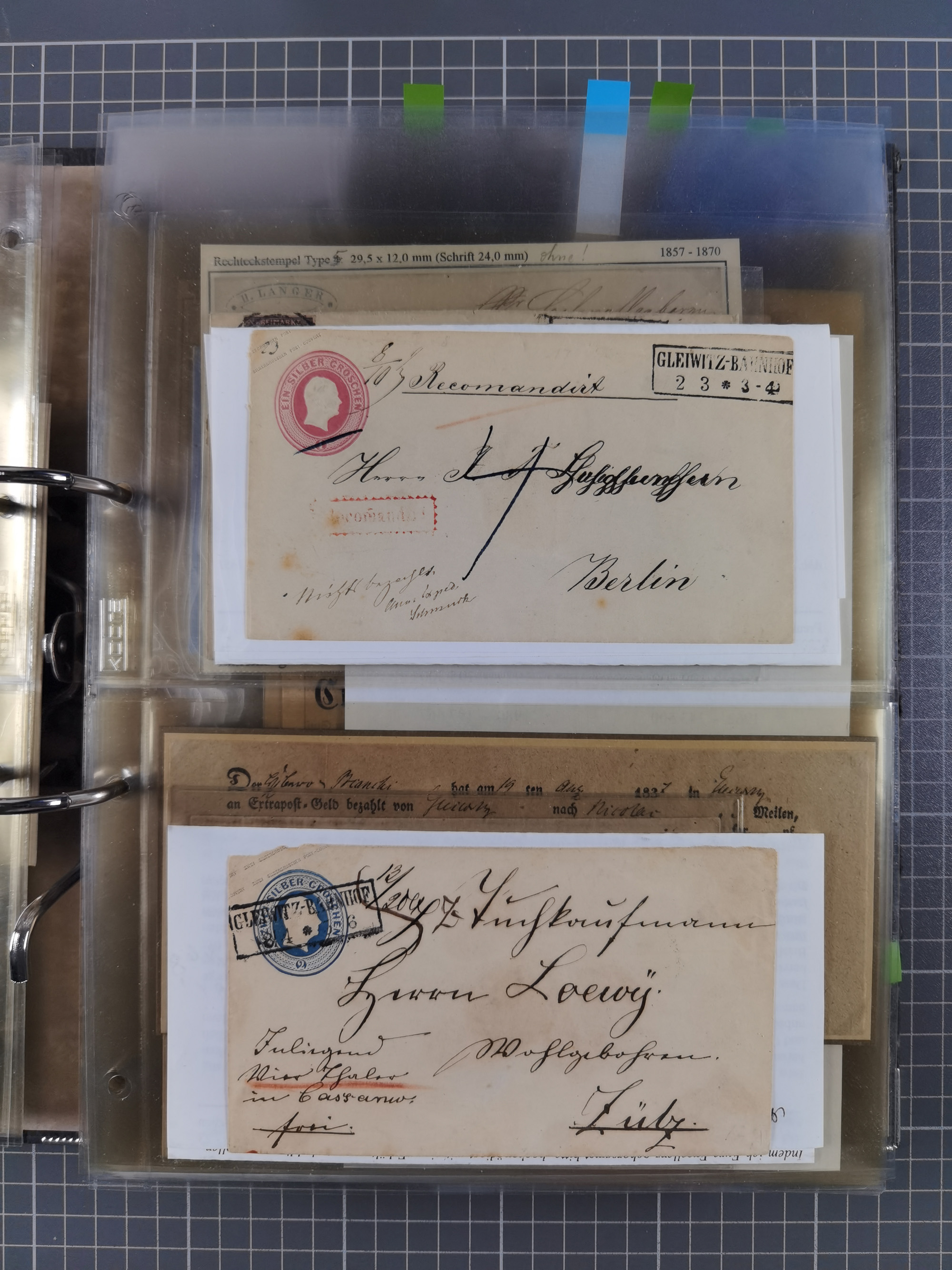 GLEIWITZ: 1817/1950 (ca.), ausstellungsmäßig aufgezogene Sammlung mit reichhaltig zusätzlichem Material, überschlägig rund 350 Belege, dabei Preußen-Nummernstempel auf GSU, Teilfranco-Belege, NDP GAA6 auf Brief, Auslandspost, viel Oberschlesien mit Paketkarten, Flug- und Zeppelin Post, etc. etc. Ein schönes und interessantes Objekt