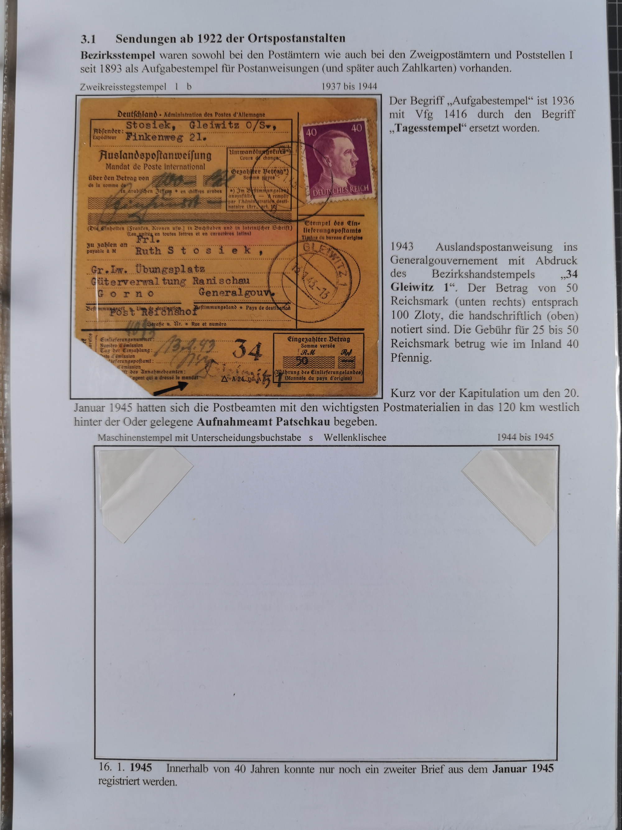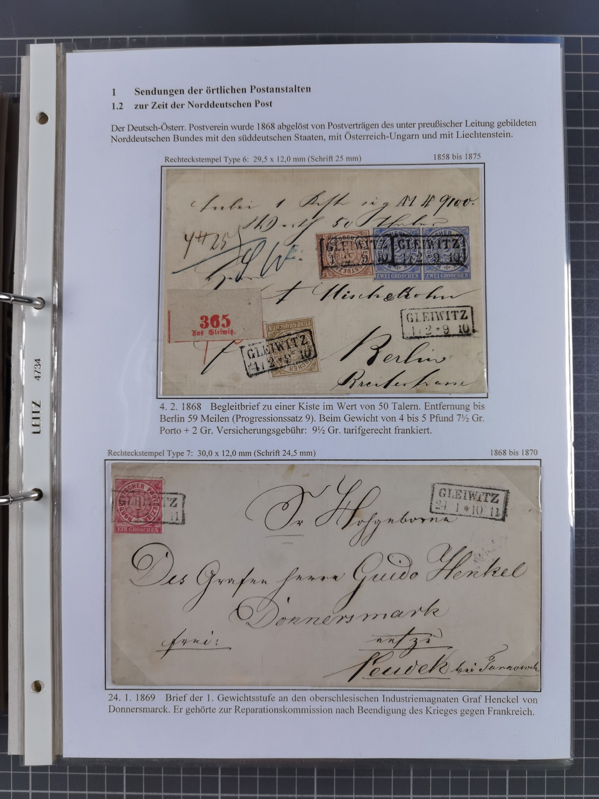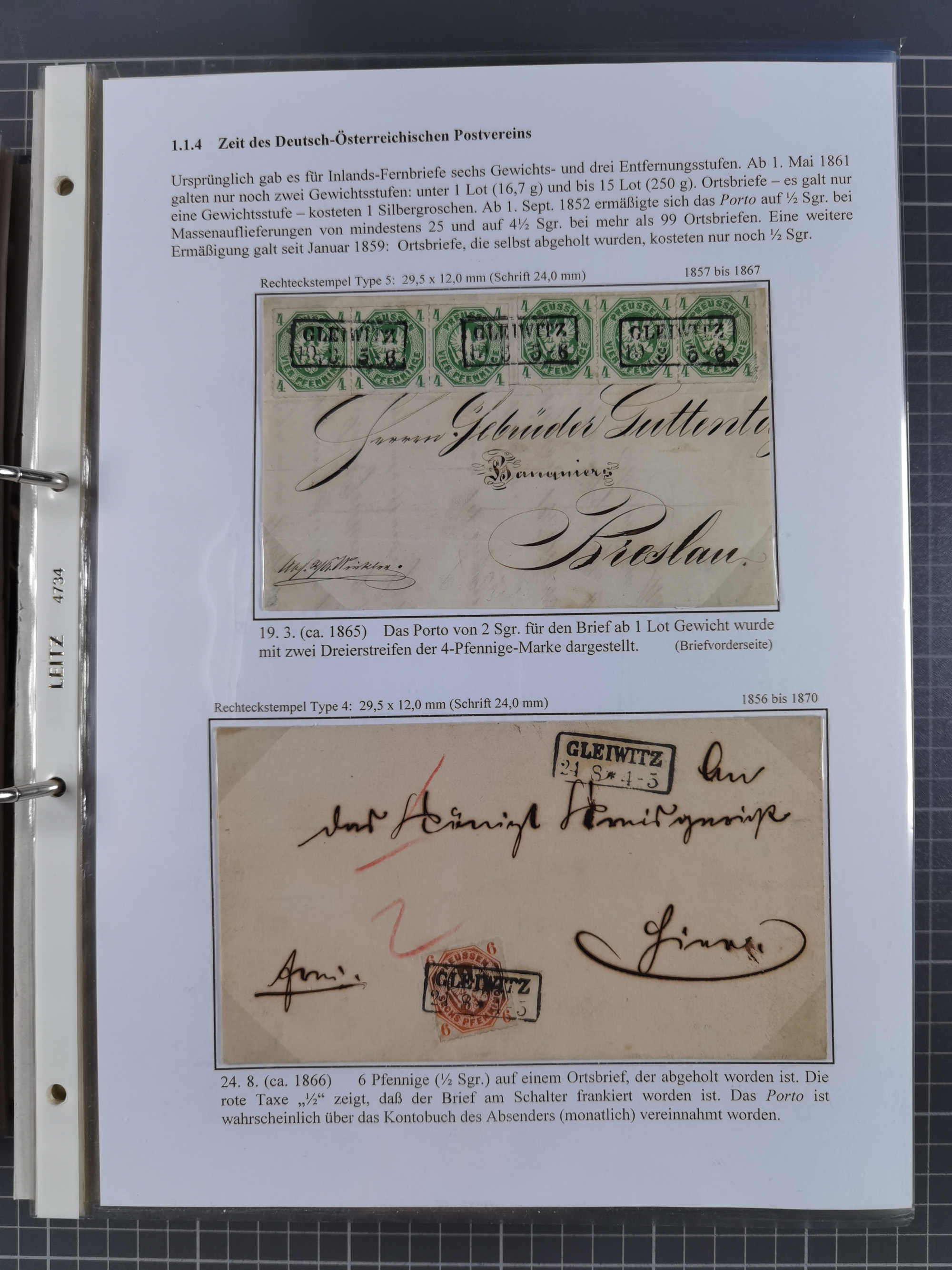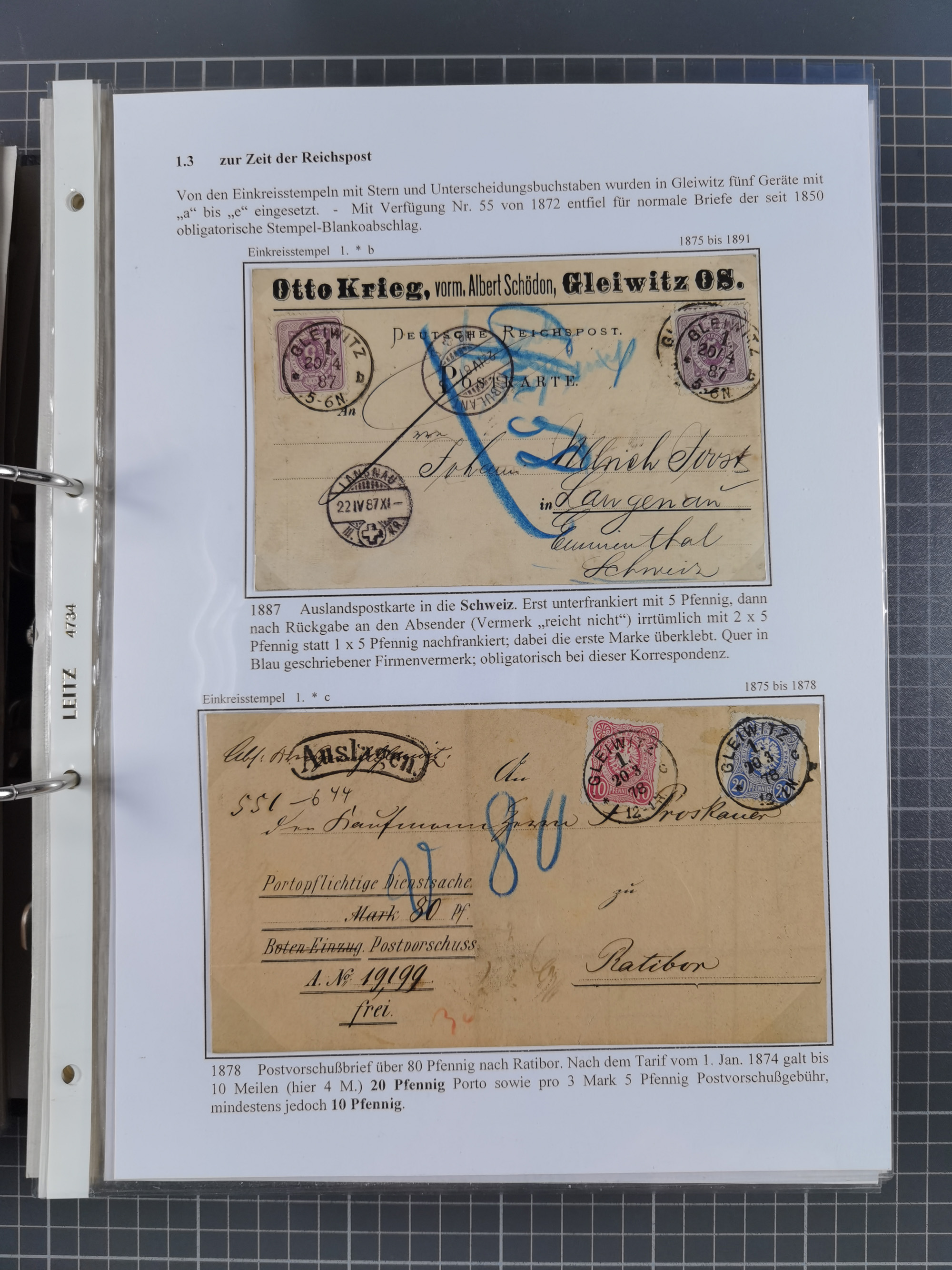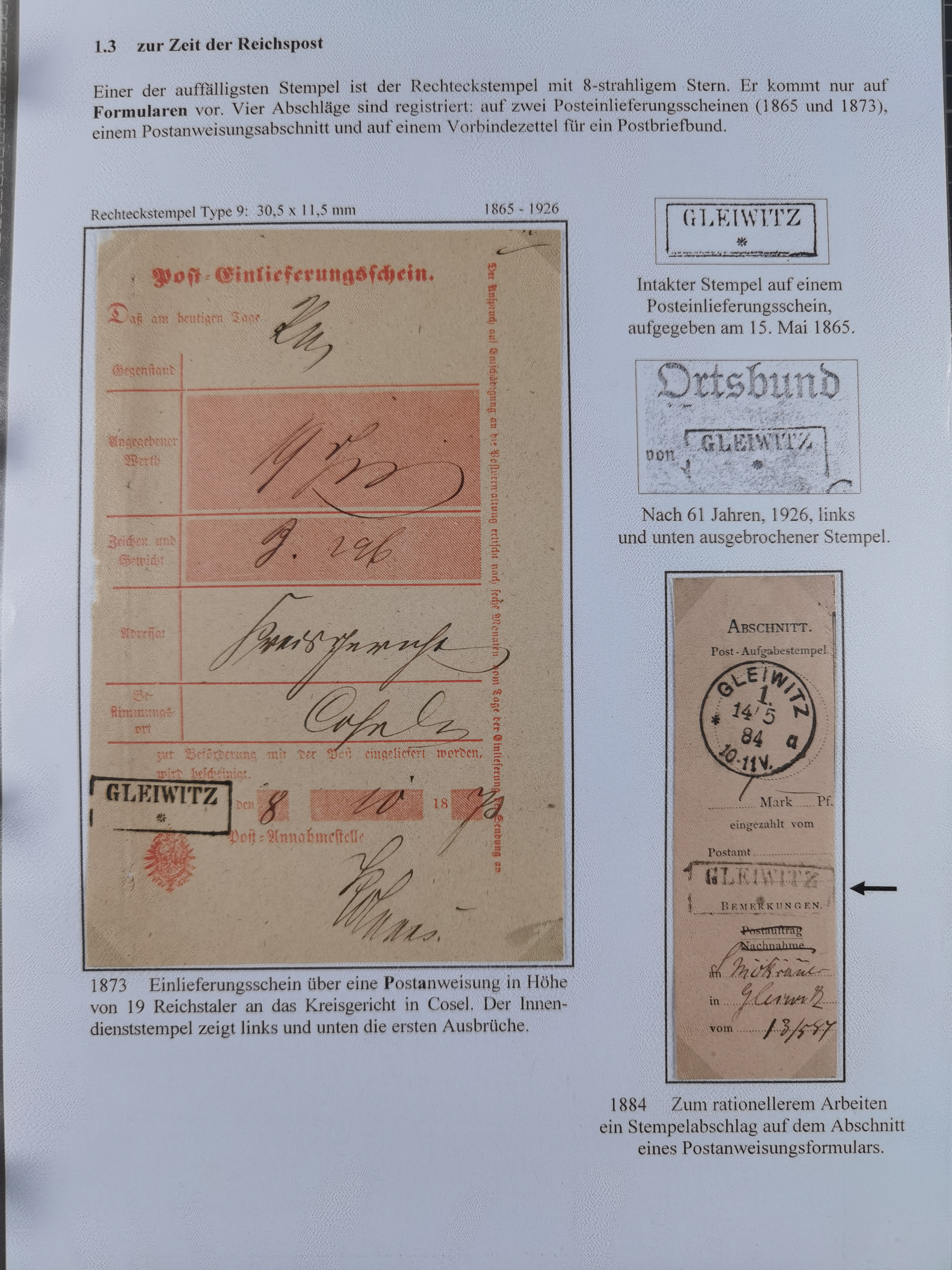 GLEIWITZ: 1817/1950 (ca.), ausstellungsmäßig aufgezogene Sammlung mit reichhaltig zusätzlichem Material, überschlägig rund 350 Belege, dabei Preußen-Nummernstempel auf GSU, Teilfranco-Belege, NDP GAA6 auf Brief, Auslandspost, viel Oberschlesien mit Paketkarten, Flug- und Zeppelin Post, etc. etc. Ein schönes und interessantes Objekt