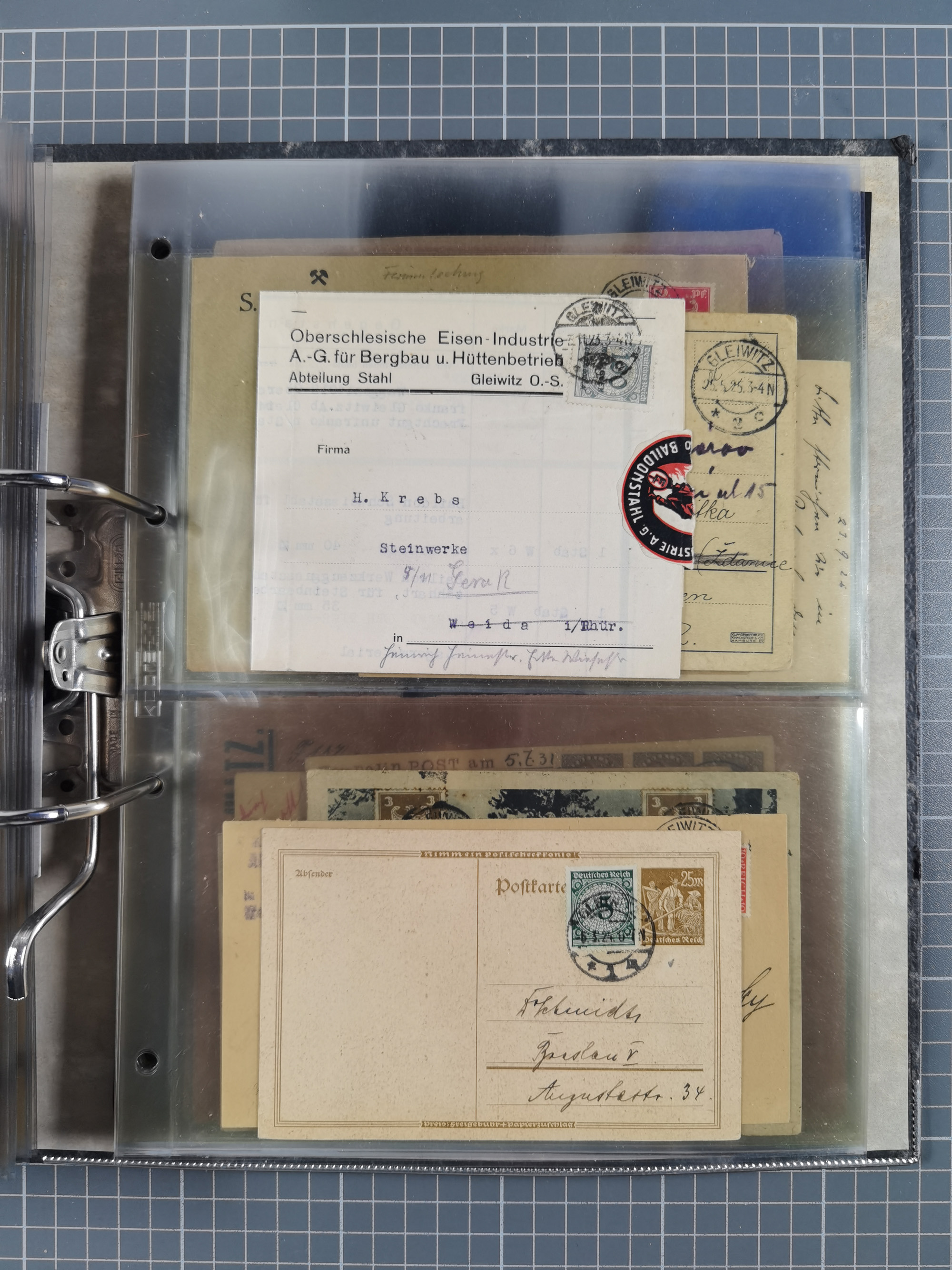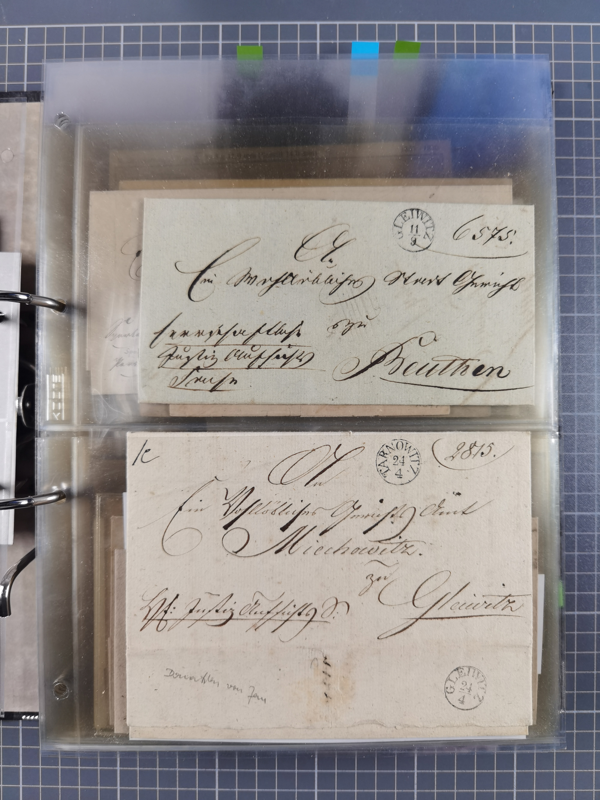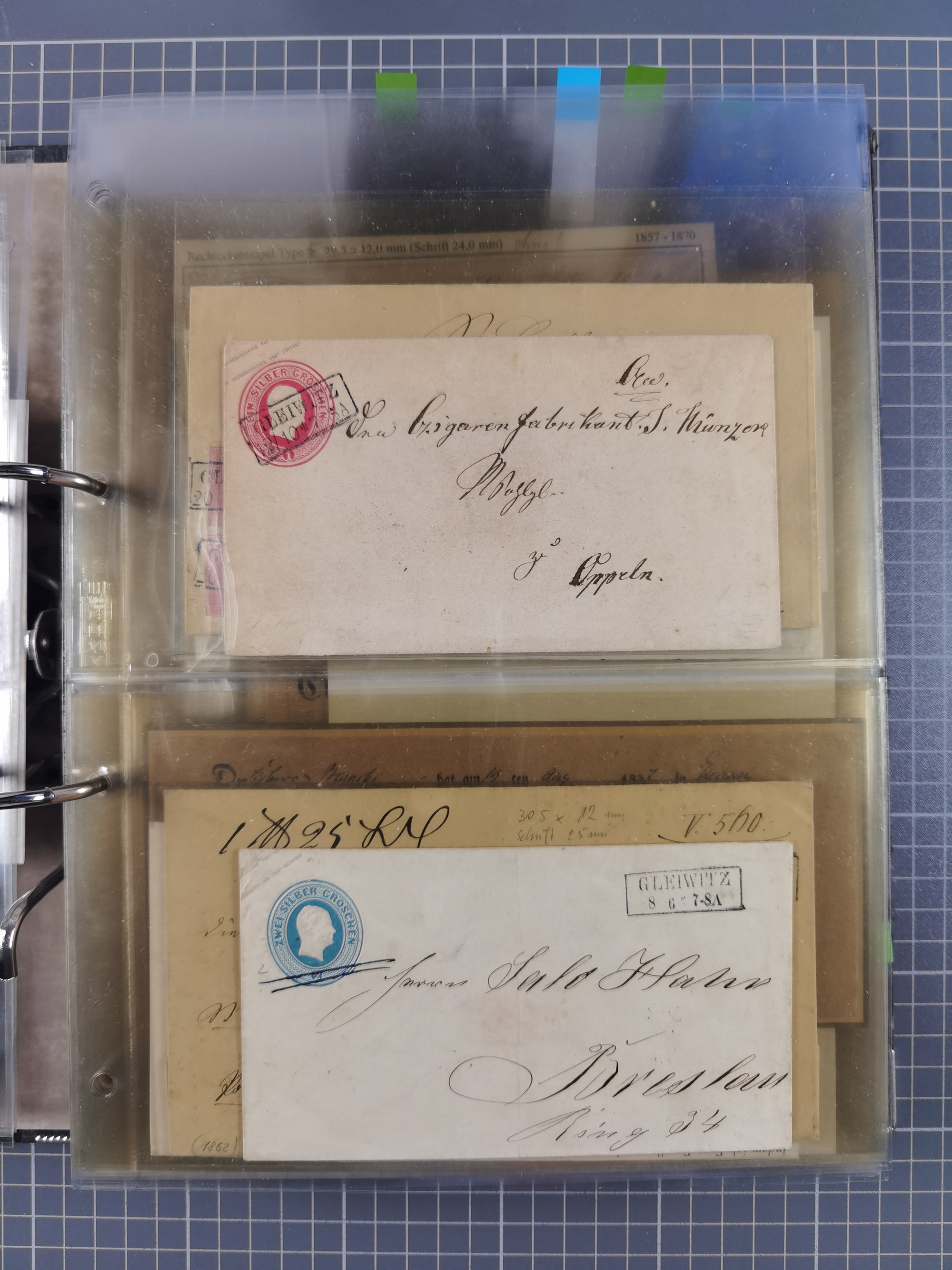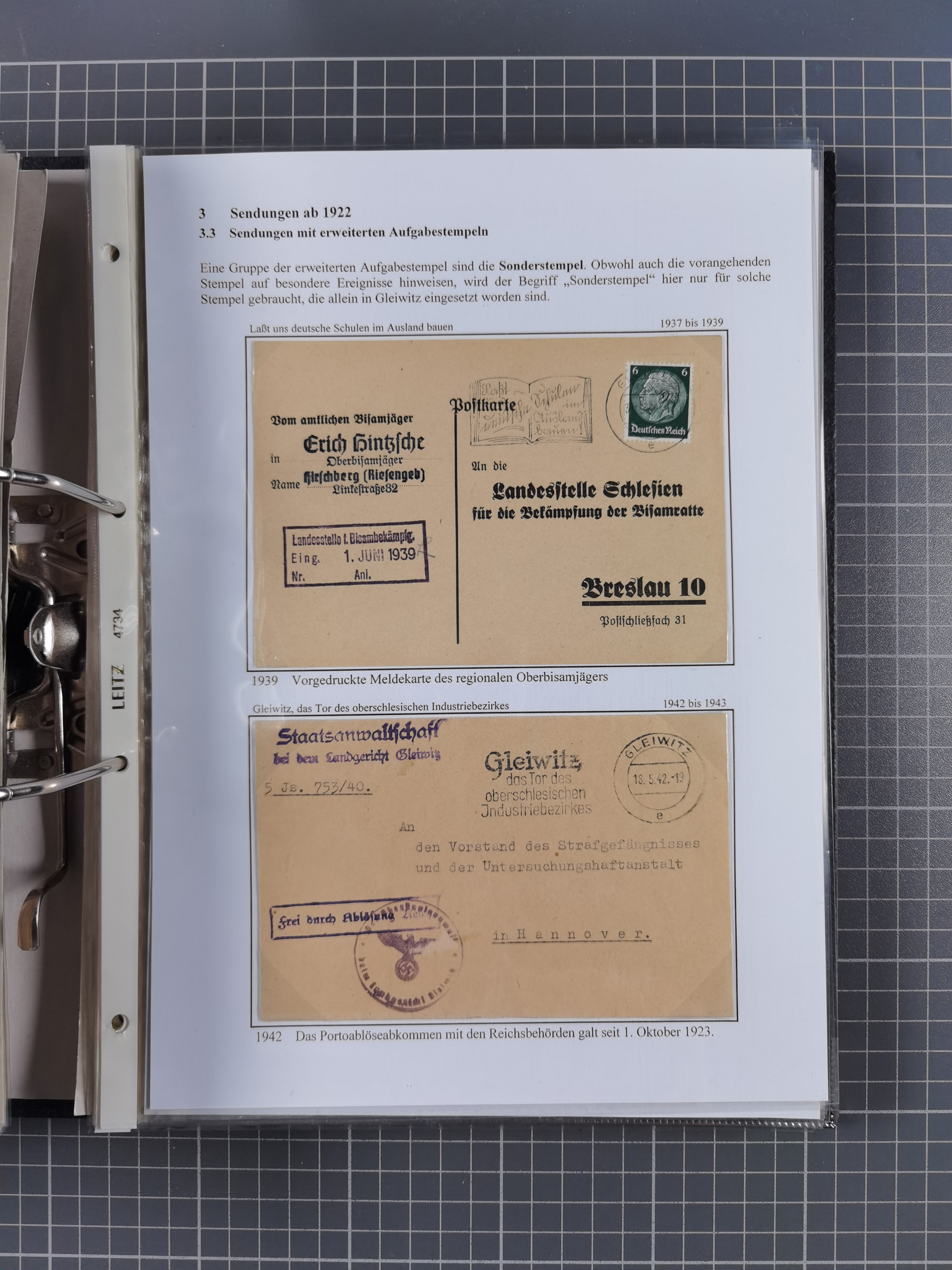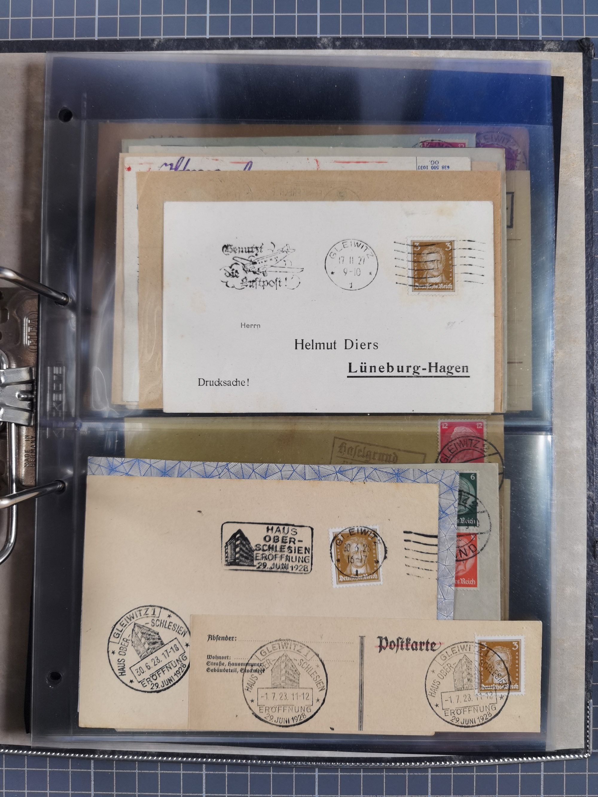 GLEIWITZ: 1817/1950 (ca.), ausstellungsmäßig aufgezogene Sammlung mit reichhaltig zusätzlichem Material, überschlägig rund 350 Belege, dabei Preußen-Nummernstempel auf GSU, Teilfranco-Belege, NDP GAA6 auf Brief, Auslandspost, viel Oberschlesien mit Paketkarten, Flug- und Zeppelin Post, etc. etc. Ein schönes und interessantes Objekt