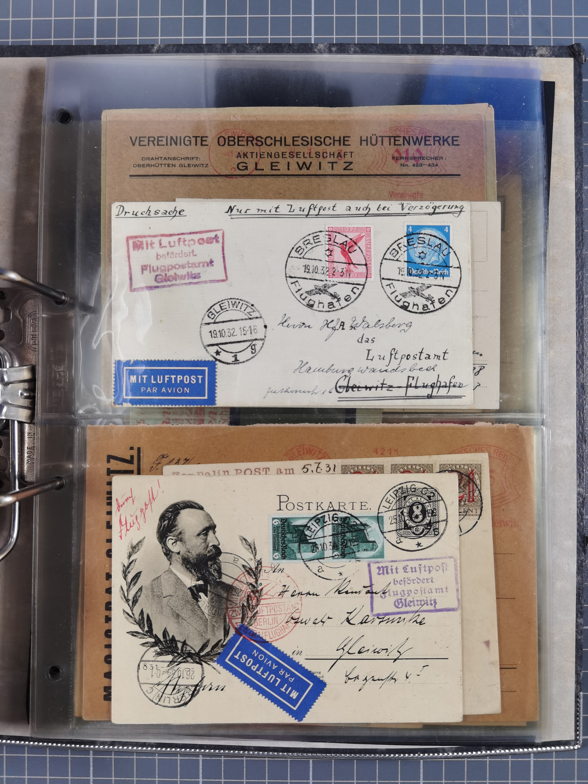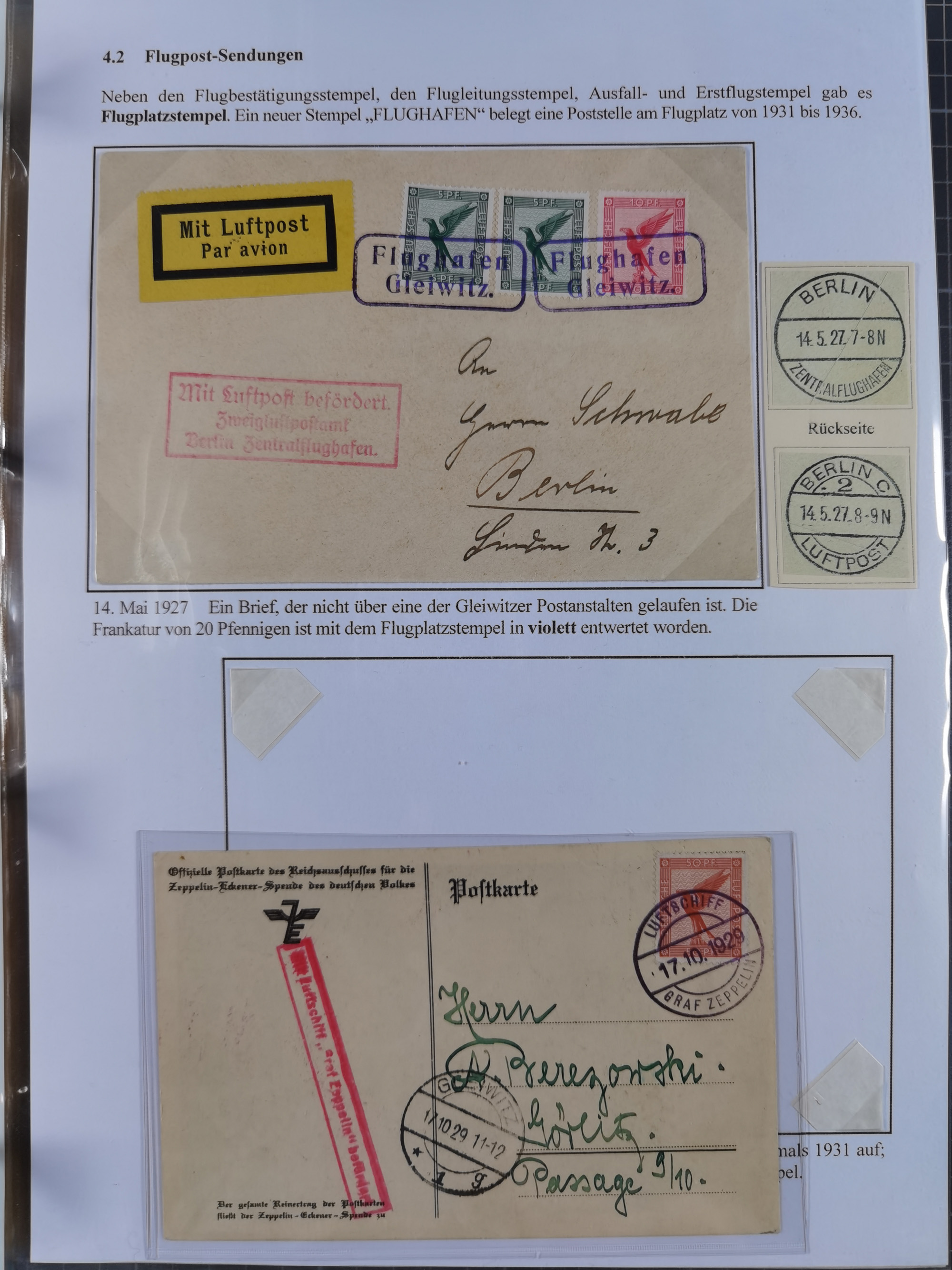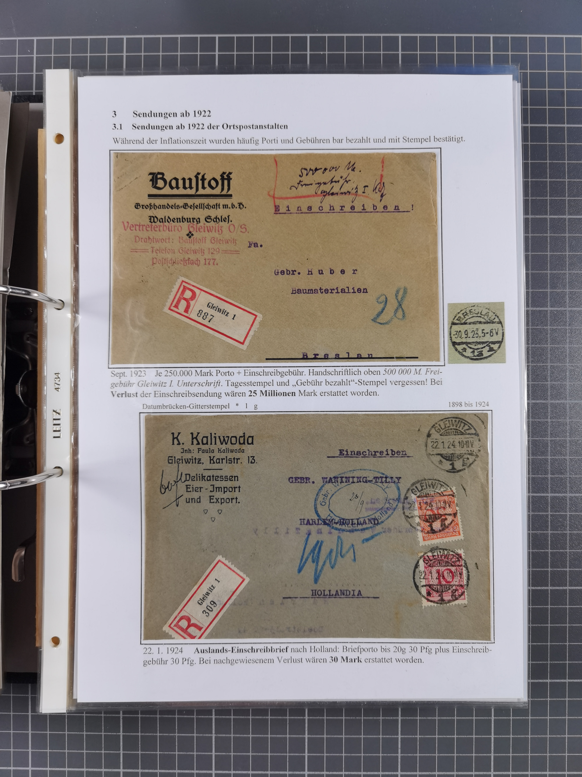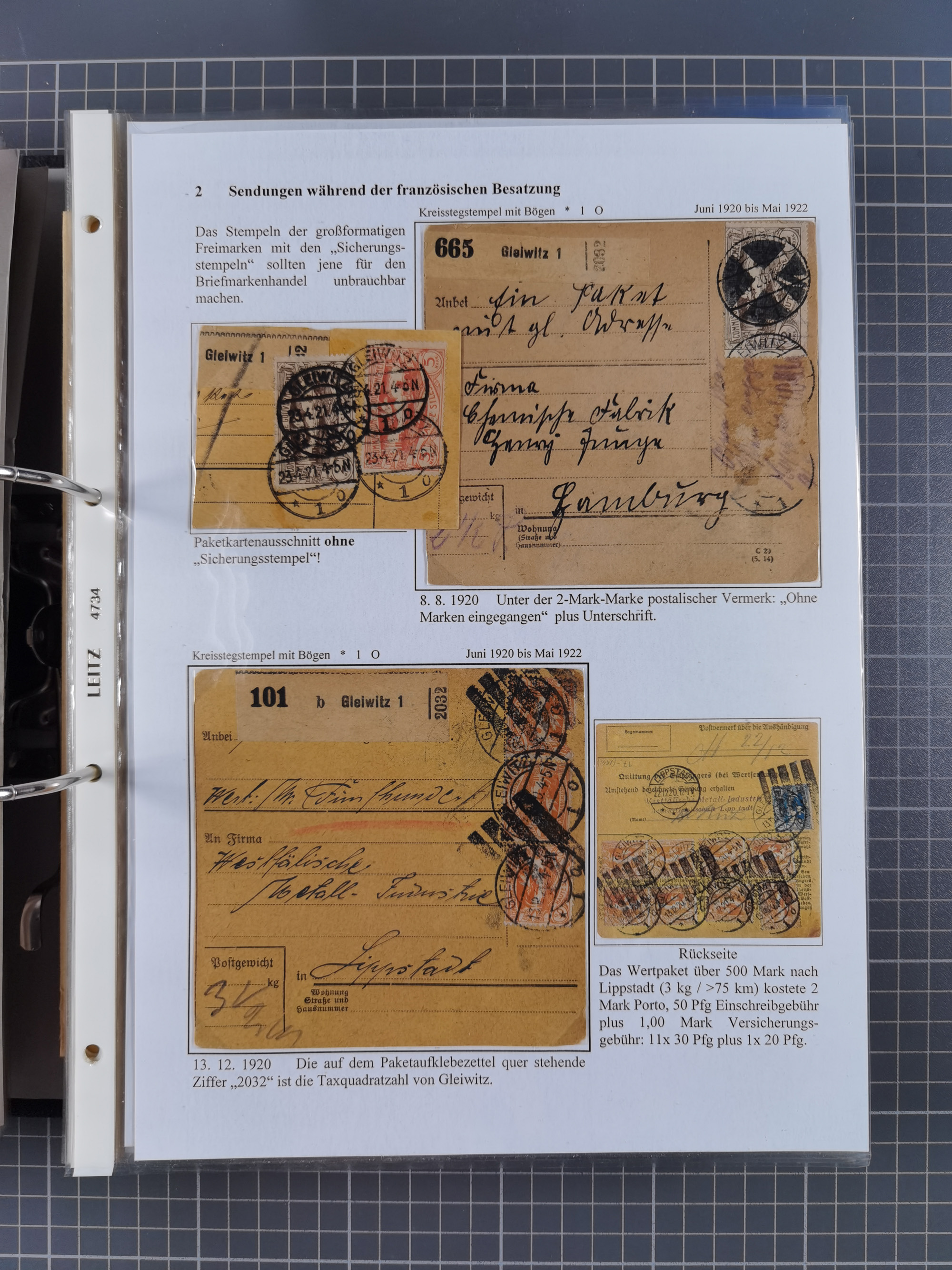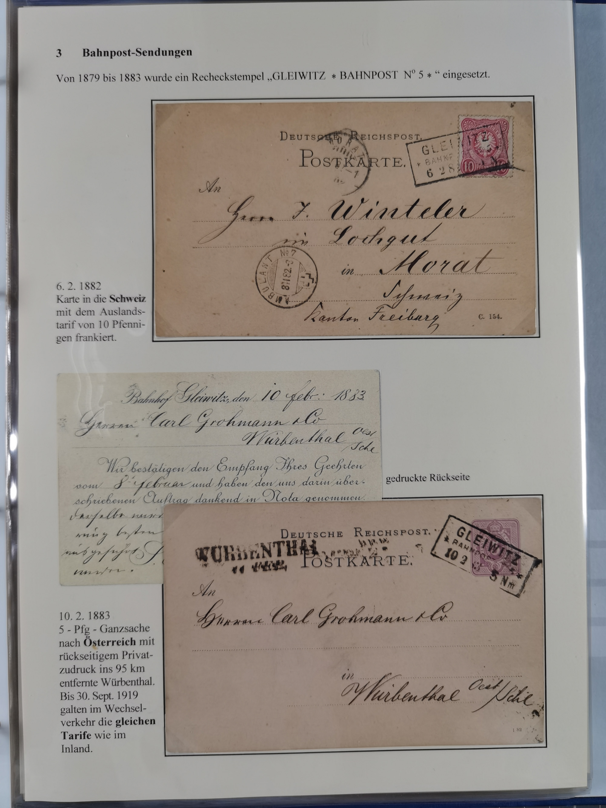 GLEIWITZ: 1817/1950 (ca.), ausstellungsmäßig aufgezogene Sammlung mit reichhaltig zusätzlichem Material, überschlägig rund 350 Belege, dabei Preußen-Nummernstempel auf GSU, Teilfranco-Belege, NDP GAA6 auf Brief, Auslandspost, viel Oberschlesien mit Paketkarten, Flug- und Zeppelin Post, etc. etc. Ein schönes und interessantes Objekt