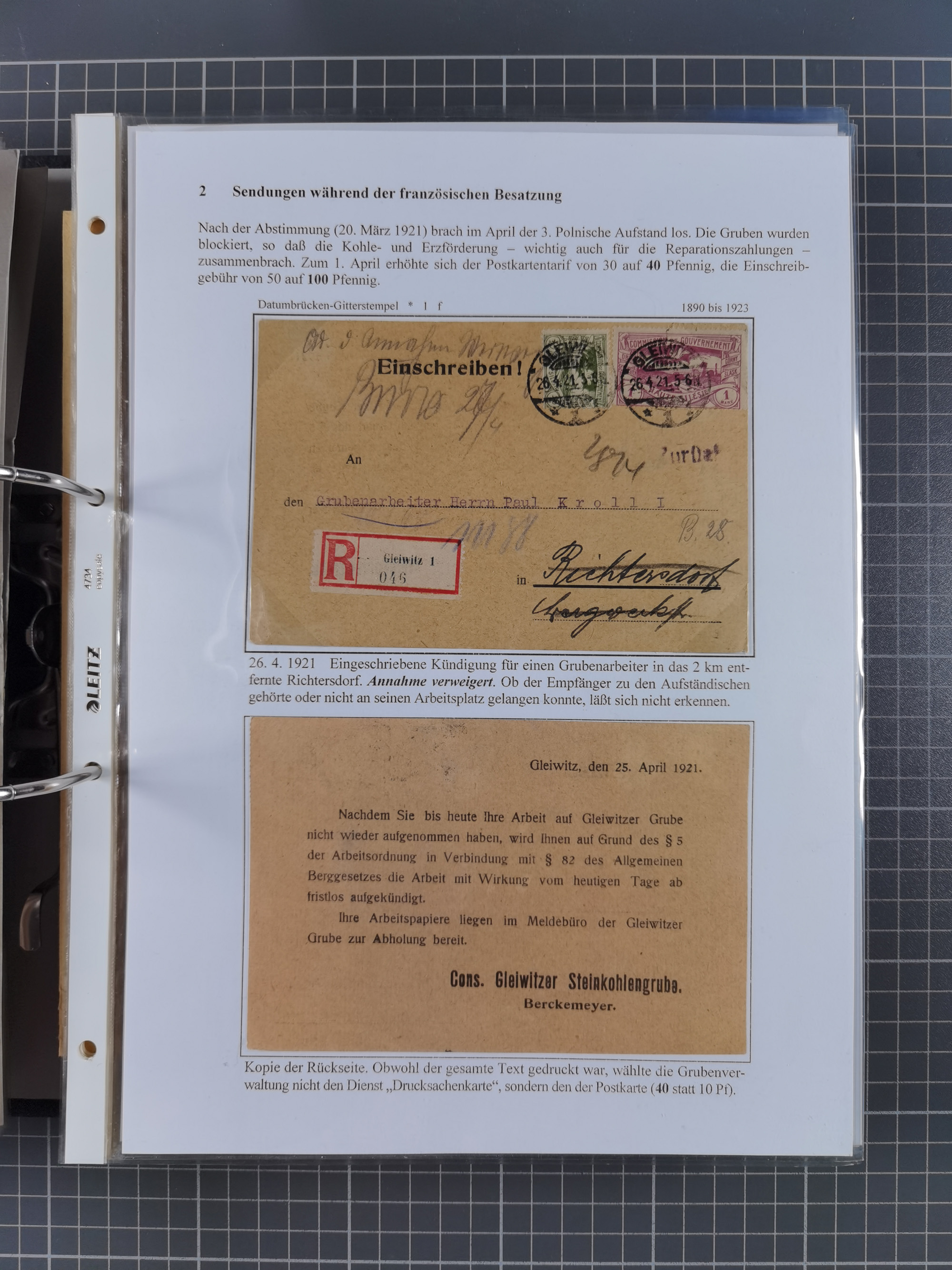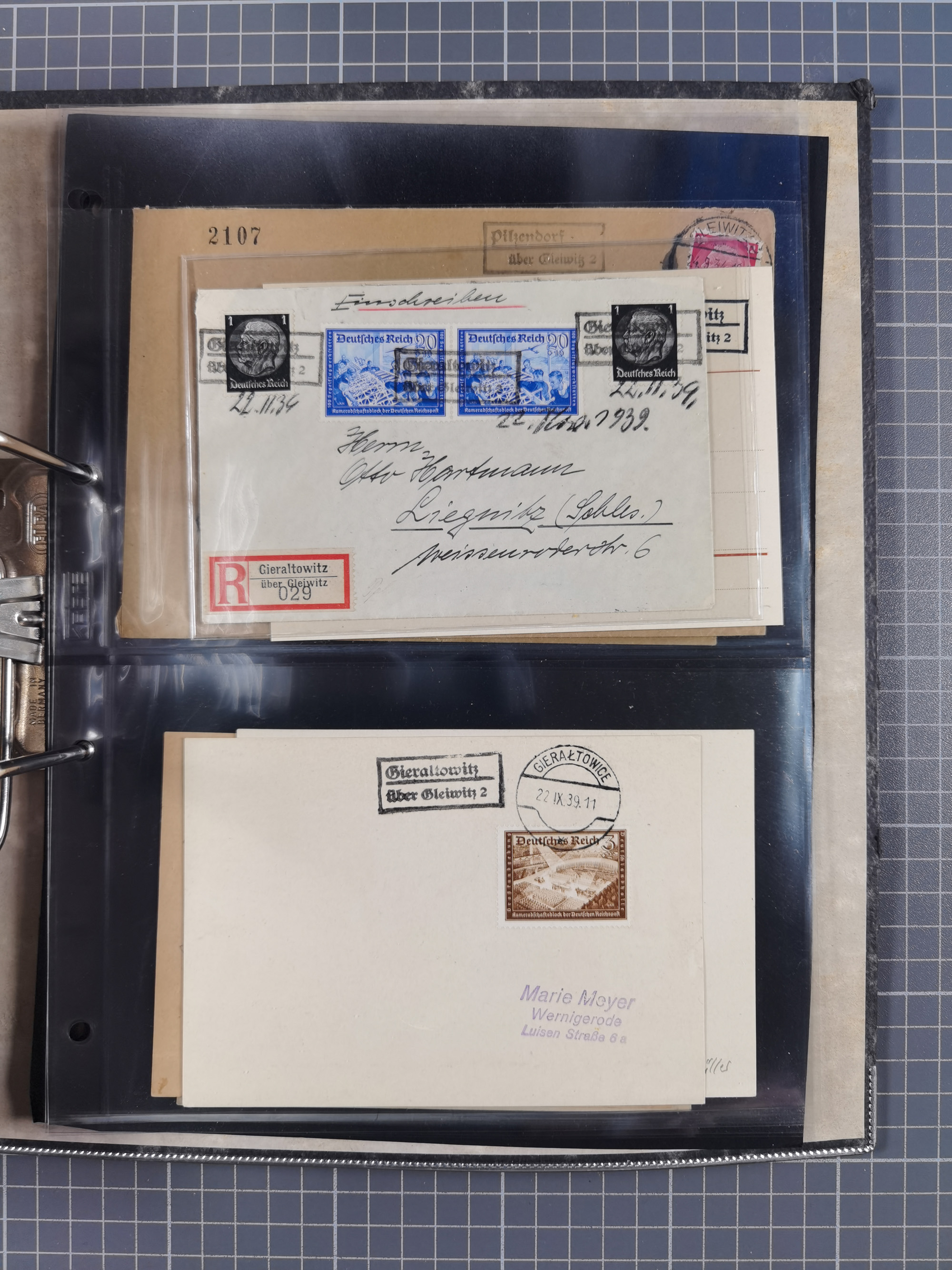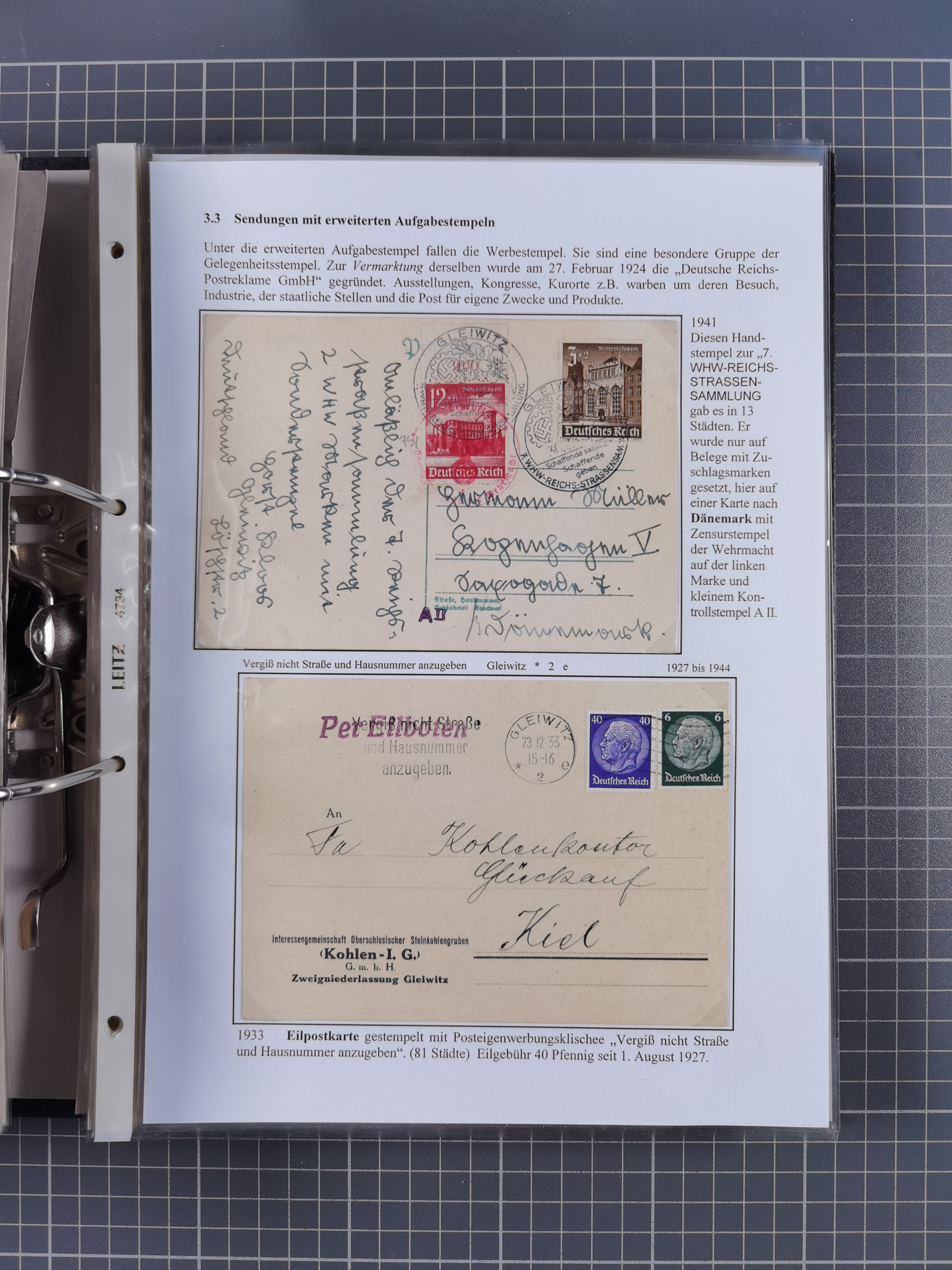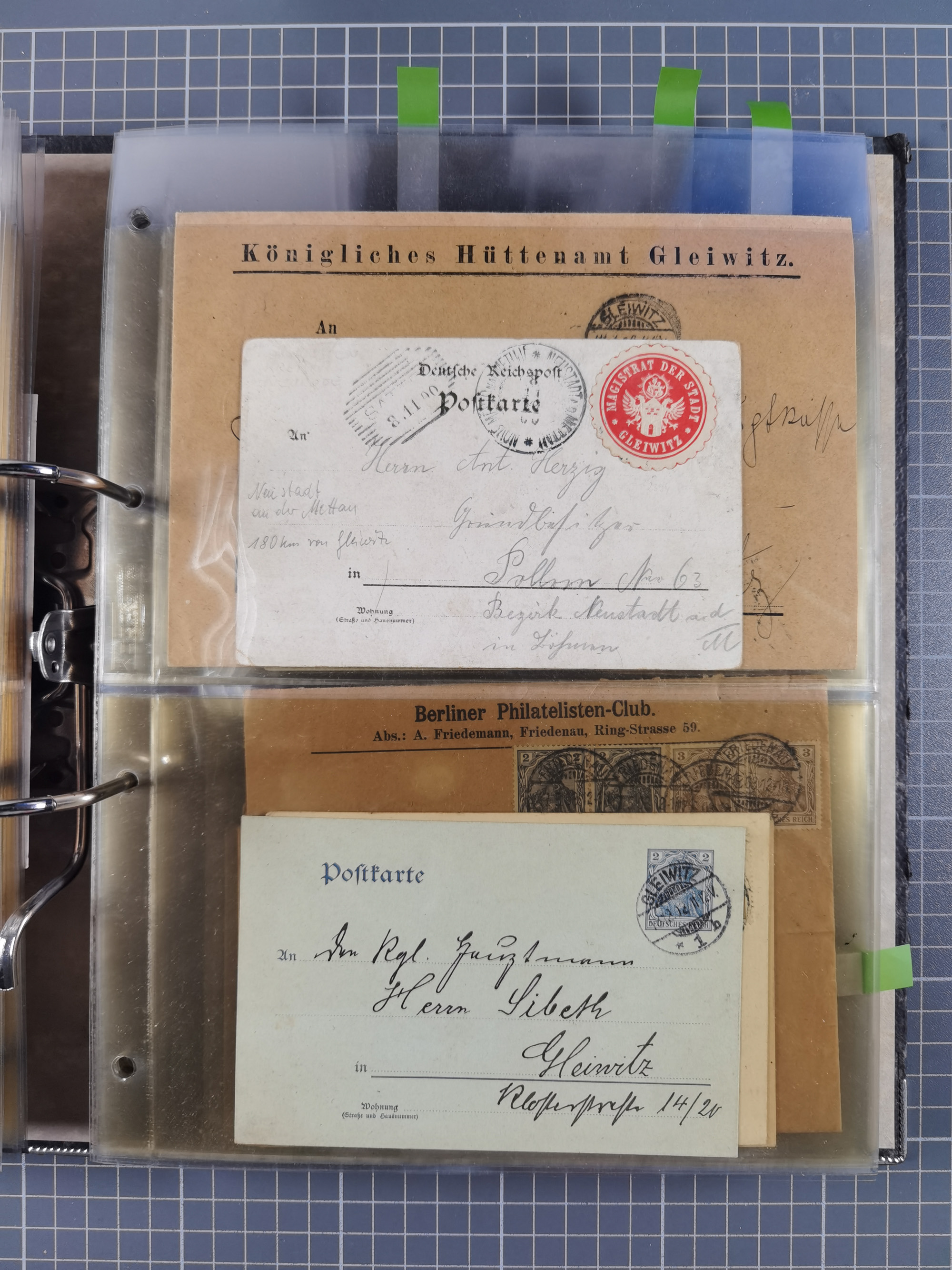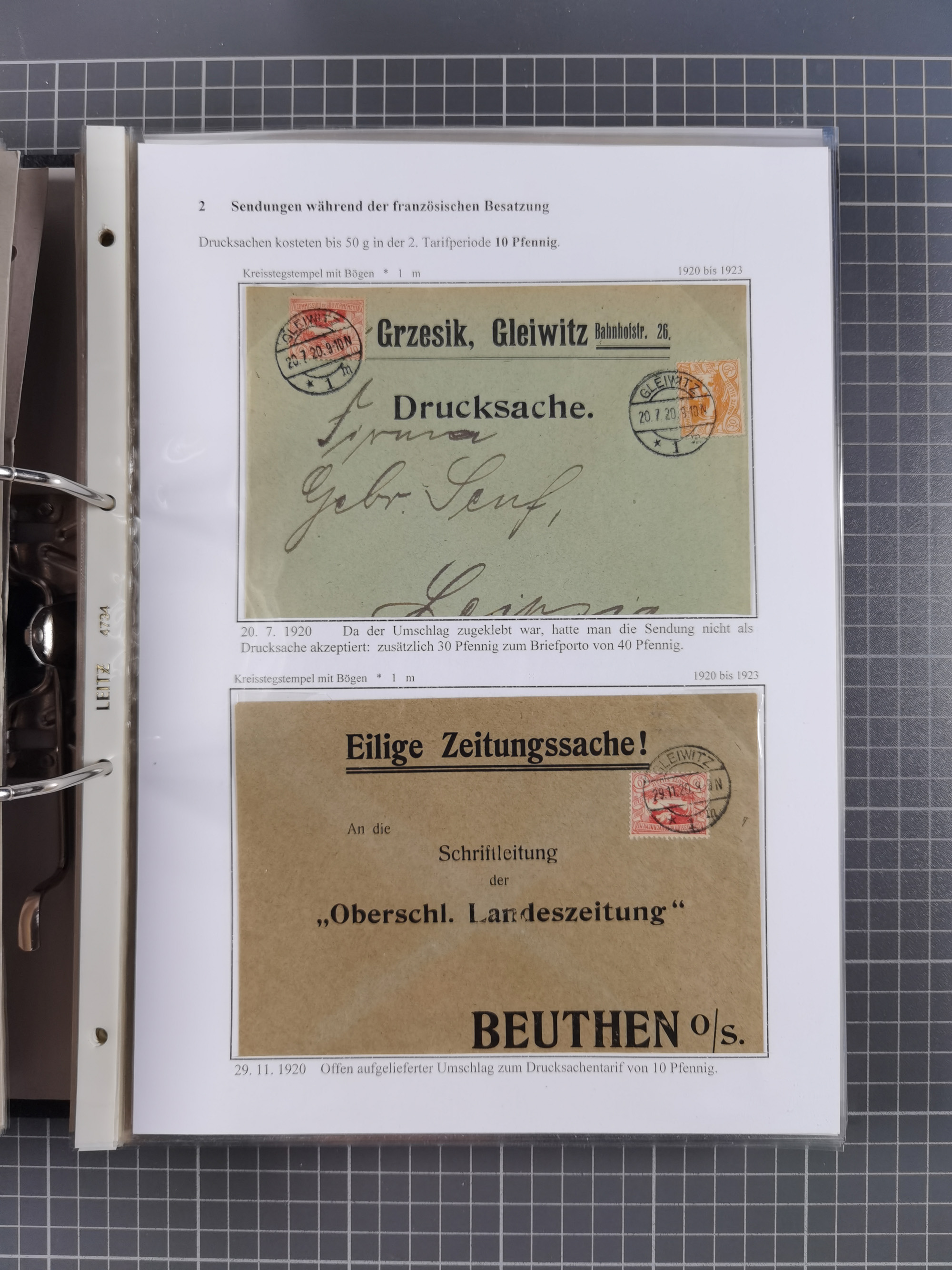 GLEIWITZ: 1817/1950 (ca.), ausstellungsmäßig aufgezogene Sammlung mit reichhaltig zusätzlichem Material, überschlägig rund 350 Belege, dabei Preußen-Nummernstempel auf GSU, Teilfranco-Belege, NDP GAA6 auf Brief, Auslandspost, viel Oberschlesien mit Paketkarten, Flug- und Zeppelin Post, etc. etc. Ein schönes und interessantes Objekt
