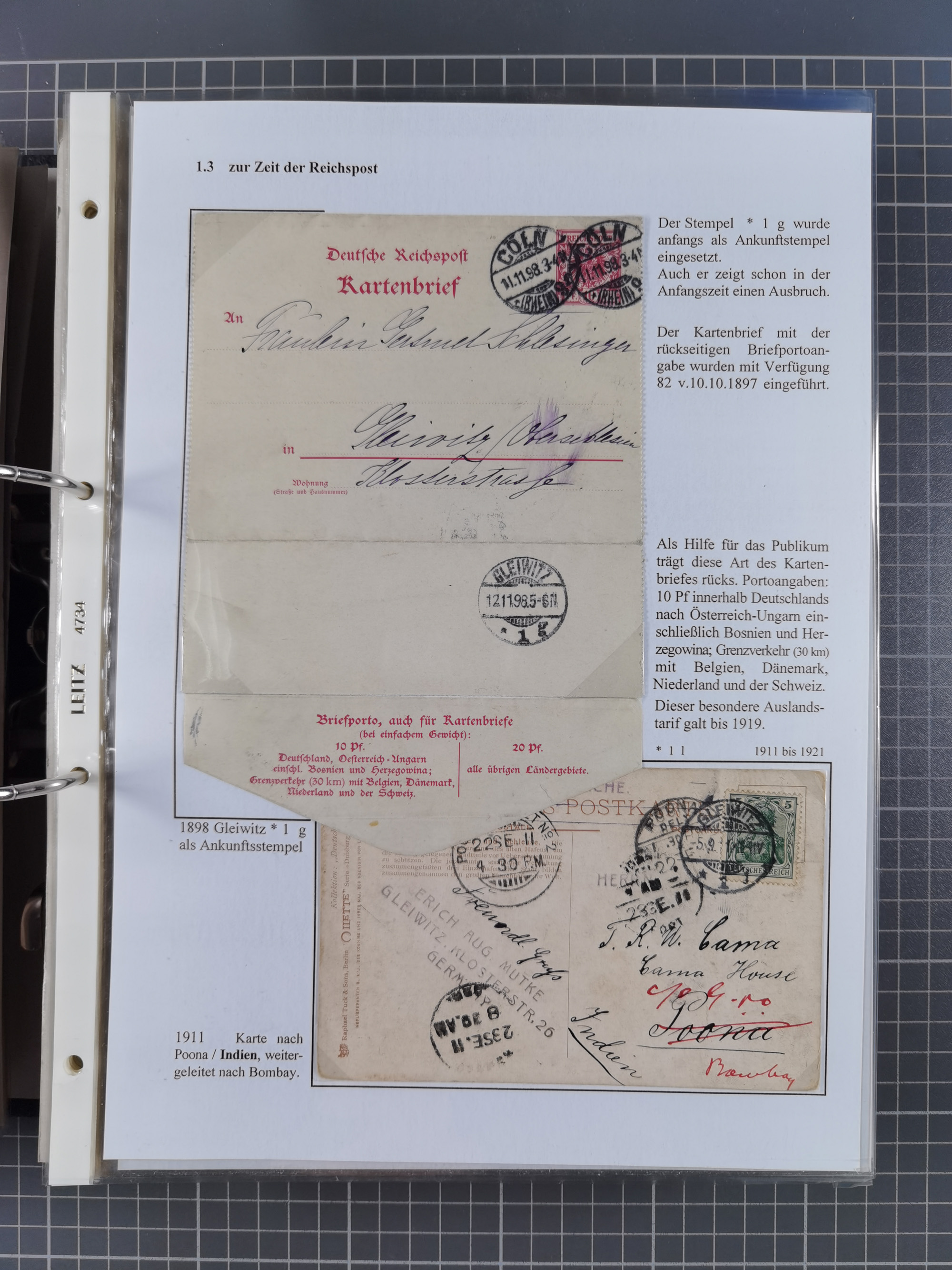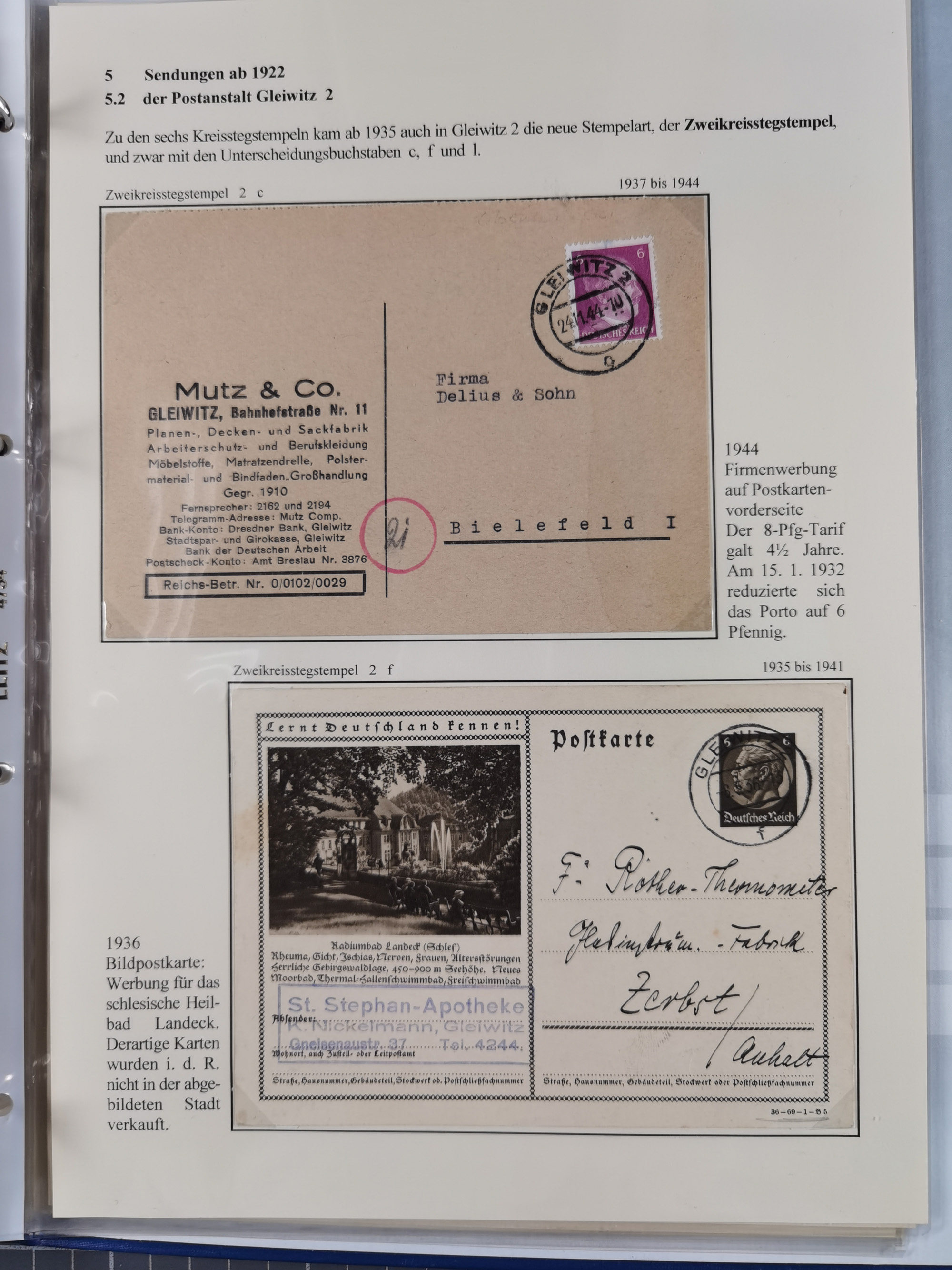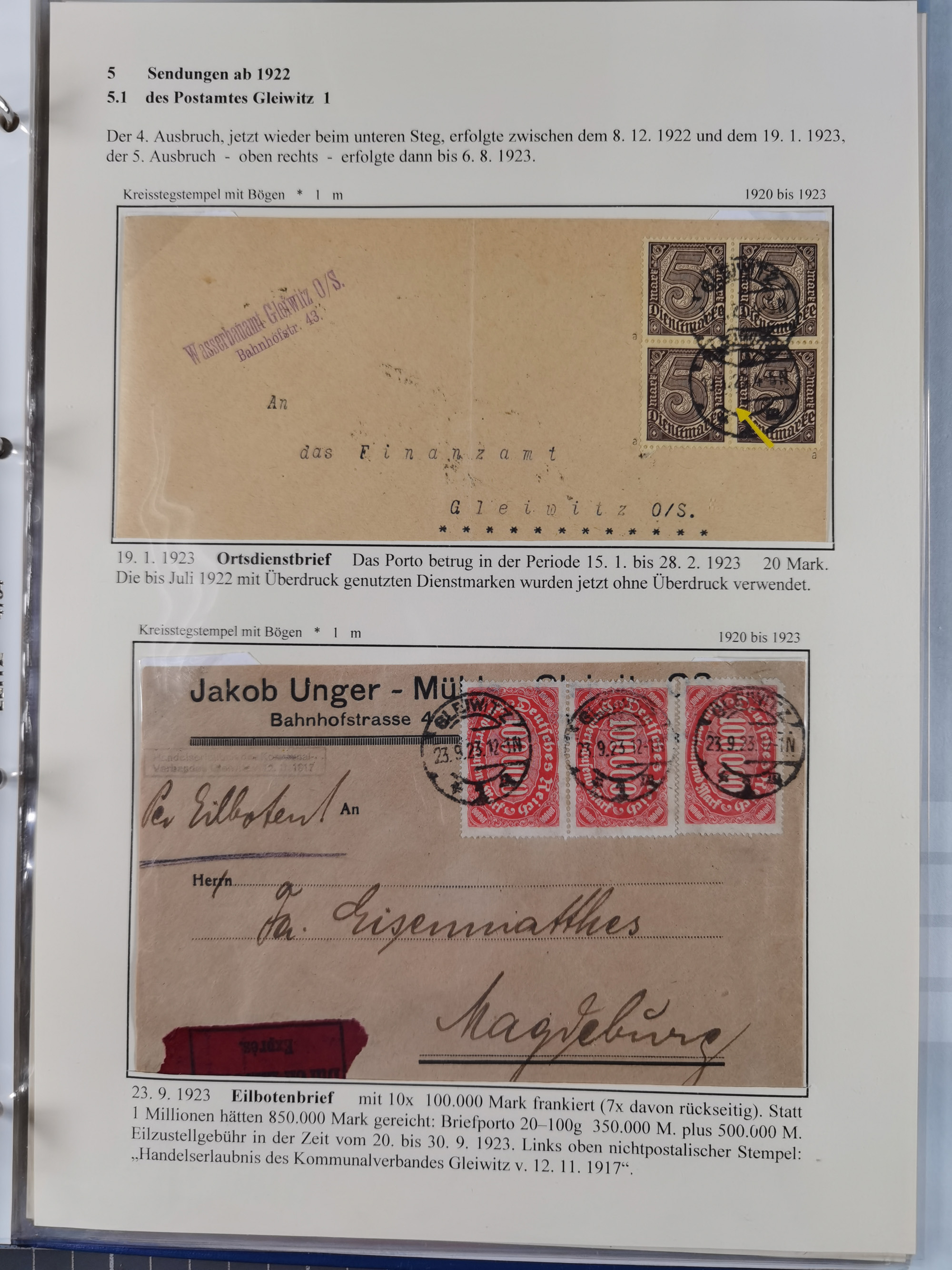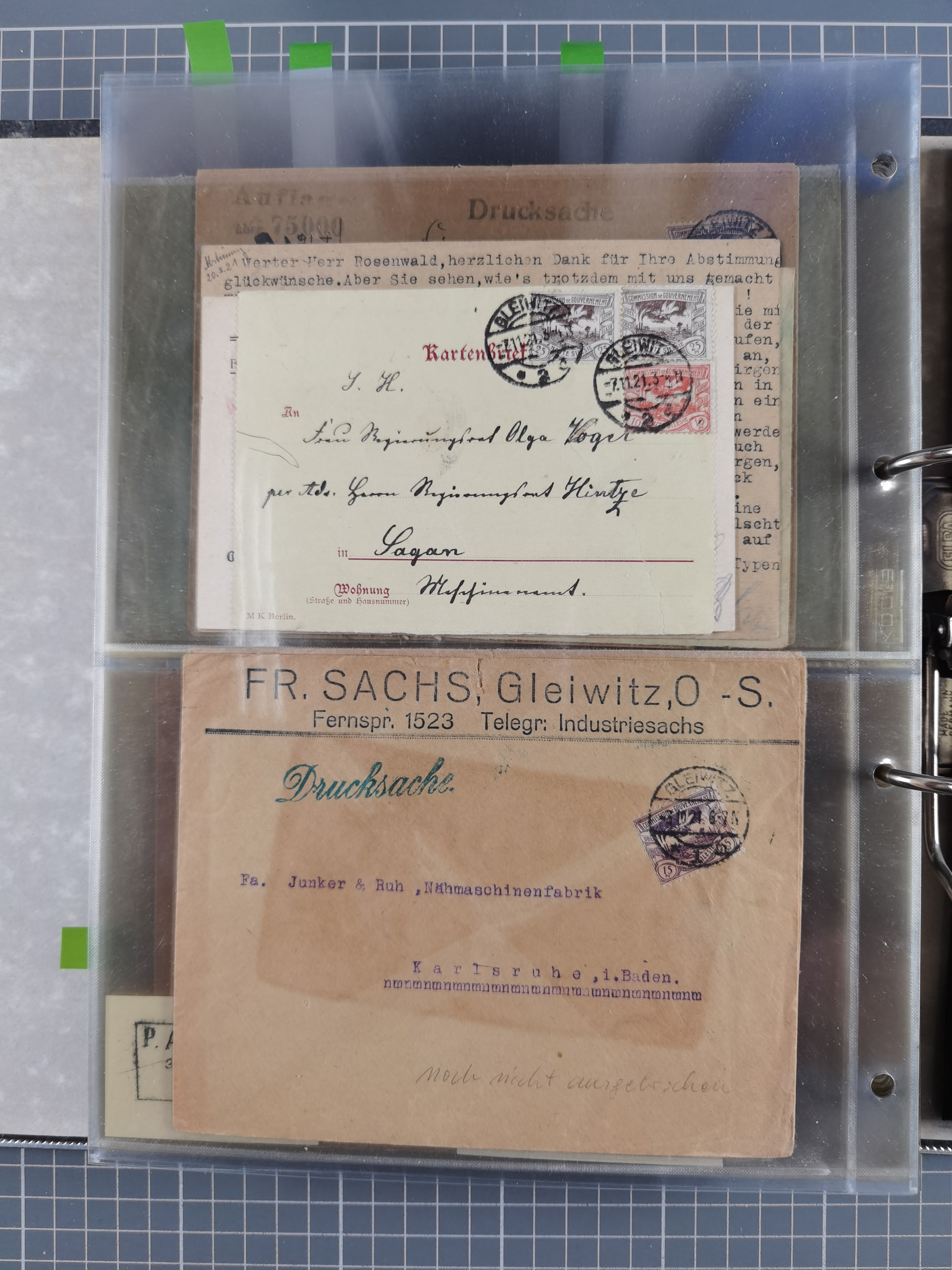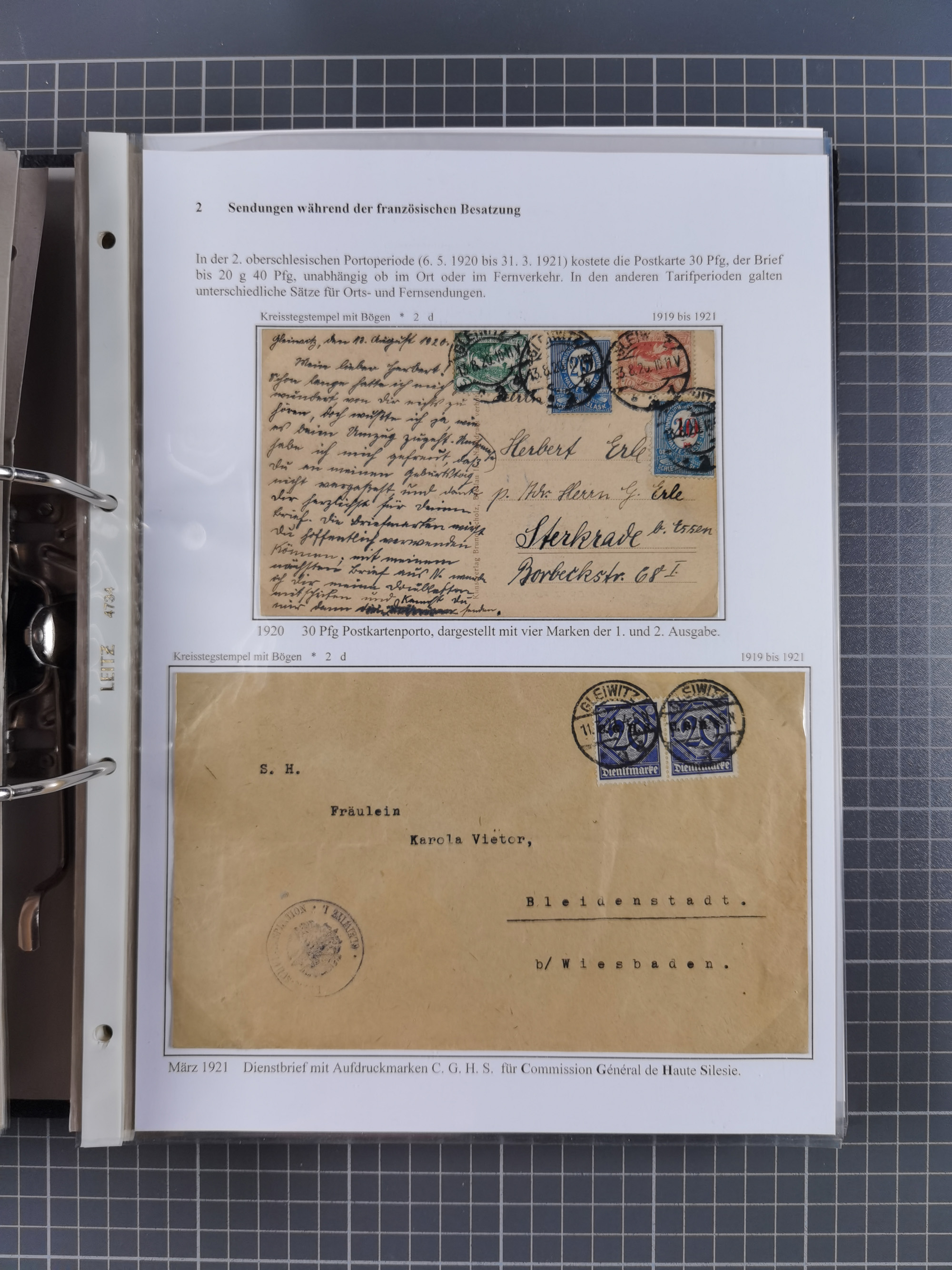 GLEIWITZ: 1817/1950 (ca.), ausstellungsmäßig aufgezogene Sammlung mit reichhaltig zusätzlichem Material, überschlägig rund 350 Belege, dabei Preußen-Nummernstempel auf GSU, Teilfranco-Belege, NDP GAA6 auf Brief, Auslandspost, viel Oberschlesien mit Paketkarten, Flug- und Zeppelin Post, etc. etc. Ein schönes und interessantes Objekt