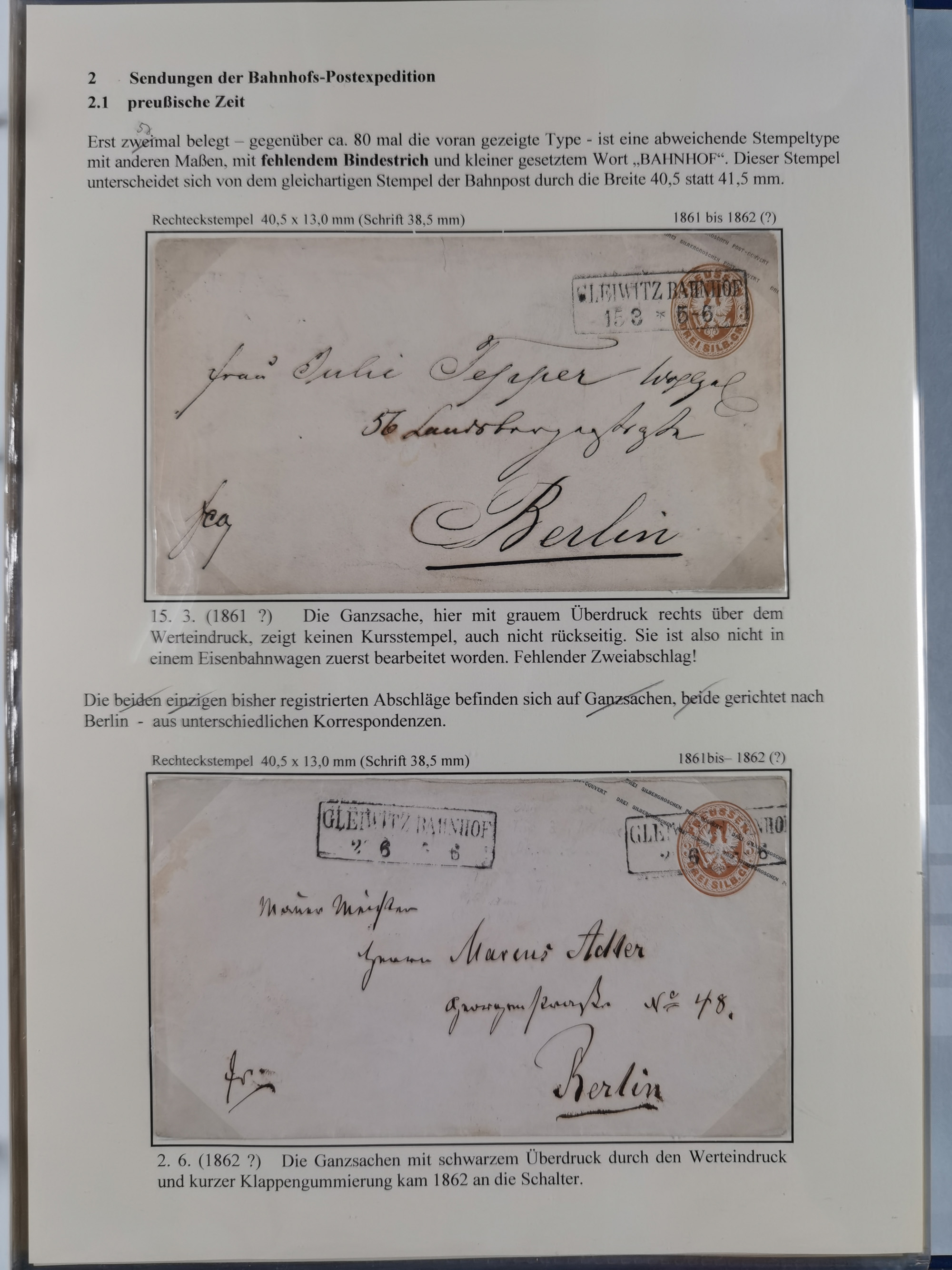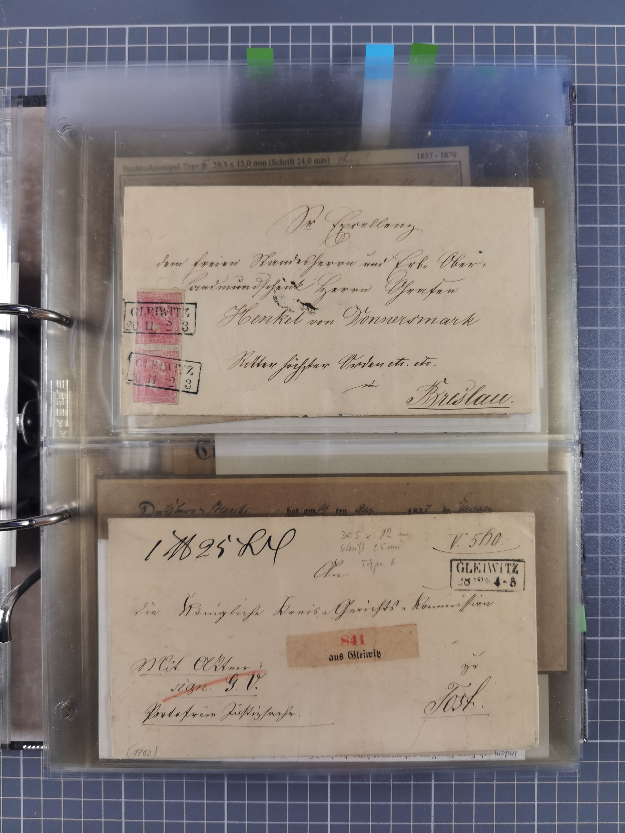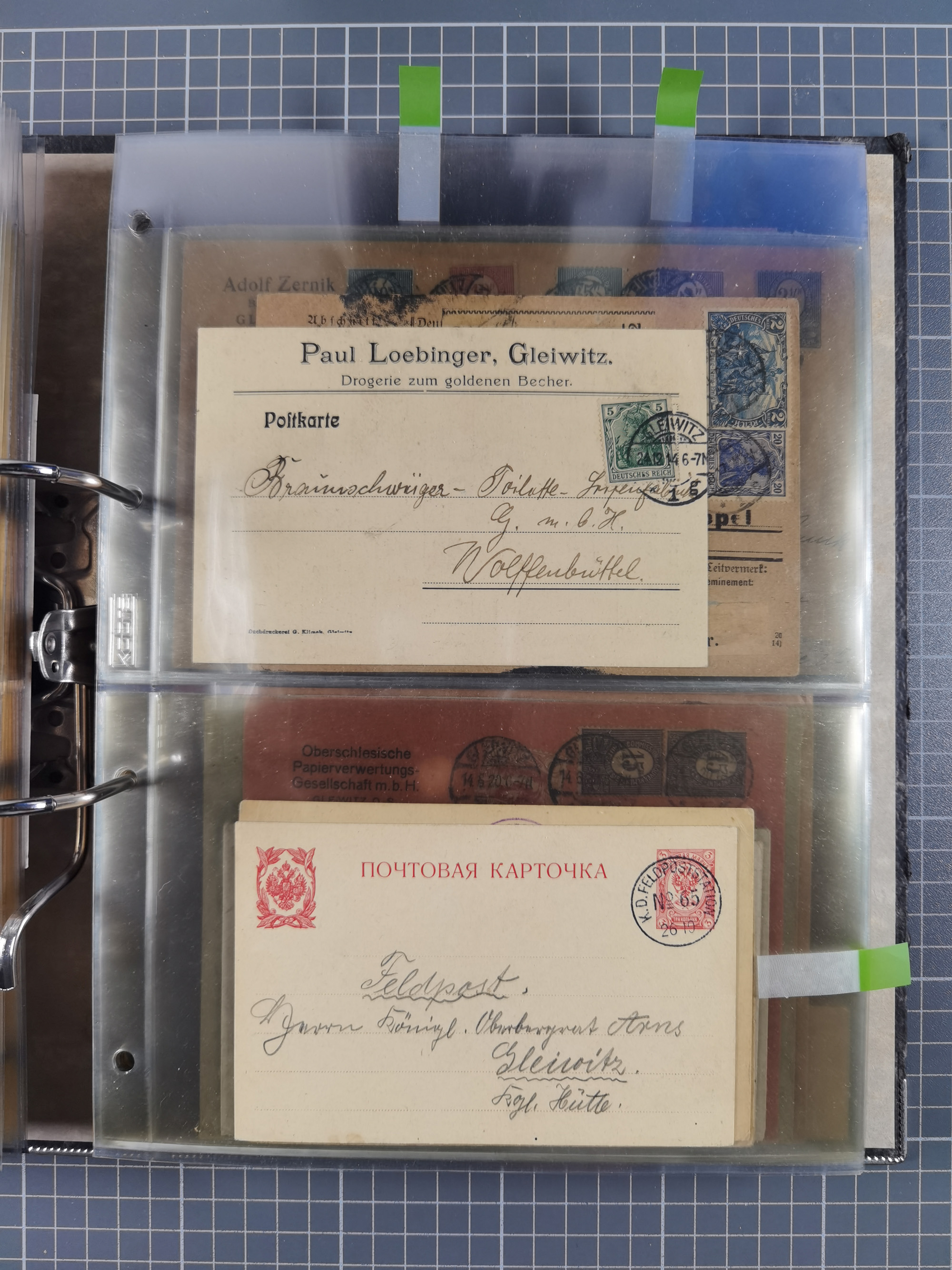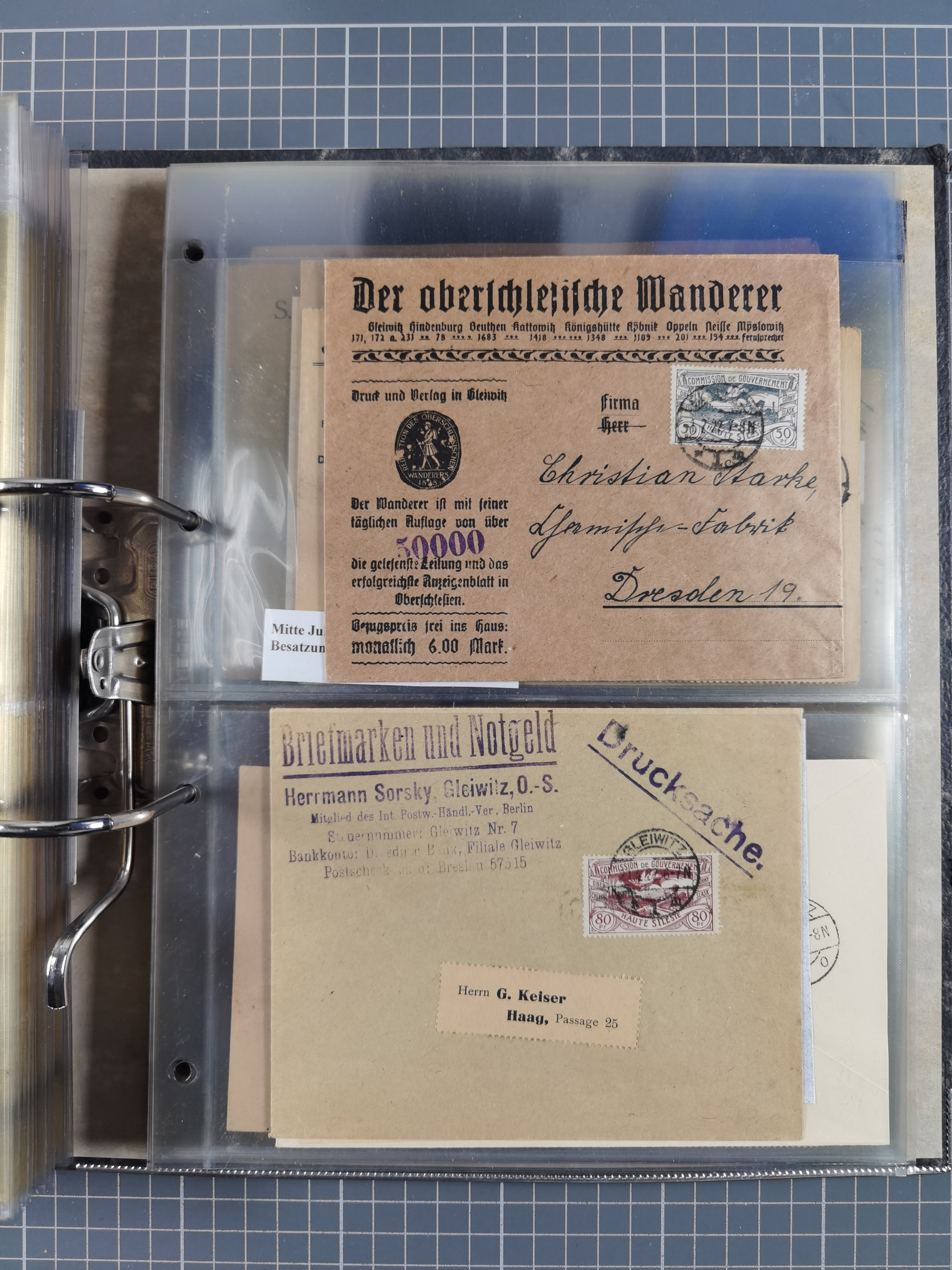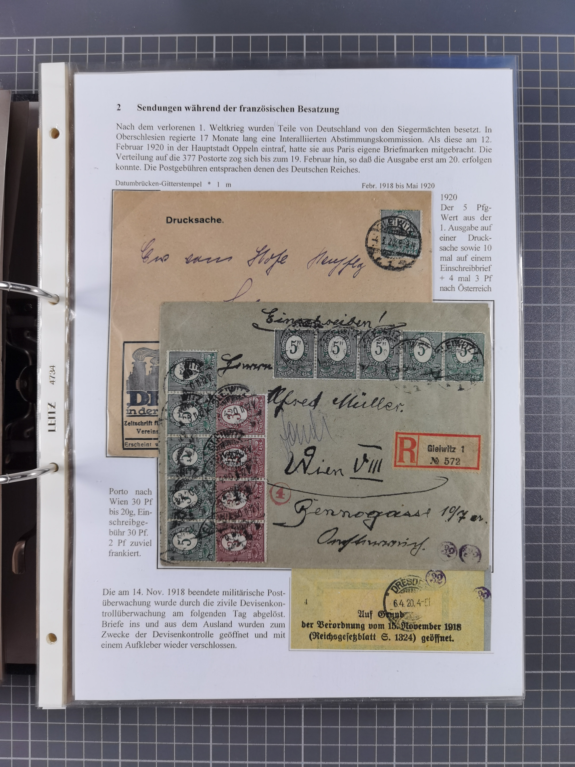 GLEIWITZ: 1817/1950 (ca.), ausstellungsmäßig aufgezogene Sammlung mit reichhaltig zusätzlichem Material, überschlägig rund 350 Belege, dabei Preußen-Nummernstempel auf GSU, Teilfranco-Belege, NDP GAA6 auf Brief, Auslandspost, viel Oberschlesien mit Paketkarten, Flug- und Zeppelin Post, etc. etc. Ein schönes und interessantes Objekt