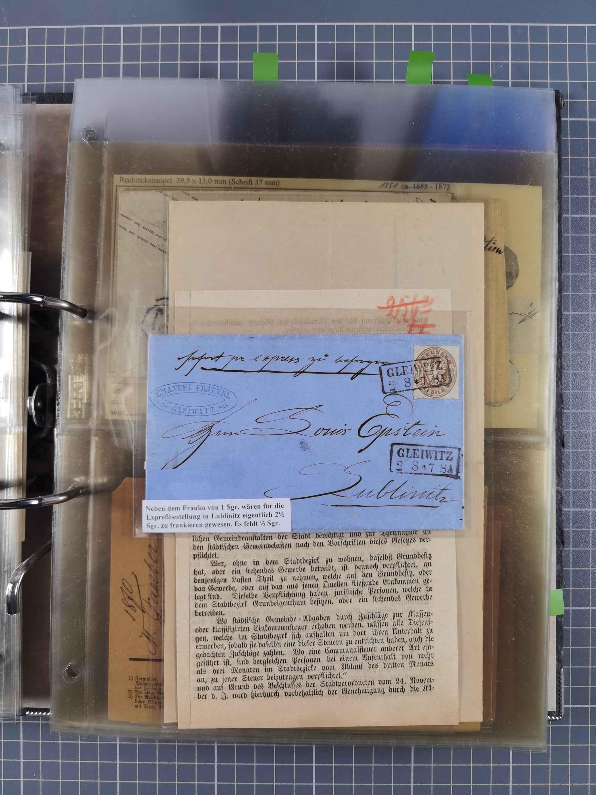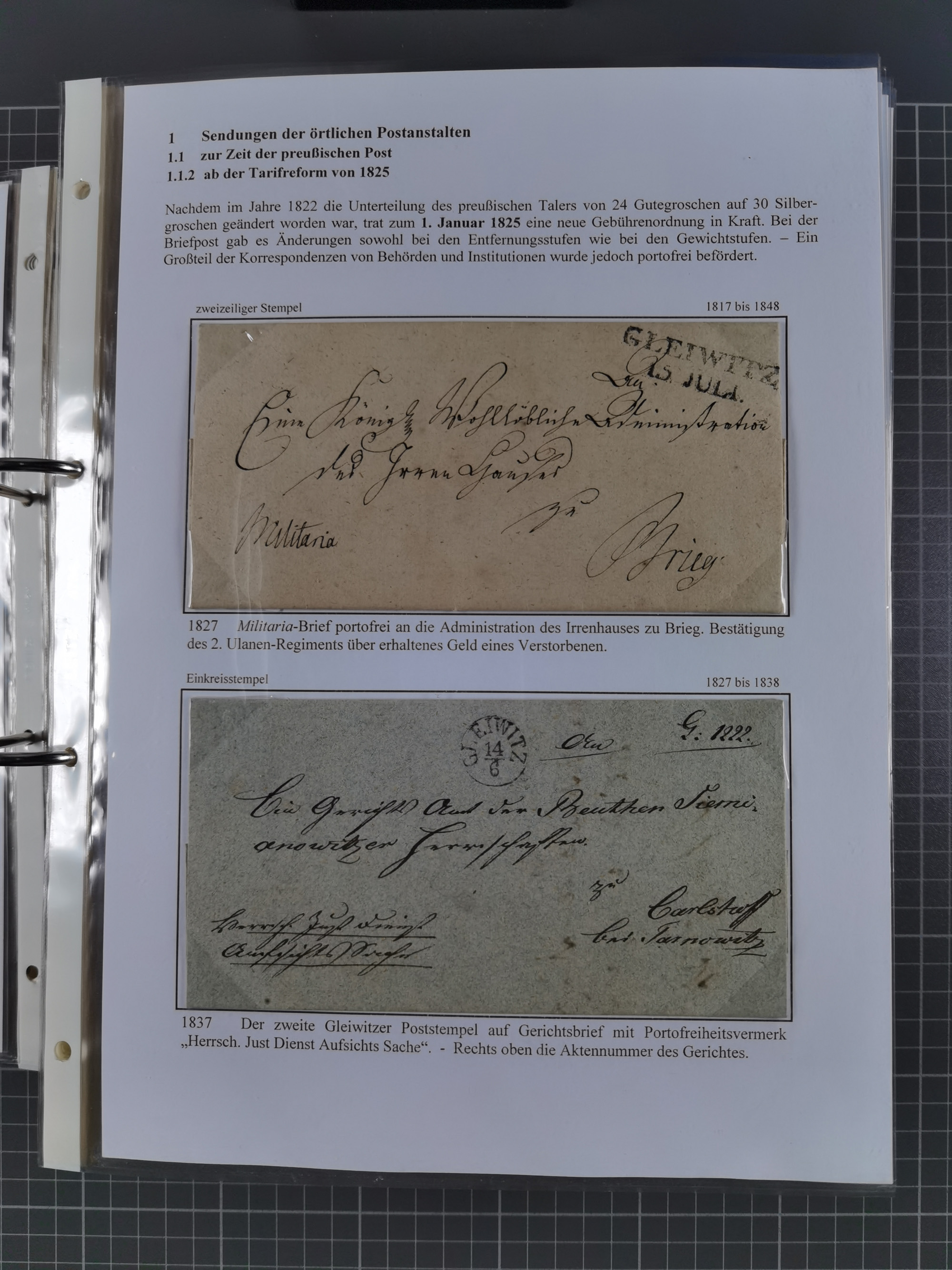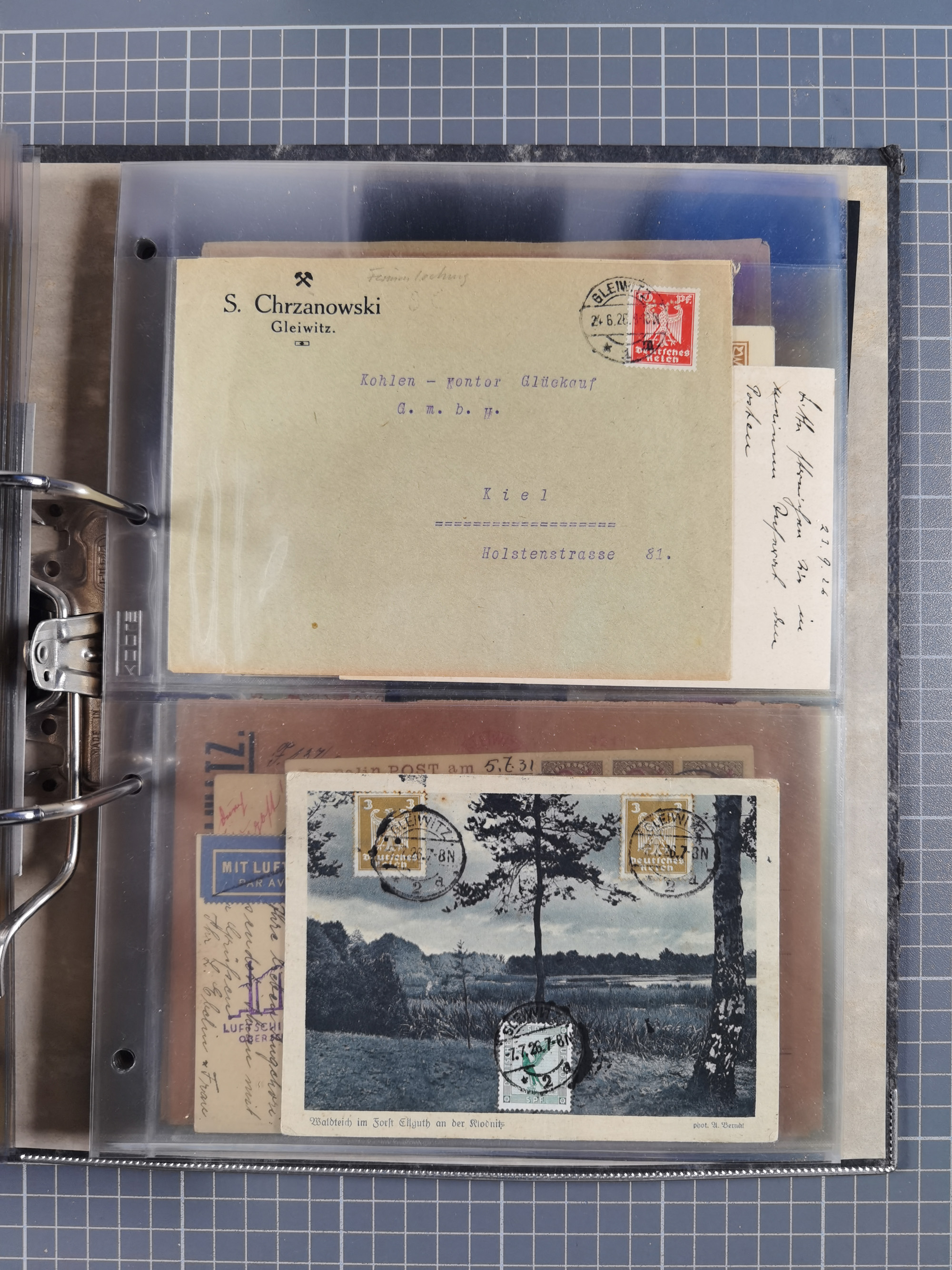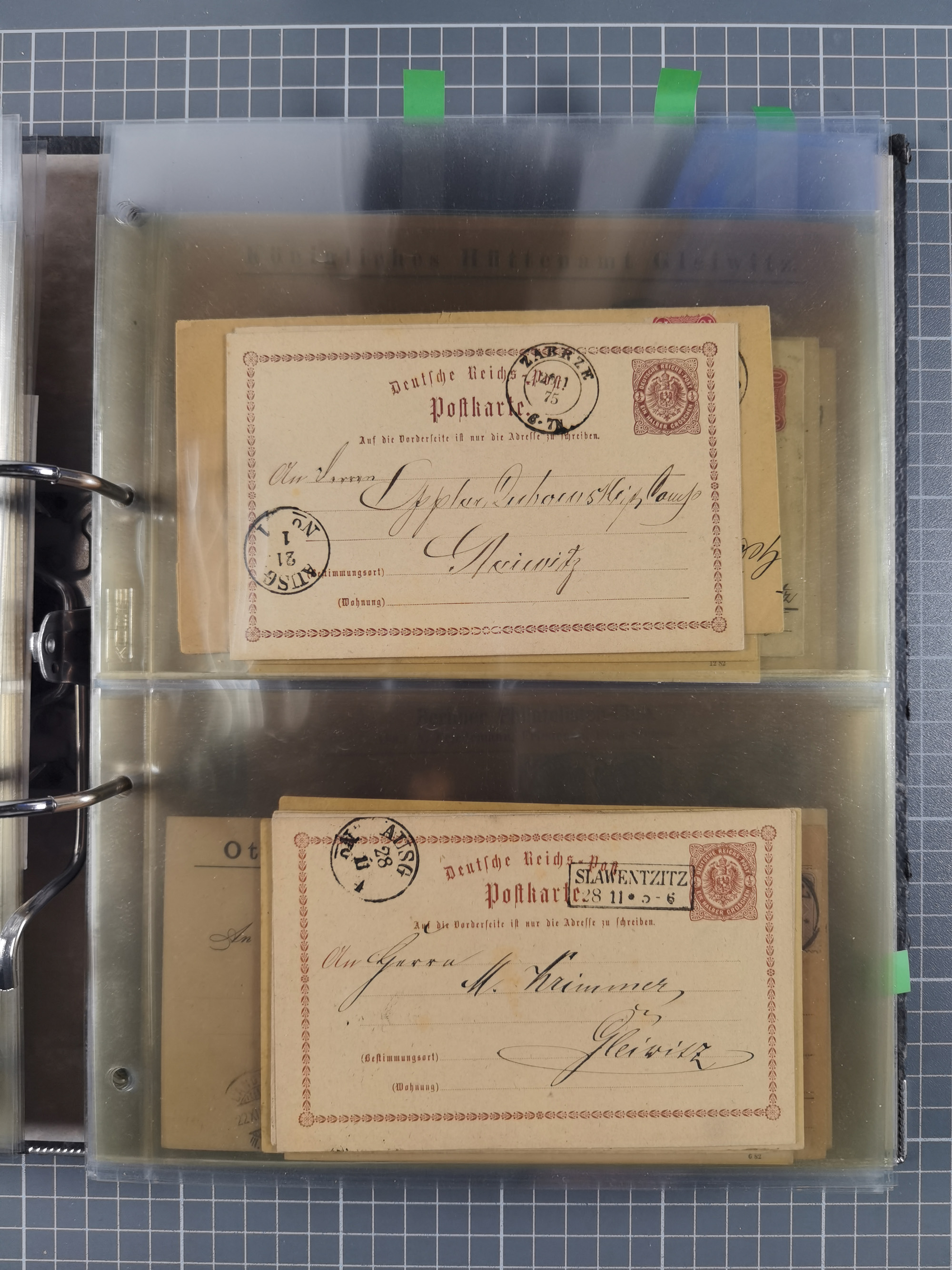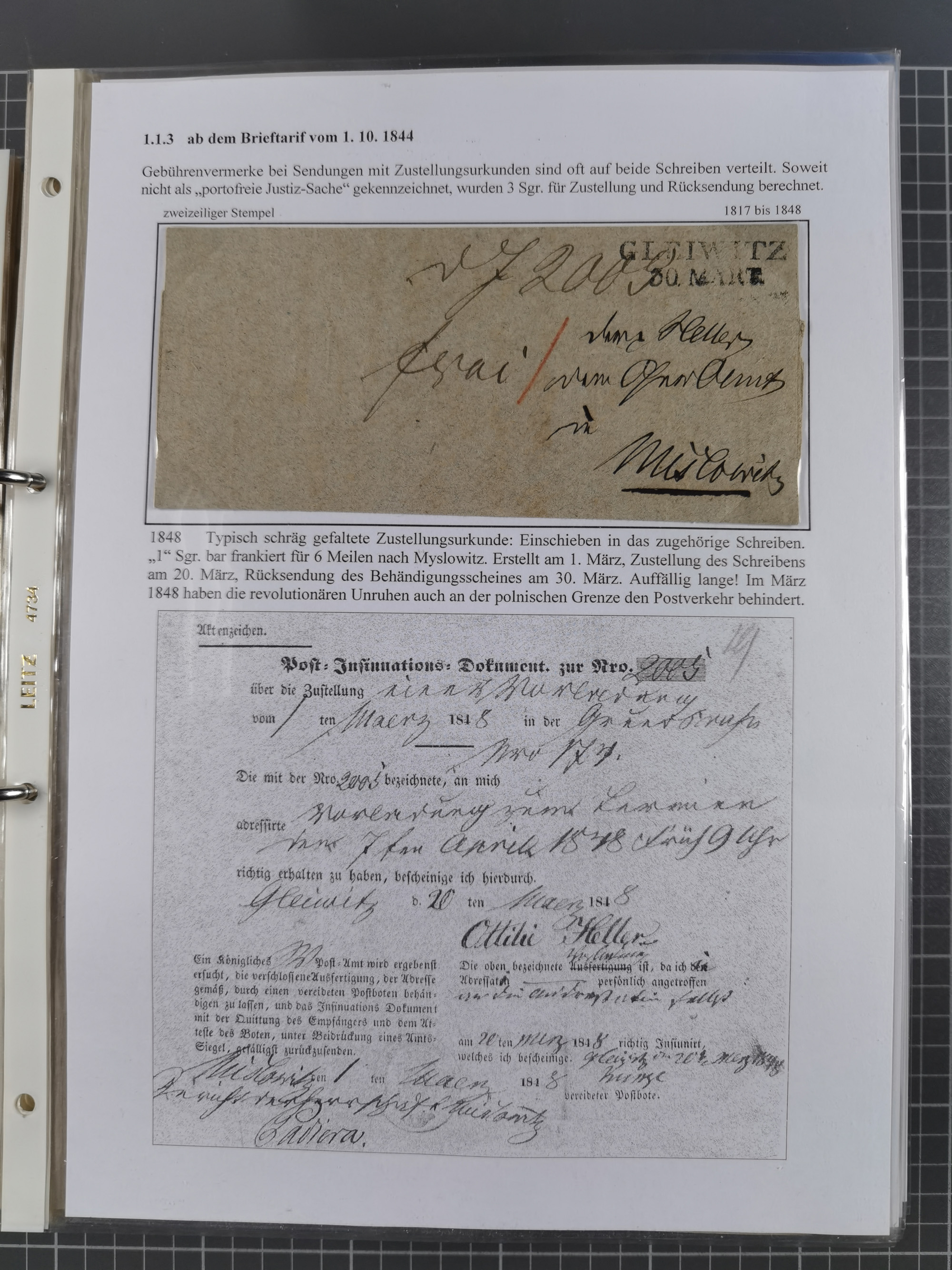 GLEIWITZ: 1817/1950 (ca.), ausstellungsmäßig aufgezogene Sammlung mit reichhaltig zusätzlichem Material, überschlägig rund 350 Belege, dabei Preußen-Nummernstempel auf GSU, Teilfranco-Belege, NDP GAA6 auf Brief, Auslandspost, viel Oberschlesien mit Paketkarten, Flug- und Zeppelin Post, etc. etc. Ein schönes und interessantes Objekt