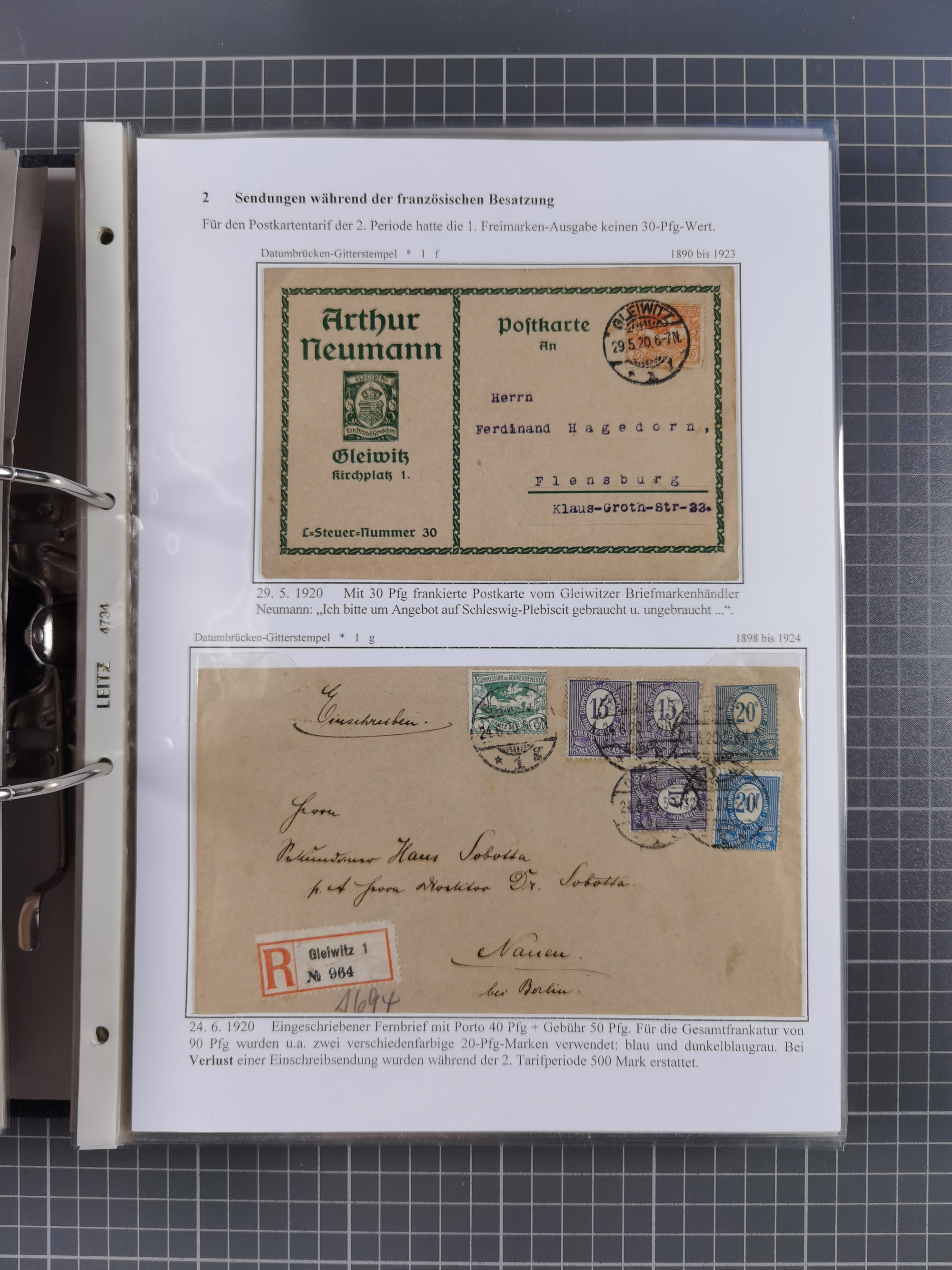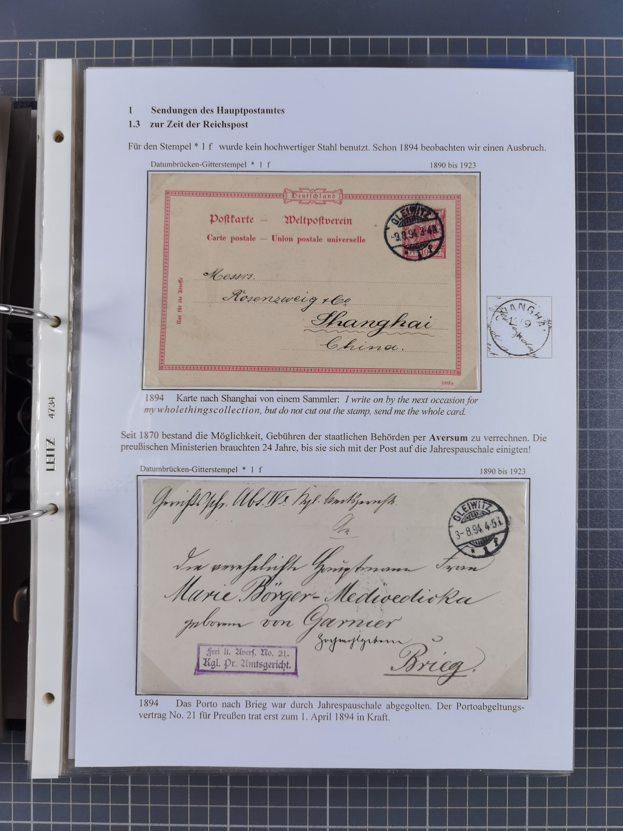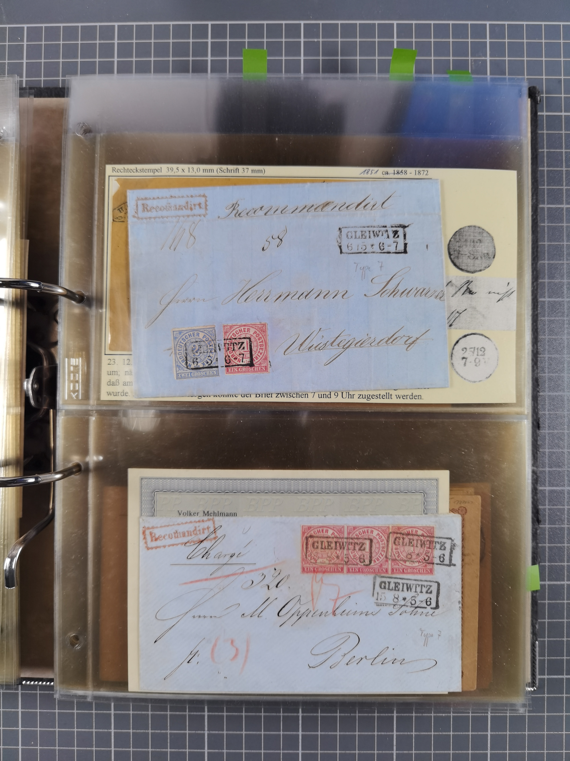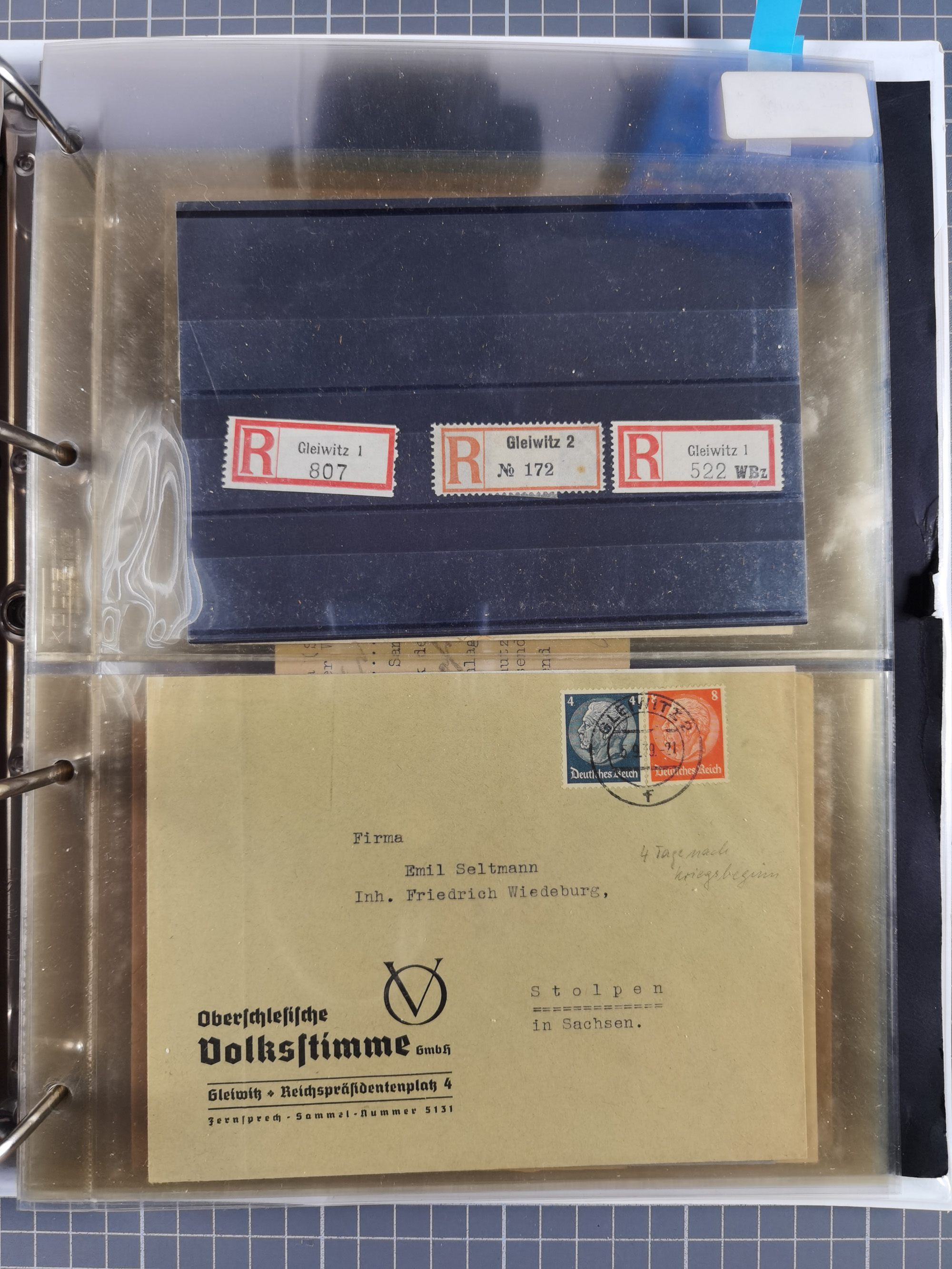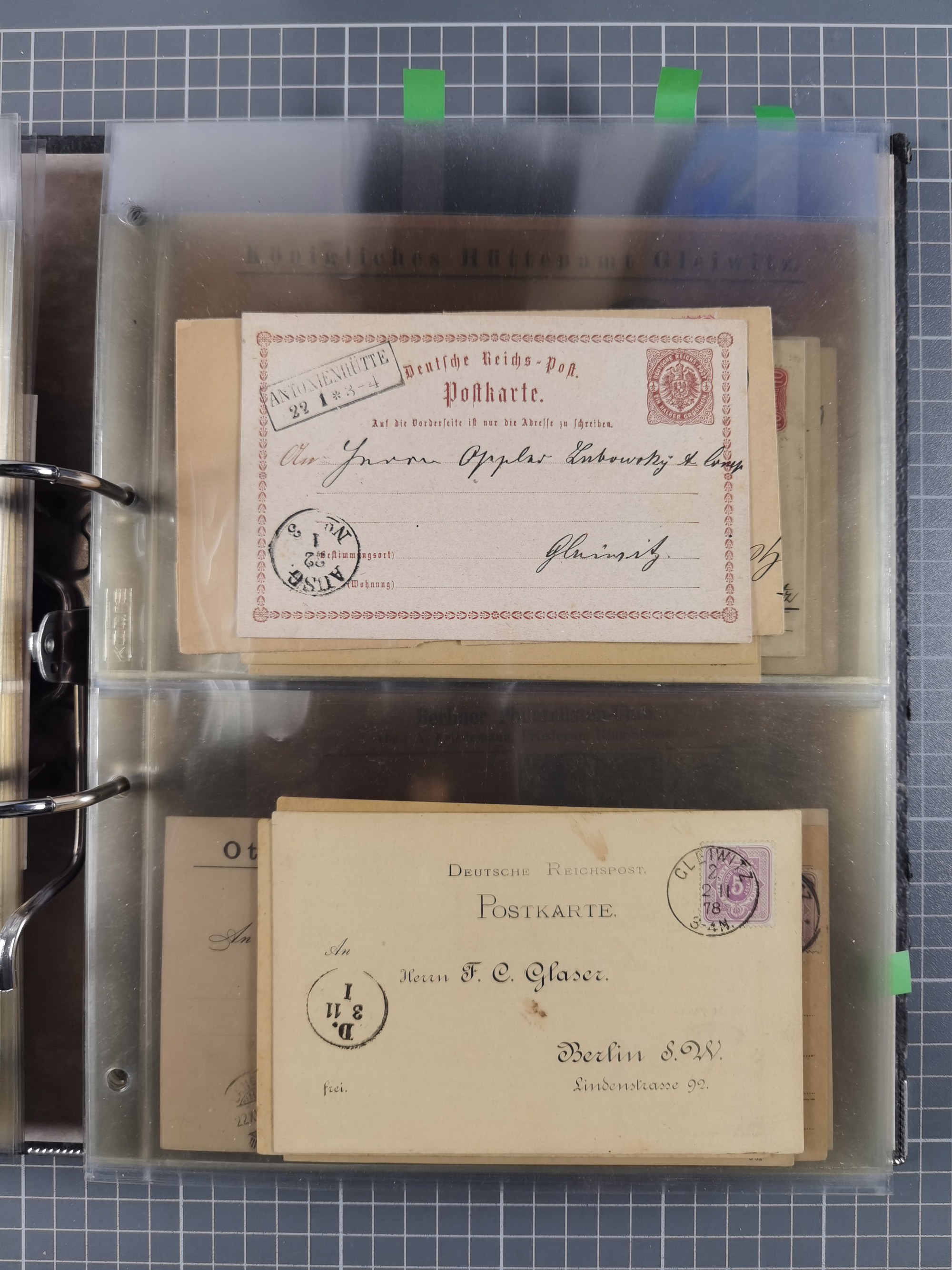GLEIWITZ: 1817/1950 (ca.), ausstellungsmäßig aufgezogene Sammlung mit reichhaltig zusätzlichem Material, überschlägig rund 350 Belege, dabei Preußen-Nummernstempel auf GSU, Teilfranco-Belege, NDP GAA6 auf Brief, Auslandspost, viel Oberschlesien mit Paketkarten, Flug- und Zeppelin Post, etc. etc. Ein schönes und interessantes Objekt