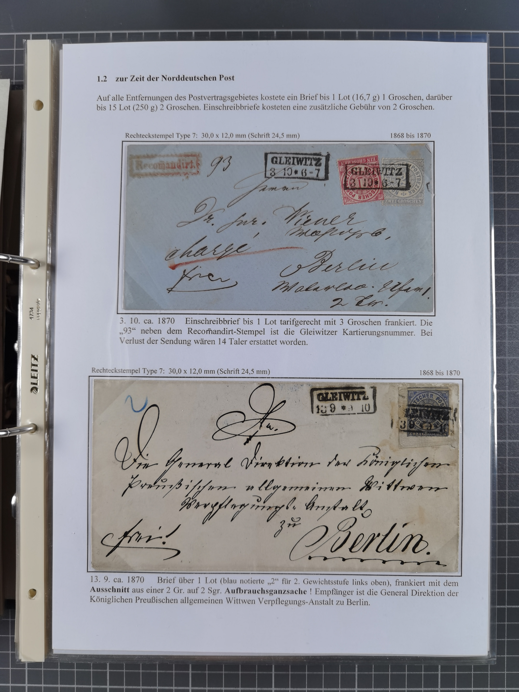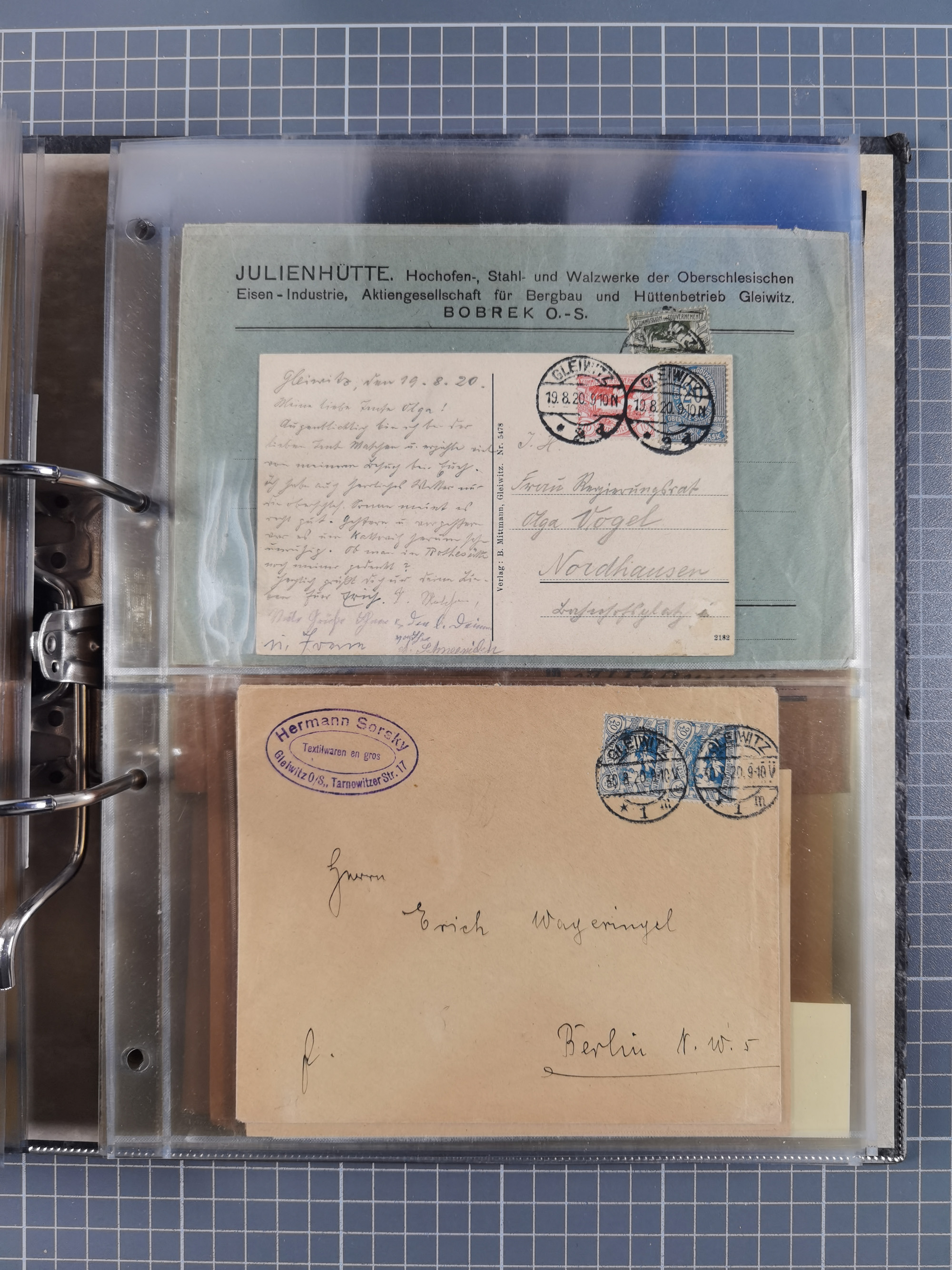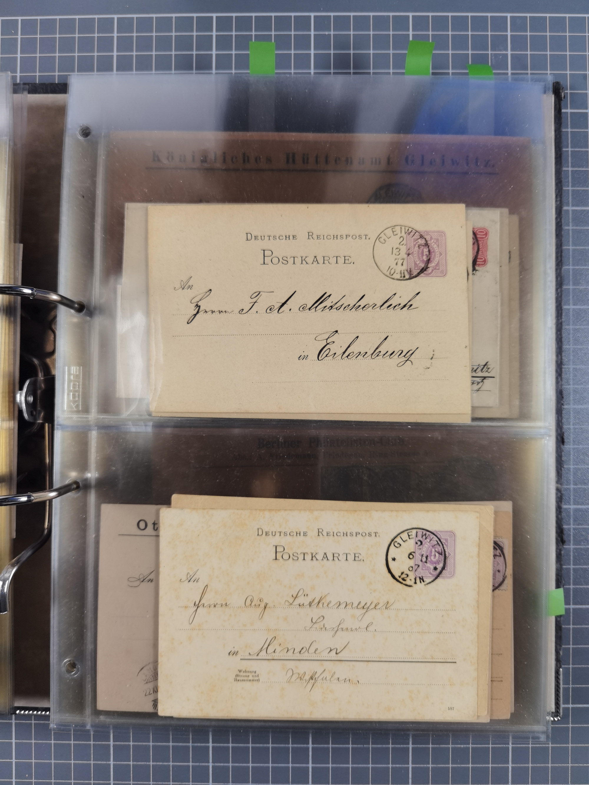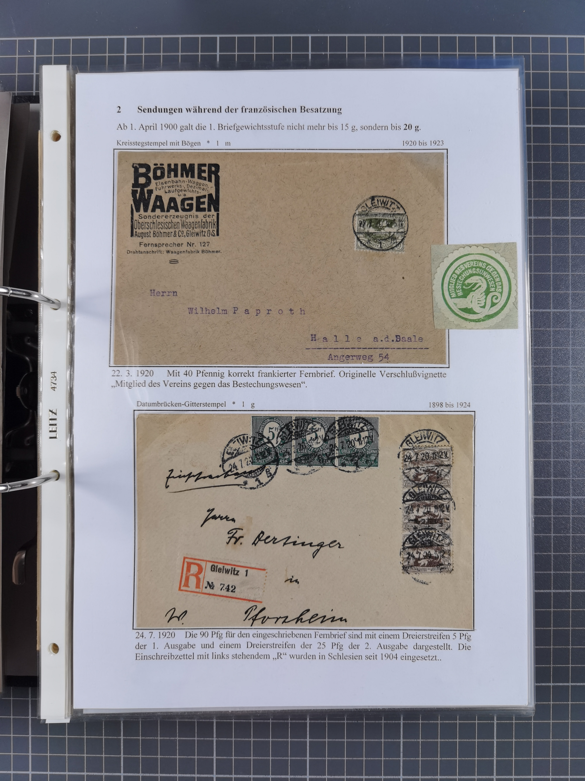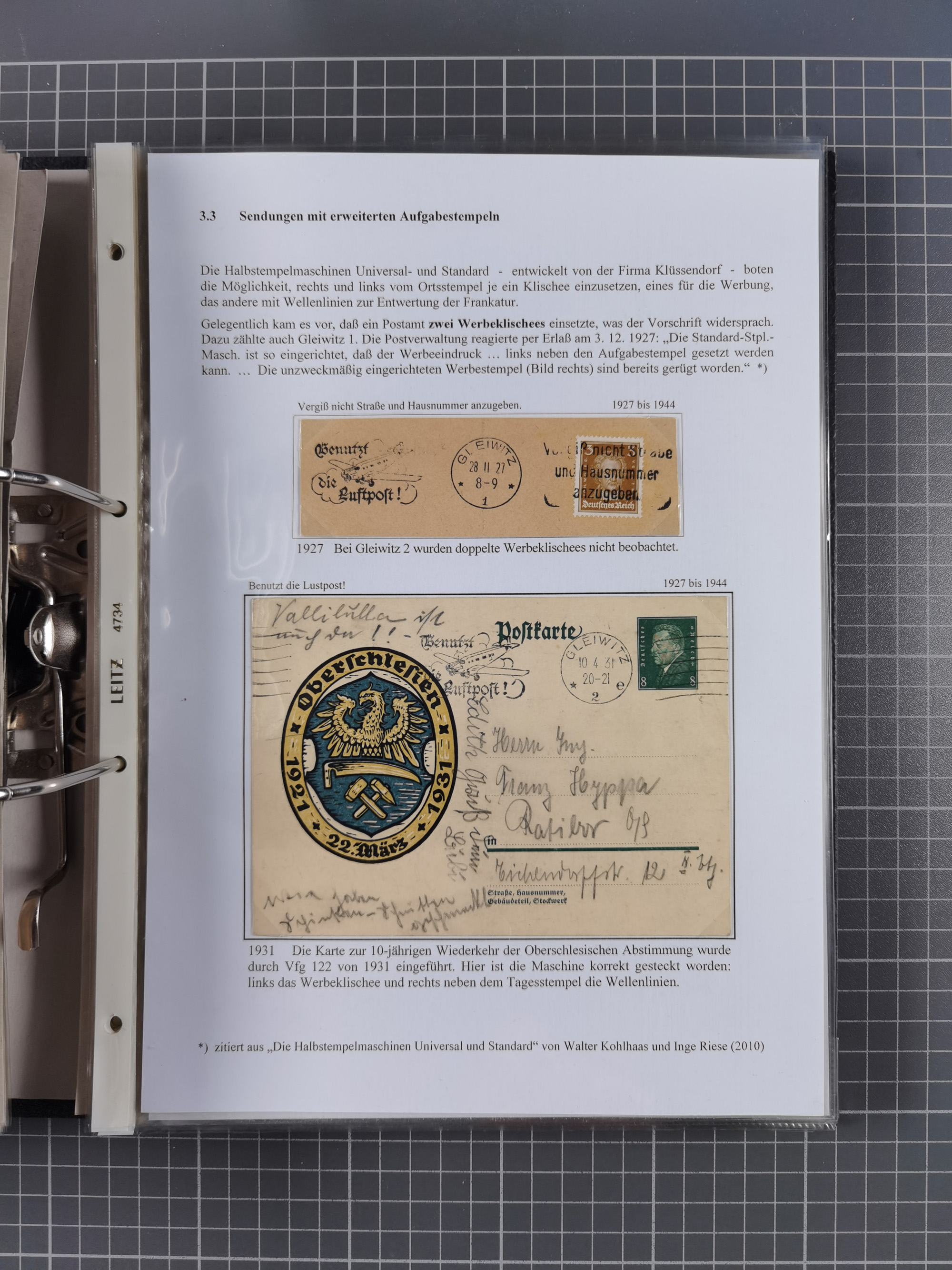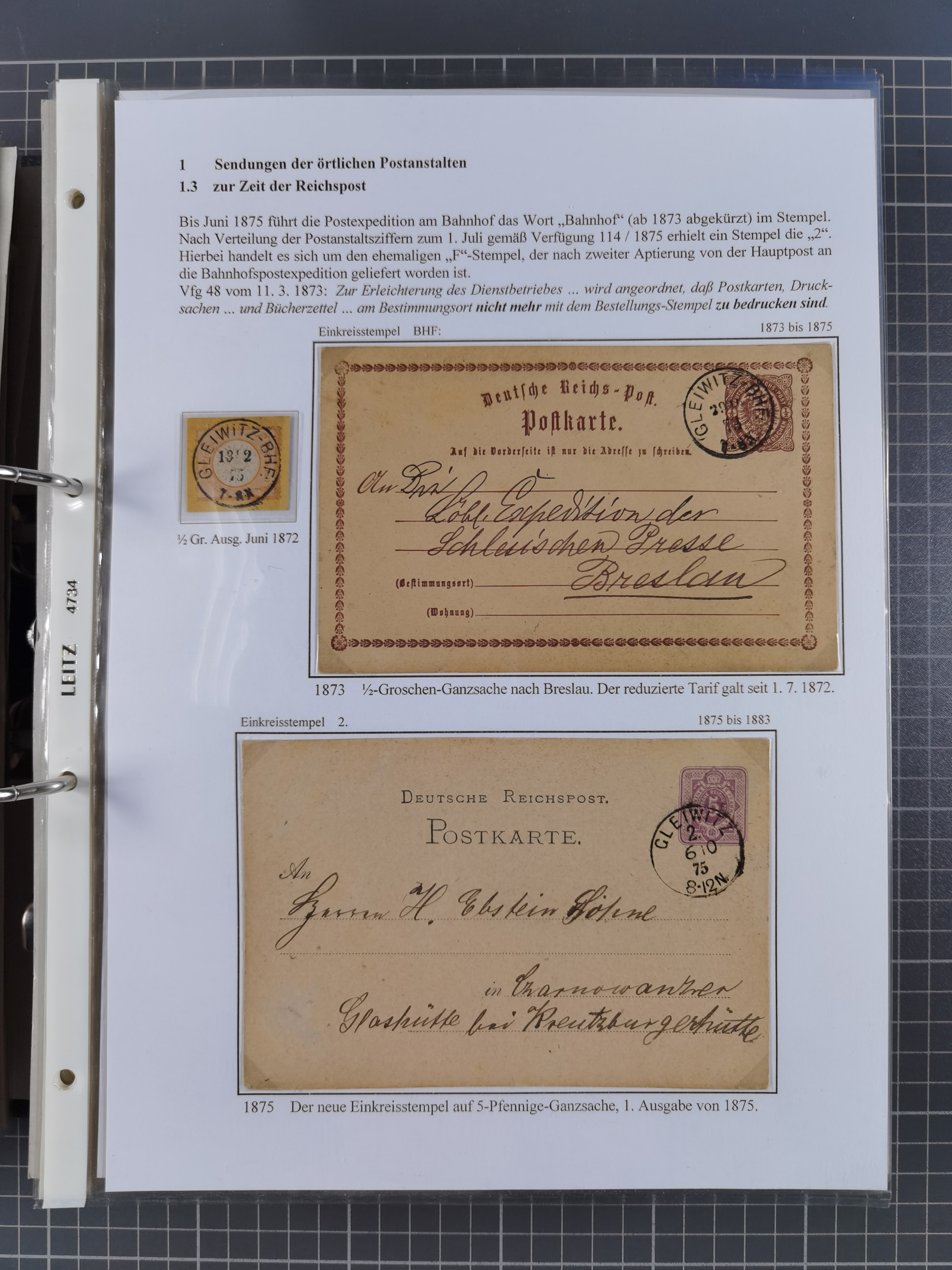 GLEIWITZ: 1817/1950 (ca.), ausstellungsmäßig aufgezogene Sammlung mit reichhaltig zusätzlichem Material, überschlägig rund 350 Belege, dabei Preußen-Nummernstempel auf GSU, Teilfranco-Belege, NDP GAA6 auf Brief, Auslandspost, viel Oberschlesien mit Paketkarten, Flug- und Zeppelin Post, etc. etc. Ein schönes und interessantes Objekt