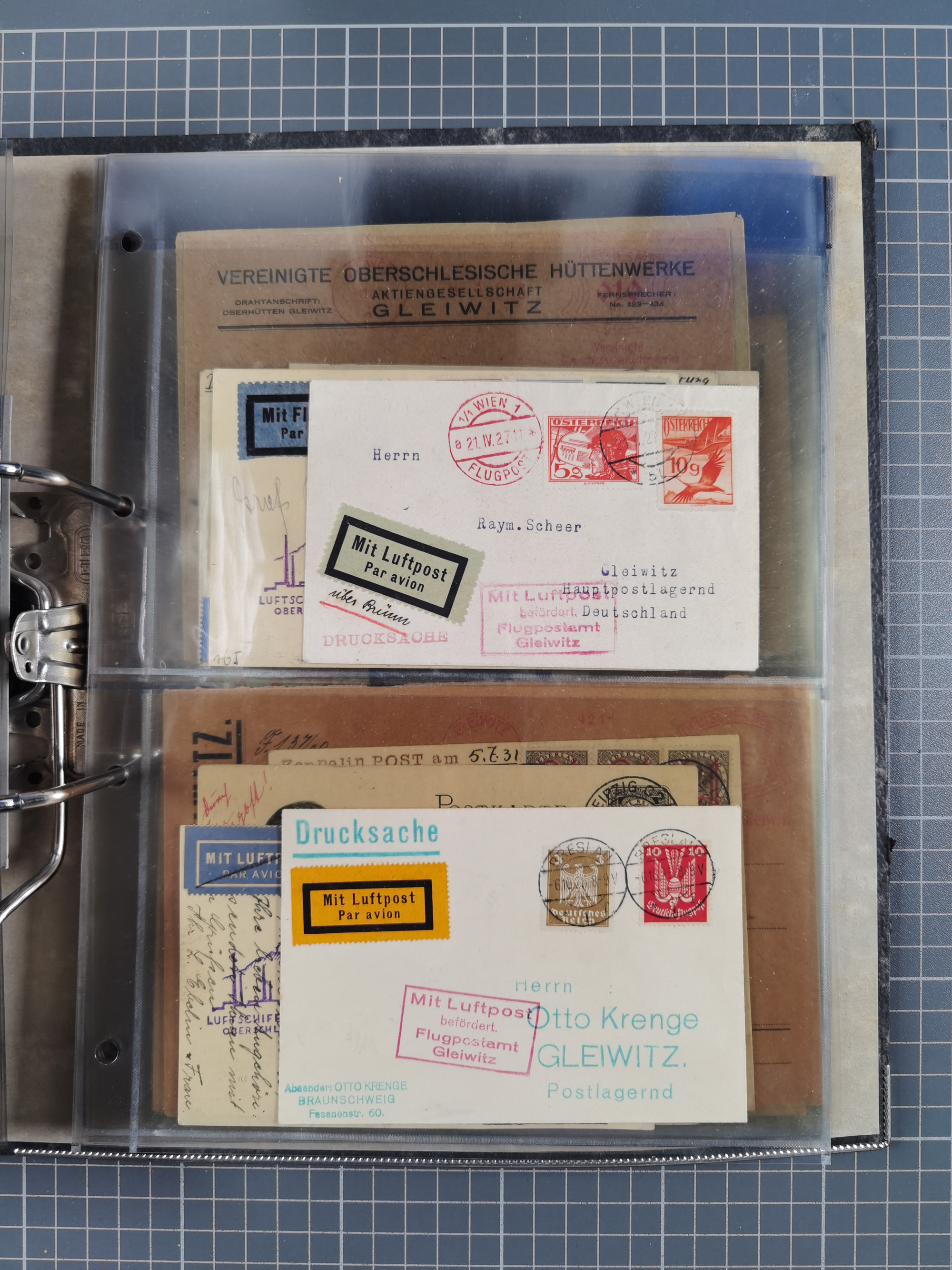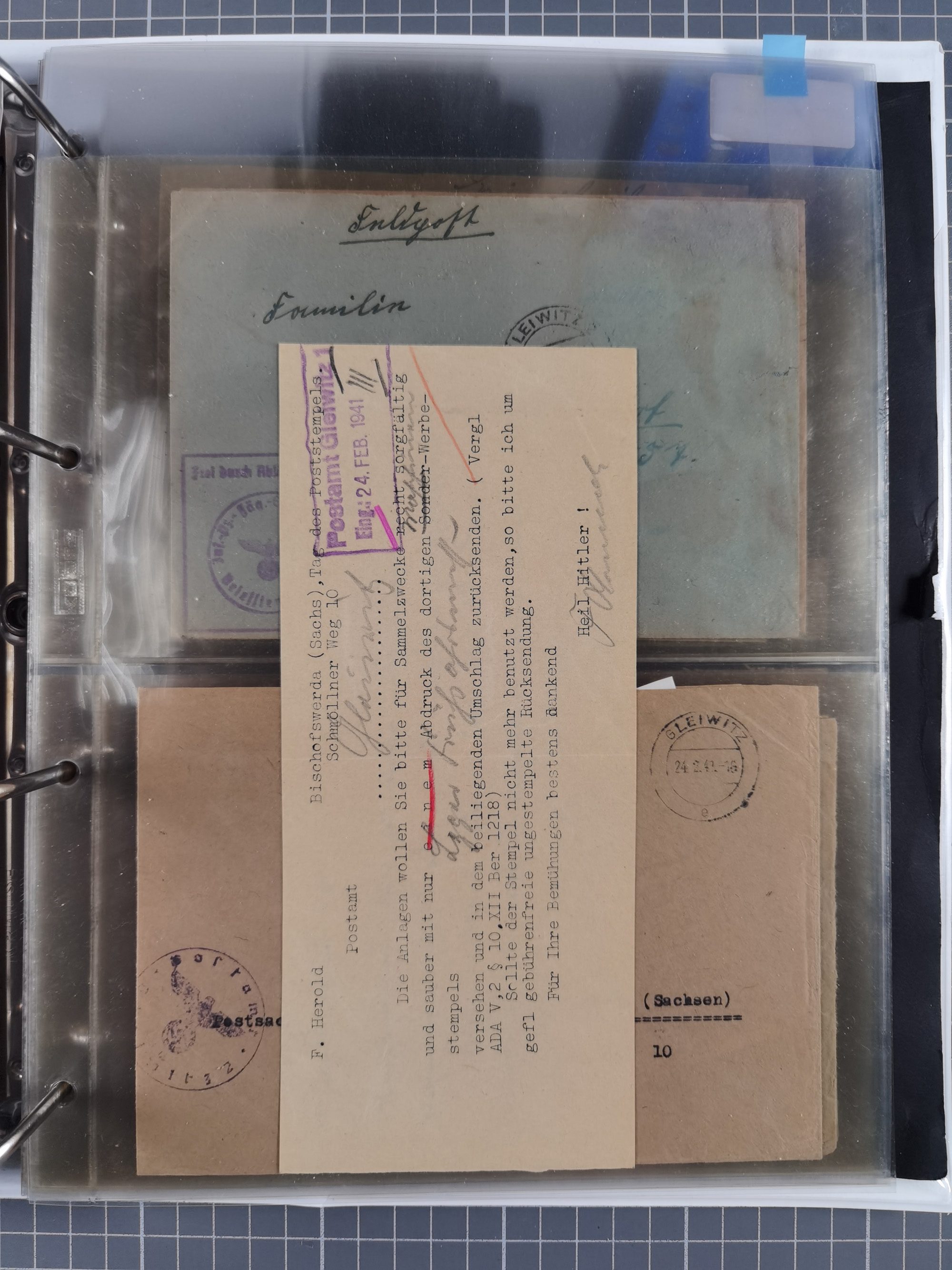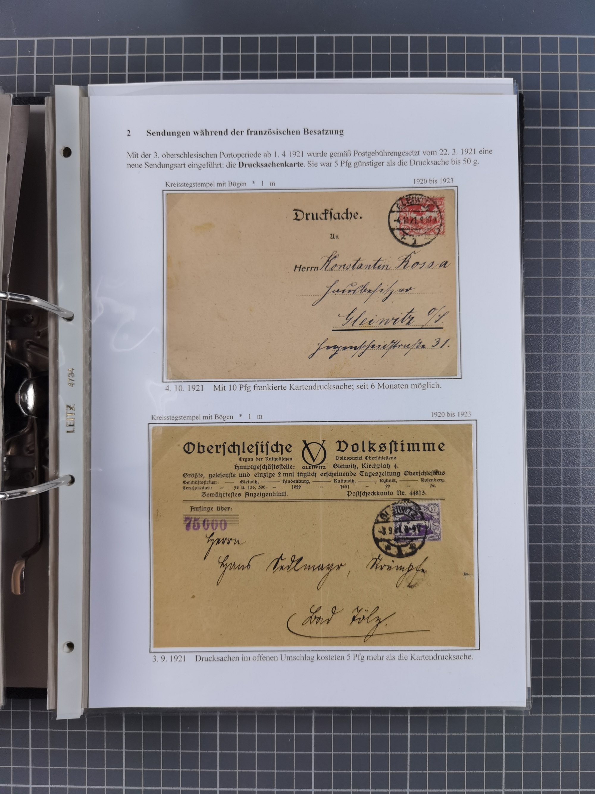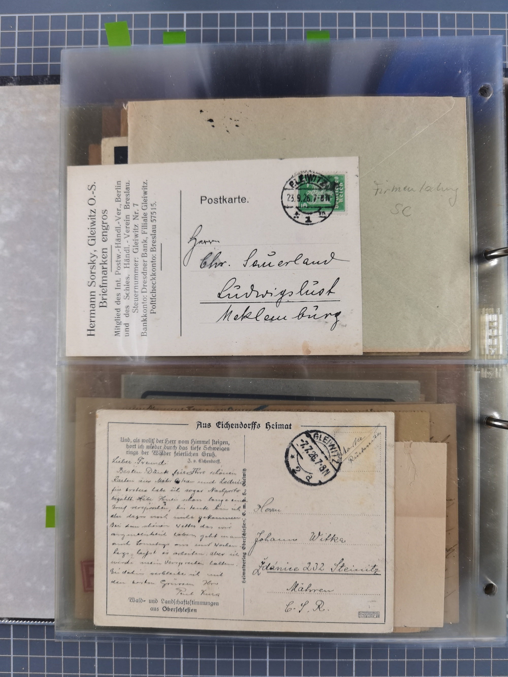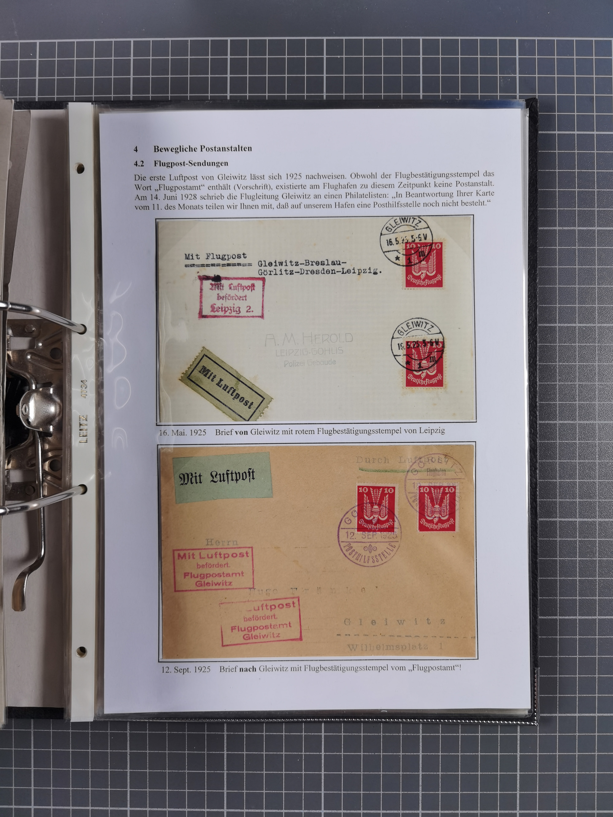 GLEIWITZ: 1817/1950 (ca.), ausstellungsmäßig aufgezogene Sammlung mit reichhaltig zusätzlichem Material, überschlägig rund 350 Belege, dabei Preußen-Nummernstempel auf GSU, Teilfranco-Belege, NDP GAA6 auf Brief, Auslandspost, viel Oberschlesien mit Paketkarten, Flug- und Zeppelin Post, etc. etc. Ein schönes und interessantes Objekt