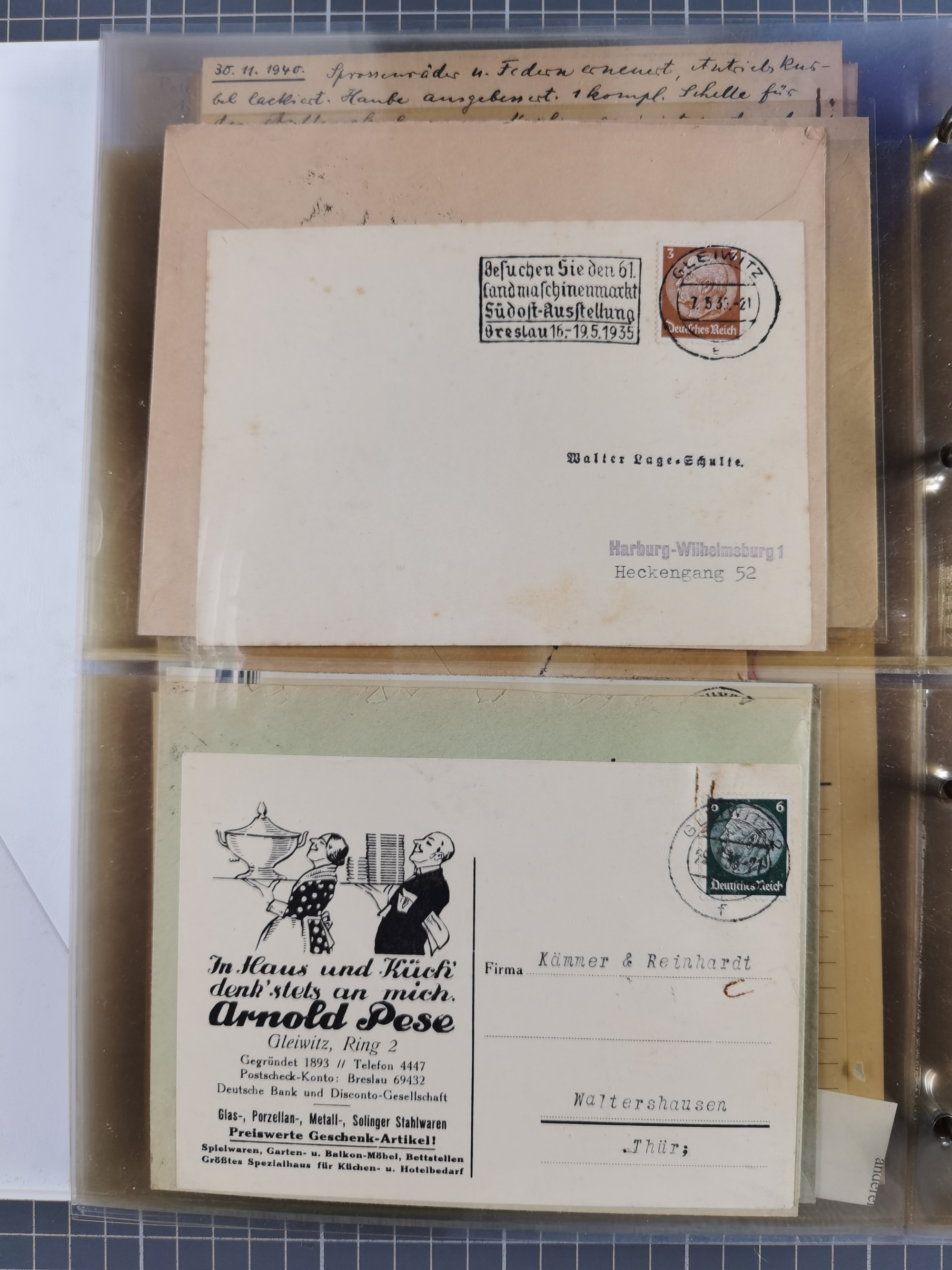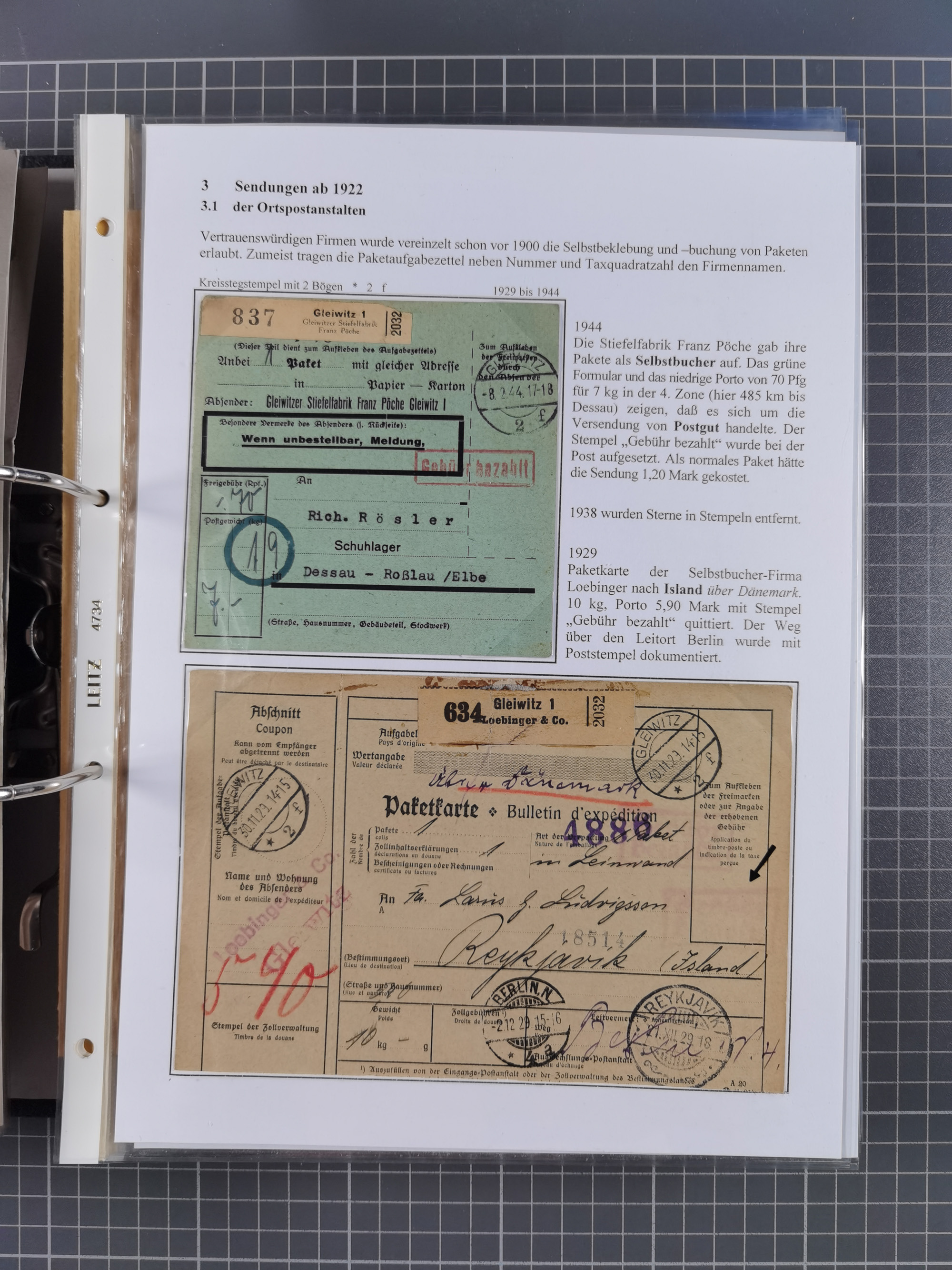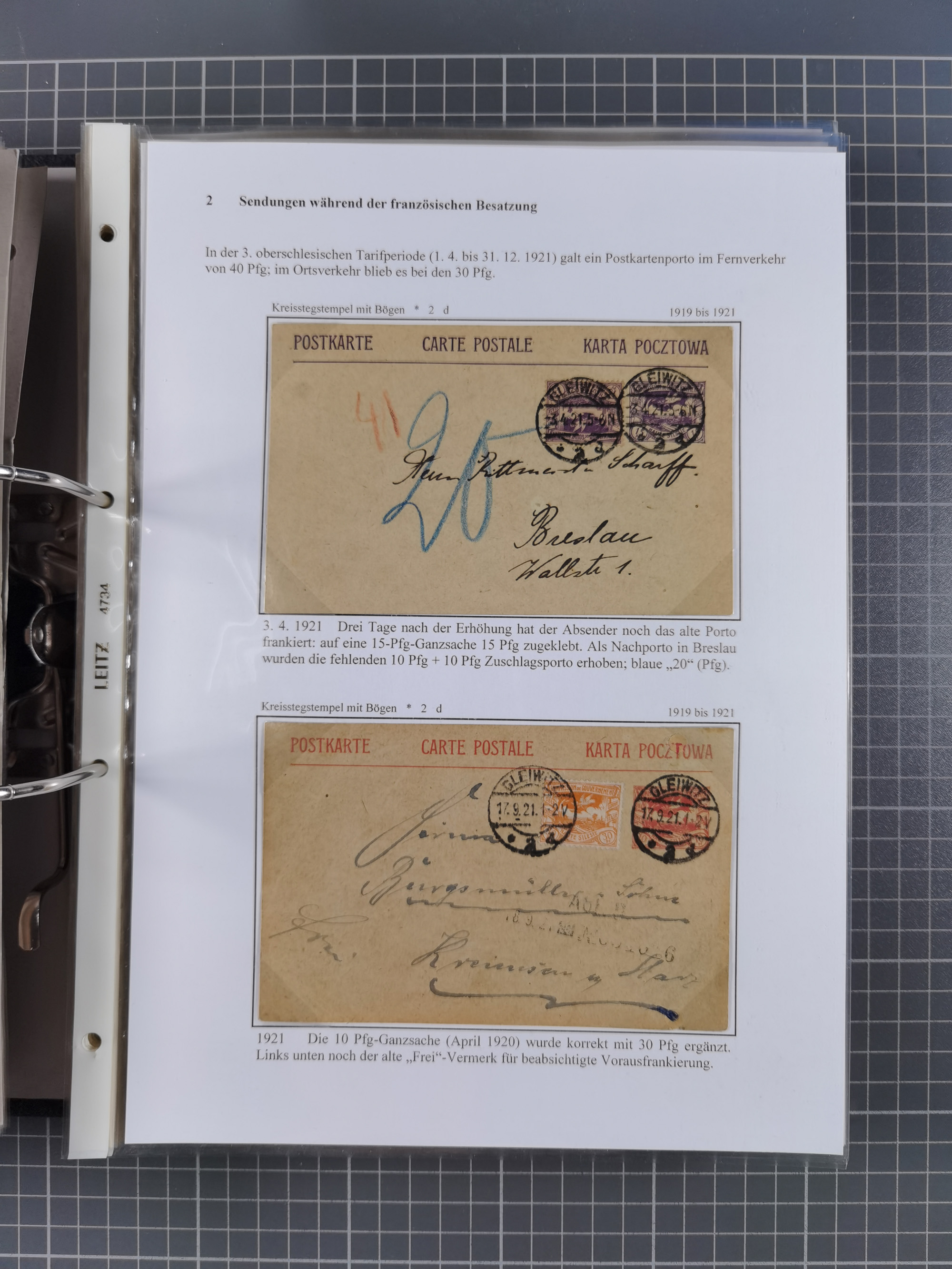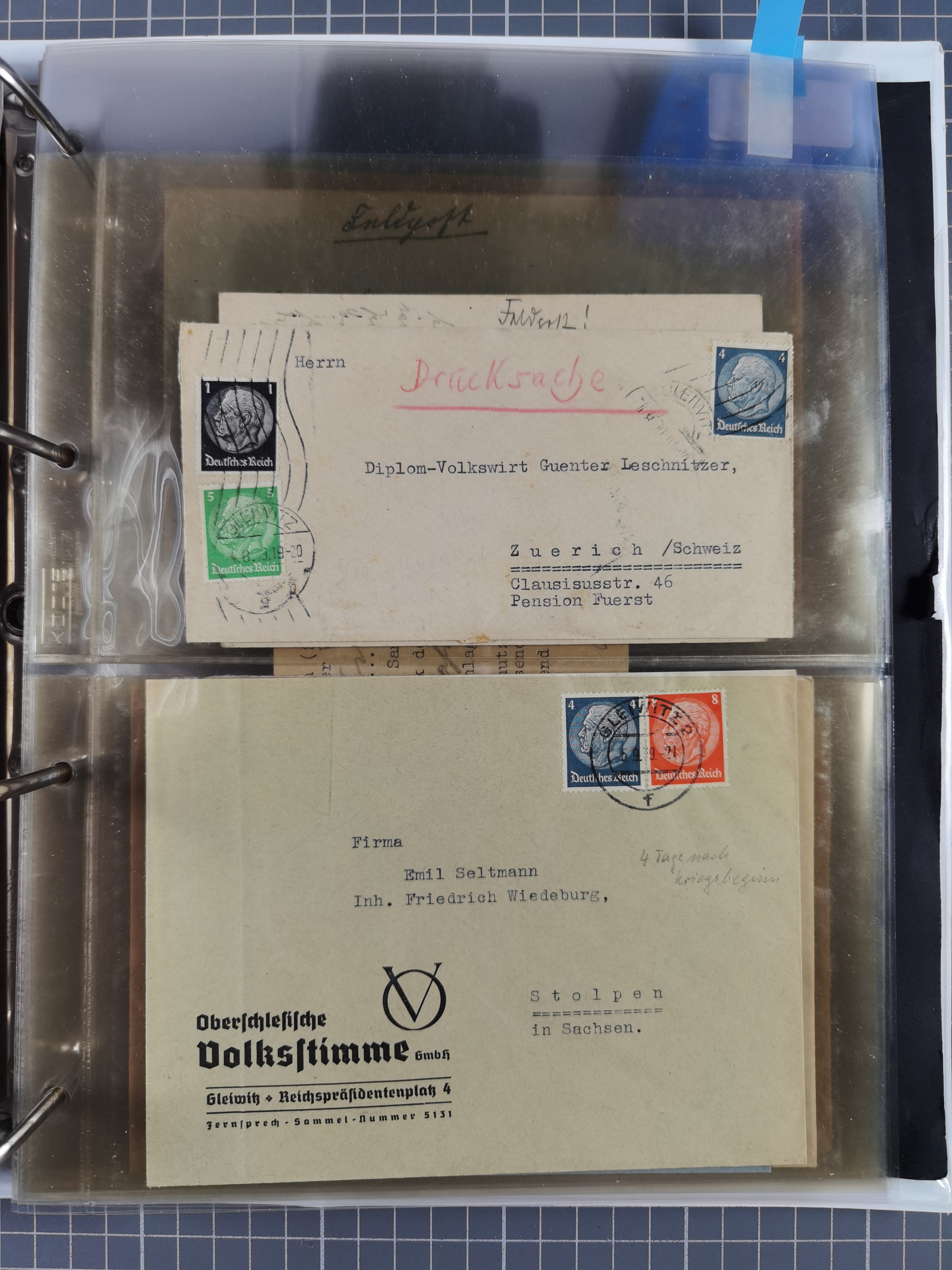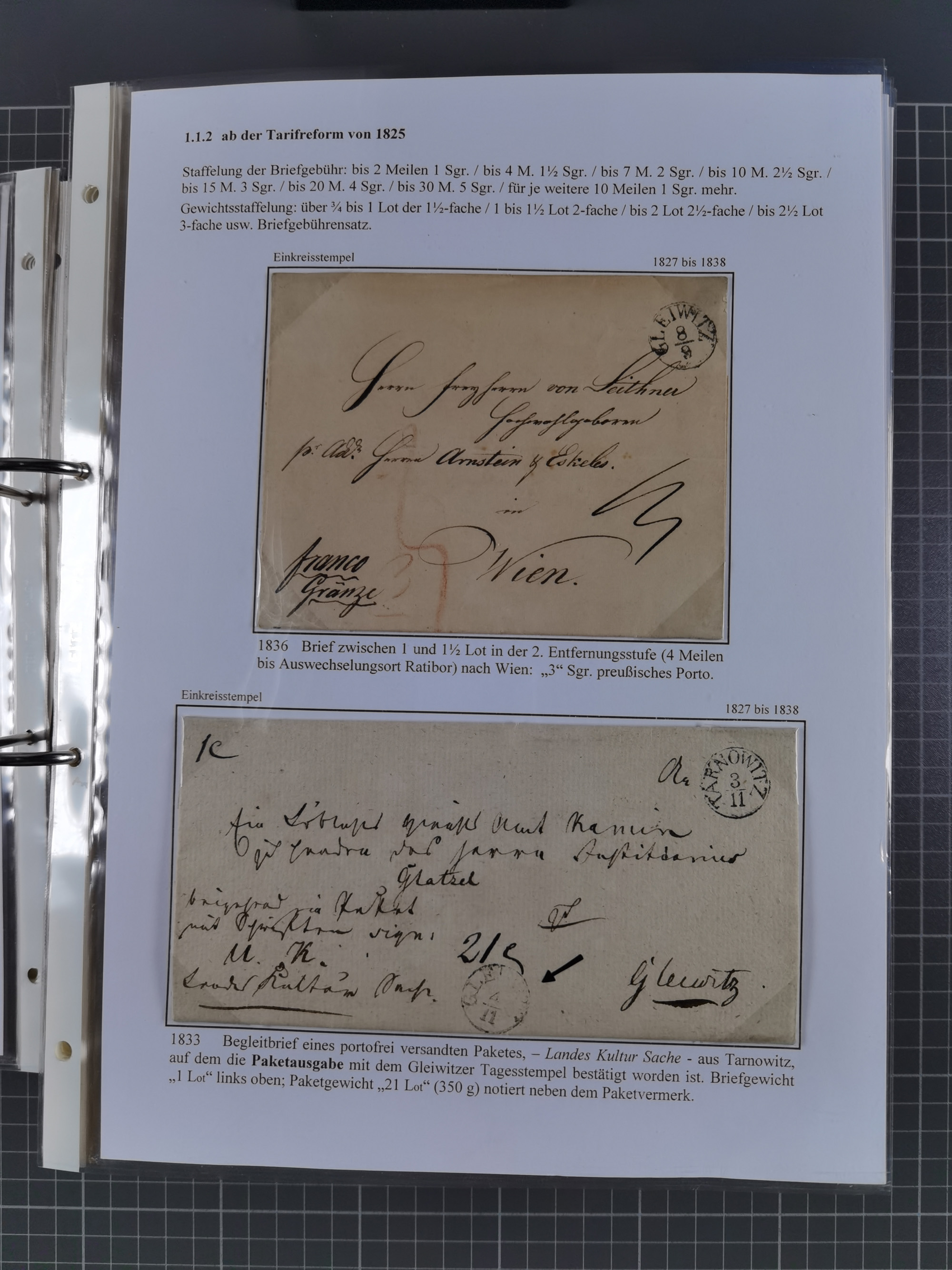 GLEIWITZ: 1817/1950 (ca.), ausstellungsmäßig aufgezogene Sammlung mit reichhaltig zusätzlichem Material, überschlägig rund 350 Belege, dabei Preußen-Nummernstempel auf GSU, Teilfranco-Belege, NDP GAA6 auf Brief, Auslandspost, viel Oberschlesien mit Paketkarten, Flug- und Zeppelin Post, etc. etc. Ein schönes und interessantes Objekt