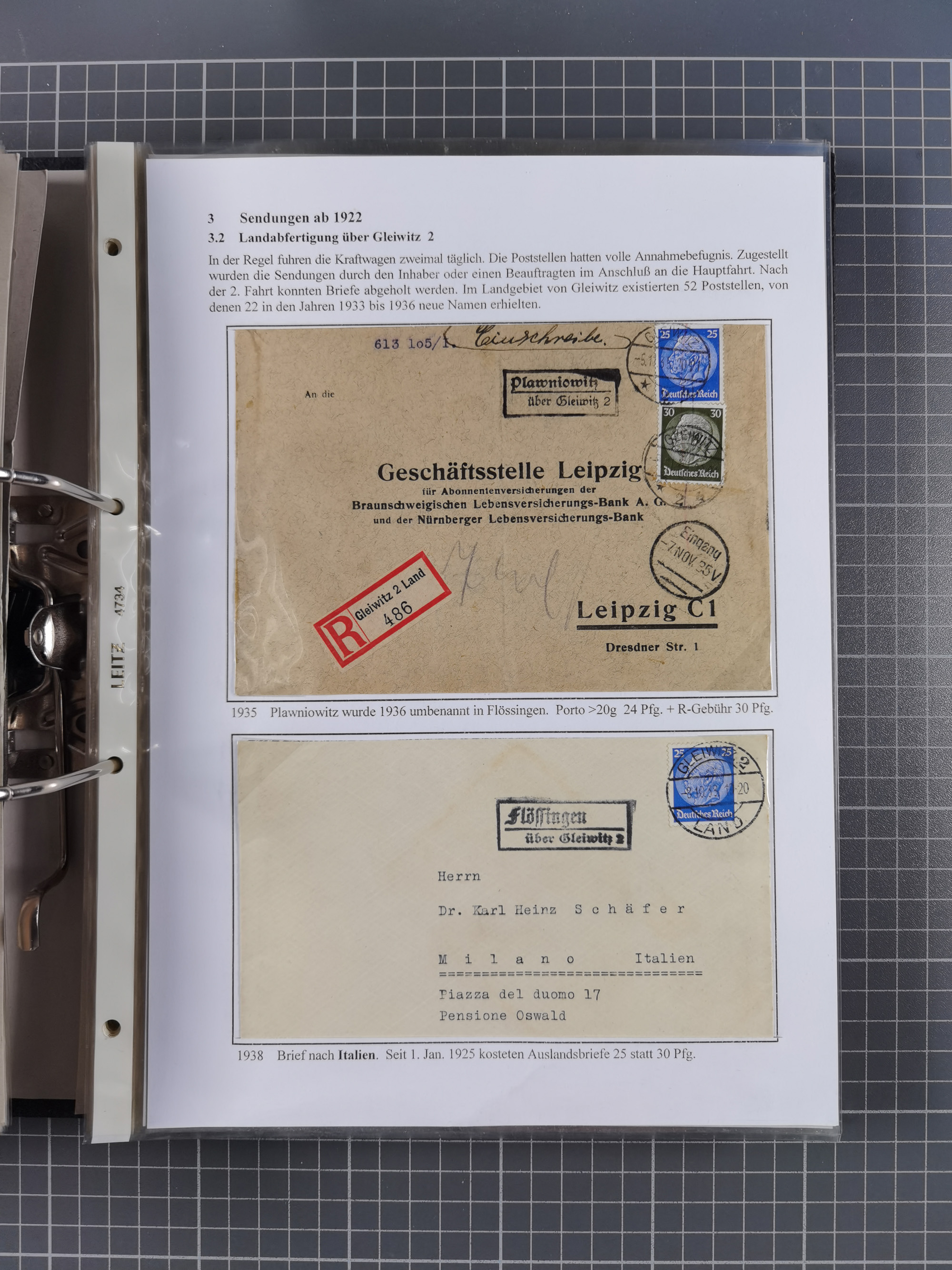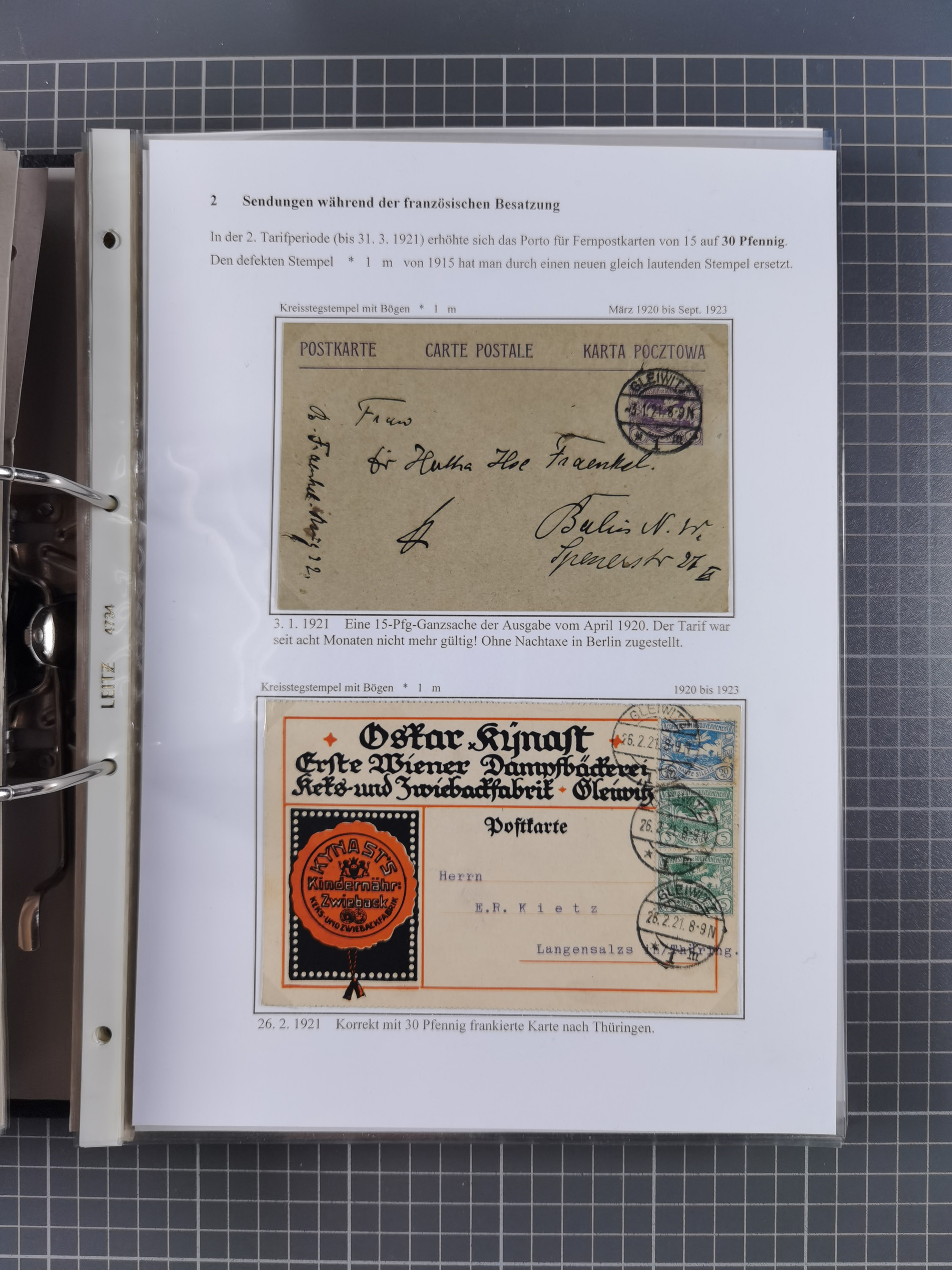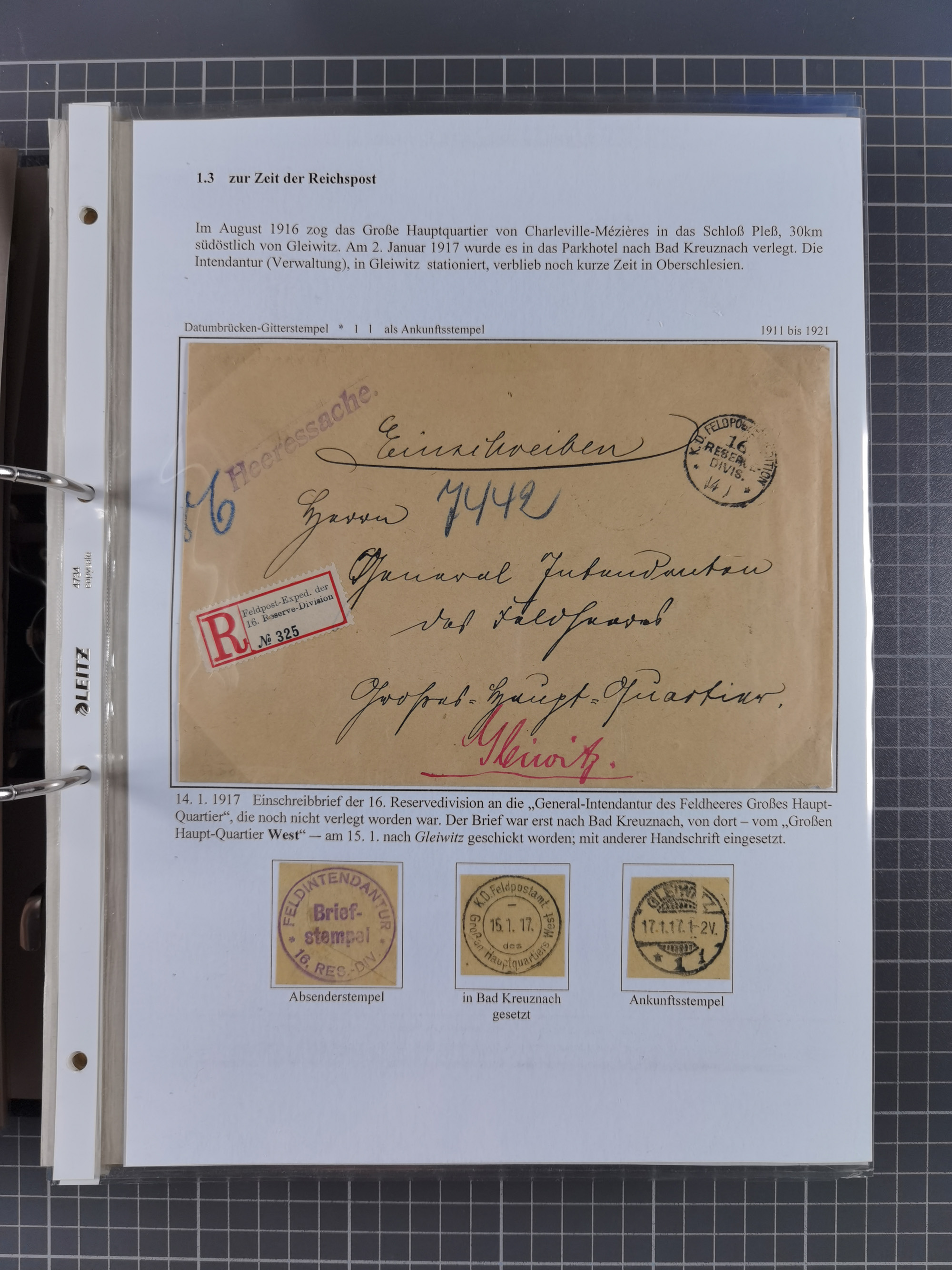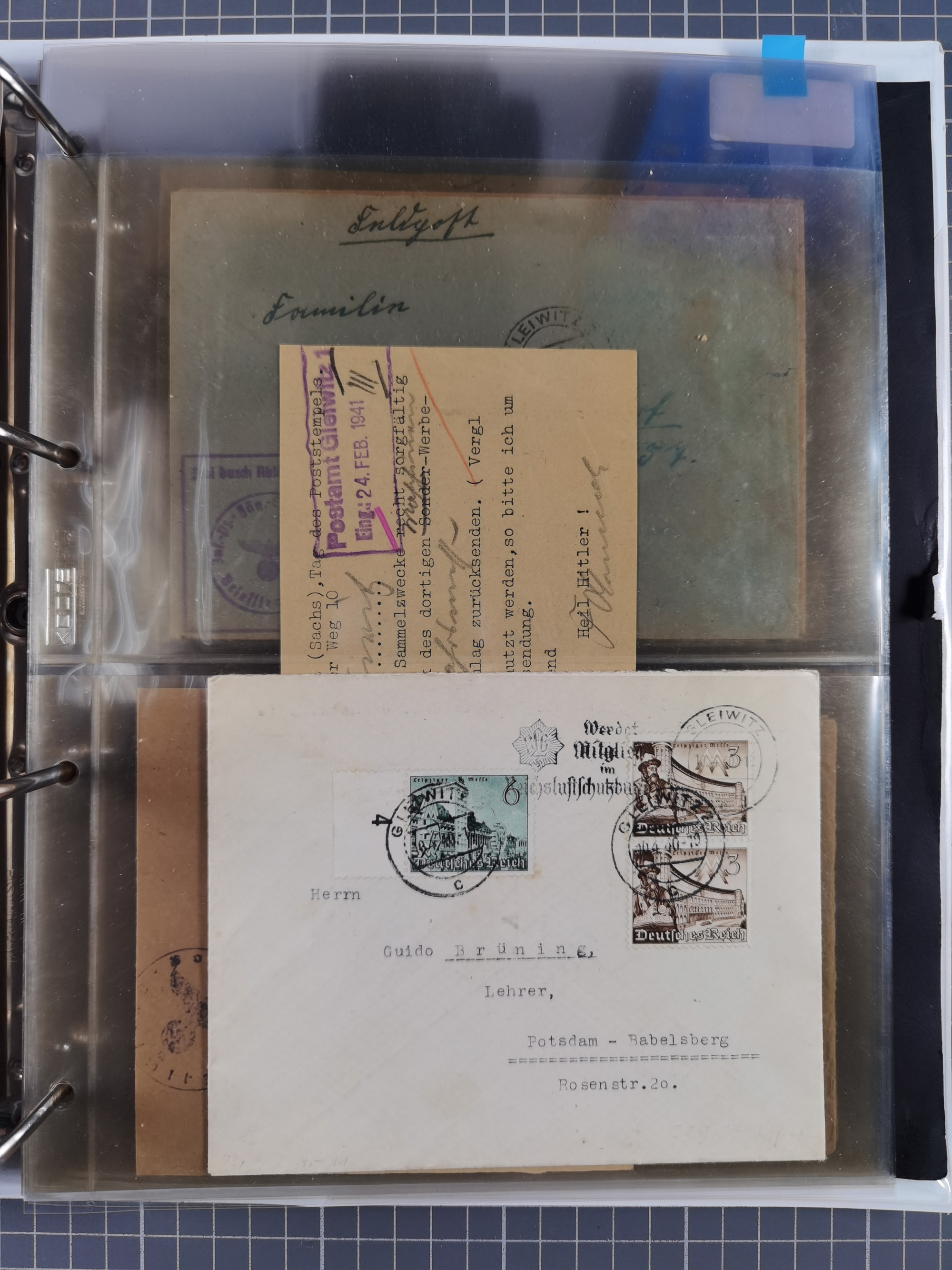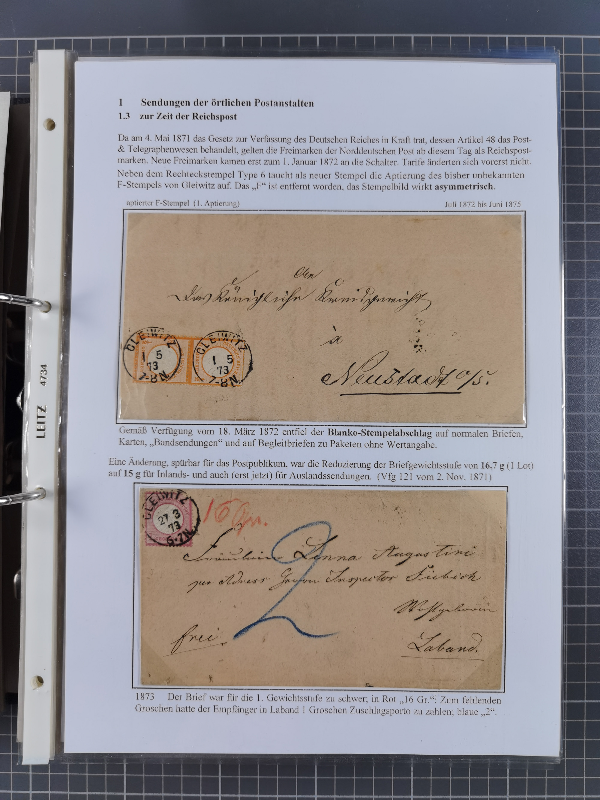 GLEIWITZ: 1817/1950 (ca.), ausstellungsmäßig aufgezogene Sammlung mit reichhaltig zusätzlichem Material, überschlägig rund 350 Belege, dabei Preußen-Nummernstempel auf GSU, Teilfranco-Belege, NDP GAA6 auf Brief, Auslandspost, viel Oberschlesien mit Paketkarten, Flug- und Zeppelin Post, etc. etc. Ein schönes und interessantes Objekt