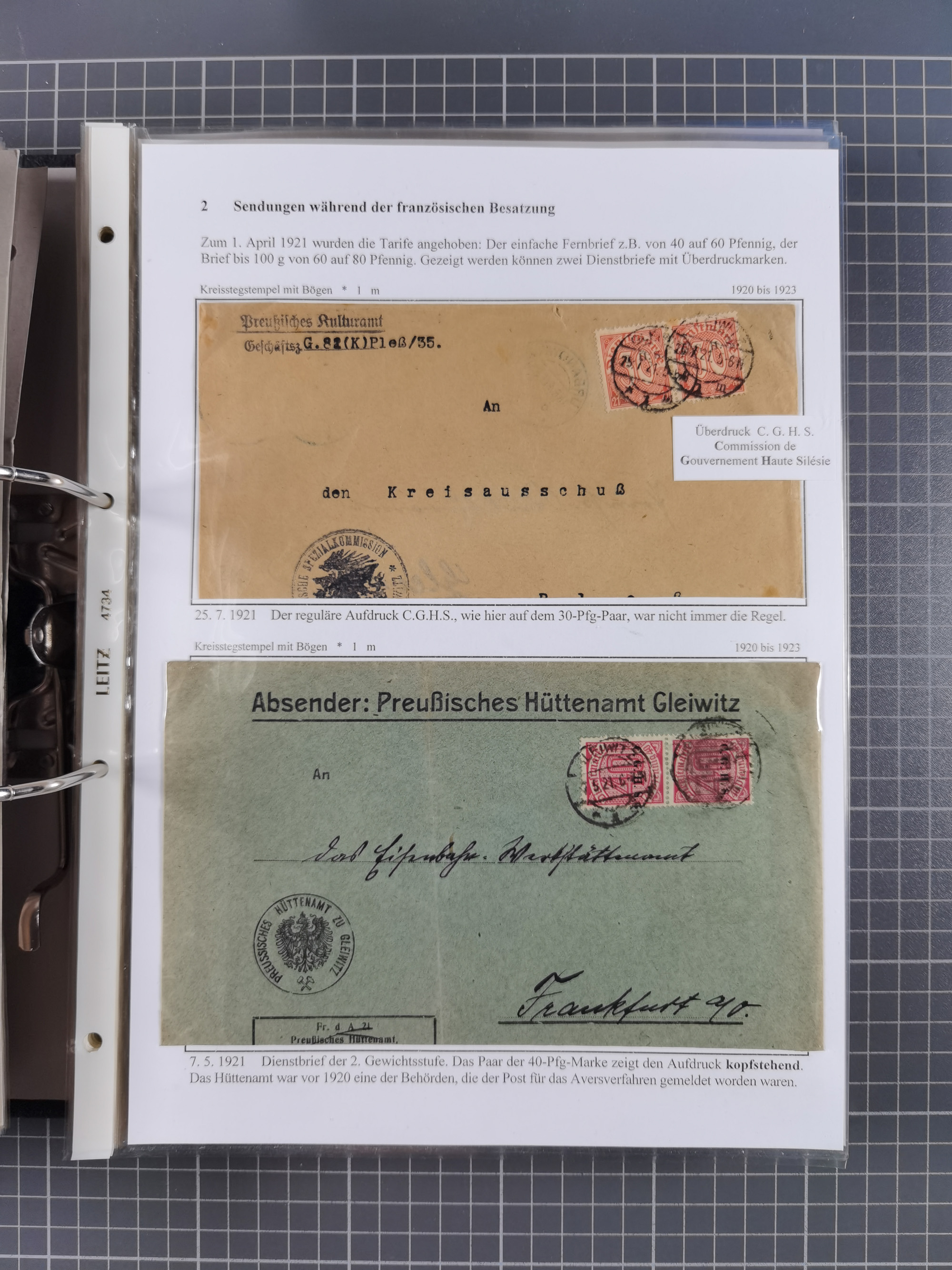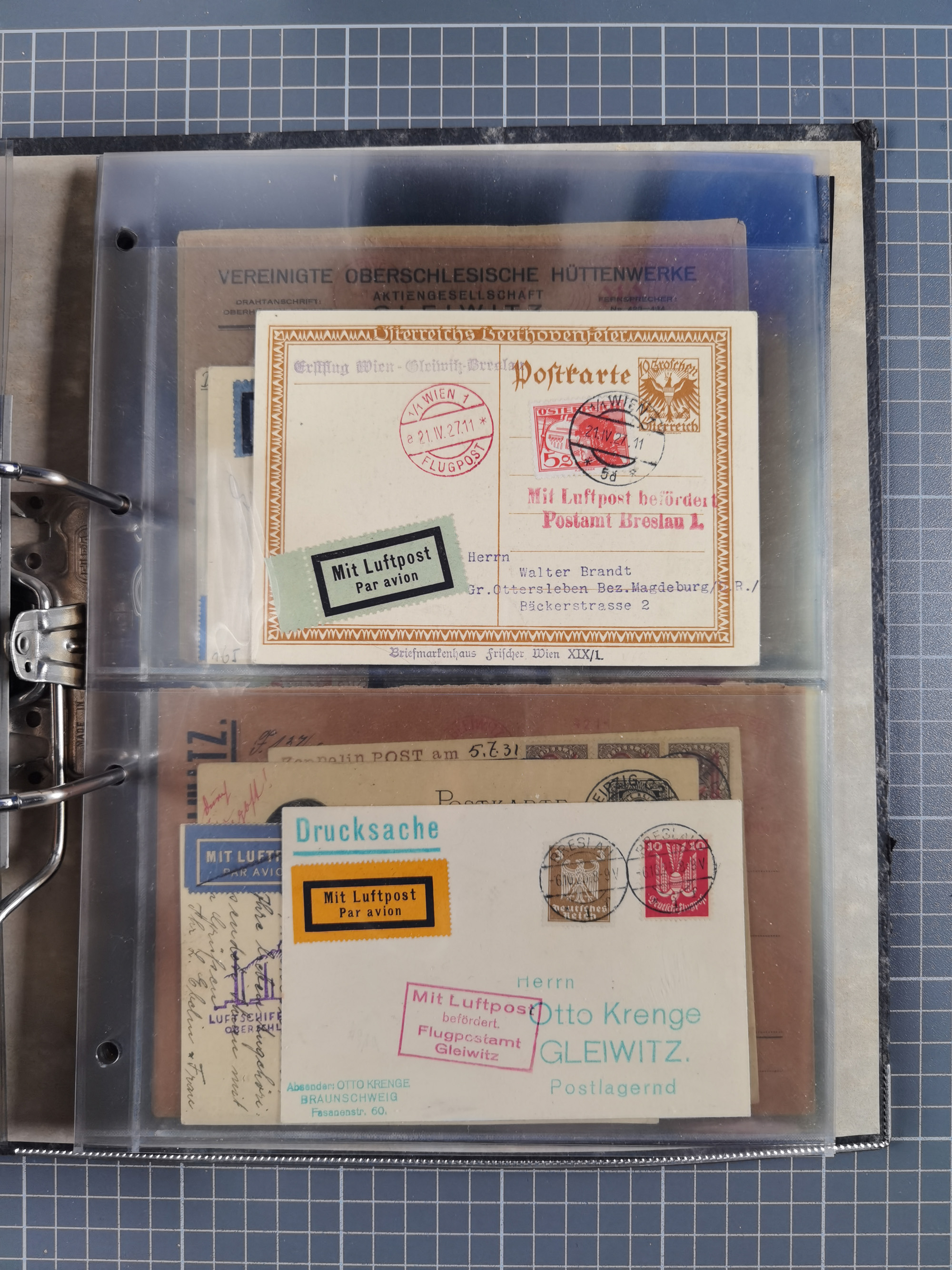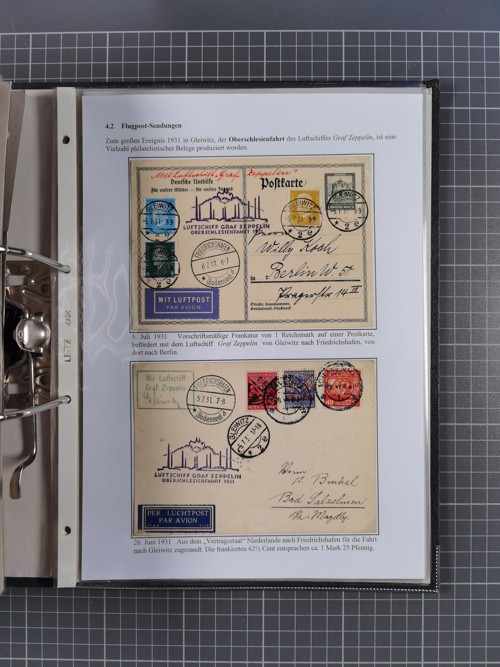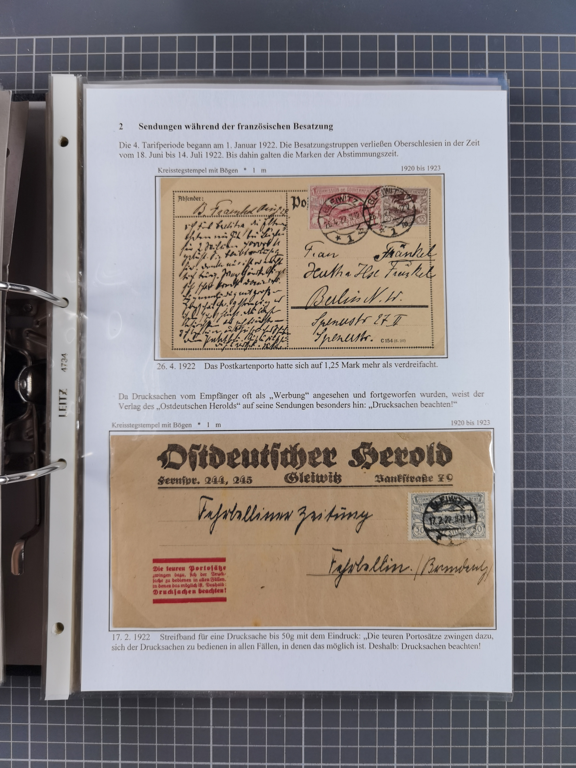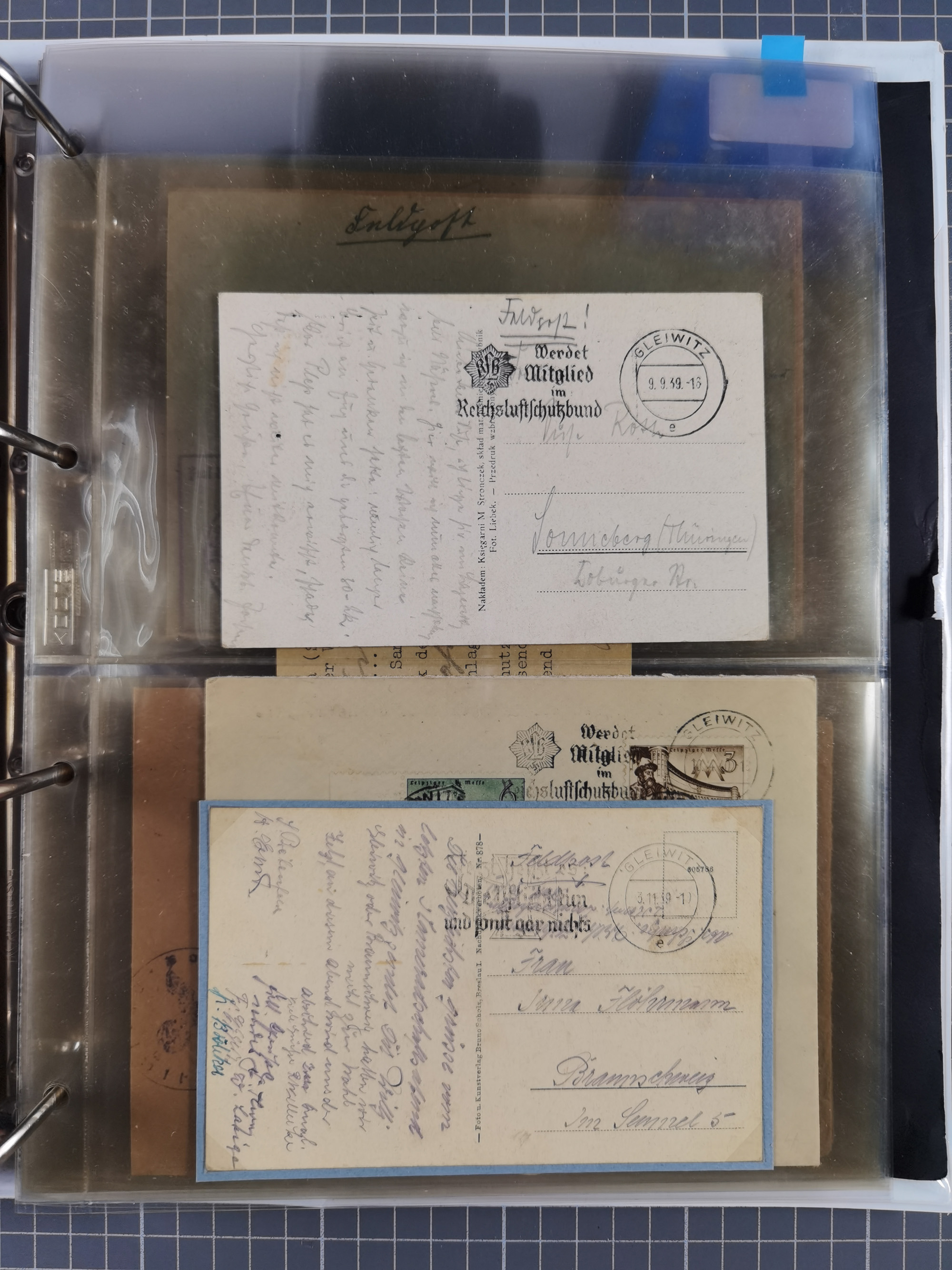 GLEIWITZ: 1817/1950 (ca.), ausstellungsmäßig aufgezogene Sammlung mit reichhaltig zusätzlichem Material, überschlägig rund 350 Belege, dabei Preußen-Nummernstempel auf GSU, Teilfranco-Belege, NDP GAA6 auf Brief, Auslandspost, viel Oberschlesien mit Paketkarten, Flug- und Zeppelin Post, etc. etc. Ein schönes und interessantes Objekt