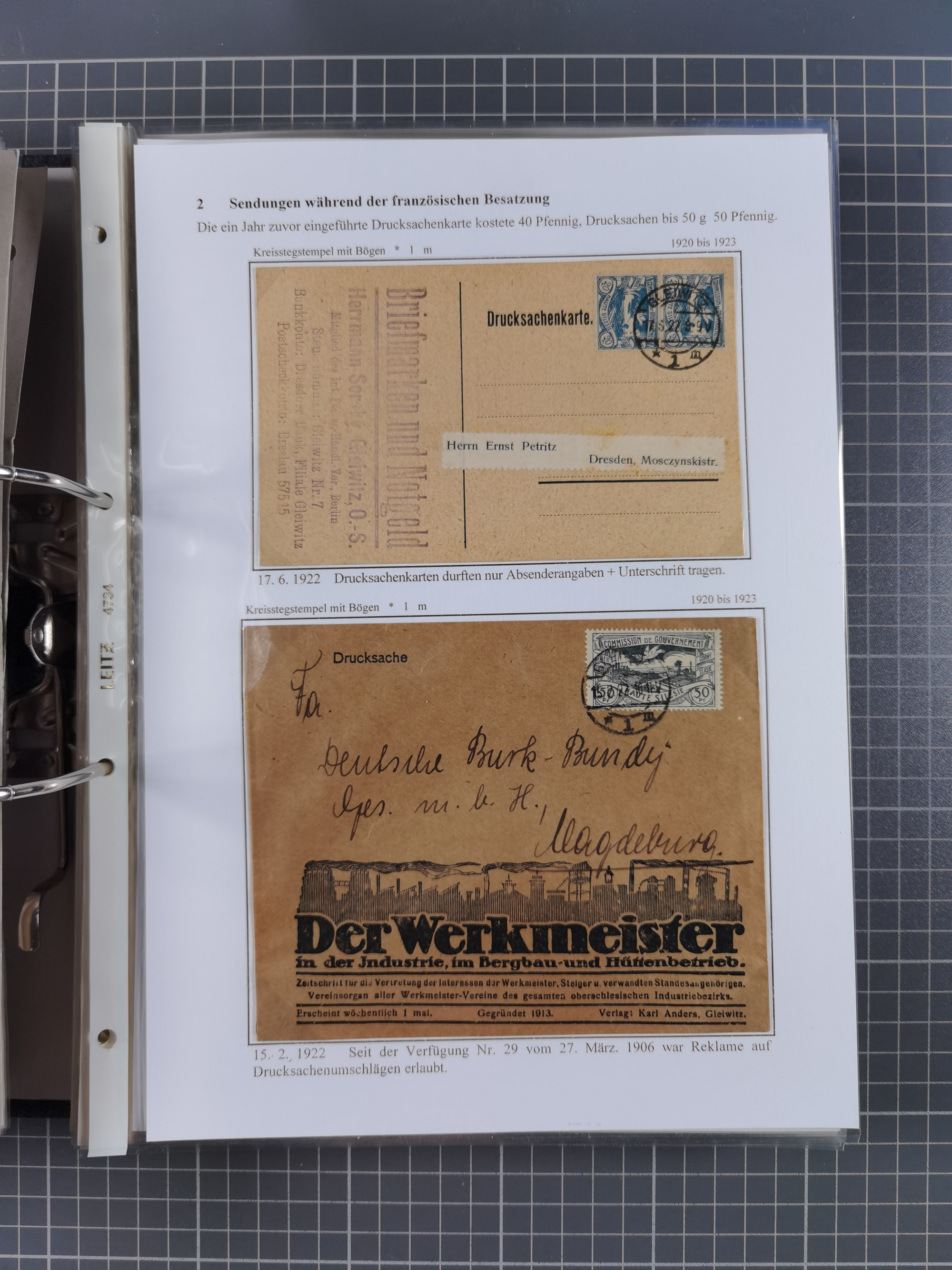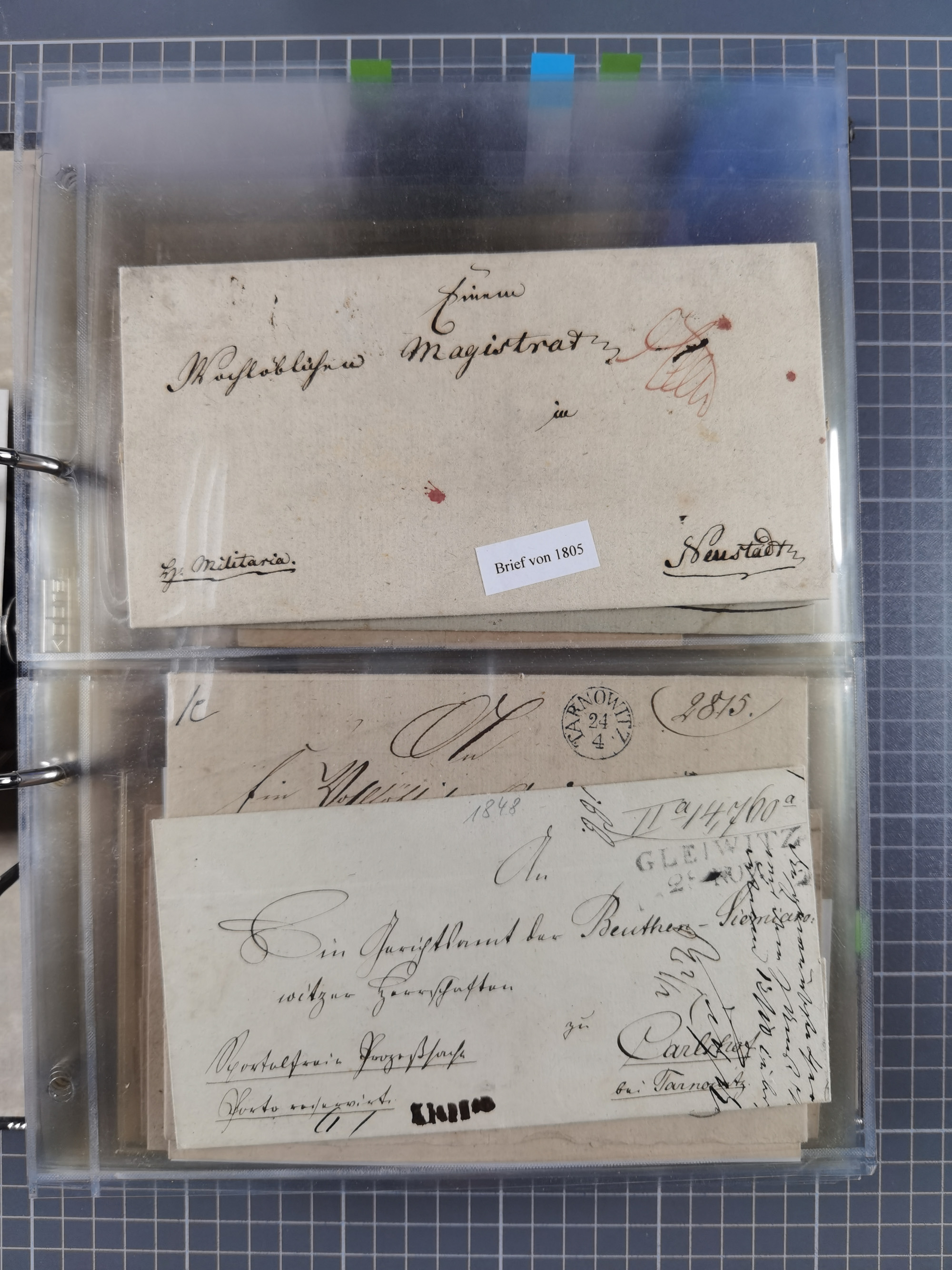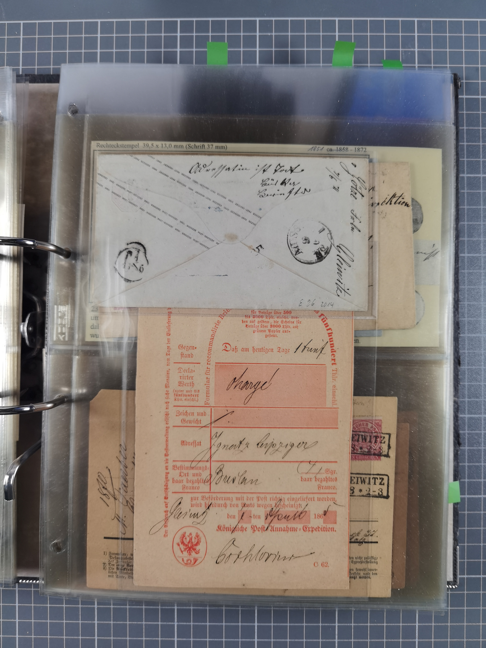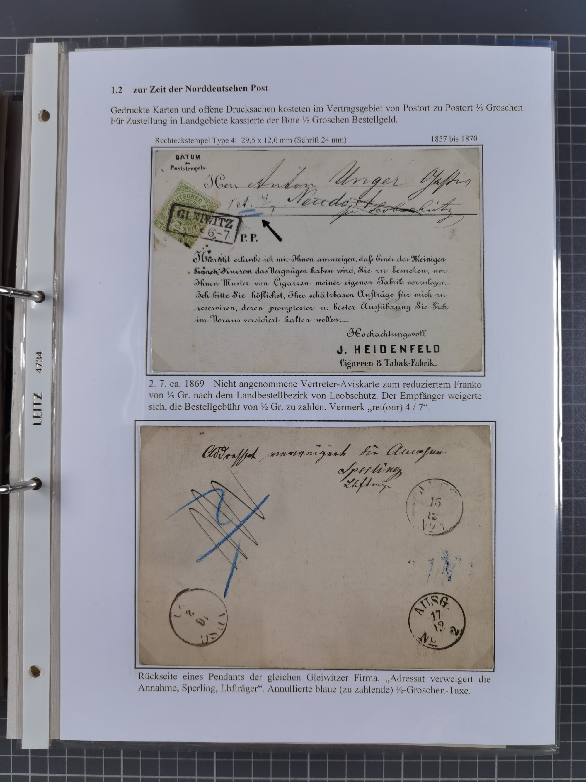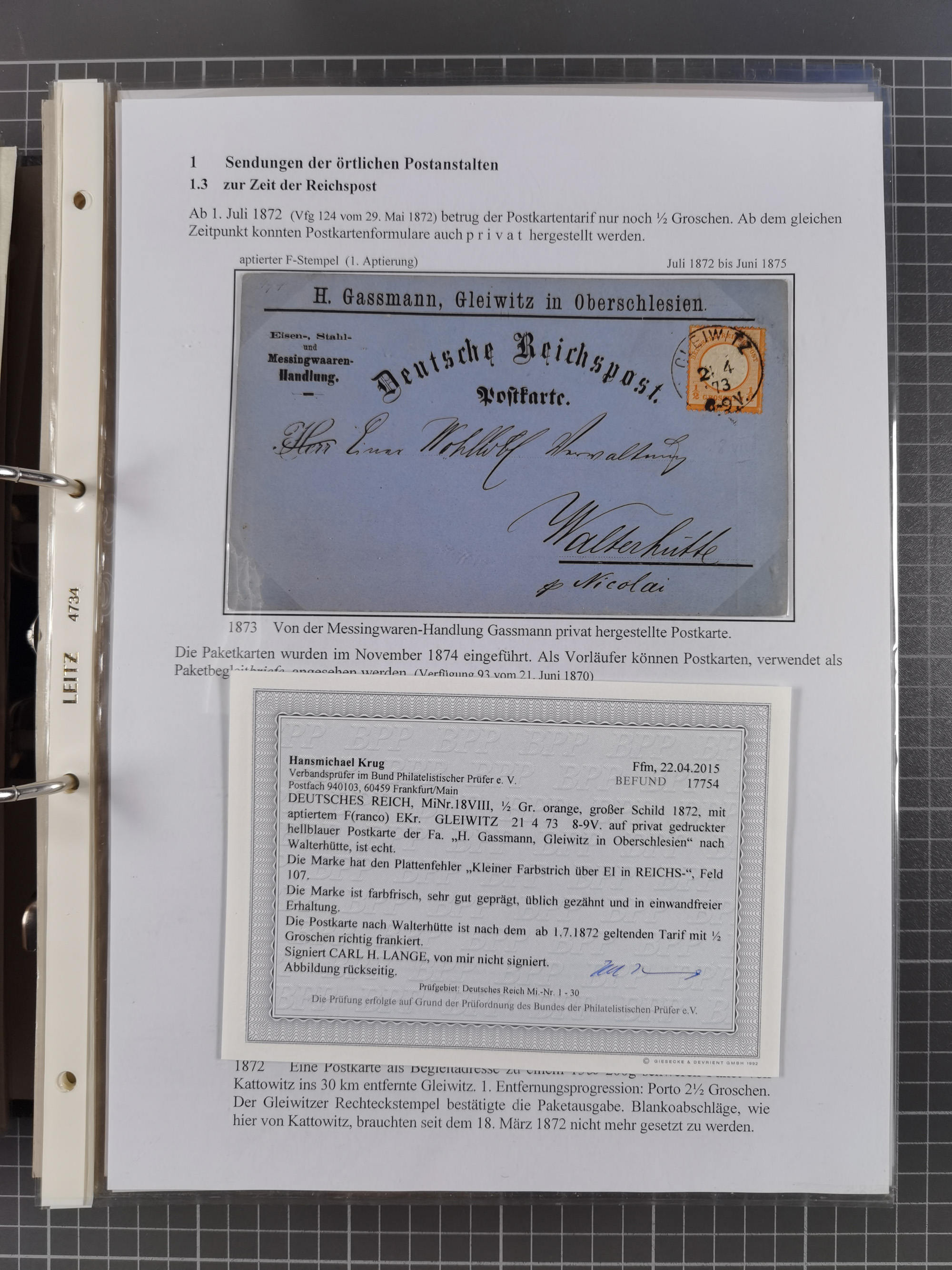 GLEIWITZ: 1817/1950 (ca.), ausstellungsmäßig aufgezogene Sammlung mit reichhaltig zusätzlichem Material, überschlägig rund 350 Belege, dabei Preußen-Nummernstempel auf GSU, Teilfranco-Belege, NDP GAA6 auf Brief, Auslandspost, viel Oberschlesien mit Paketkarten, Flug- und Zeppelin Post, etc. etc. Ein schönes und interessantes Objekt