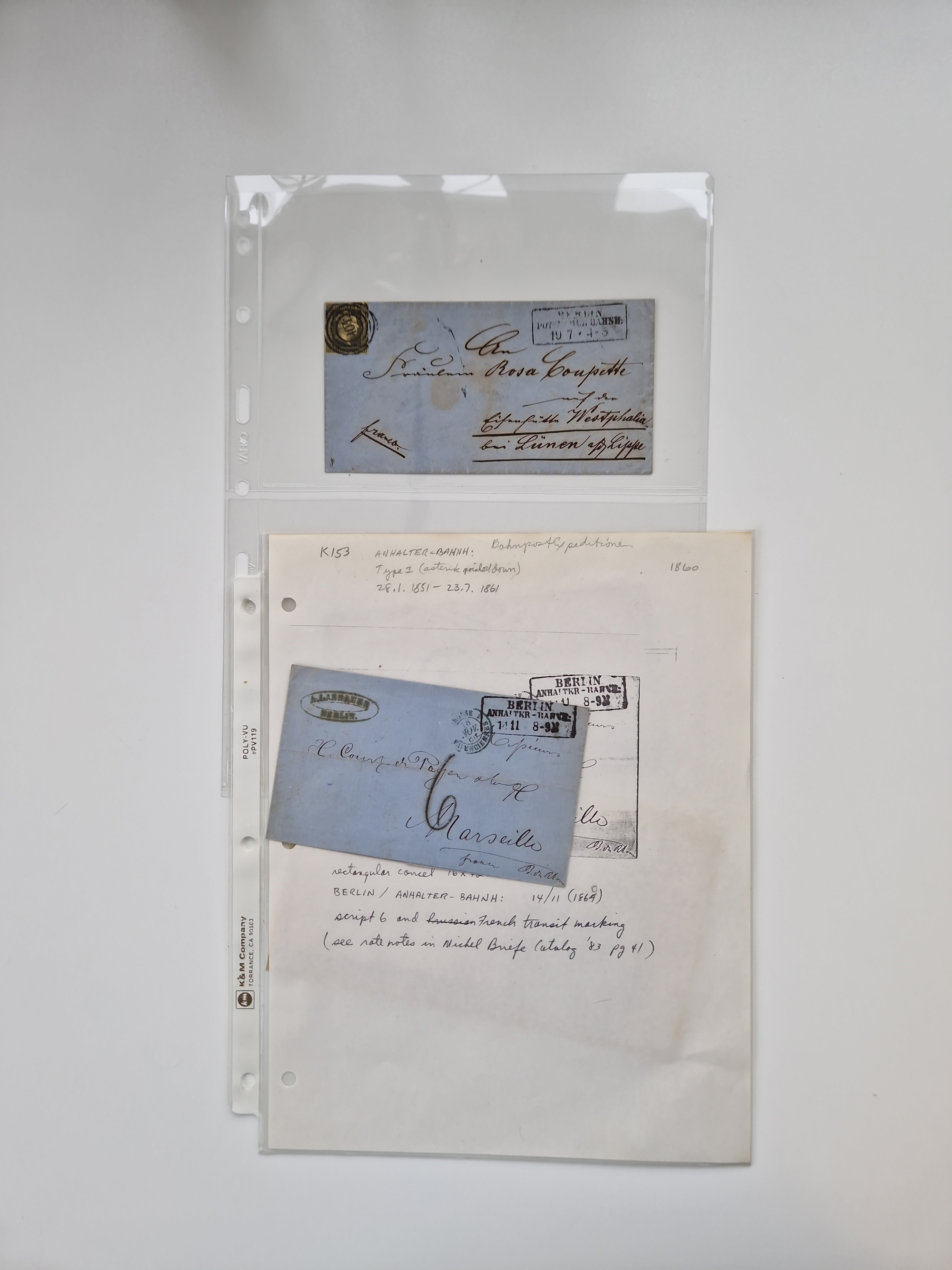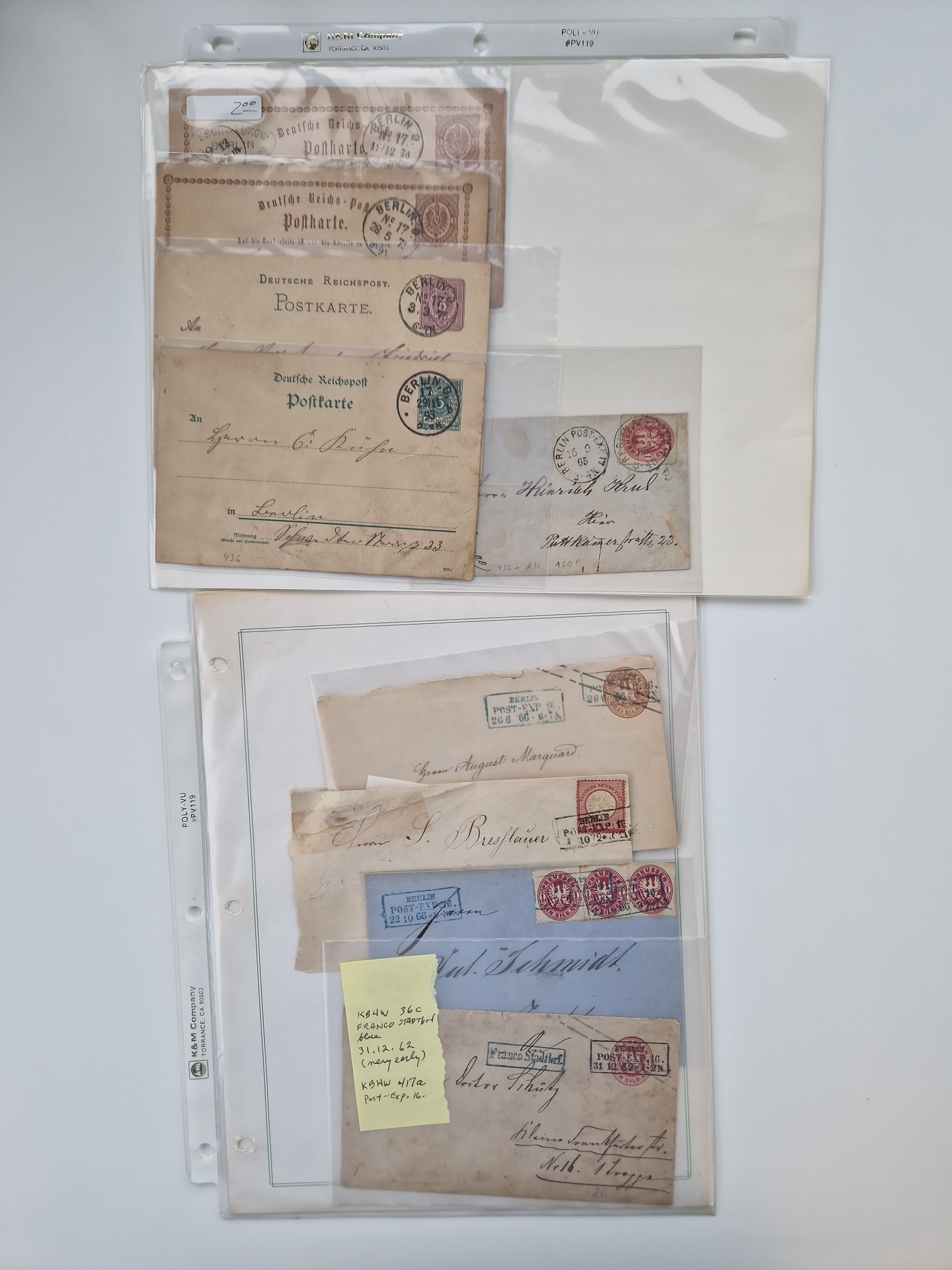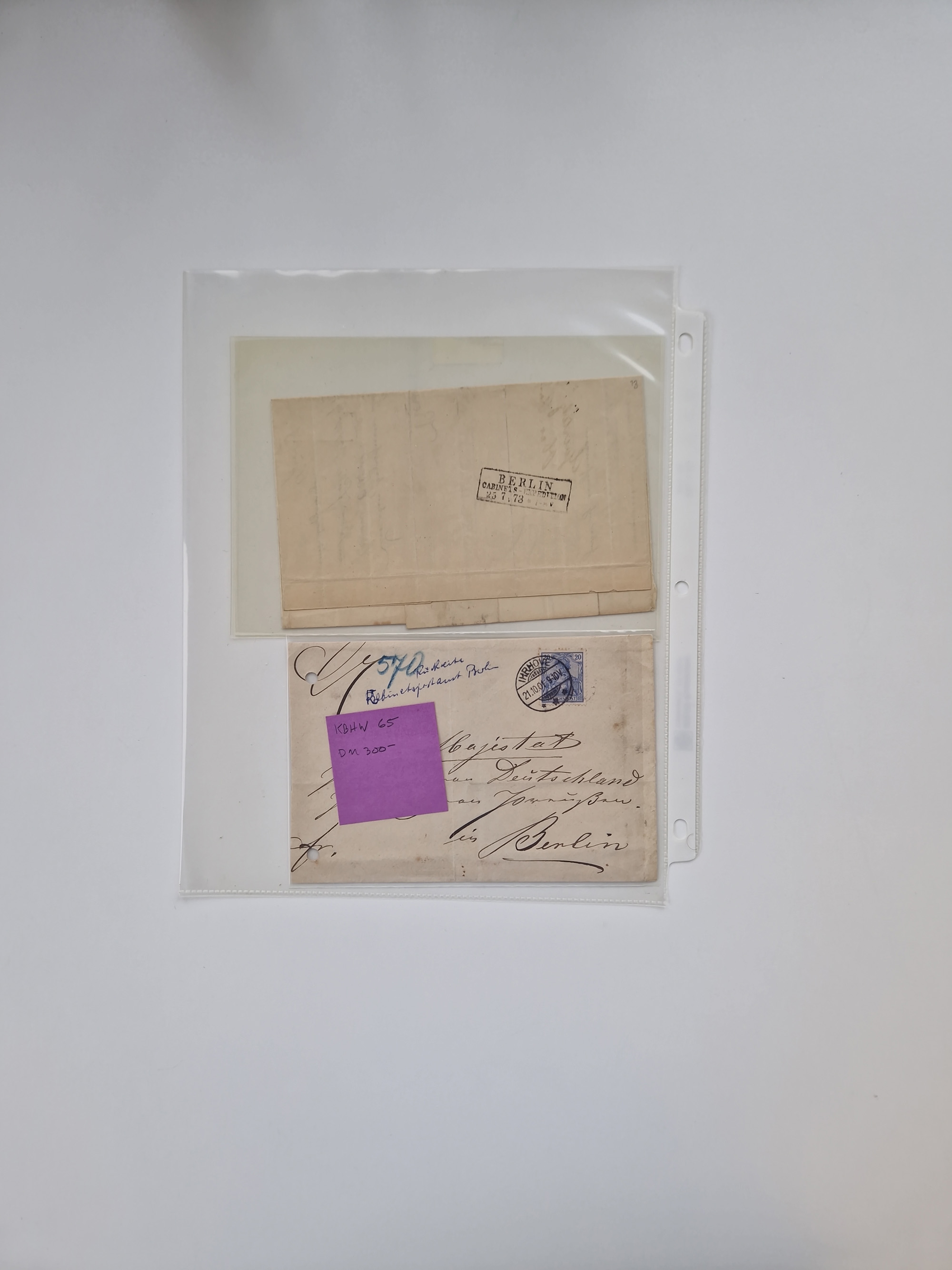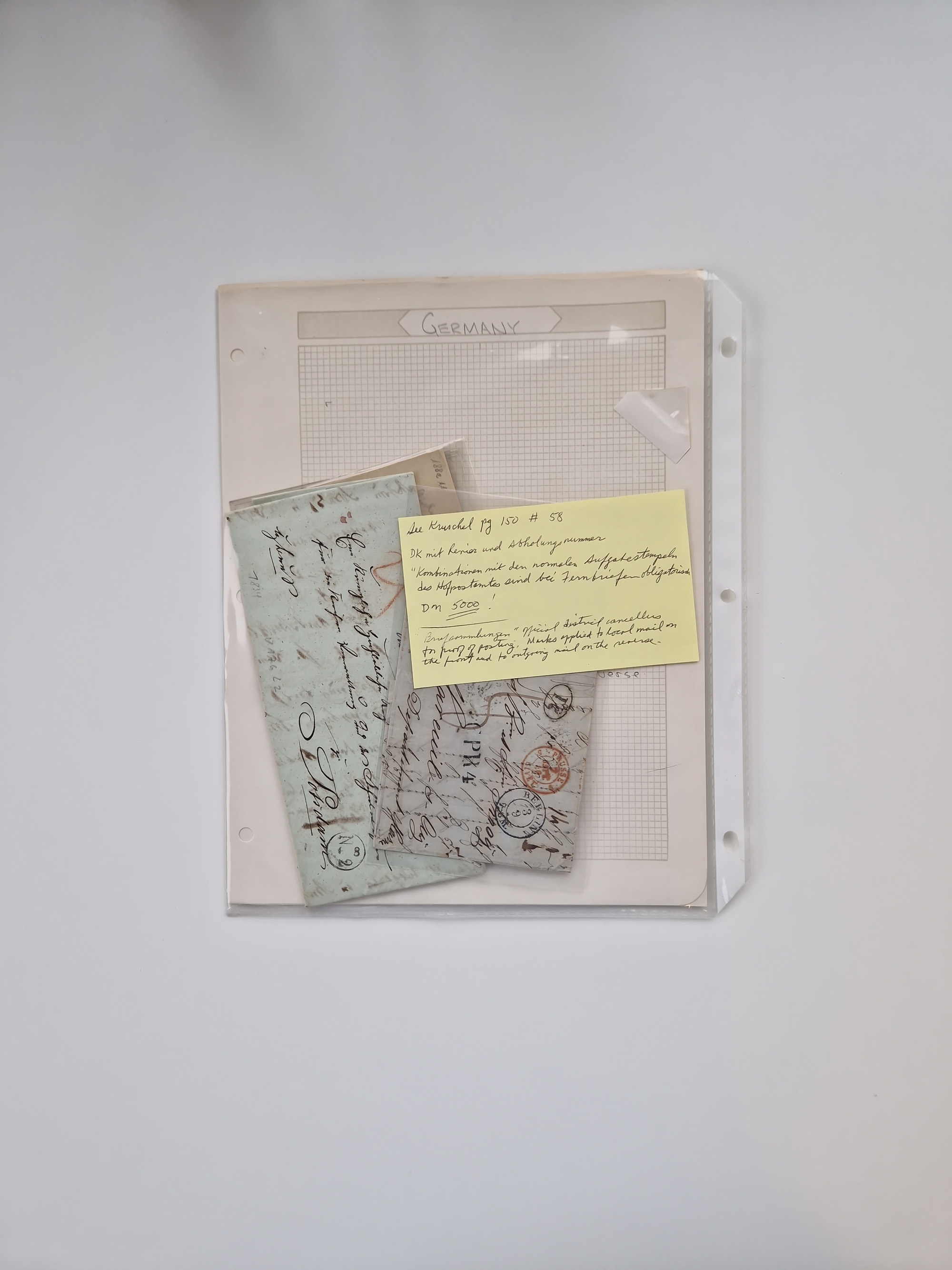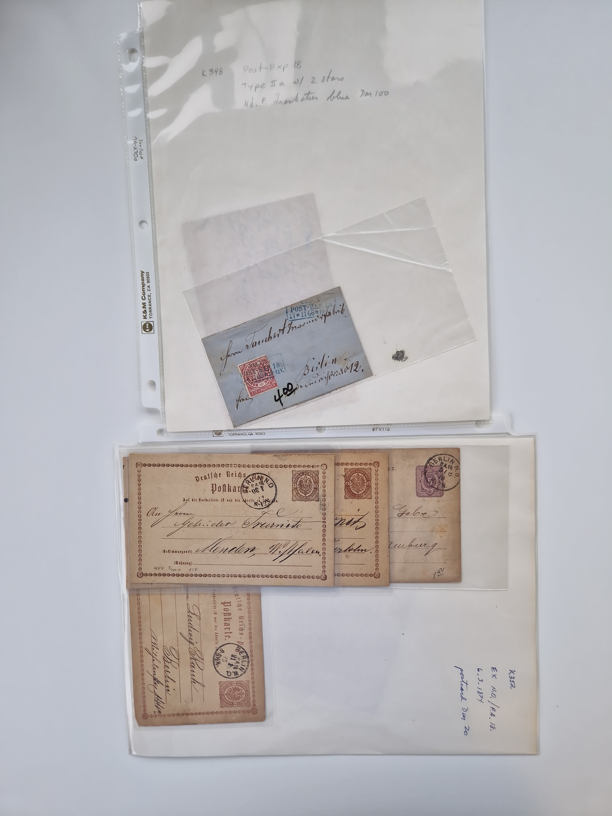 Berlin: 1817/1904,Stempel-Sammlung ab Vorphila mit ca. 280 Briefen, Karten und Ganzsachen mit vielen verschiedenen Stempeln inkl. Bahnpost- und Hufeisenstempeln mit besseren, Schwerpunkt ab Preußen bis ca. 1875. Dabei auch u.a. Nummernstempel “106” auf Brief, “BERLIN P.E.7 F. ” auf Paketbegleitbrief, Rahmenstempel “BERLIN CABINETS-EXPEDITION” auf Brief 1871 und Destinationen ab Preußen mit u.a. Italien, Kanada, Polen und USA. Meist klare Abschläge