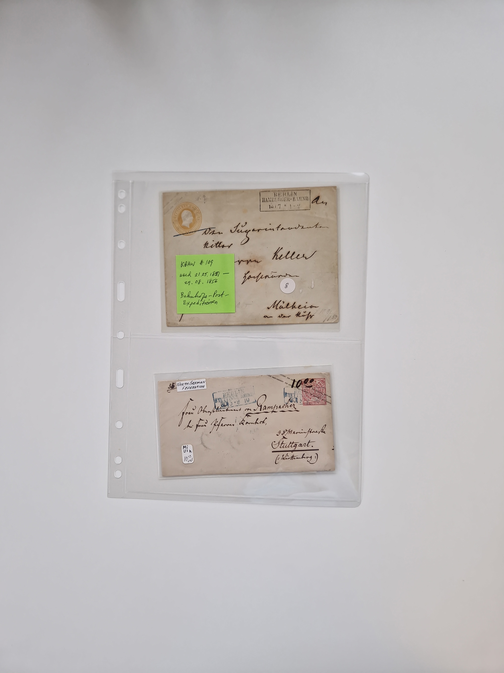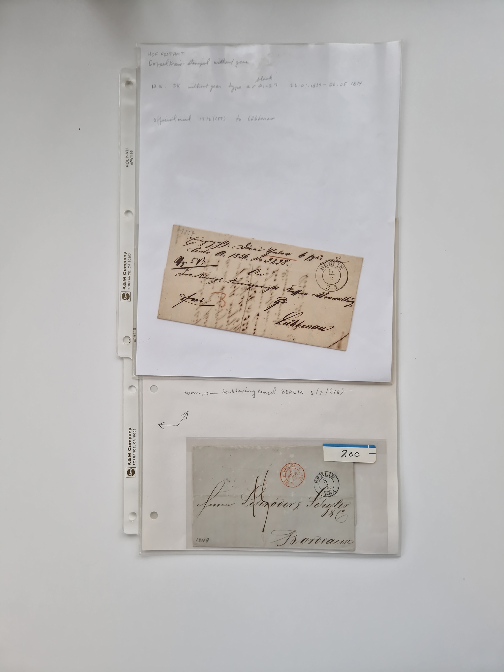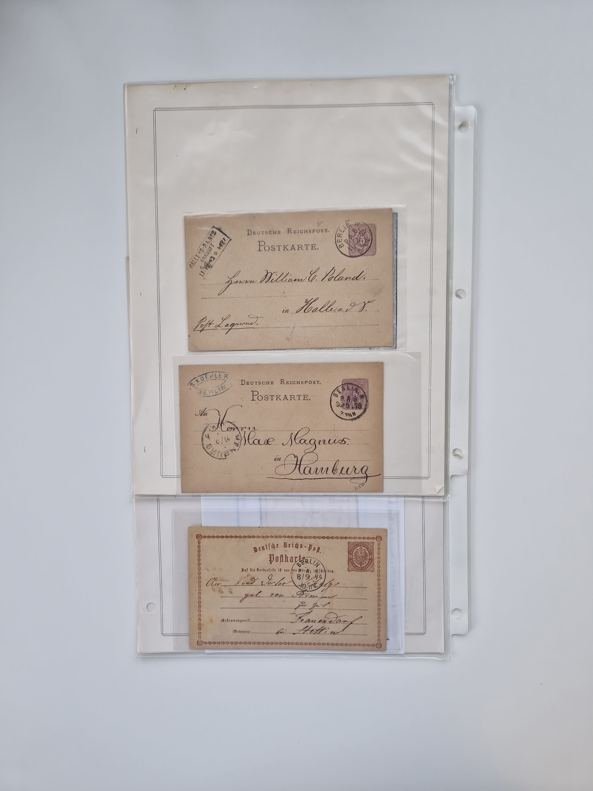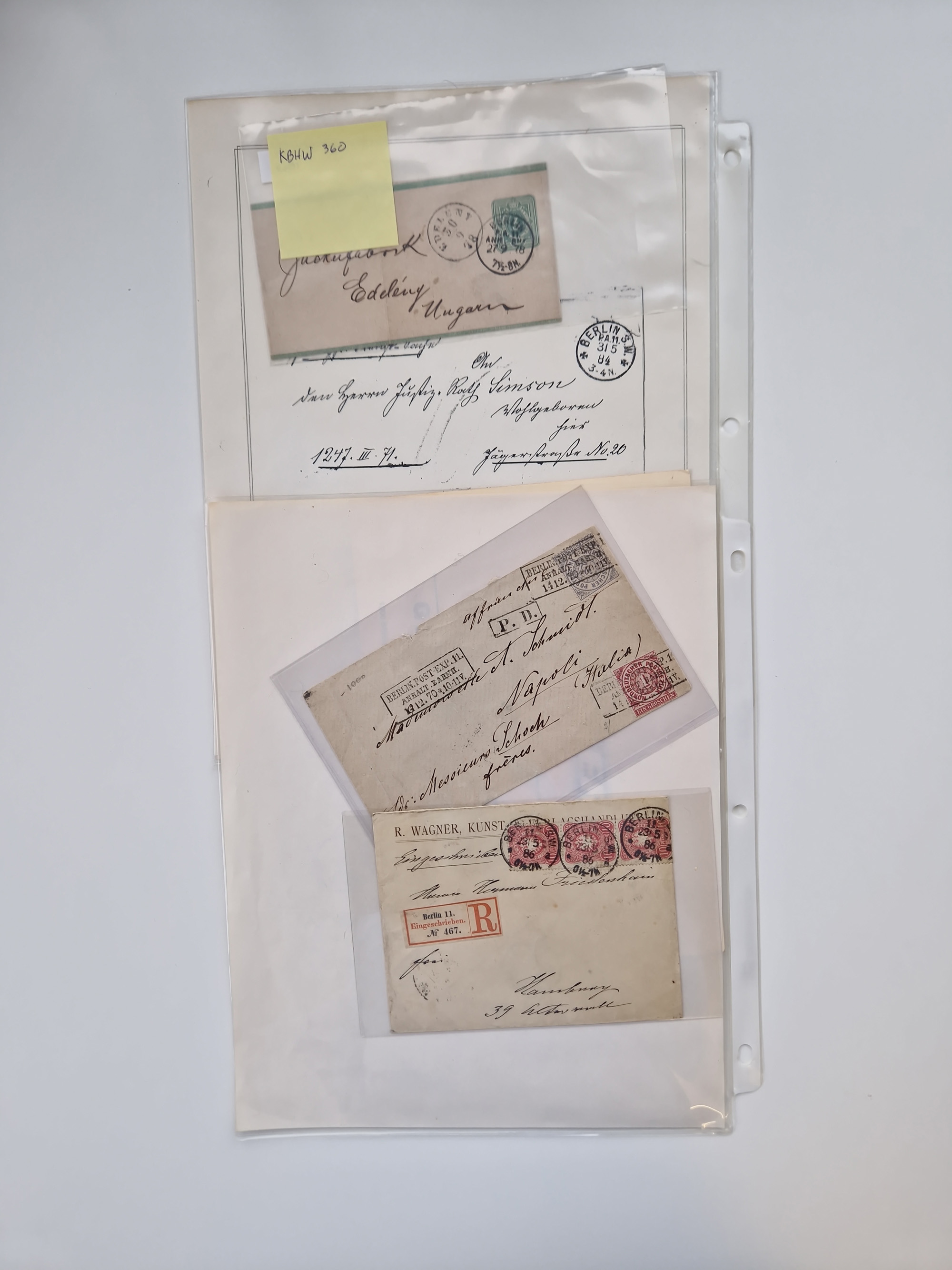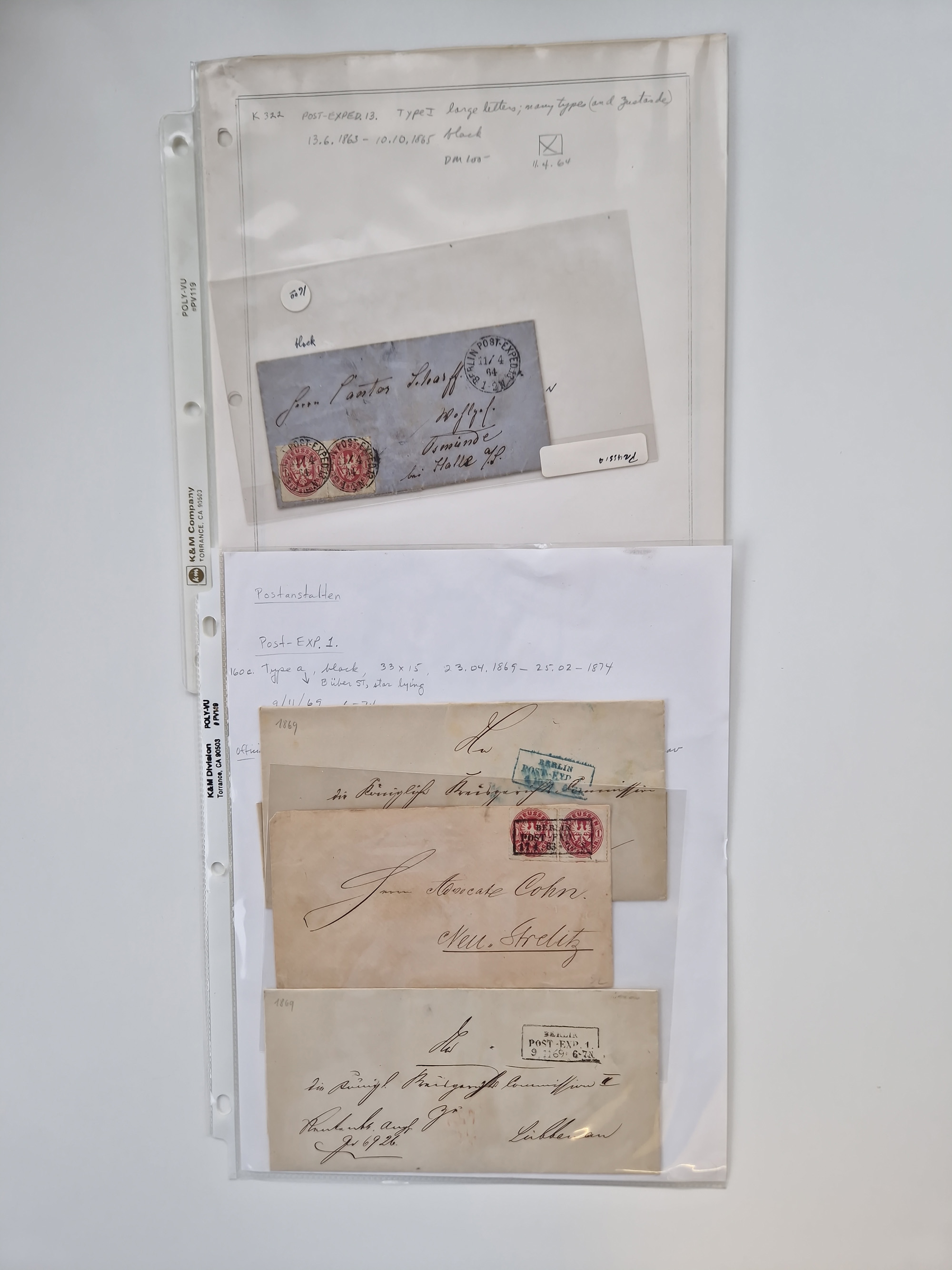 Berlin: 1817/1904,Stempel-Sammlung ab Vorphila mit ca. 280 Briefen, Karten und Ganzsachen mit vielen verschiedenen Stempeln inkl. Bahnpost- und Hufeisenstempeln mit besseren, Schwerpunkt ab Preußen bis ca. 1875. Dabei auch u.a. Nummernstempel “106” auf Brief, “BERLIN P.E.7 F. ” auf Paketbegleitbrief, Rahmenstempel “BERLIN CABINETS-EXPEDITION” auf Brief 1871 und Destinationen ab Preußen mit u.a. Italien, Kanada, Polen und USA. Meist klare Abschläge