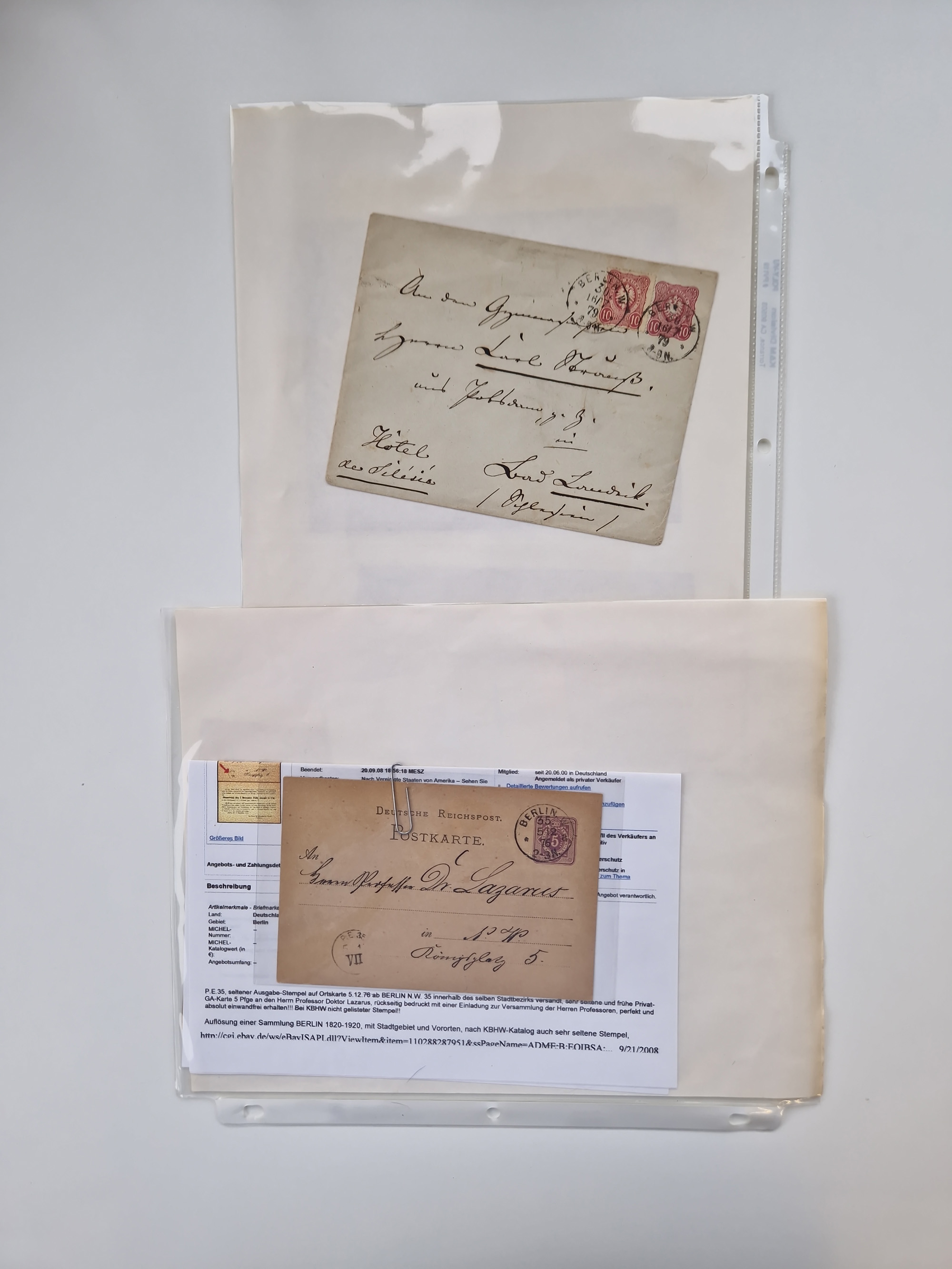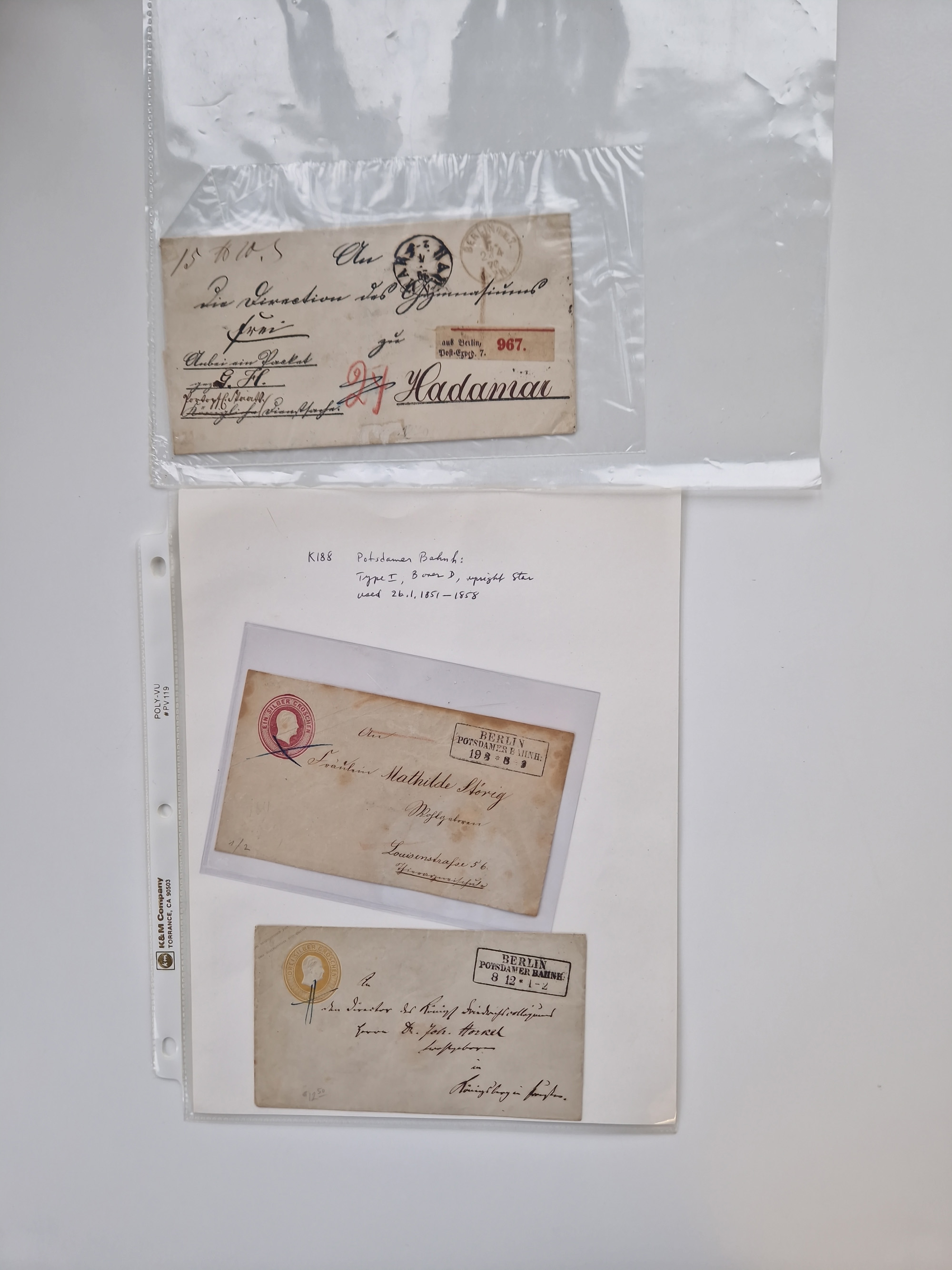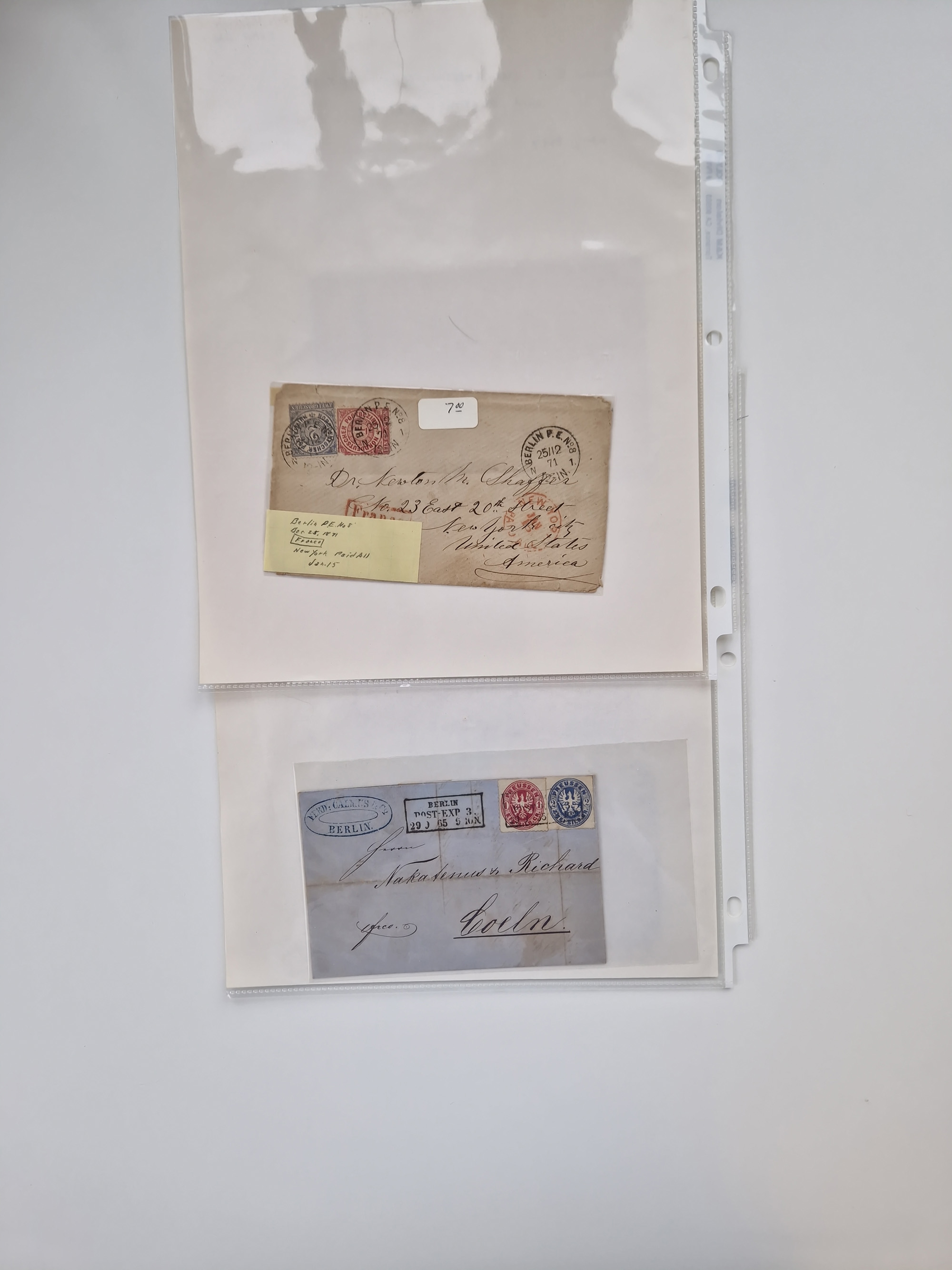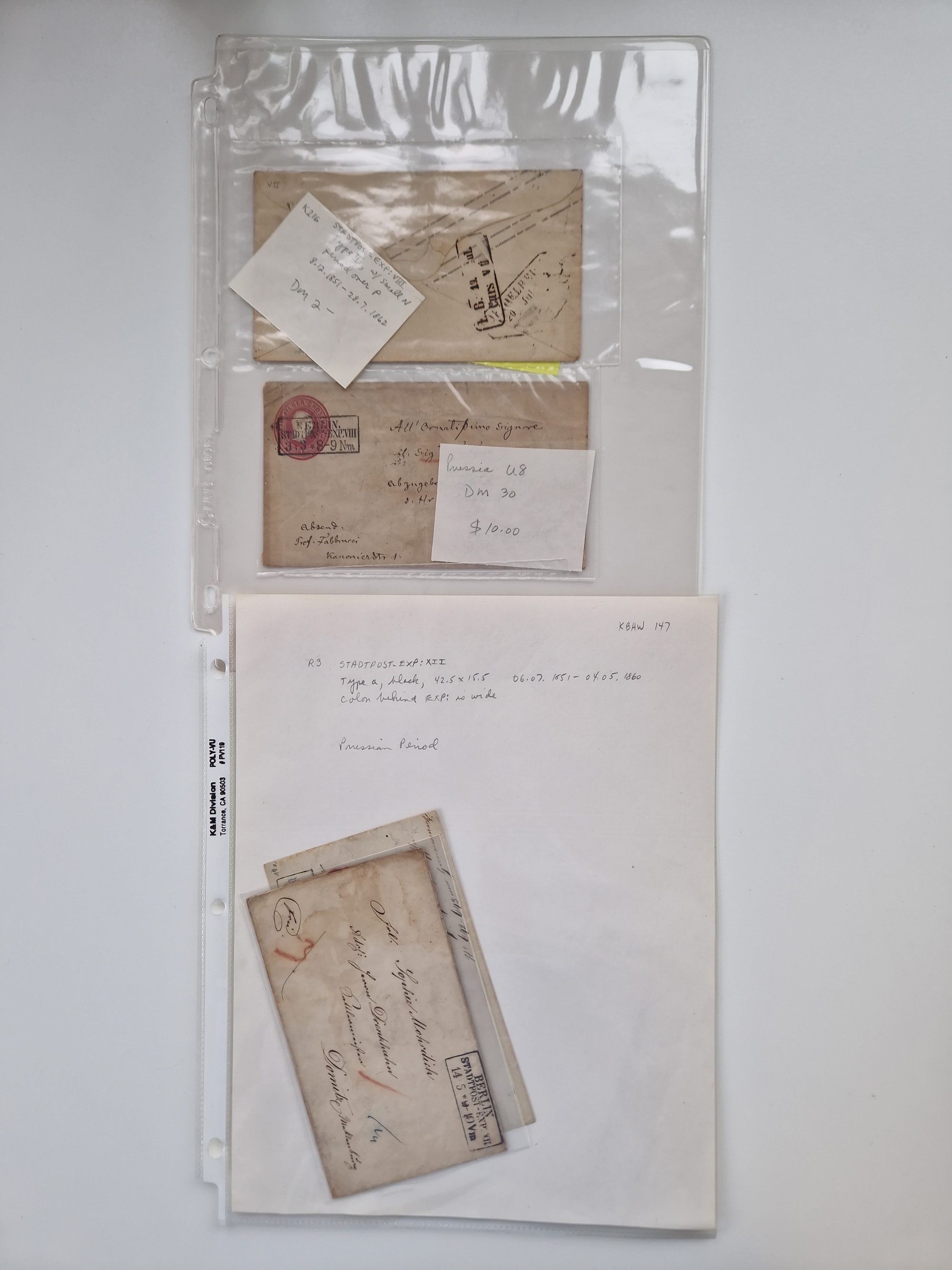 Berlin: 1817/1904,Stempel-Sammlung ab Vorphila mit ca. 280 Briefen, Karten und Ganzsachen mit vielen verschiedenen Stempeln inkl. Bahnpost- und Hufeisenstempeln mit besseren, Schwerpunkt ab Preußen bis ca. 1875. Dabei auch u.a. Nummernstempel “106” auf Brief, “BERLIN P.E.7 F. ” auf Paketbegleitbrief, Rahmenstempel “BERLIN CABINETS-EXPEDITION” auf Brief 1871 und Destinationen ab Preußen mit u.a. Italien, Kanada, Polen und USA. Meist klare Abschläge