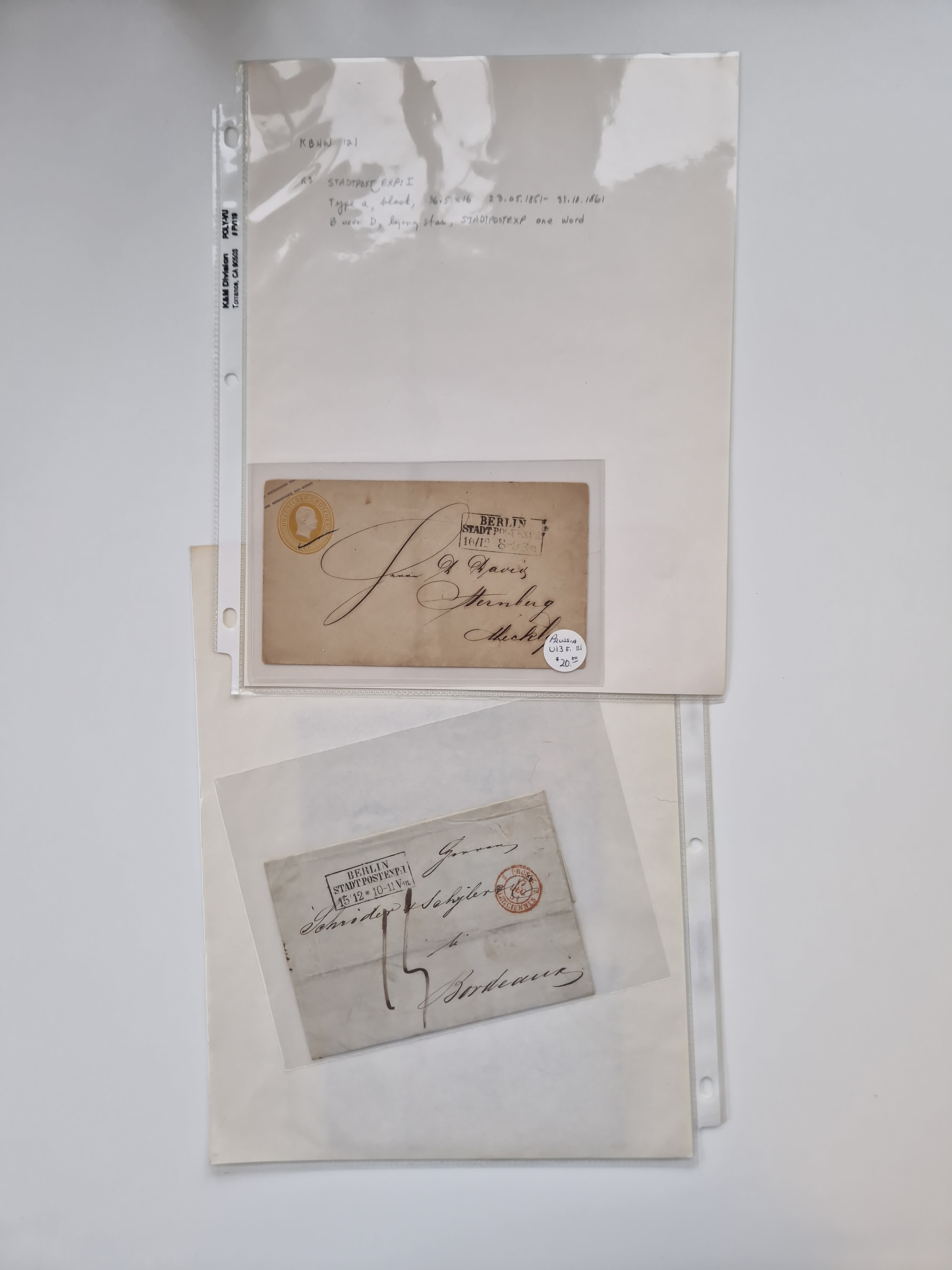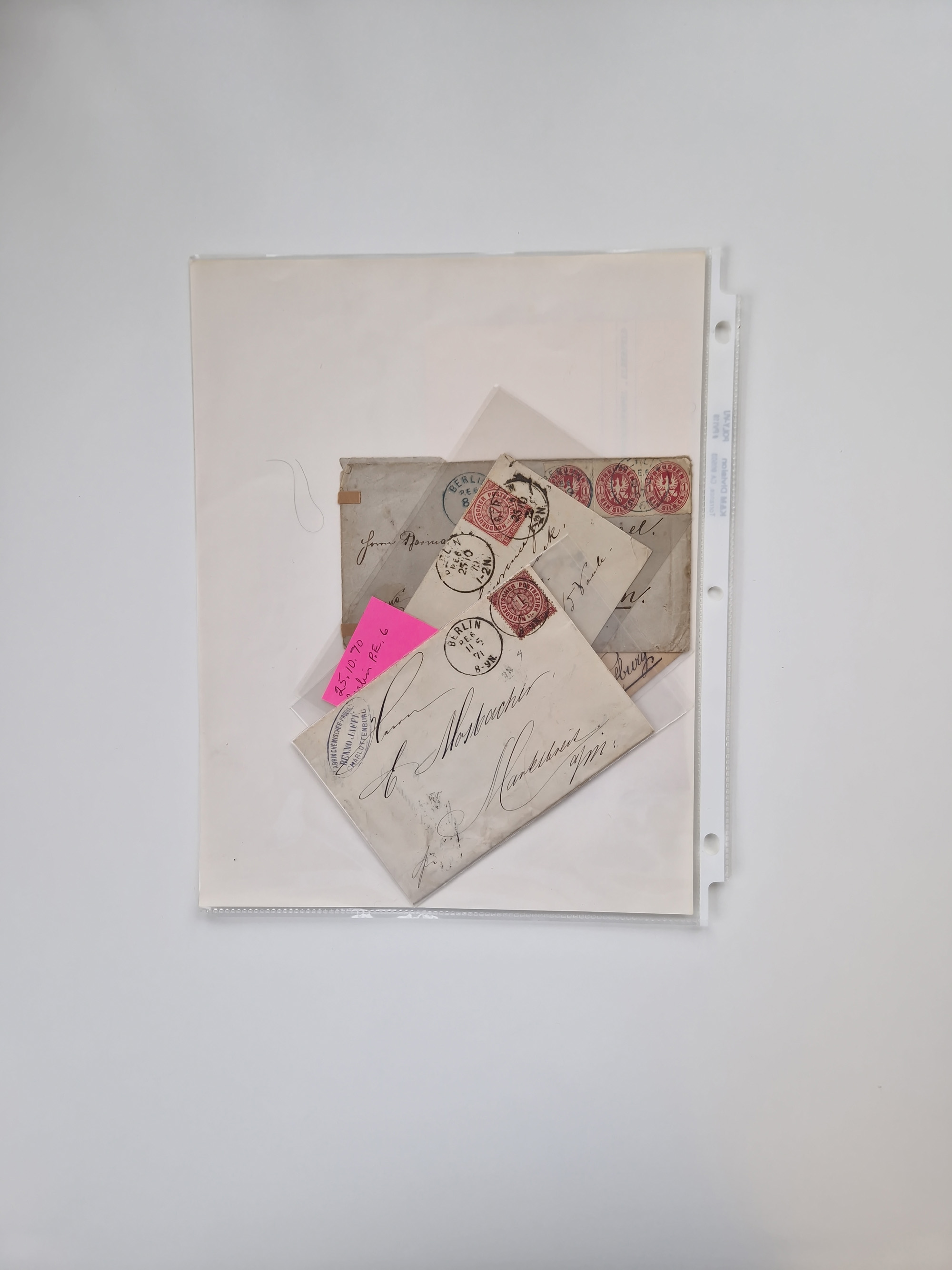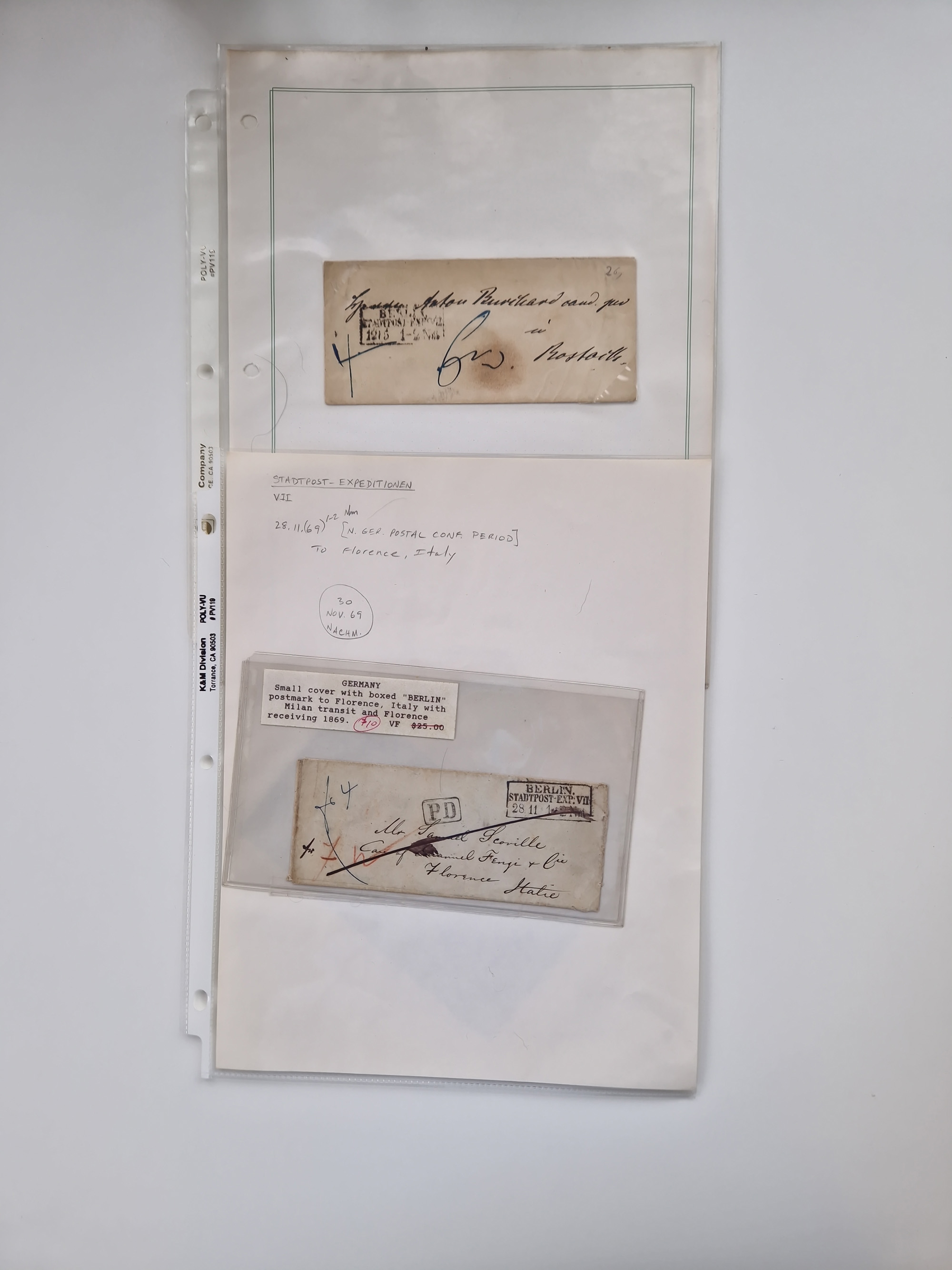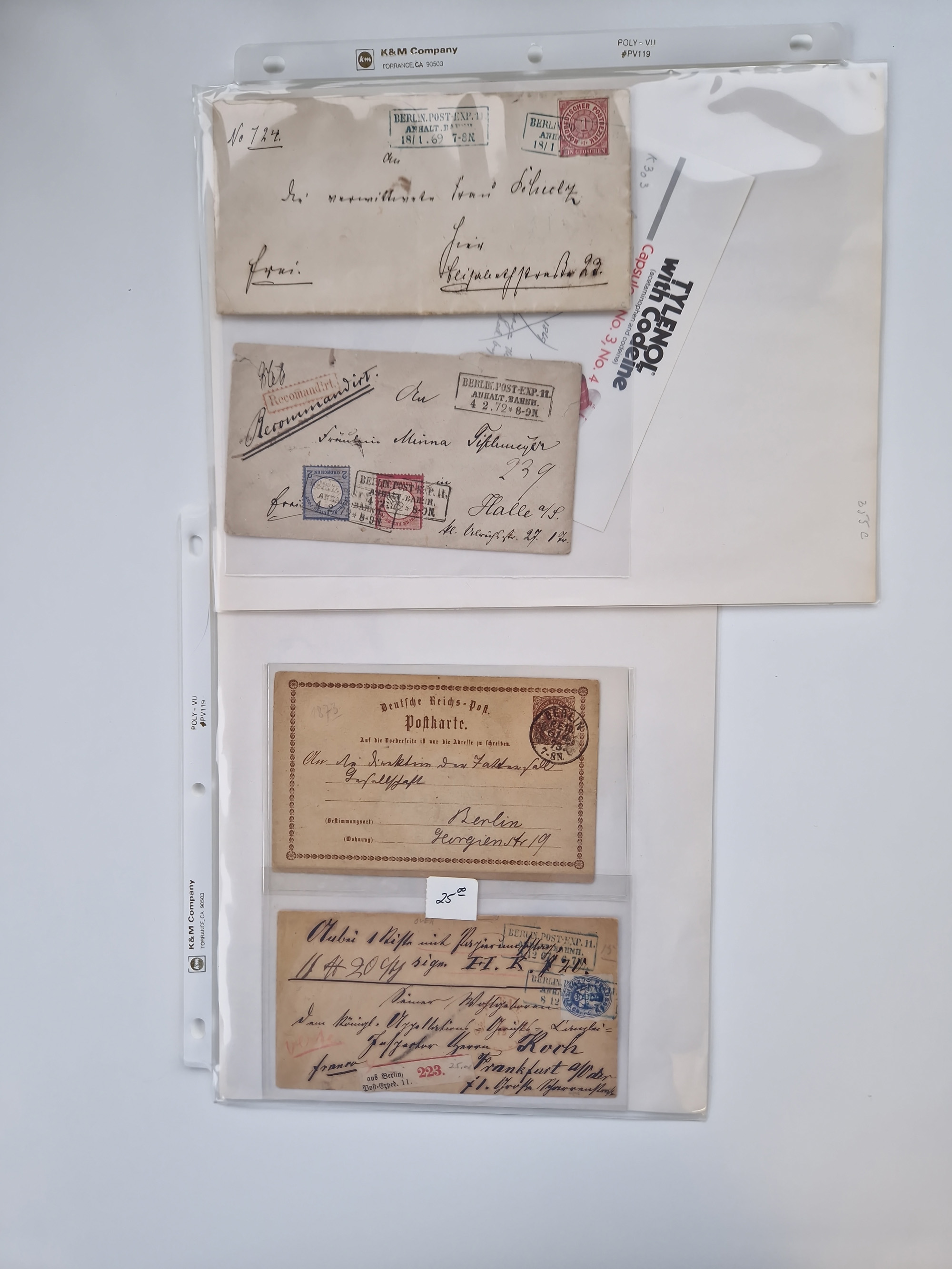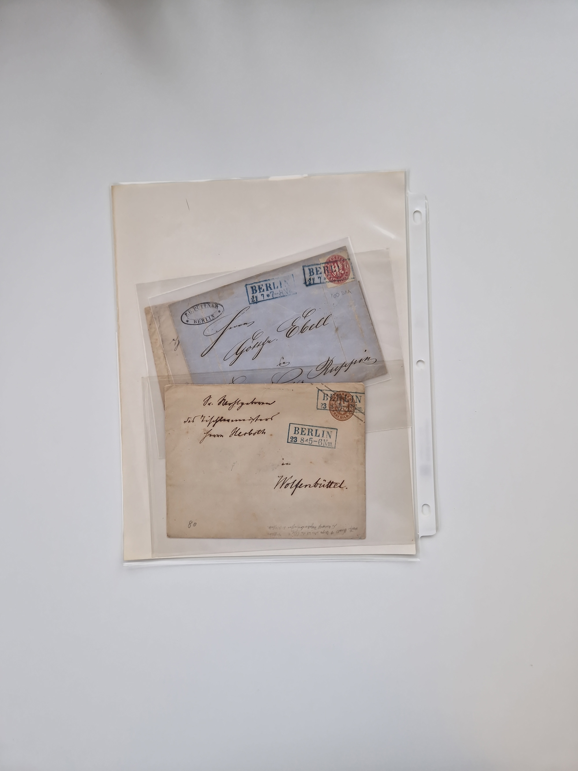 Berlin: 1817/1904,Stempel-Sammlung ab Vorphila mit ca. 280 Briefen, Karten und Ganzsachen mit vielen verschiedenen Stempeln inkl. Bahnpost- und Hufeisenstempeln mit besseren, Schwerpunkt ab Preußen bis ca. 1875. Dabei auch u.a. Nummernstempel “106” auf Brief, “BERLIN P.E.7 F. ” auf Paketbegleitbrief, Rahmenstempel “BERLIN CABINETS-EXPEDITION” auf Brief 1871 und Destinationen ab Preußen mit u.a. Italien, Kanada, Polen und USA. Meist klare Abschläge