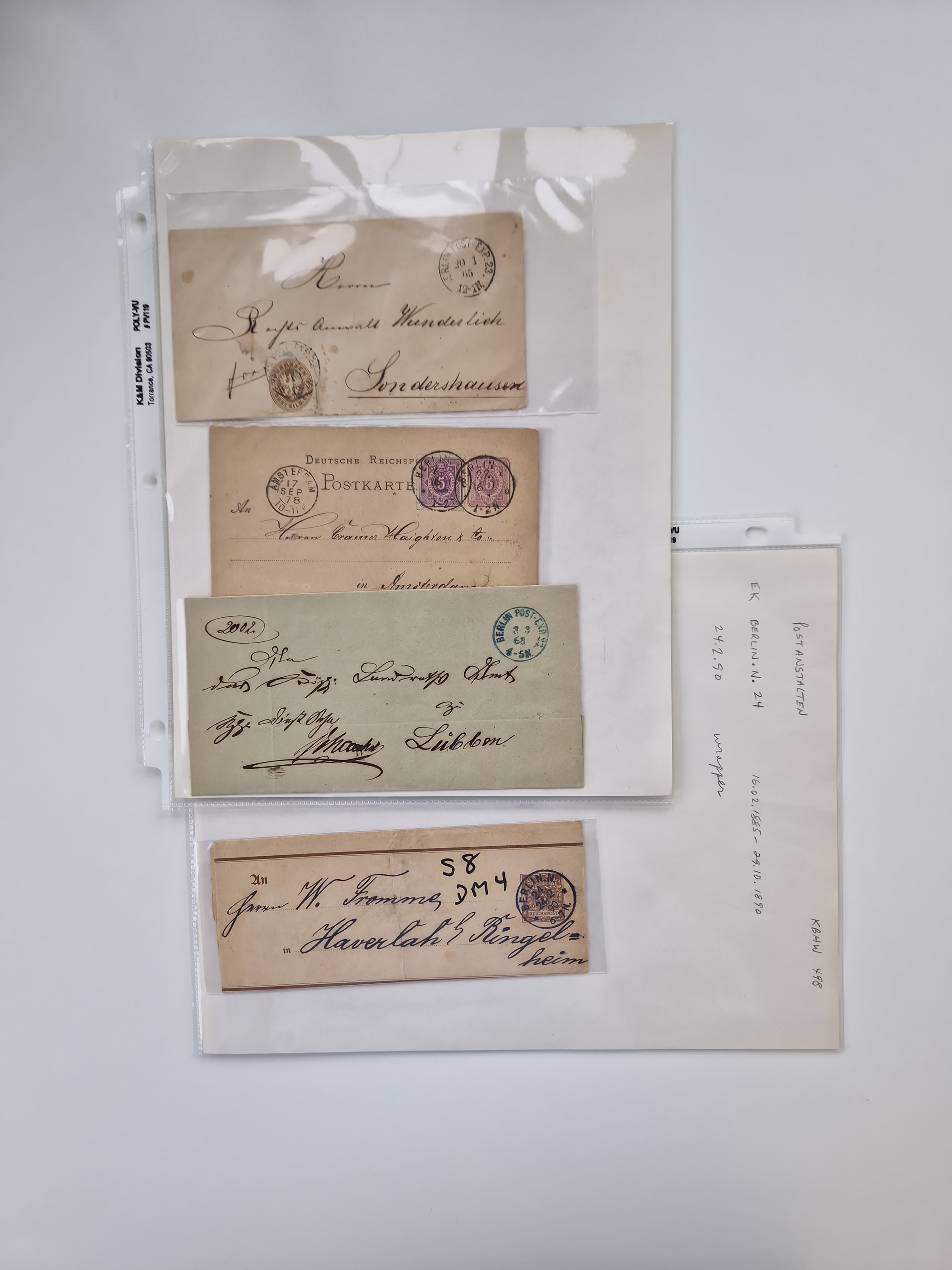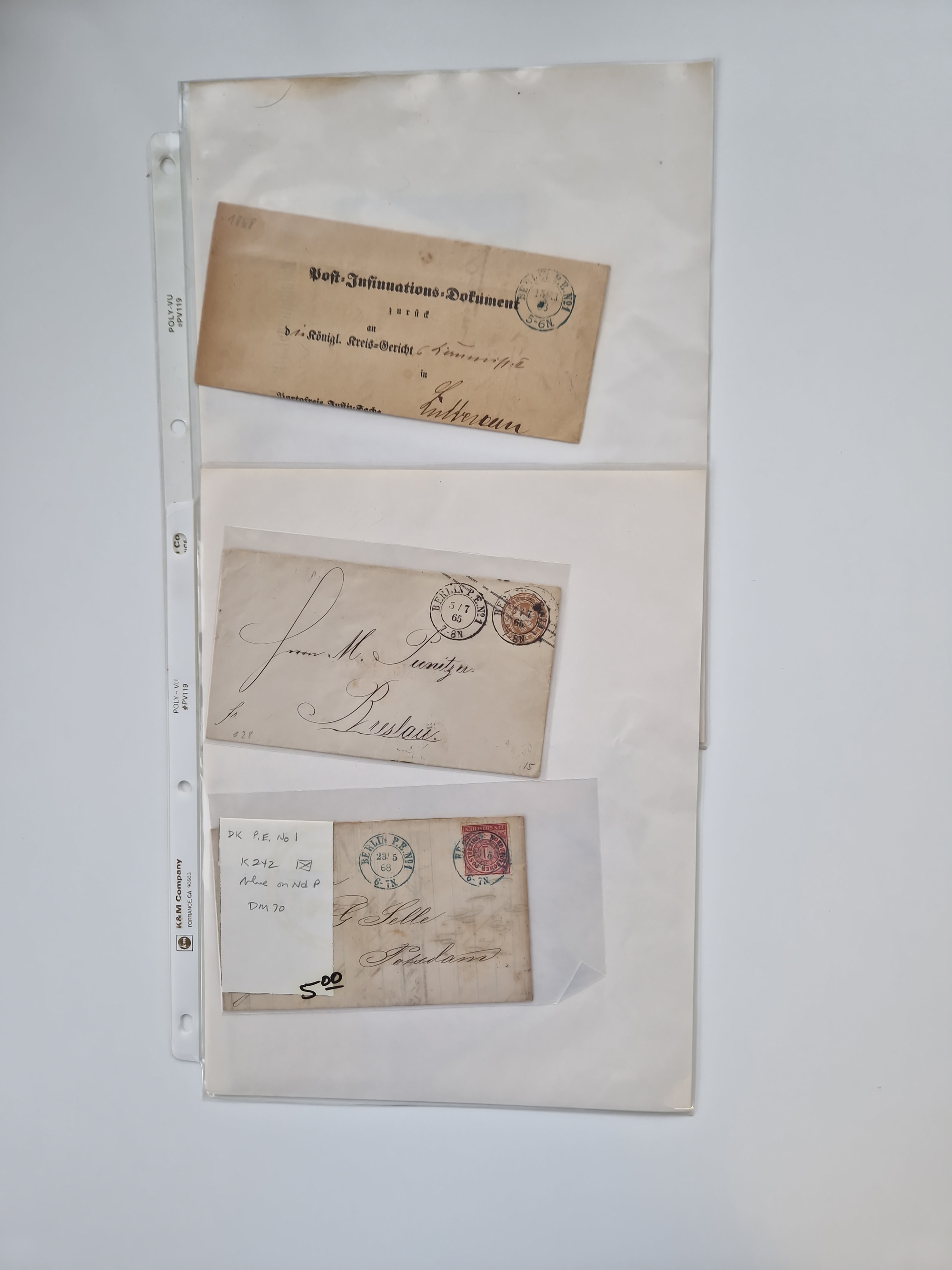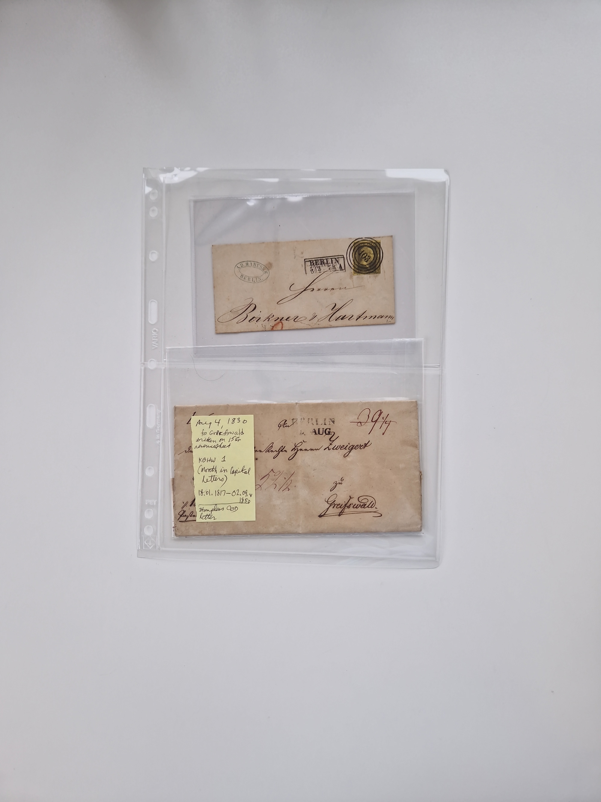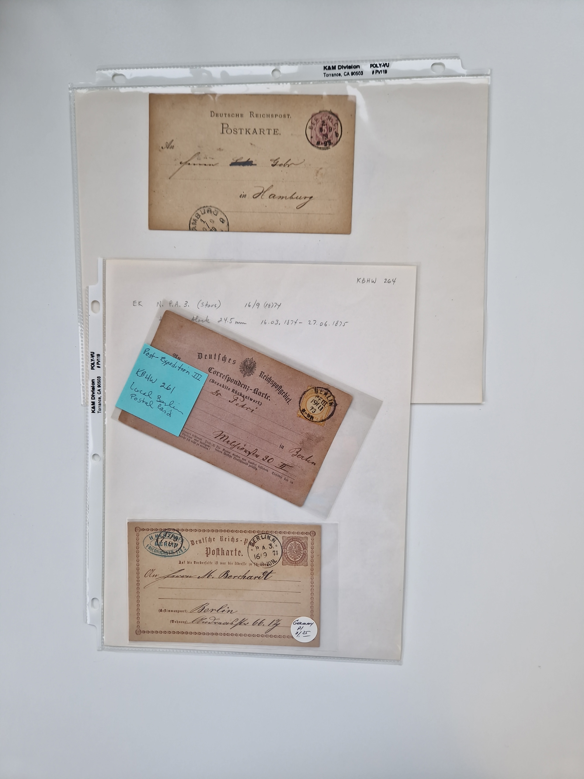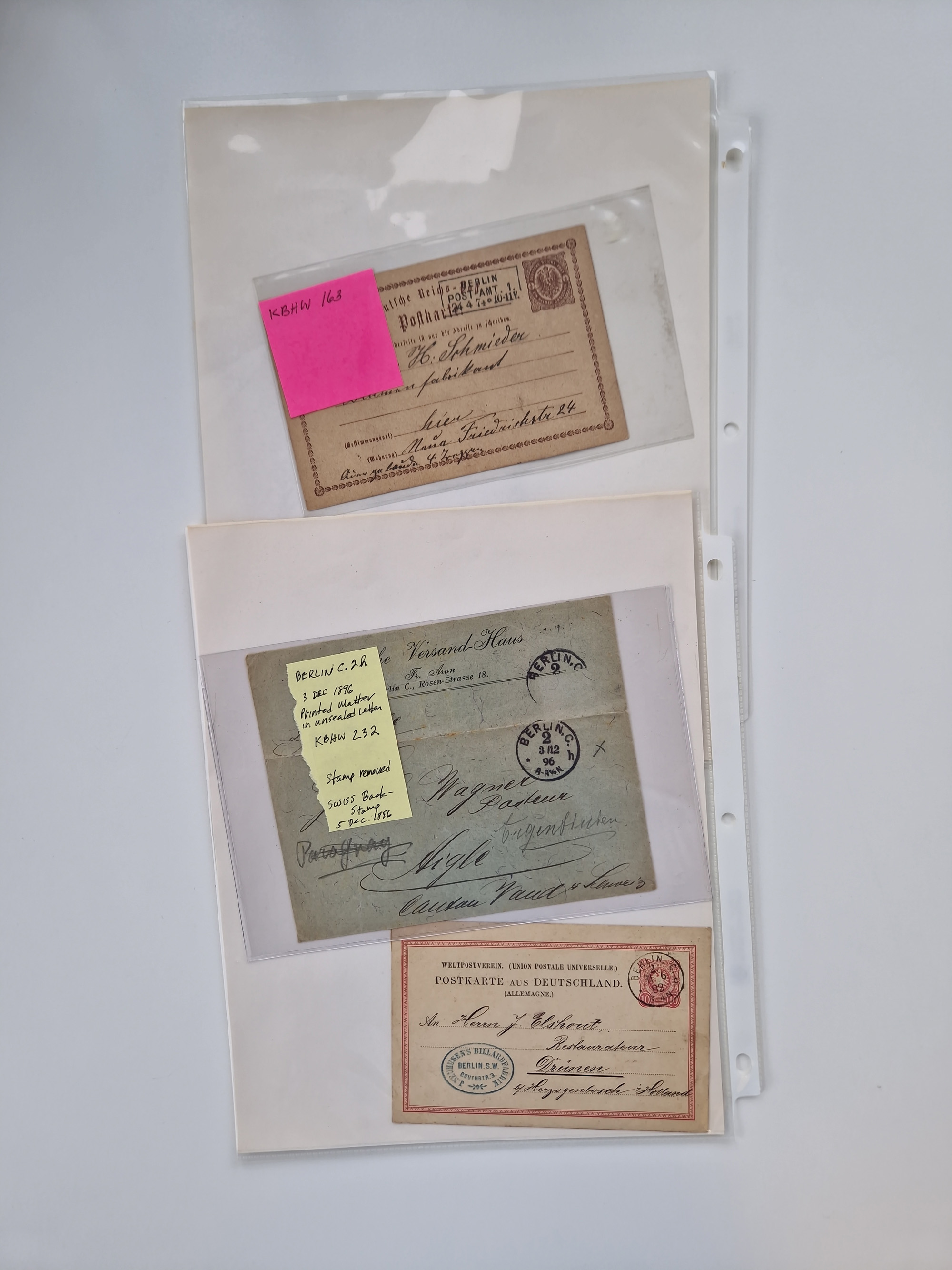 Berlin: 1817/1904,Stempel-Sammlung ab Vorphila mit ca. 280 Briefen, Karten und Ganzsachen mit vielen verschiedenen Stempeln inkl. Bahnpost- und Hufeisenstempeln mit besseren, Schwerpunkt ab Preußen bis ca. 1875. Dabei auch u.a. Nummernstempel “106” auf Brief, “BERLIN P.E.7 F. ” auf Paketbegleitbrief, Rahmenstempel “BERLIN CABINETS-EXPEDITION” auf Brief 1871 und Destinationen ab Preußen mit u.a. Italien, Kanada, Polen und USA. Meist klare Abschläge