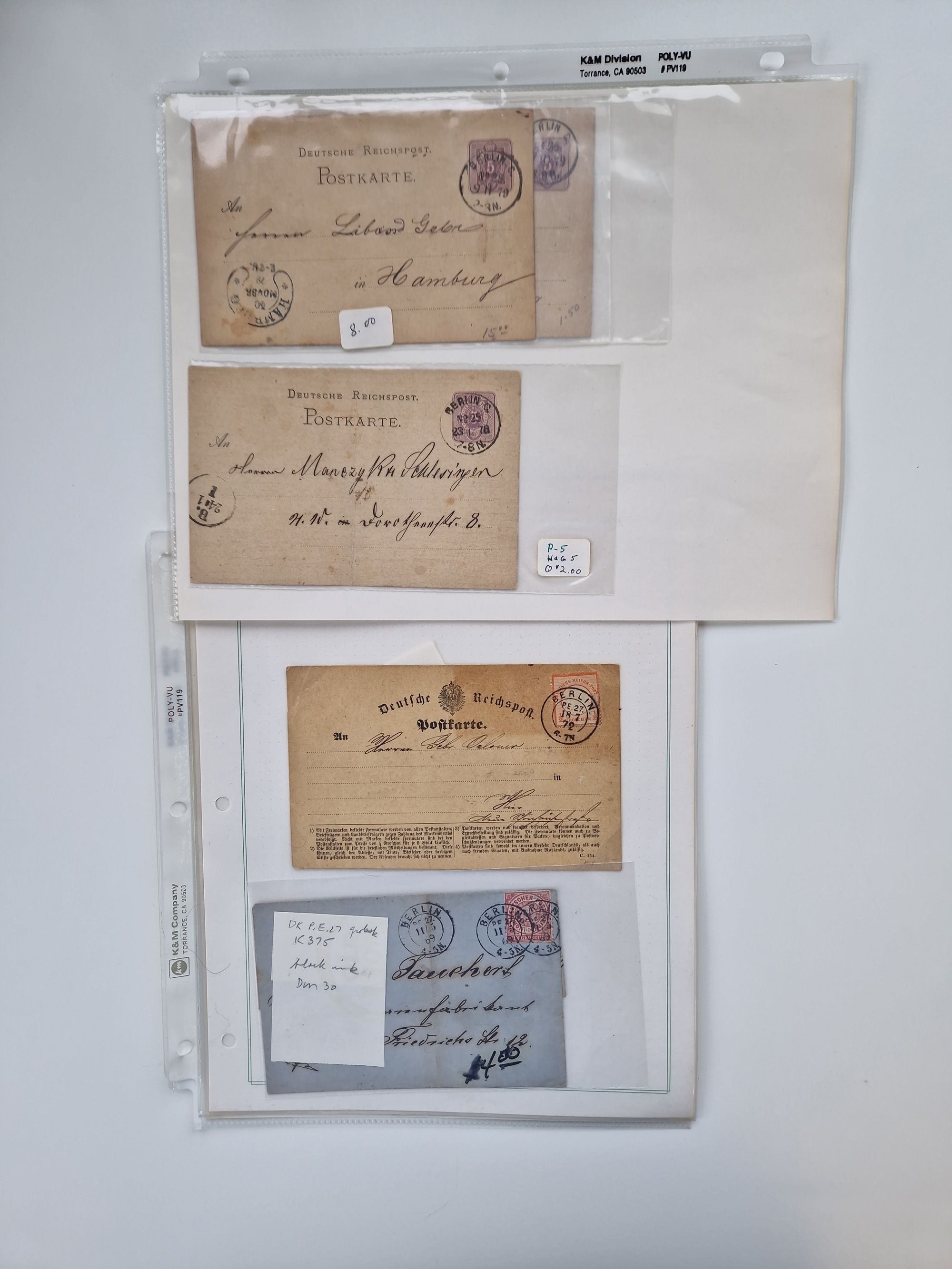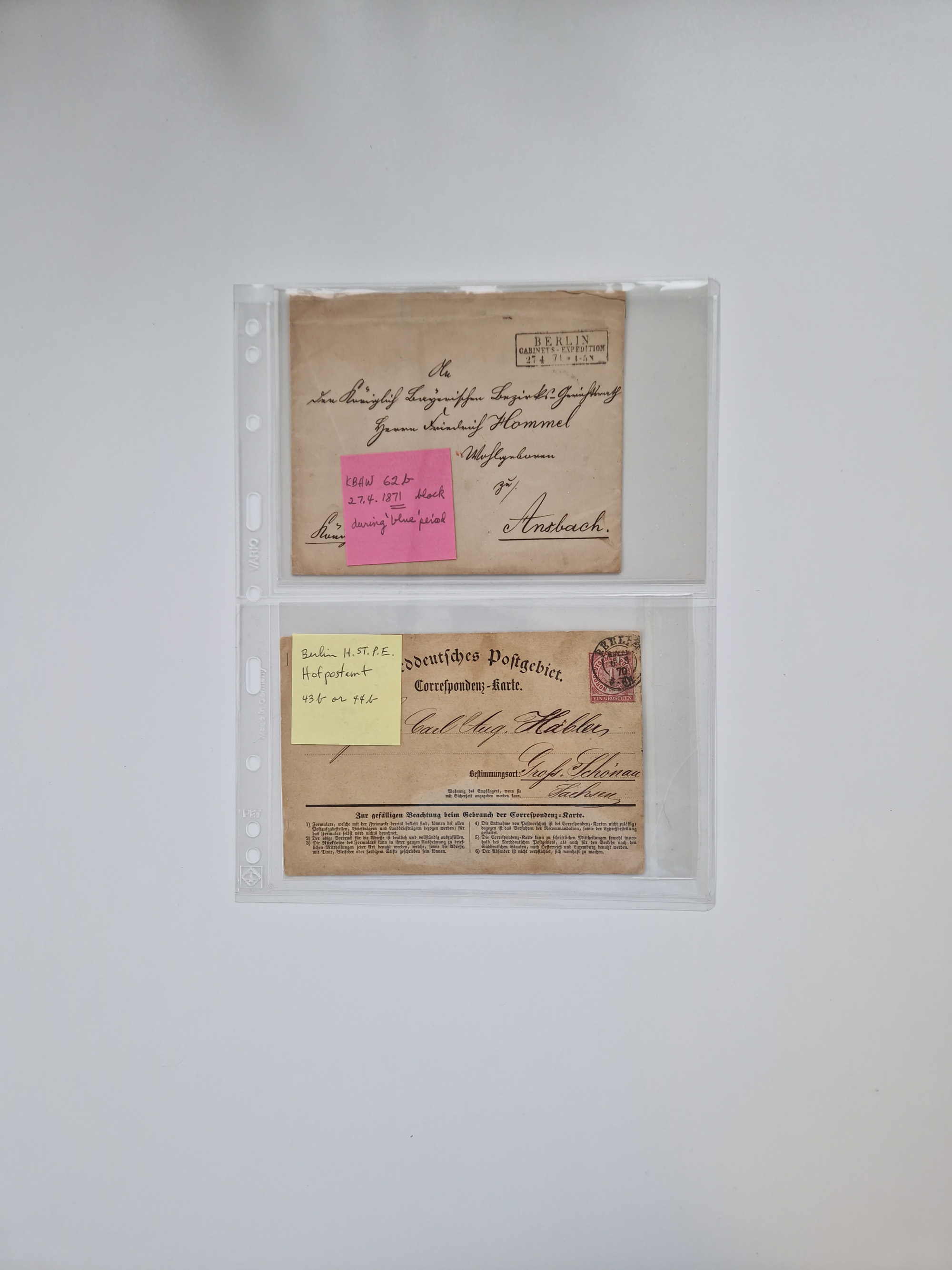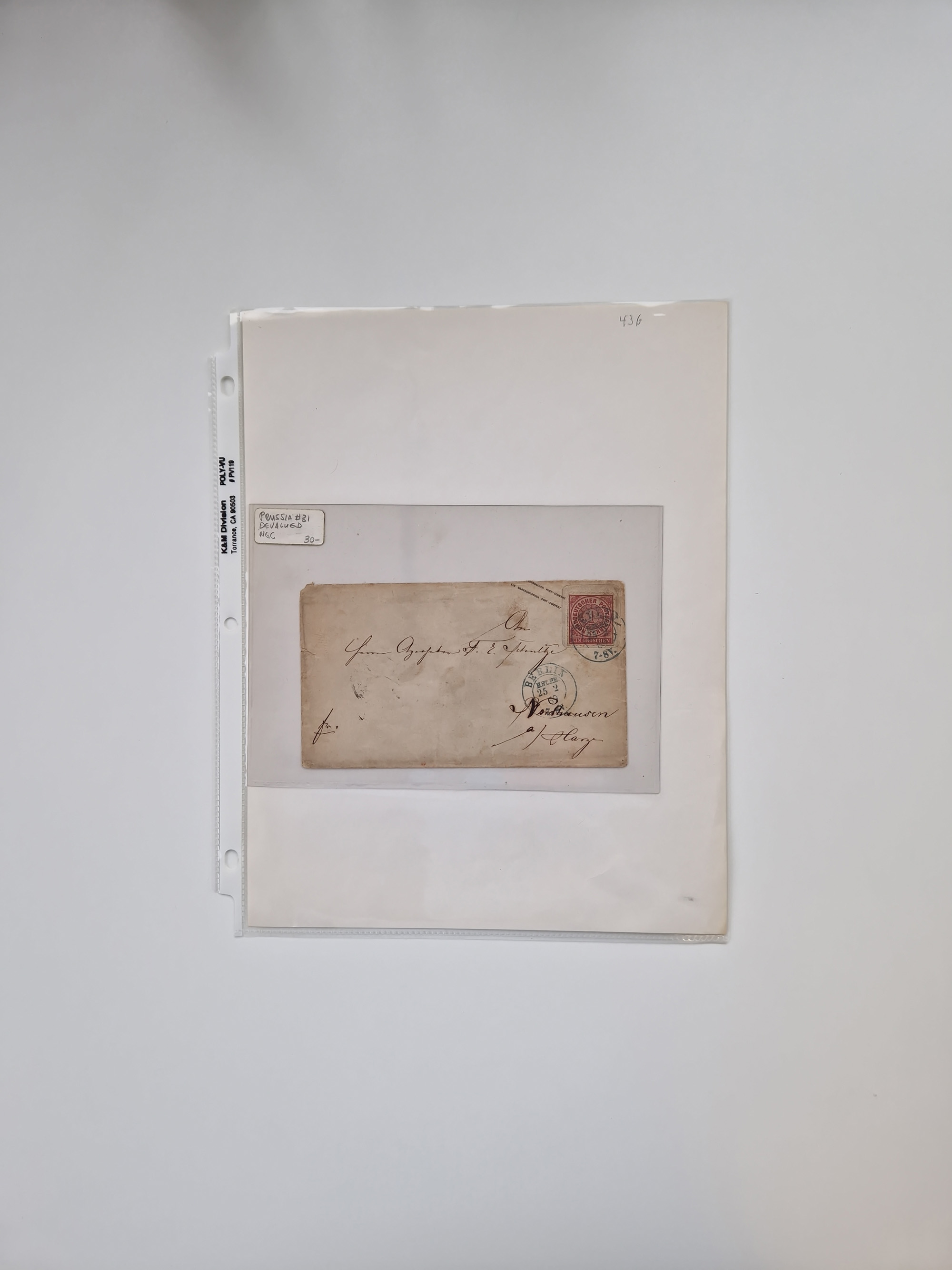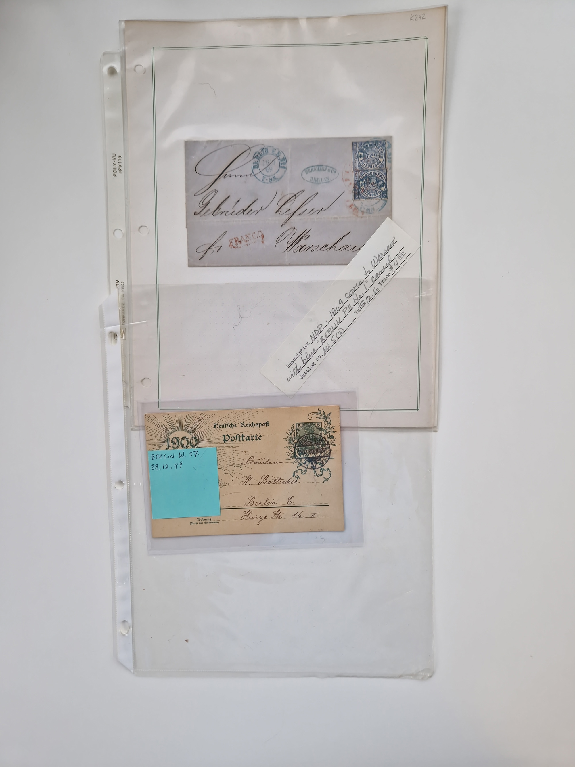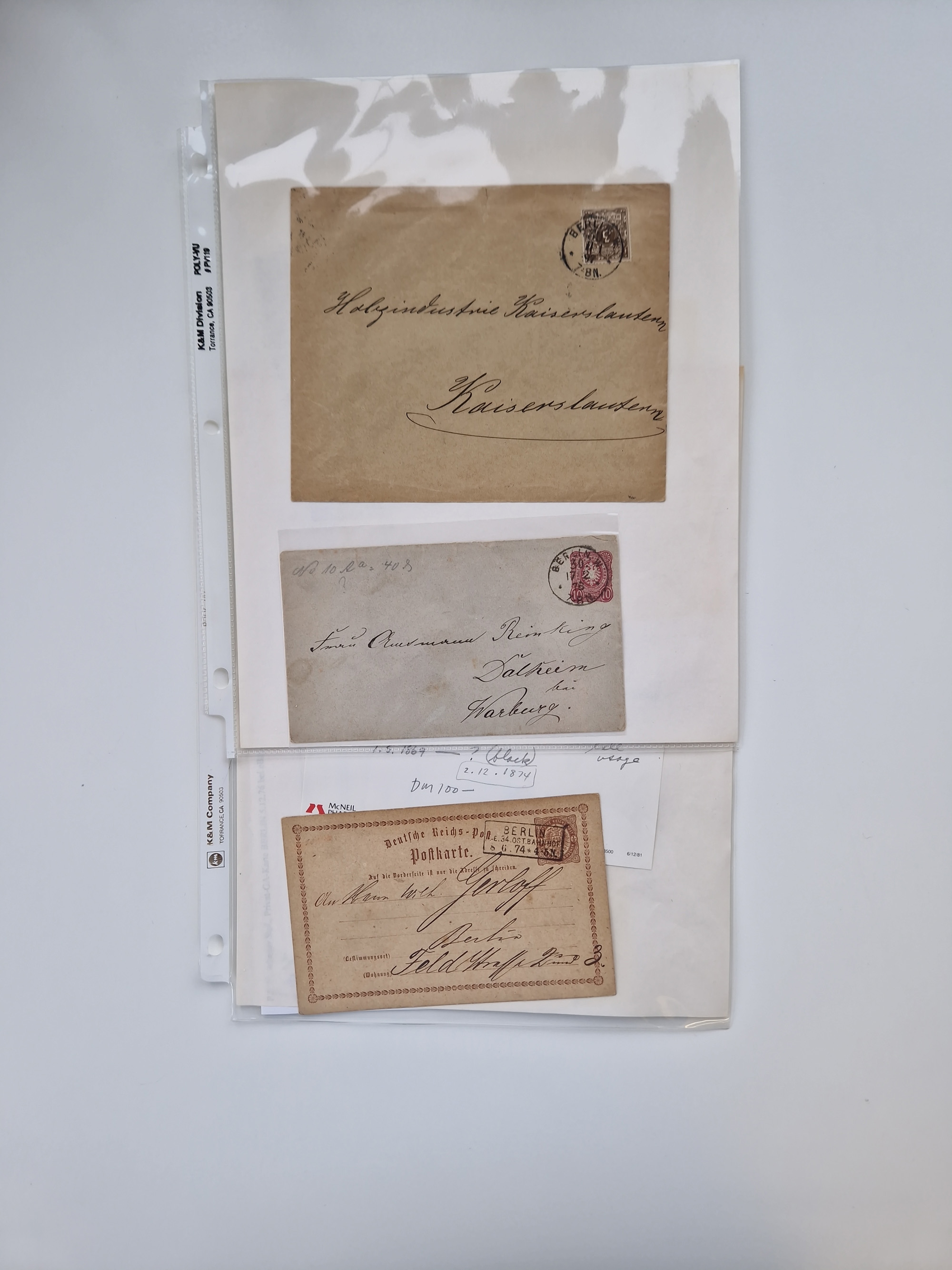 Berlin: 1817/1904,Stempel-Sammlung ab Vorphila mit ca. 280 Briefen, Karten und Ganzsachen mit vielen verschiedenen Stempeln inkl. Bahnpost- und Hufeisenstempeln mit besseren, Schwerpunkt ab Preußen bis ca. 1875. Dabei auch u.a. Nummernstempel “106” auf Brief, “BERLIN P.E.7 F. ” auf Paketbegleitbrief, Rahmenstempel “BERLIN CABINETS-EXPEDITION” auf Brief 1871 und Destinationen ab Preußen mit u.a. Italien, Kanada, Polen und USA. Meist klare Abschläge