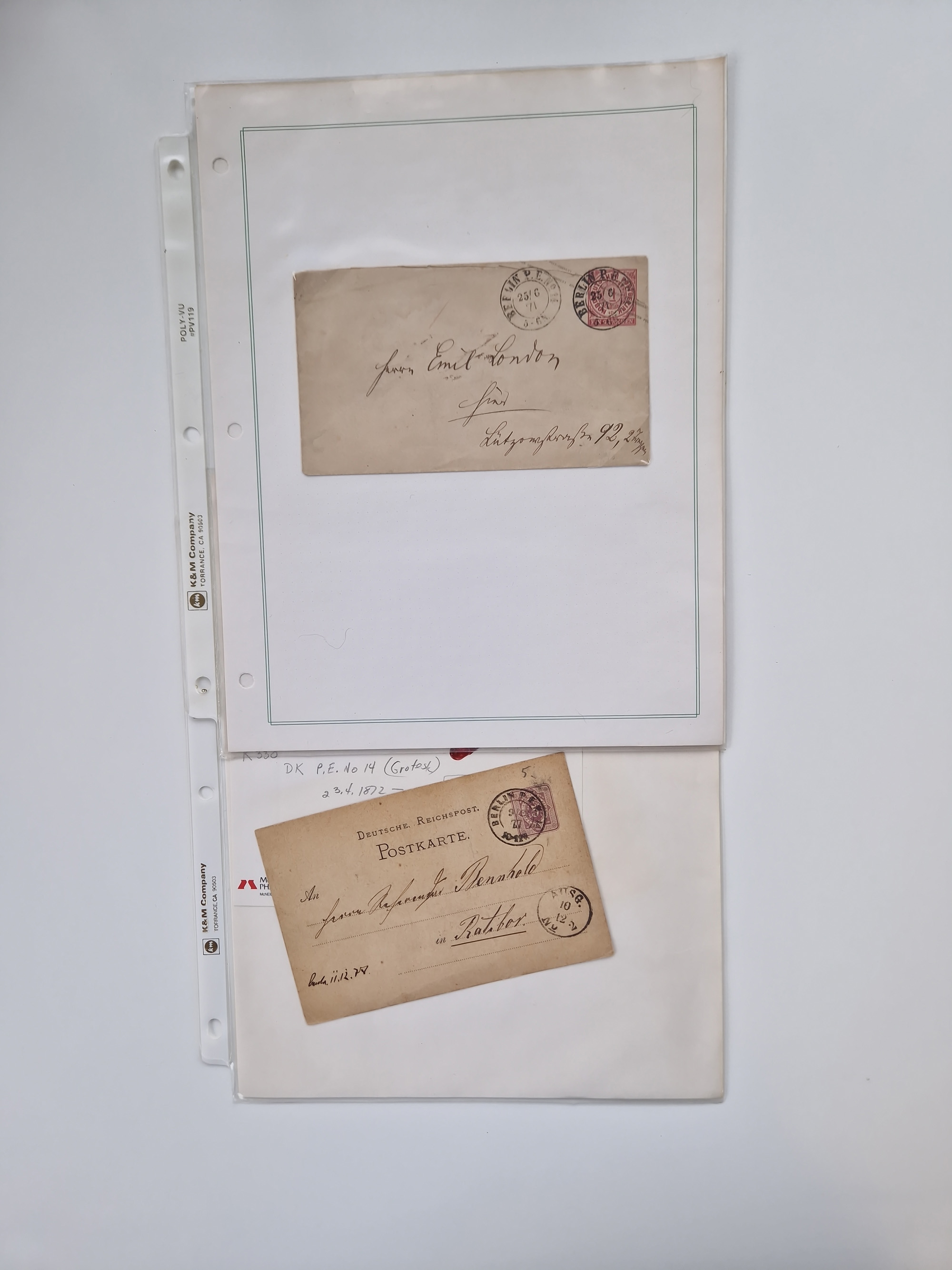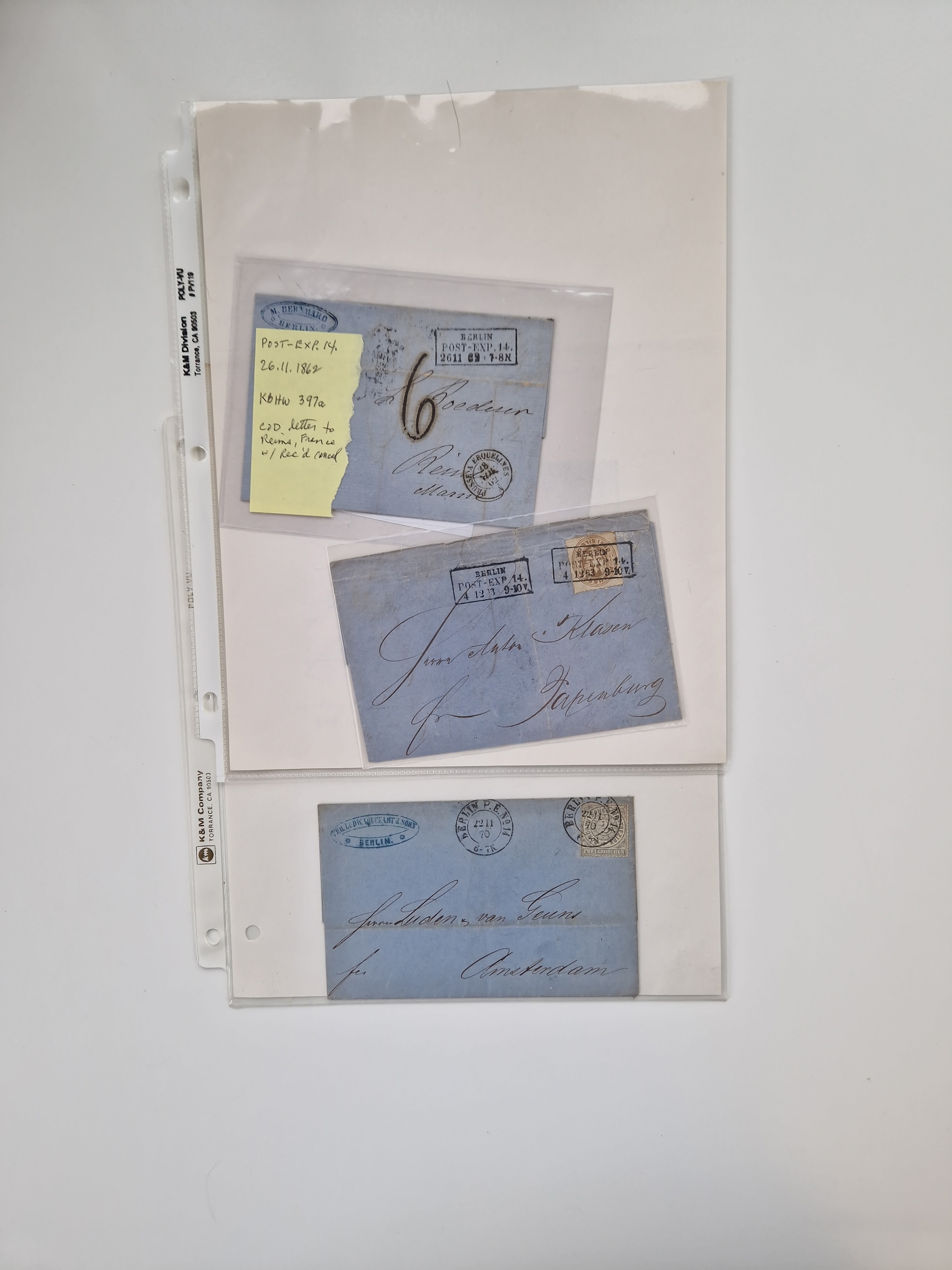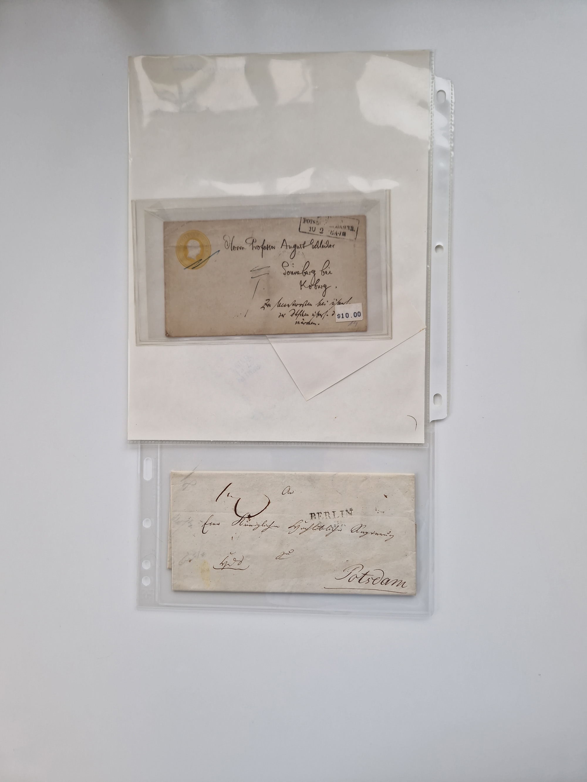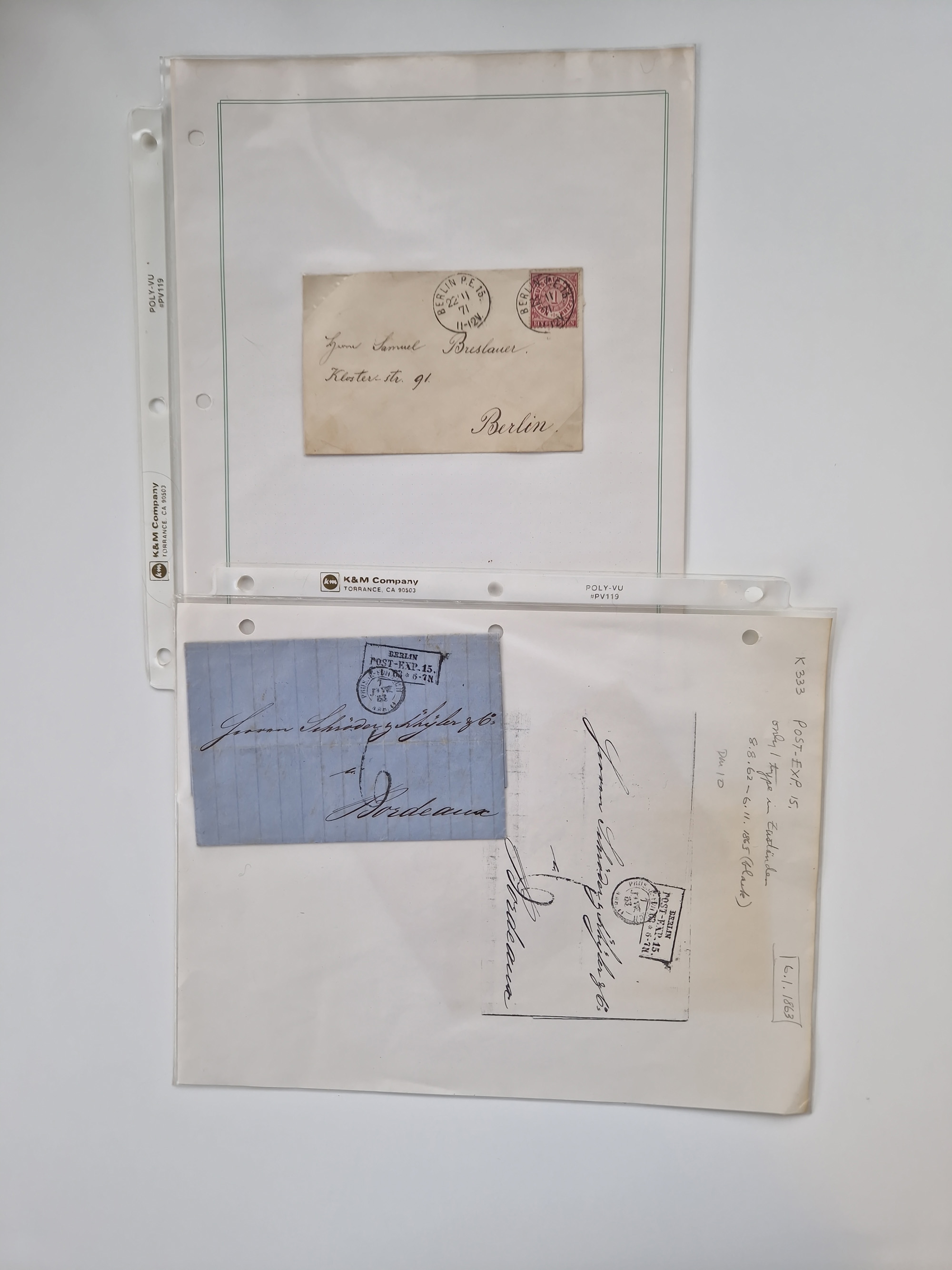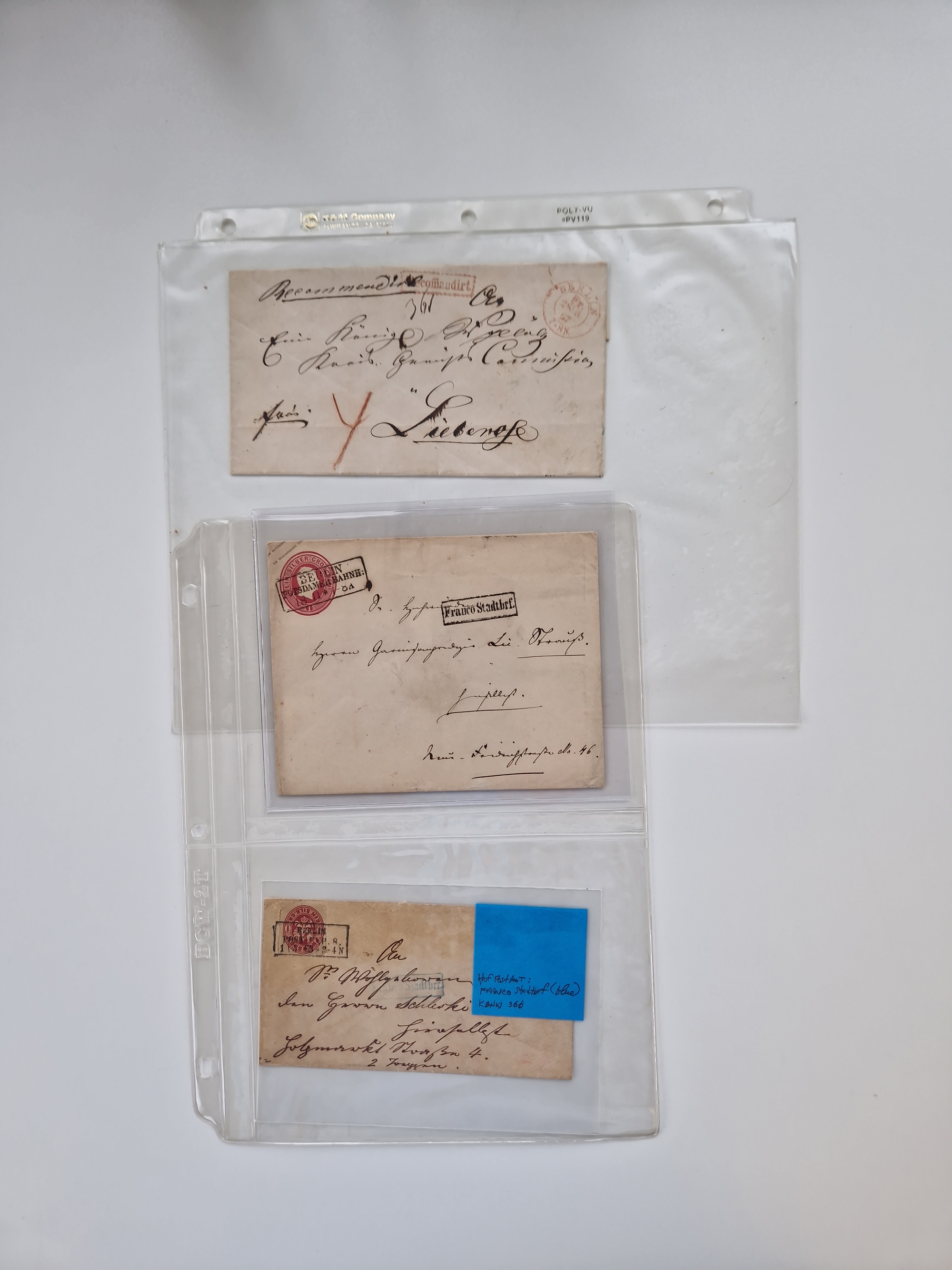 Berlin: 1817/1904,Stempel-Sammlung ab Vorphila mit ca. 280 Briefen, Karten und Ganzsachen mit vielen verschiedenen Stempeln inkl. Bahnpost- und Hufeisenstempeln mit besseren, Schwerpunkt ab Preußen bis ca. 1875. Dabei auch u.a. Nummernstempel “106” auf Brief, “BERLIN P.E.7 F. ” auf Paketbegleitbrief, Rahmenstempel “BERLIN CABINETS-EXPEDITION” auf Brief 1871 und Destinationen ab Preußen mit u.a. Italien, Kanada, Polen und USA. Meist klare Abschläge