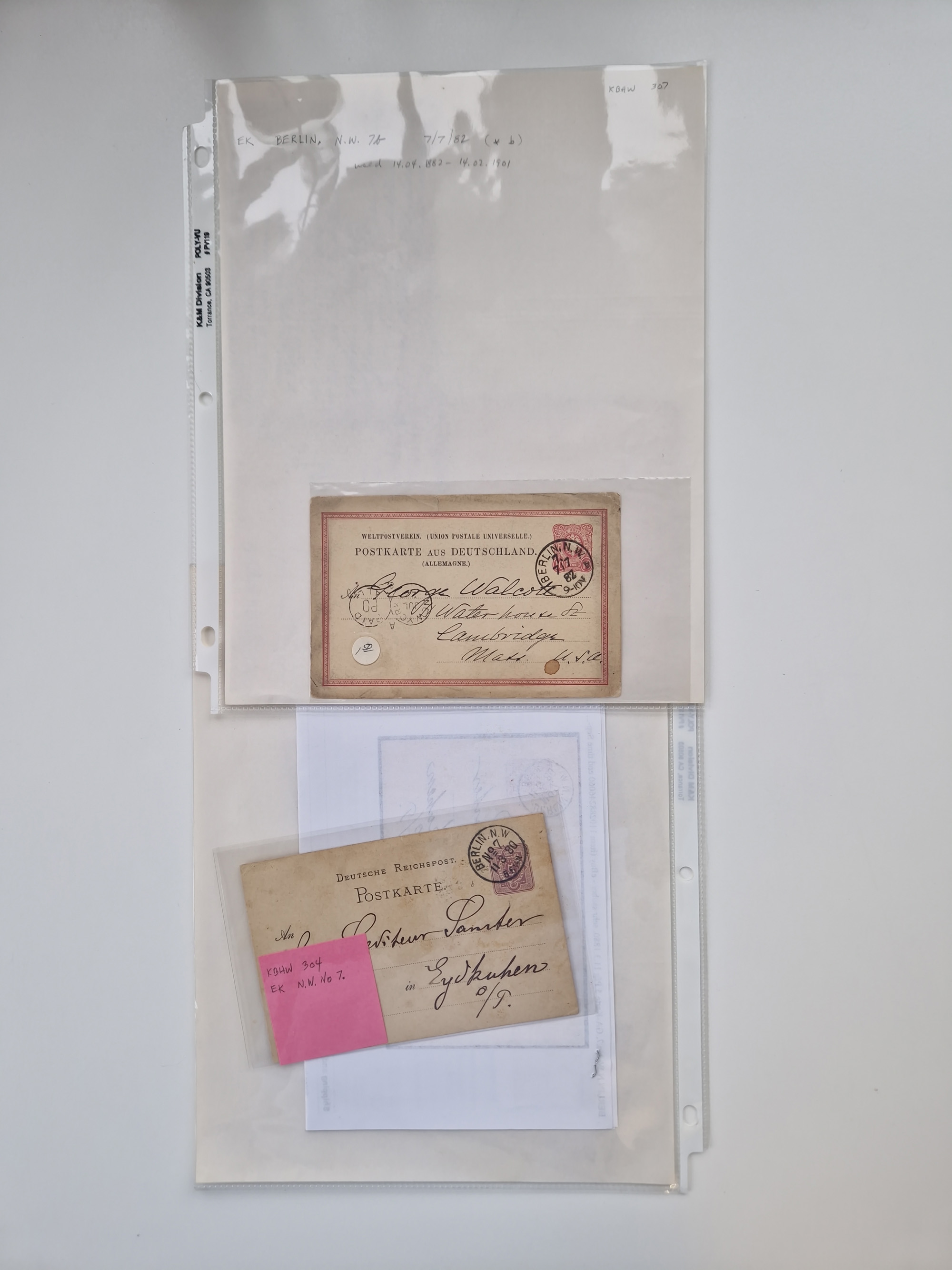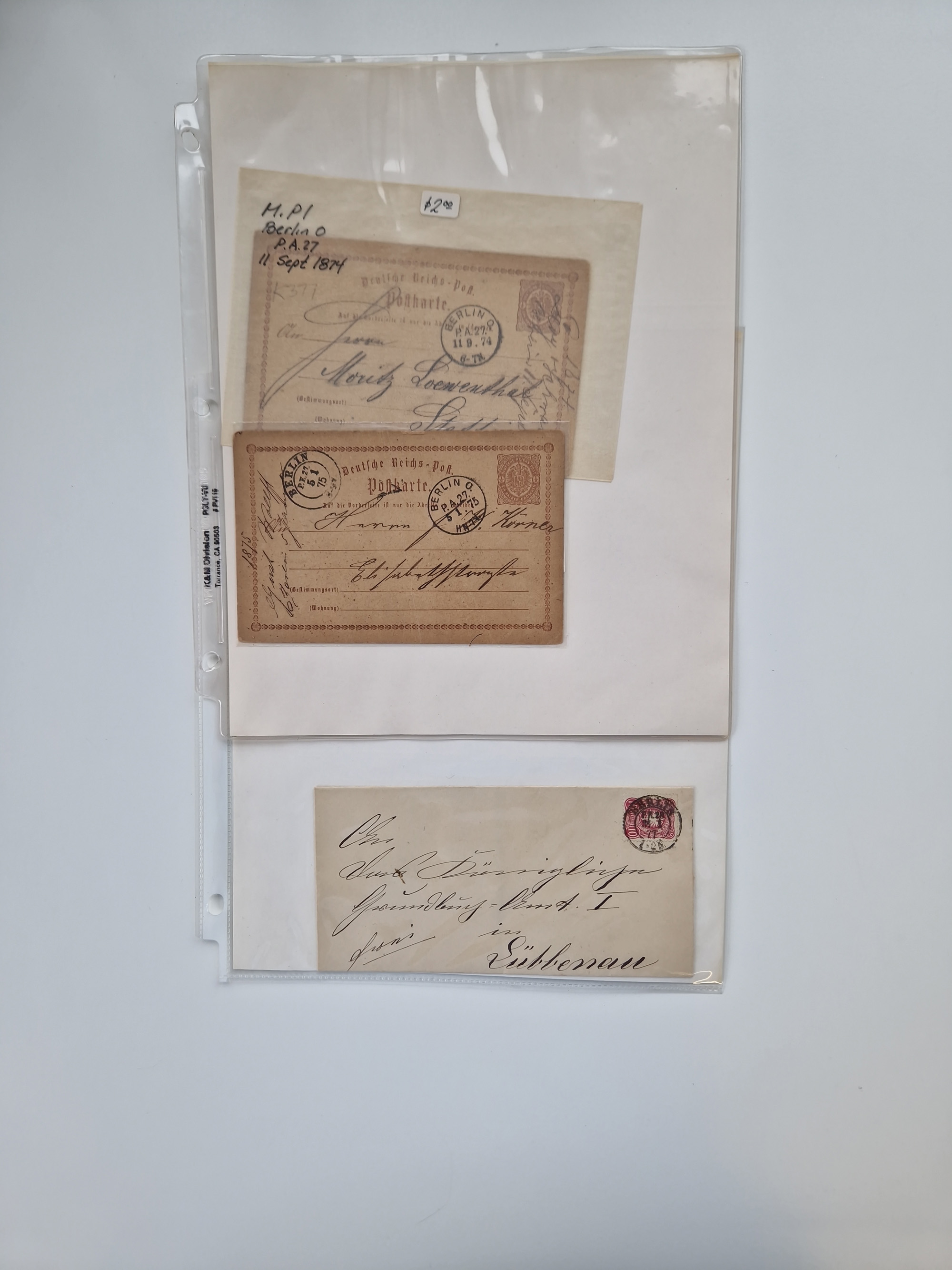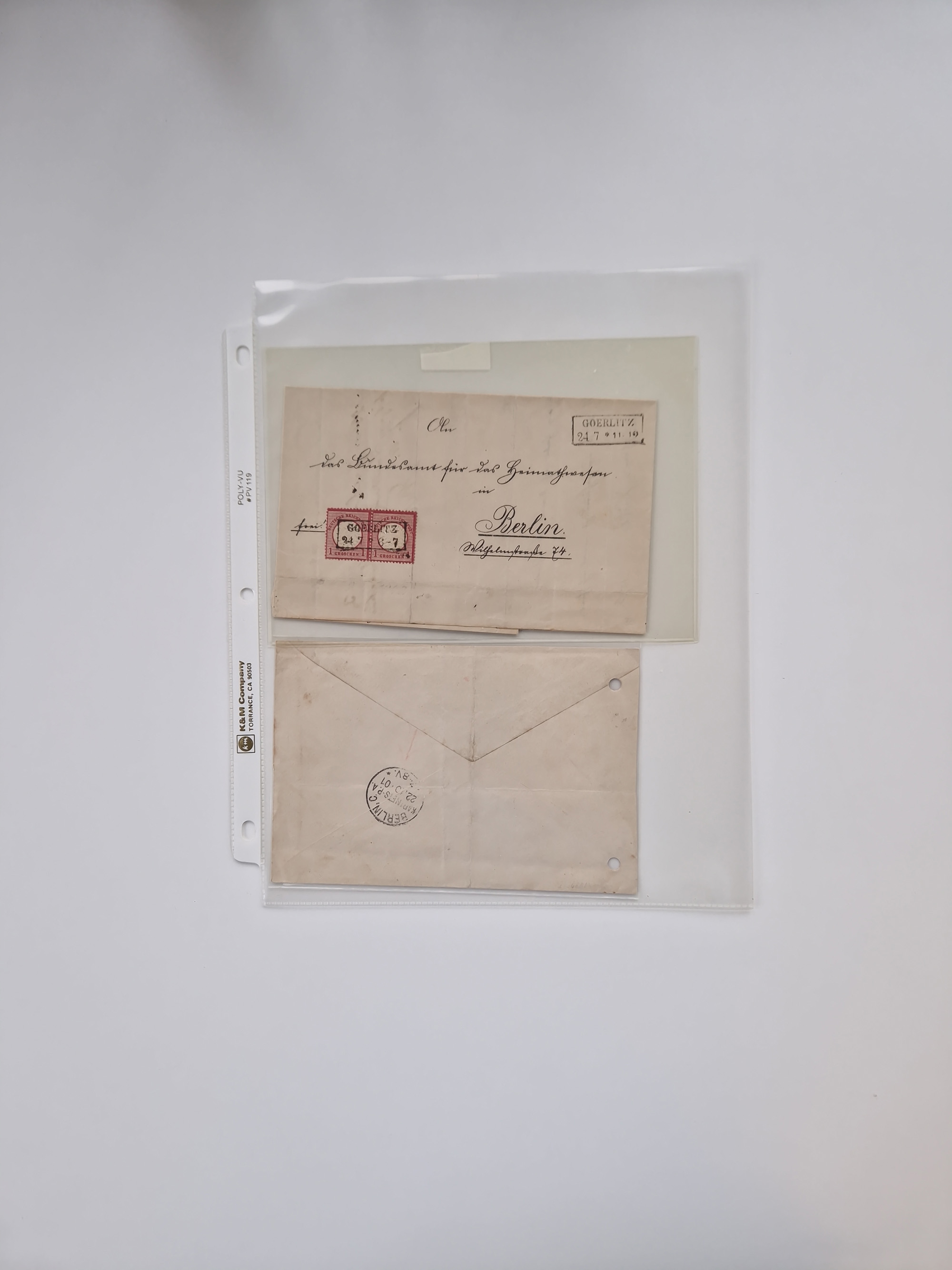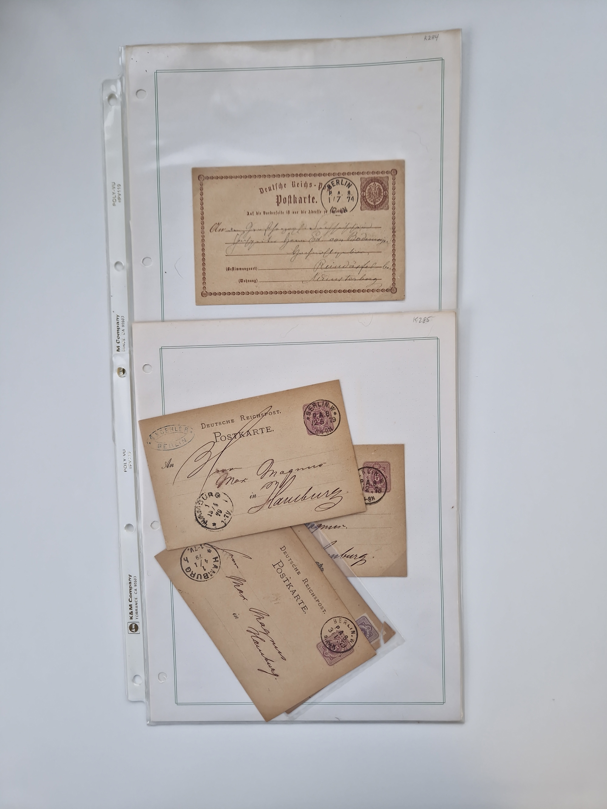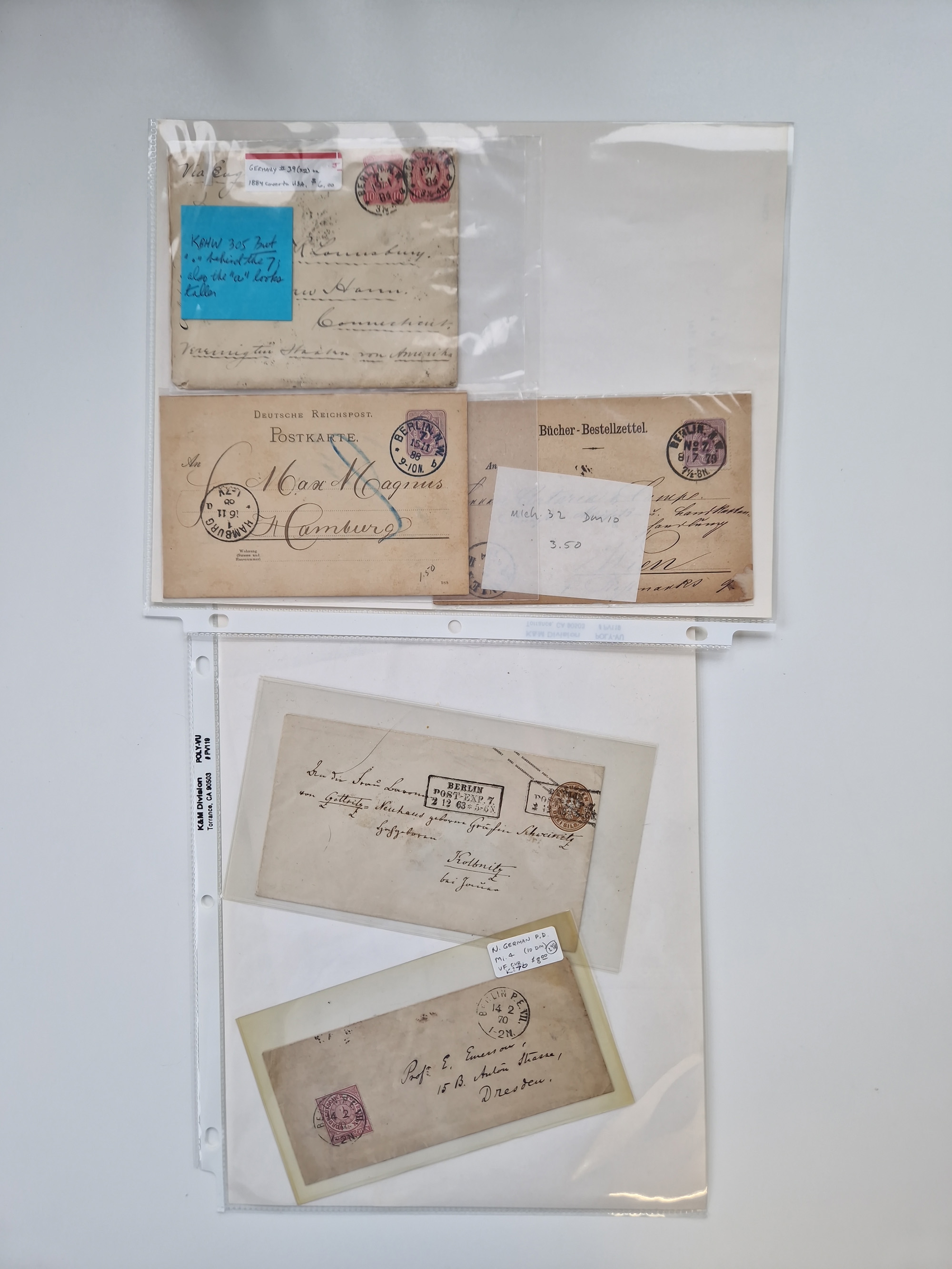 Berlin: 1817/1904,Stempel-Sammlung ab Vorphila mit ca. 280 Briefen, Karten und Ganzsachen mit vielen verschiedenen Stempeln inkl. Bahnpost- und Hufeisenstempeln mit besseren, Schwerpunkt ab Preußen bis ca. 1875. Dabei auch u.a. Nummernstempel “106” auf Brief, “BERLIN P.E.7 F. ” auf Paketbegleitbrief, Rahmenstempel “BERLIN CABINETS-EXPEDITION” auf Brief 1871 und Destinationen ab Preußen mit u.a. Italien, Kanada, Polen und USA. Meist klare Abschläge