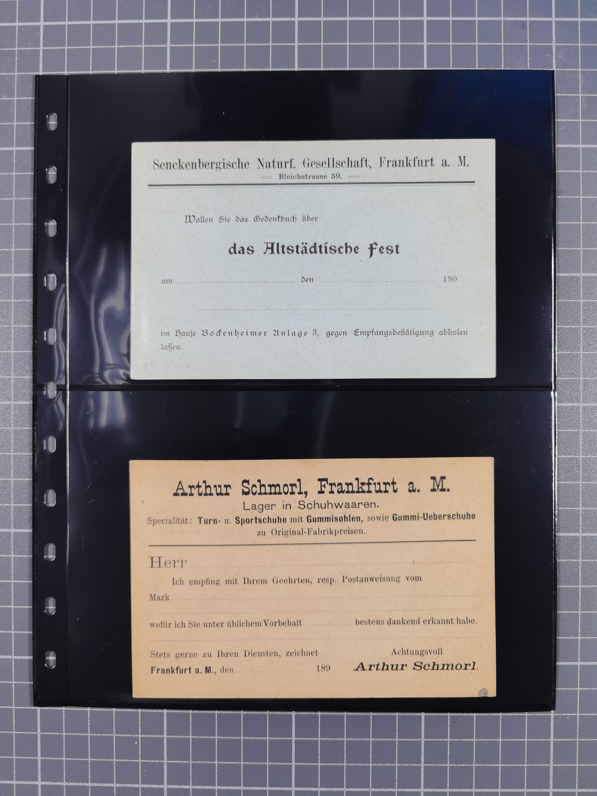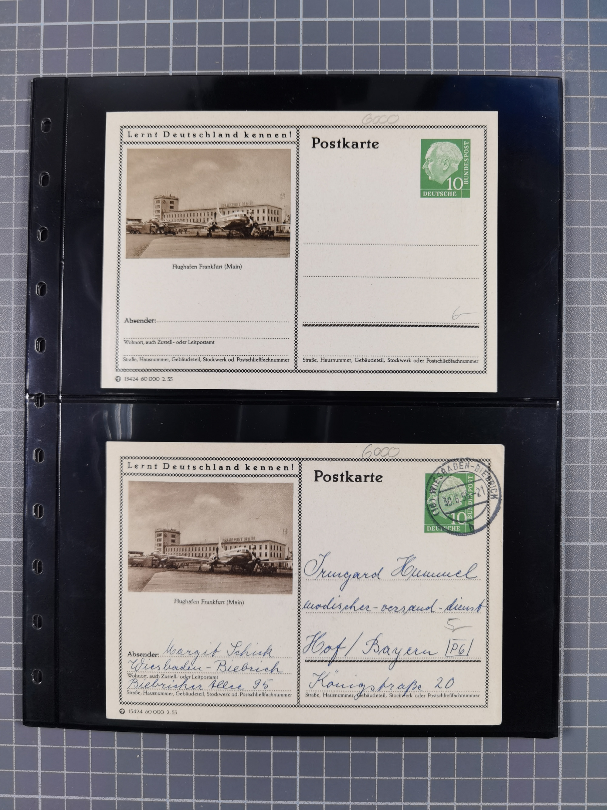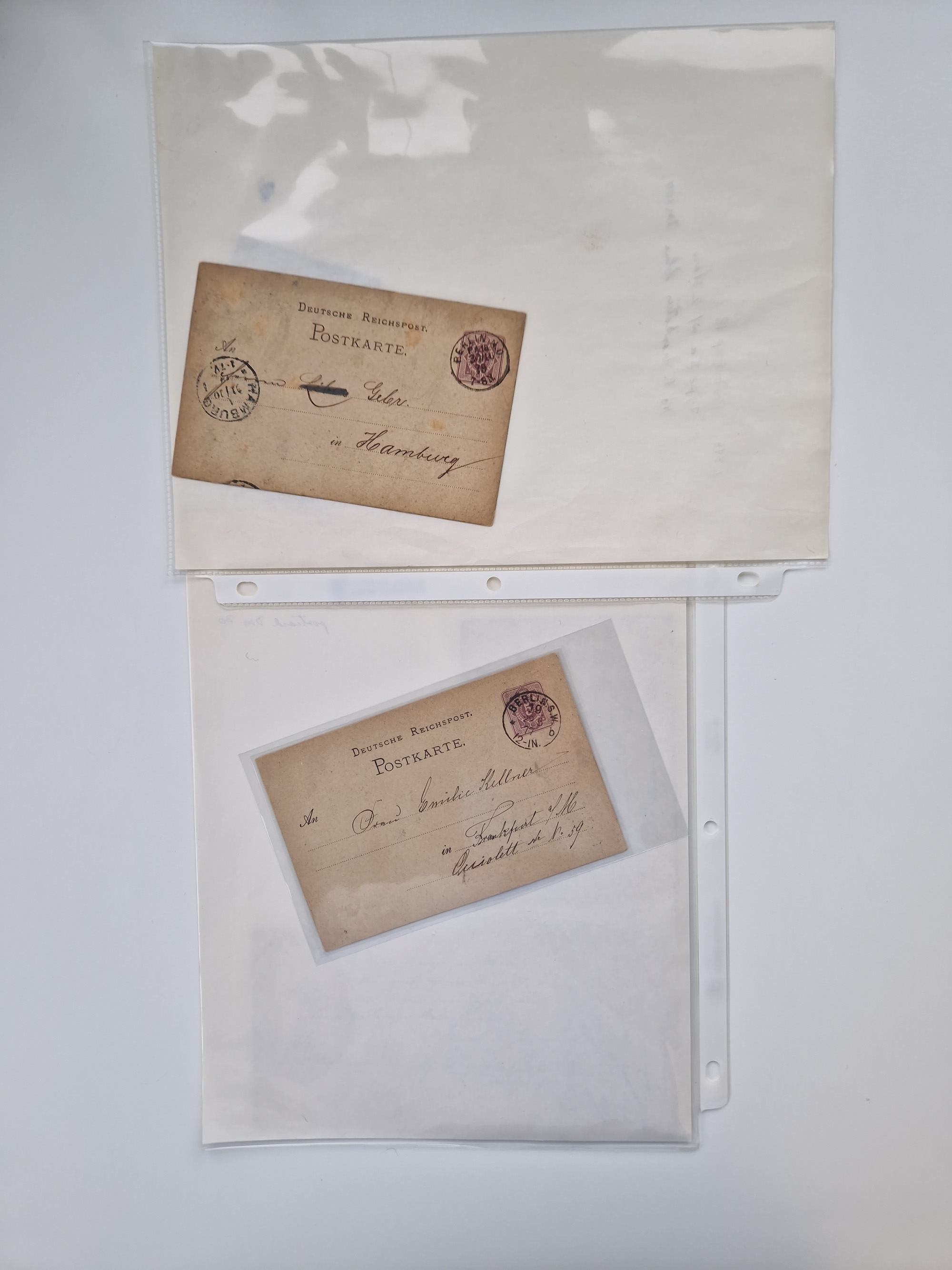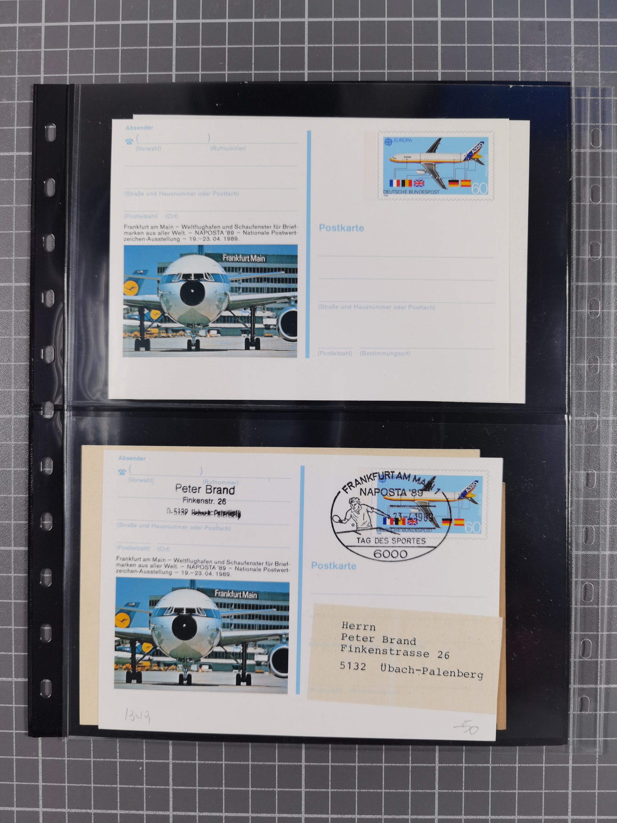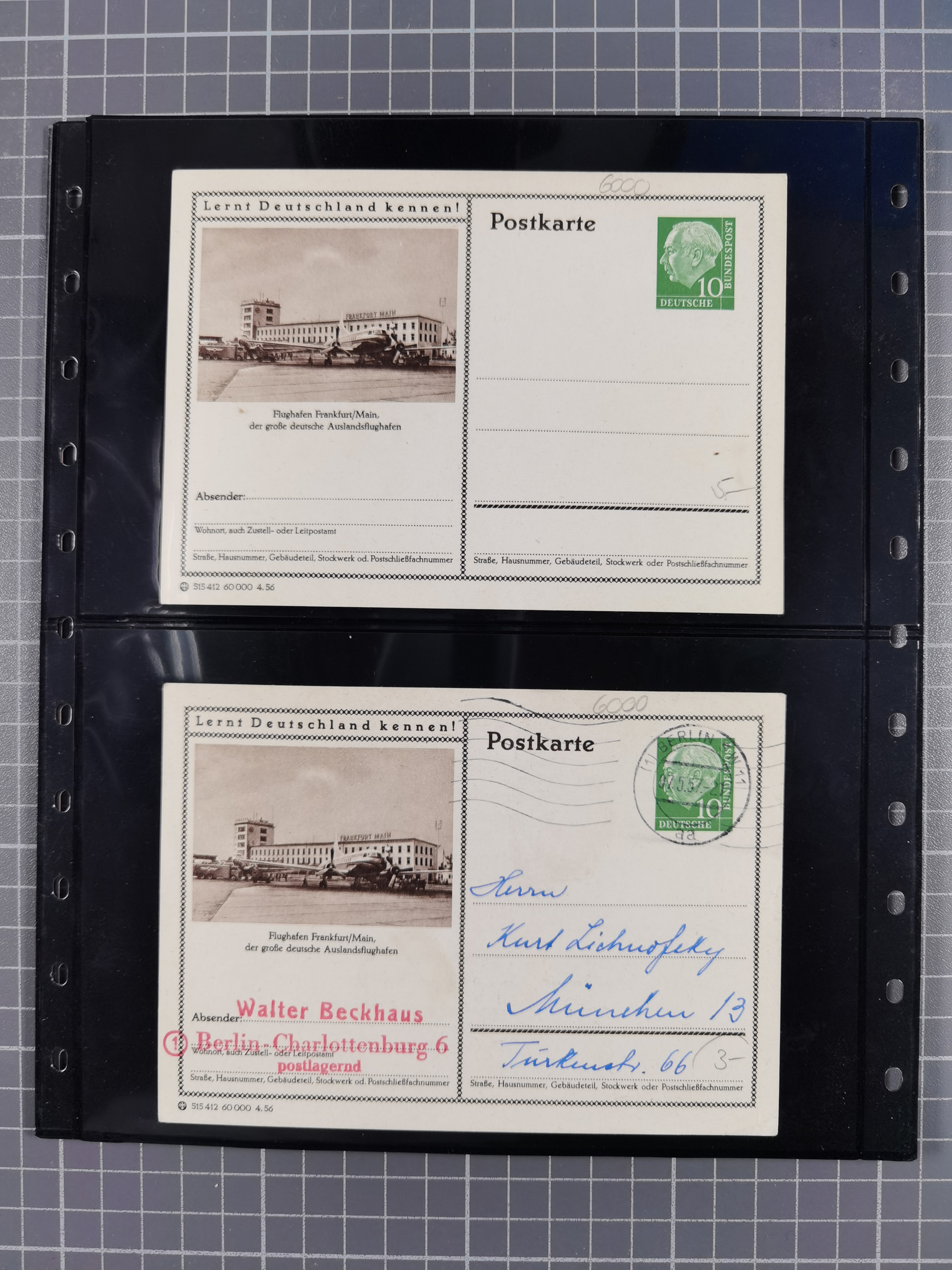 1945/98, umfangreiche Ausstellungssammlung “Frankfurt am Main - Wiederaufnahme des Postverkehrs 1945-1948 dargestellt mit Postbelegen und Dokumenten” auf 54 großformatigen Blättern für 9 Ausstellungsrahmen. Dabei späte Post, Überroller, Jeija Briefe, vier zensierte Telegramme, Lagerpost sowie Post an die Suchsstelle des Roten Kreuzes, diverse Briefe und Karten mit dem Hinweisstempel “Sperrgebiet”, Vermerk “Haus zerstört”, US Feldpost usw., alles sauber beschrieben